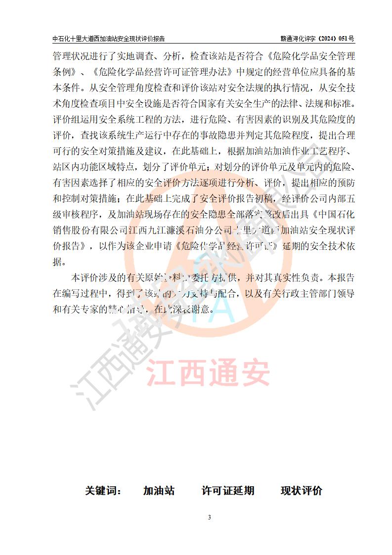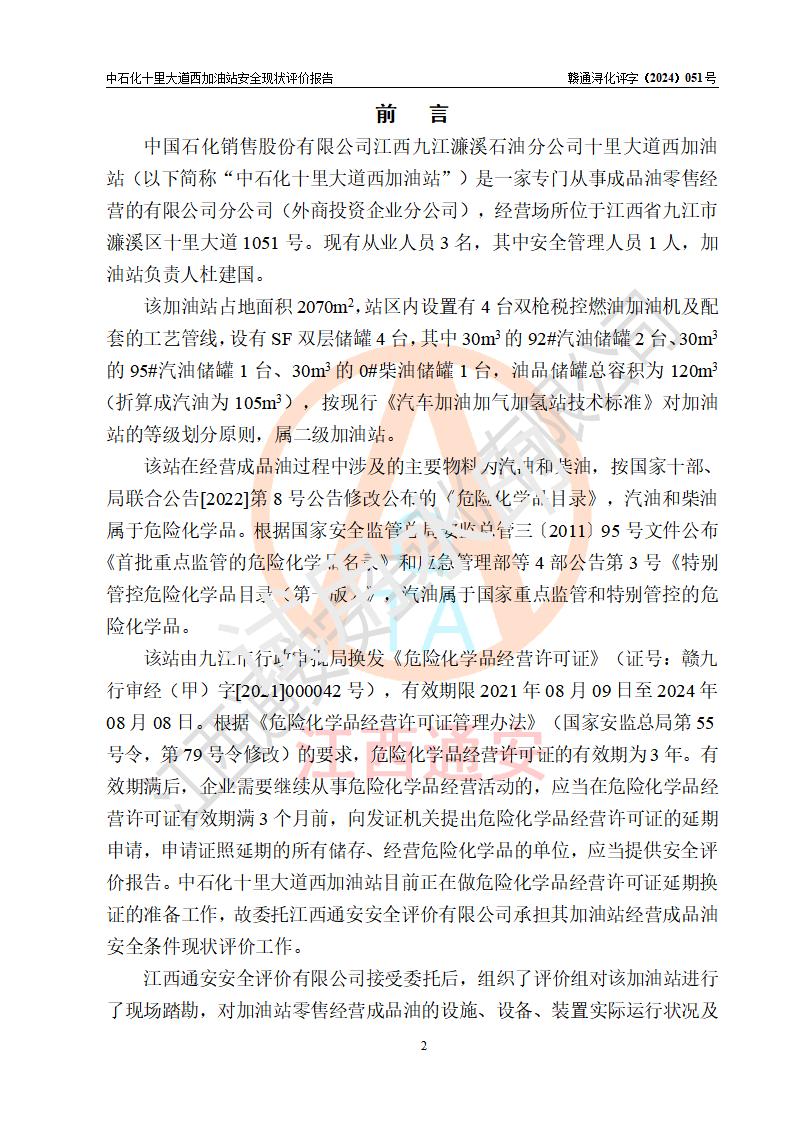 評(píng)價(jià)報(bào)告名稱 | 中國石化銷售股份有限公司江西九江濂溪石油分公司十里大道西加油站安全現(xiàn)狀評(píng)價(jià)報(bào)告 | |||