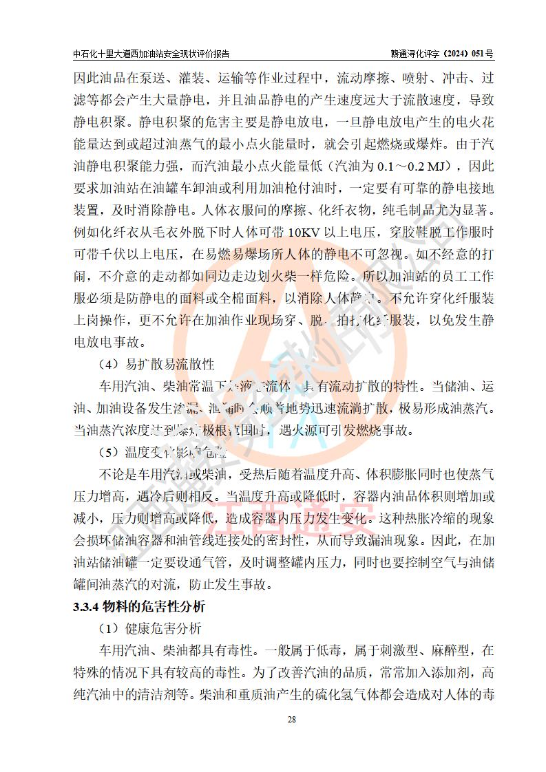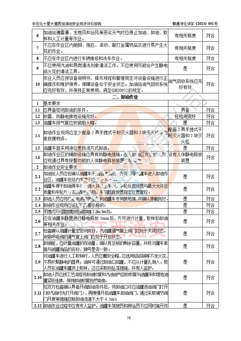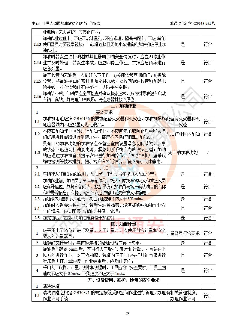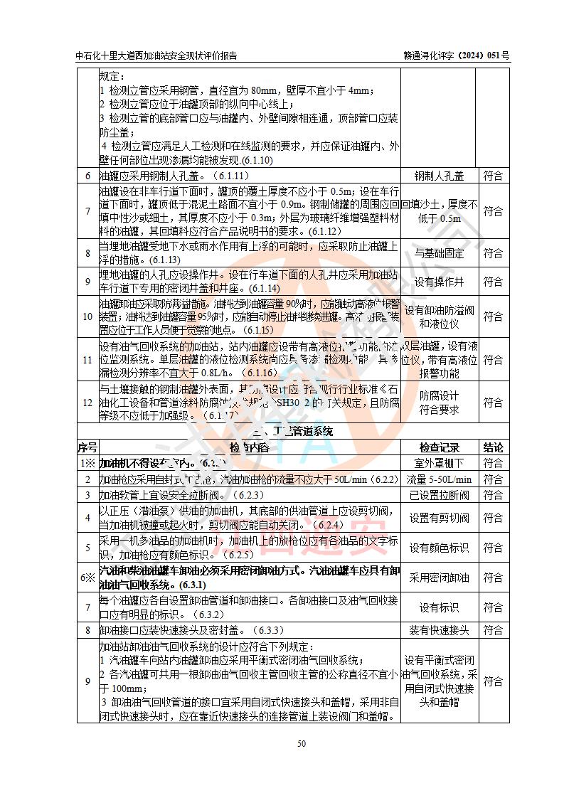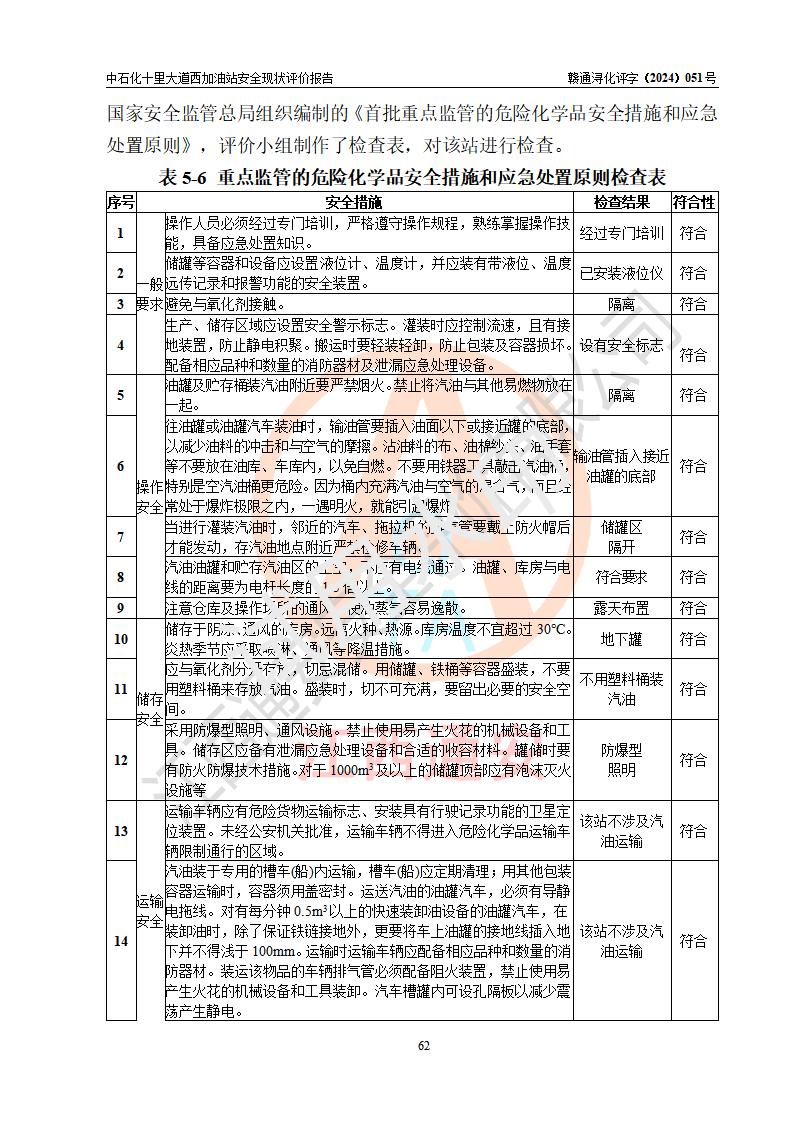 評(píng)價(jià)結(jié)論 | 中國石化銷售股份有限公司江西九江濂溪石油分公司十里大道西加油站涉及的安全條件、安全經(jīng)營條件、安全生產(chǎn)管理符合《危險(xiǎn)化學(xué)品經(jīng)營許可證管理辦法》、《汽車加油加氣加氫站技術(shù)標(biāo)準(zhǔn)》等**有關(guān)法規(guī)、標(biāo)準(zhǔn)、規(guī)范要求,能滿足危險(xiǎn)化學(xué)品經(jīng)營安全條件。 | |||