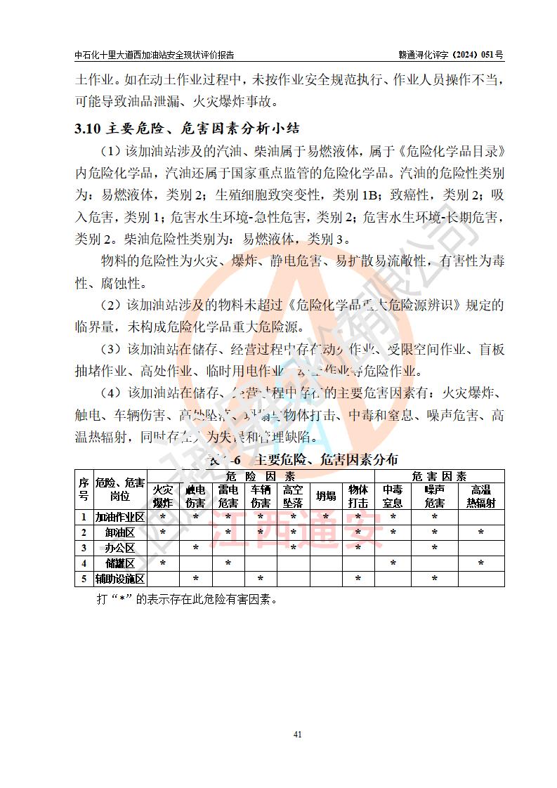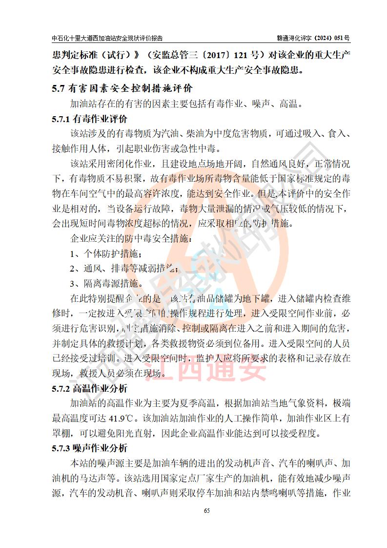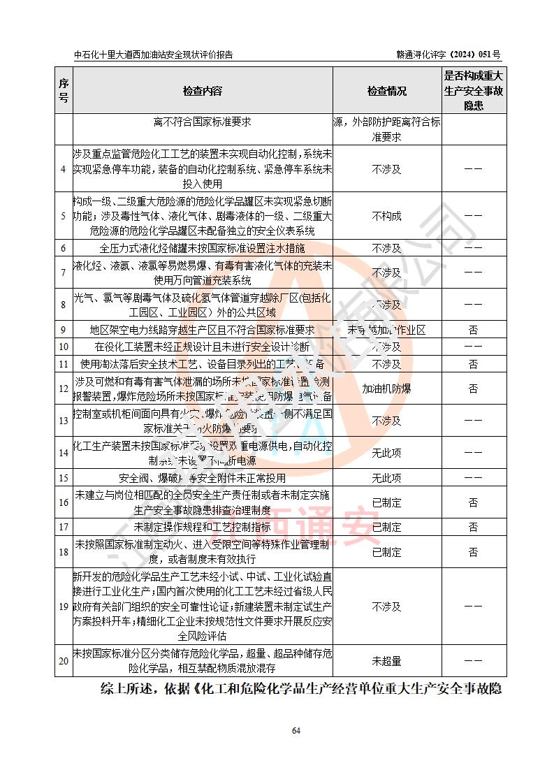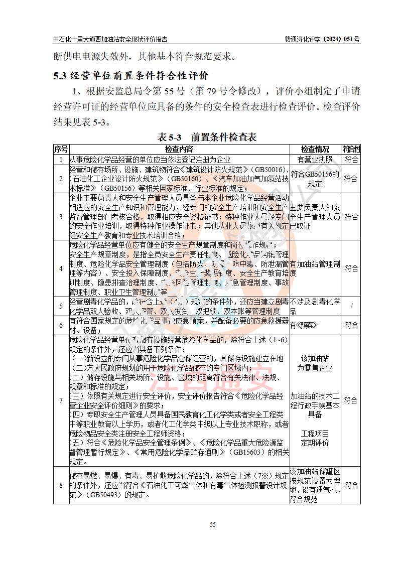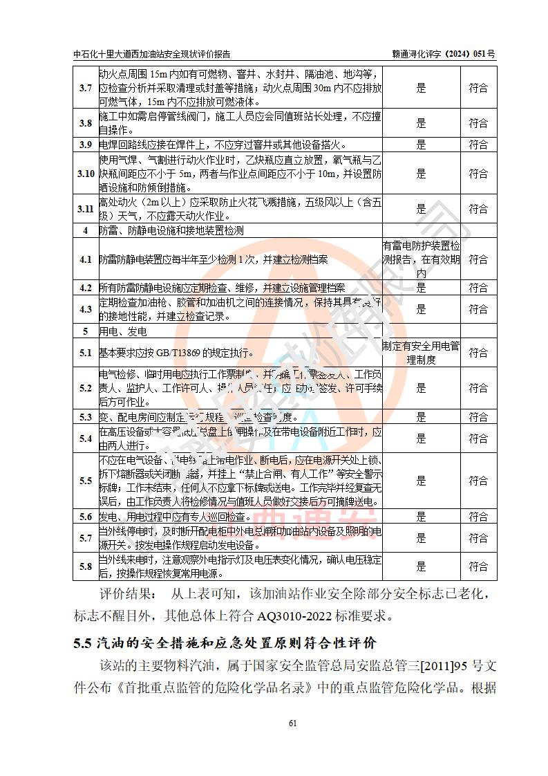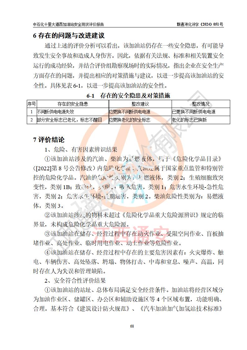 評(píng)價(jià)結(jié)論 | 中國石化銷售股份有限公司江西九江濂溪石油分公司十里大道西加油站涉及的安全條件、安全經(jīng)營條件、安全生產(chǎn)管理符合《危險(xiǎn)化學(xué)品經(jīng)營許可證管理辦法》、《汽車加油加氣加氫站技術(shù)標(biāo)準(zhǔn)》等**有關(guān)法規(guī)、標(biāo)準(zhǔn)、規(guī)范要求,能滿足危險(xiǎn)化學(xué)品經(jīng)營安全條件。 | |||