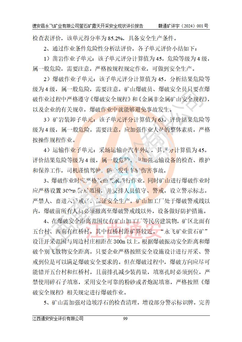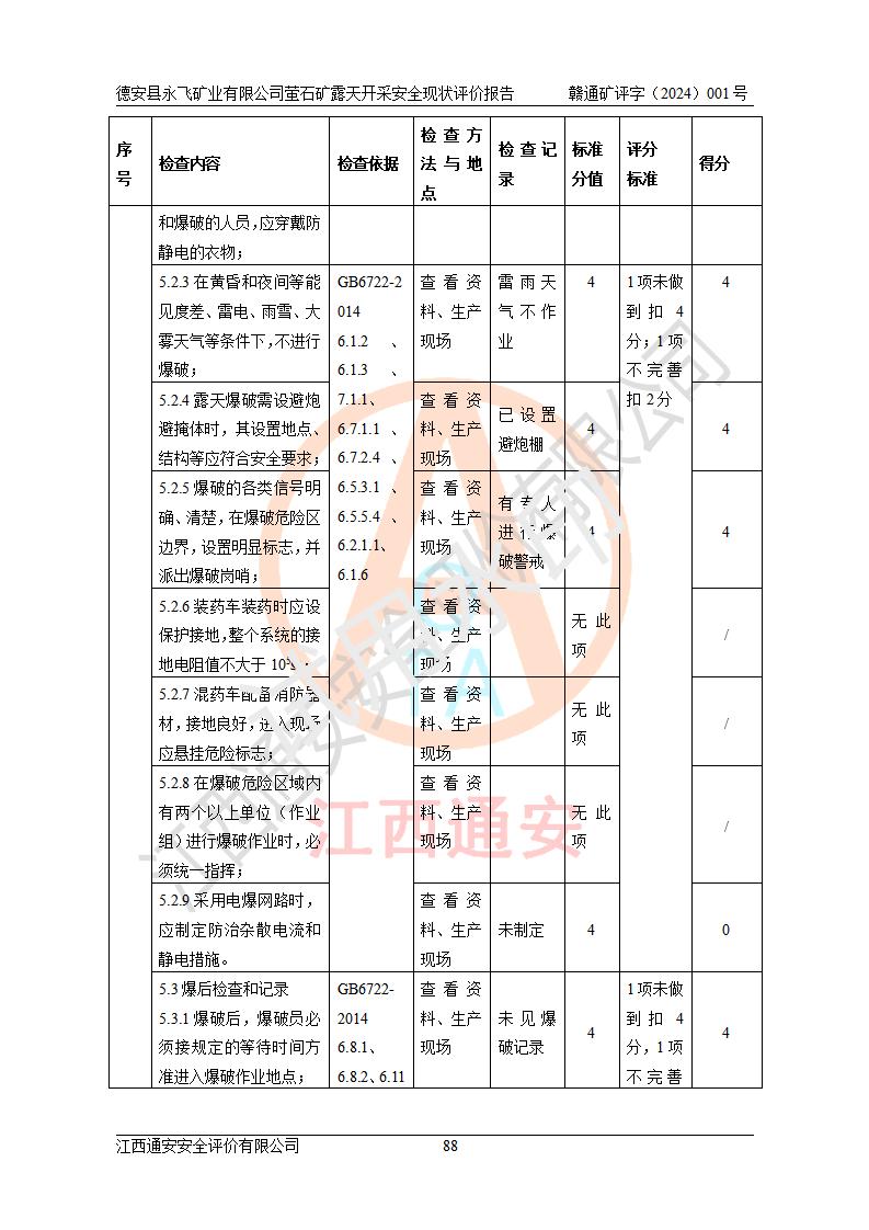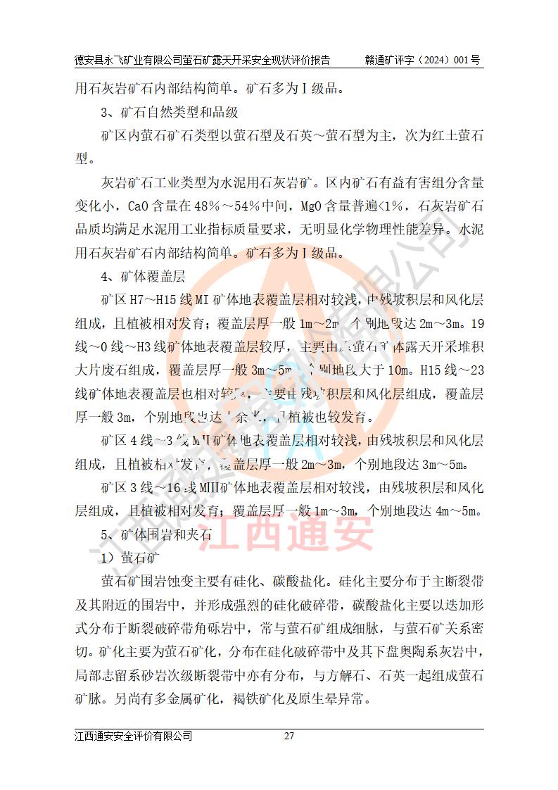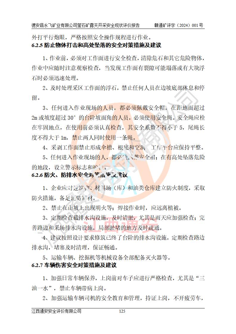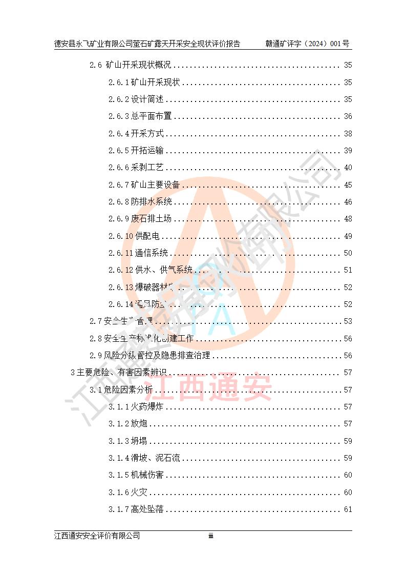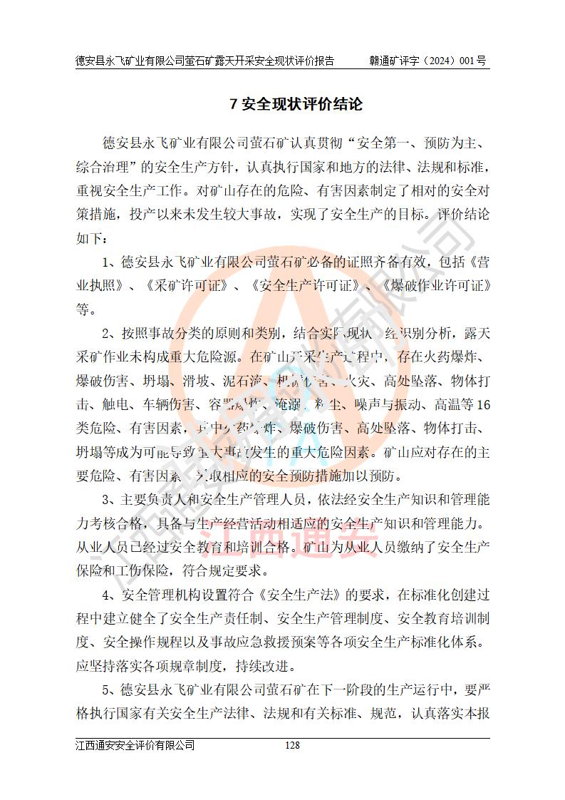 報告名稱 | 德安縣永飛礦業(yè)有限公司螢石礦露天開采安全現(xiàn)狀評價報告 | |||||