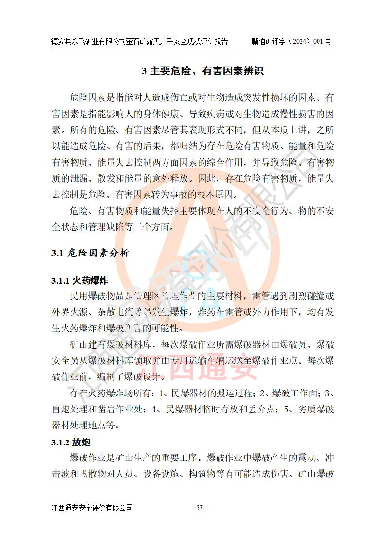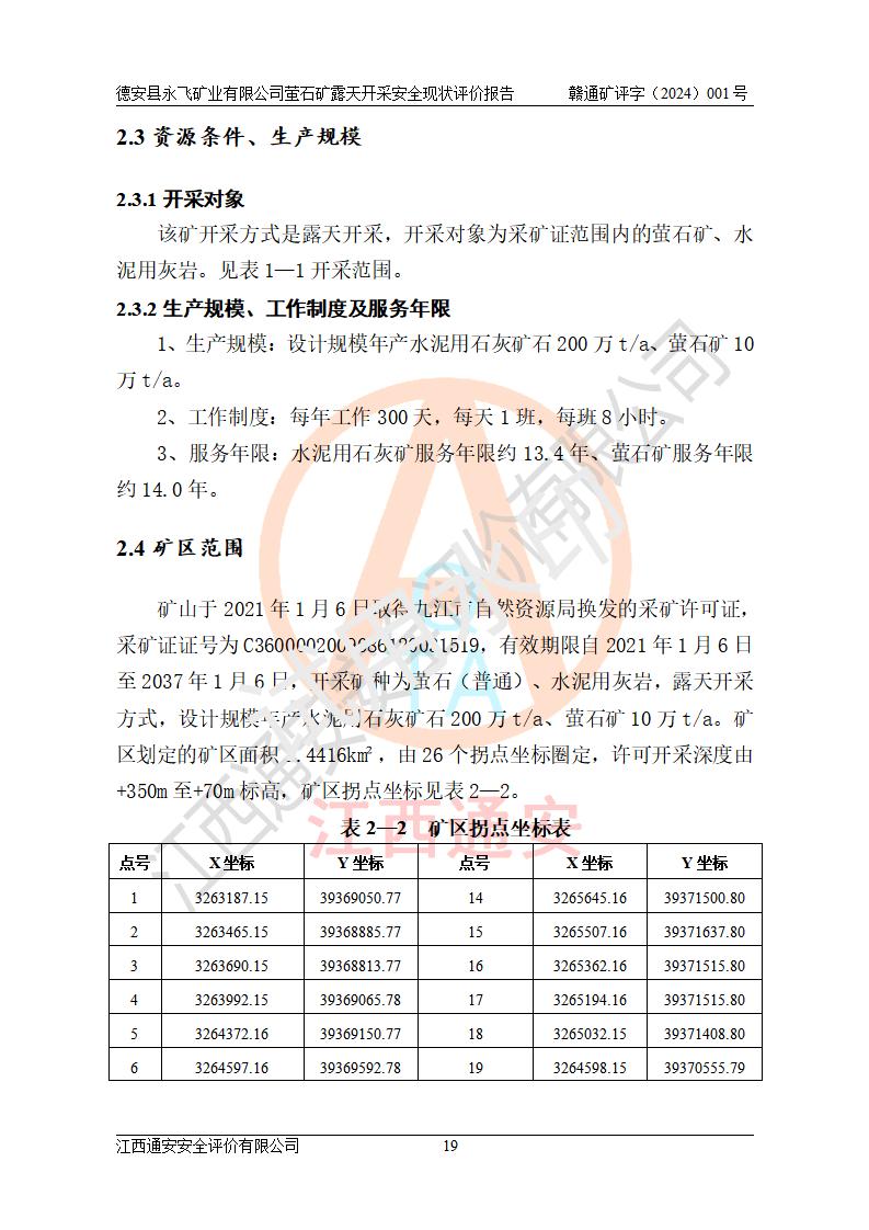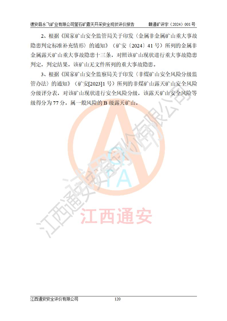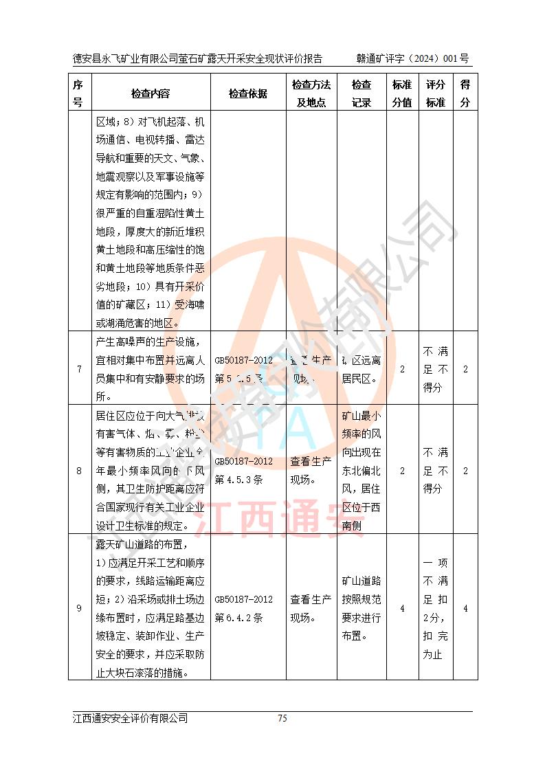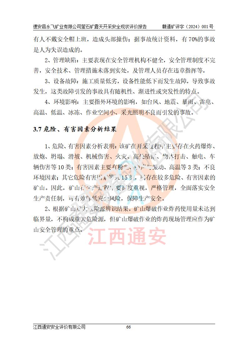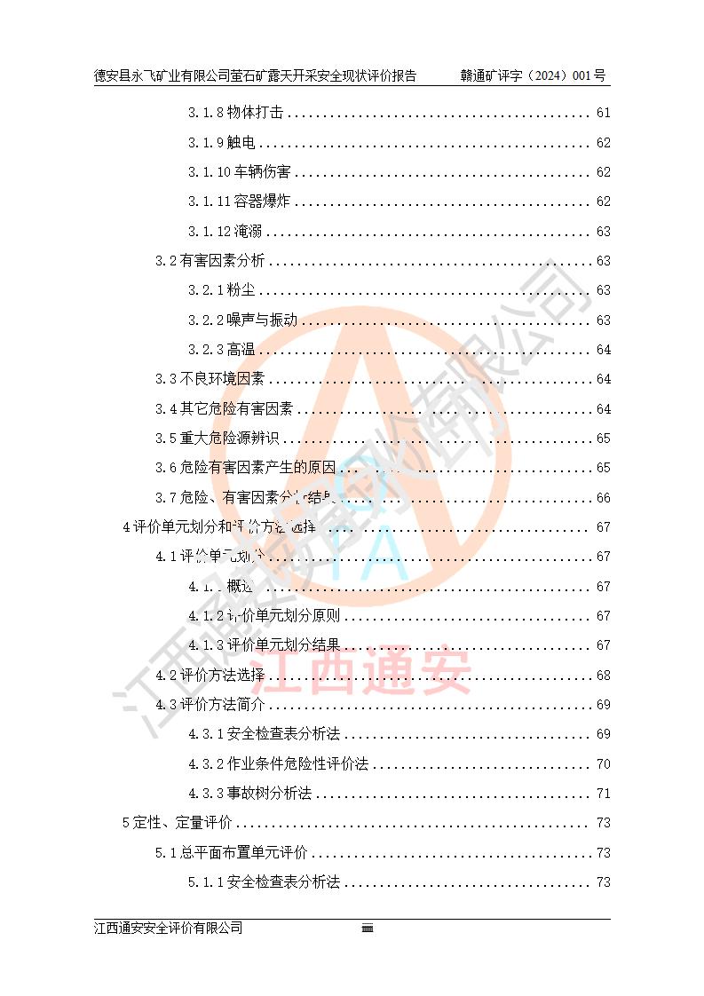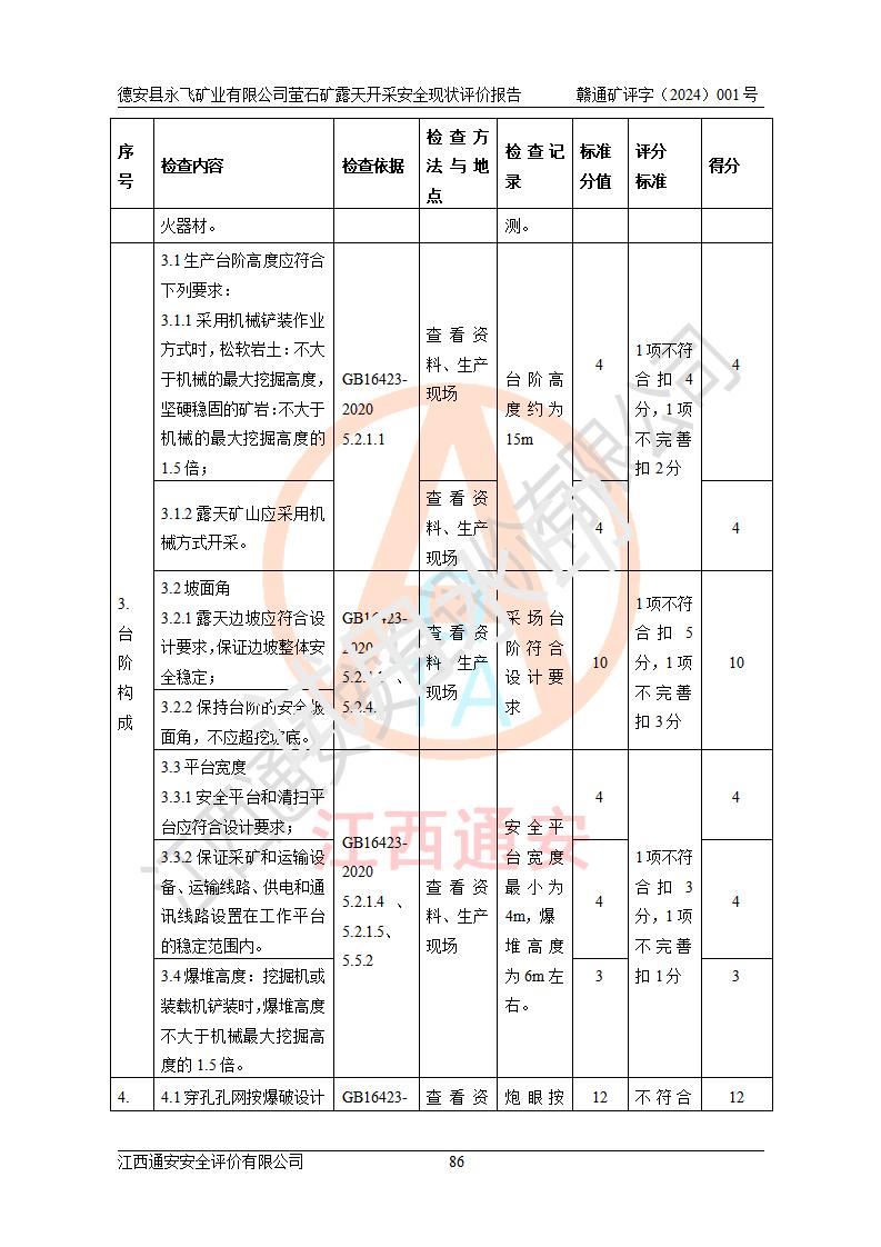報告名稱 | 德安縣永飛礦業(yè)有限公司螢石礦露天開采安全現(xiàn)狀評價報告 | |||||