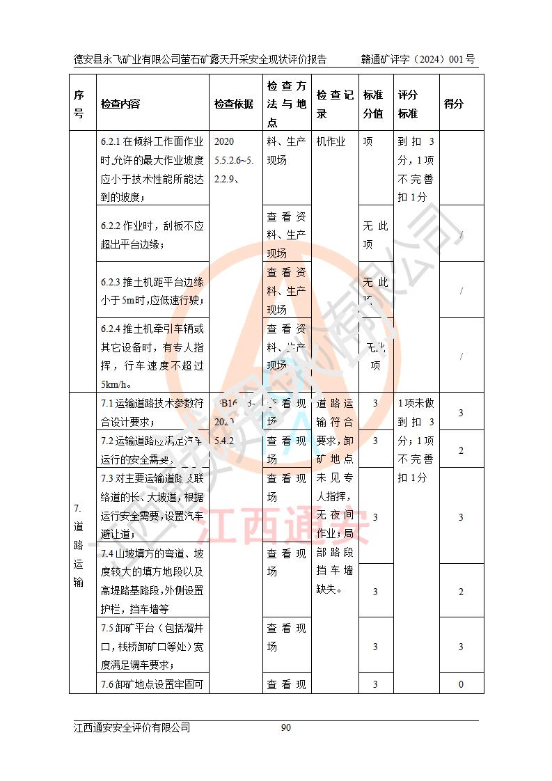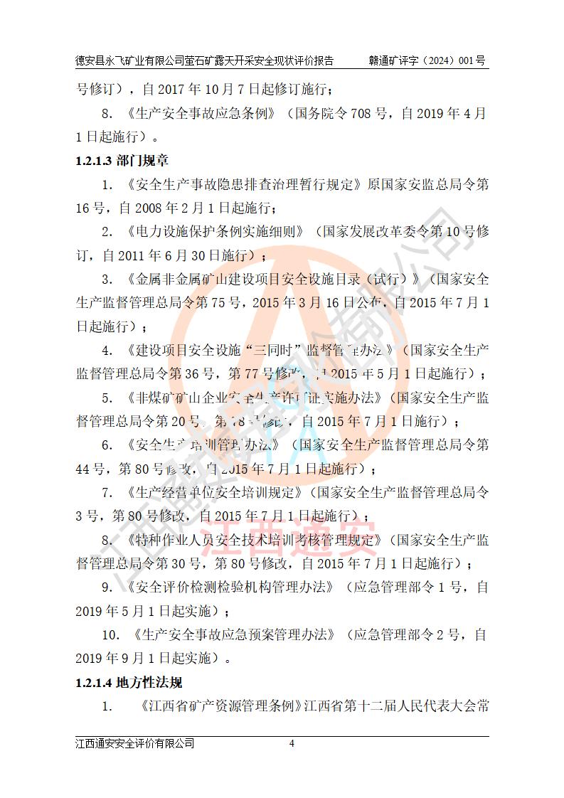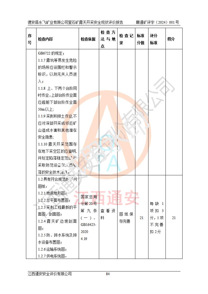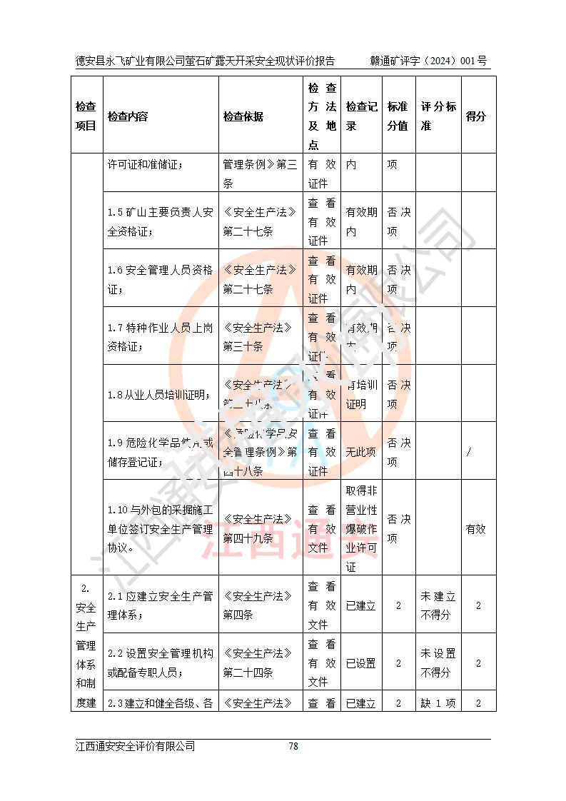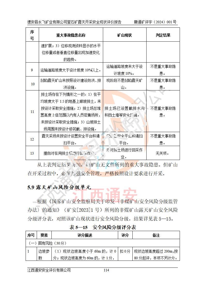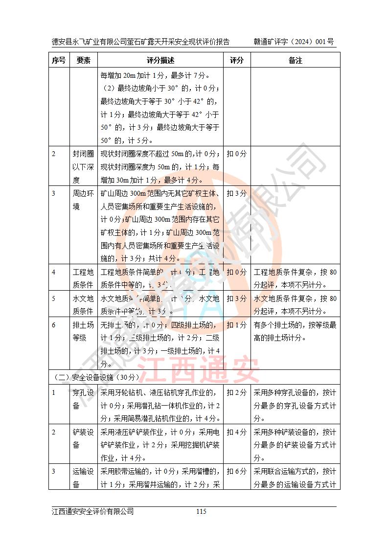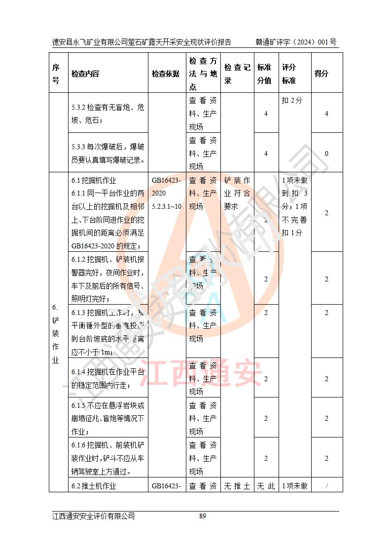 報告名稱 | 德安縣永飛礦業(yè)有限公司螢石礦露天開采安全現(xiàn)狀評價報告 | |||||