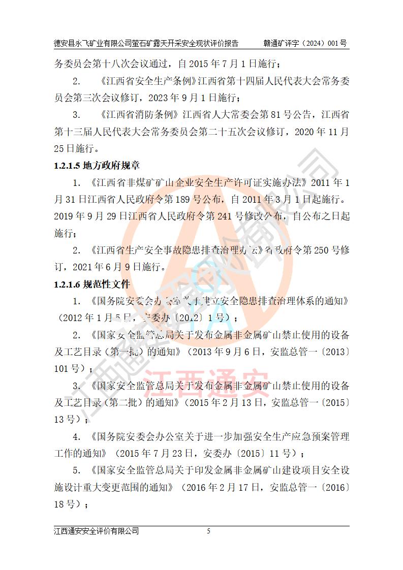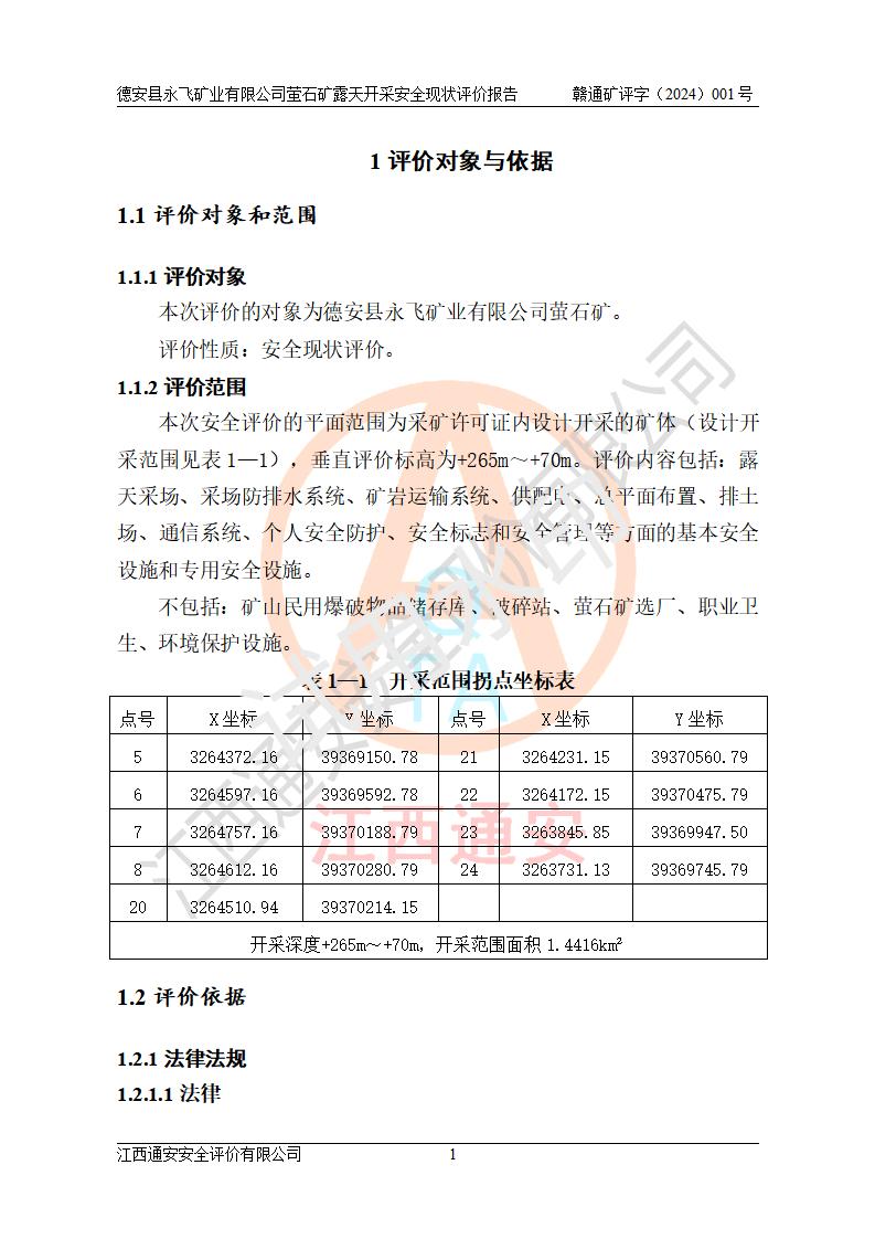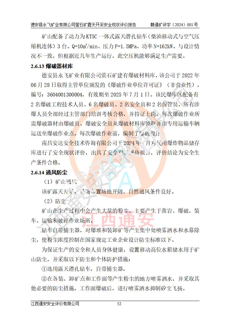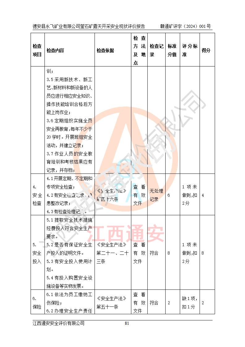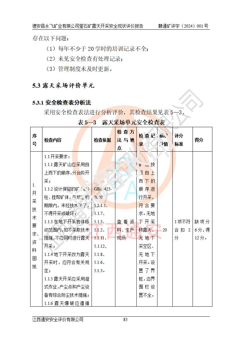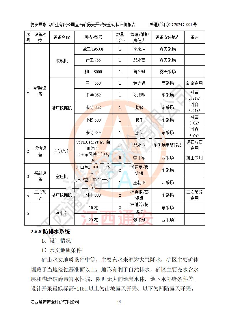 報告名稱 | 德安縣永飛礦業(yè)有限公司螢石礦露天開采安全現(xiàn)狀評價報告 | |||||