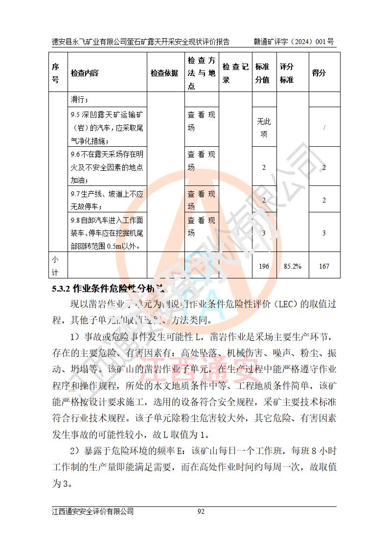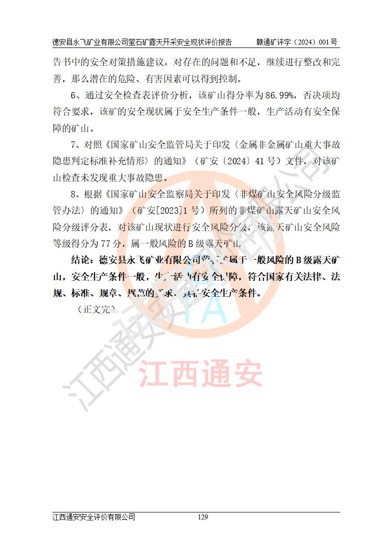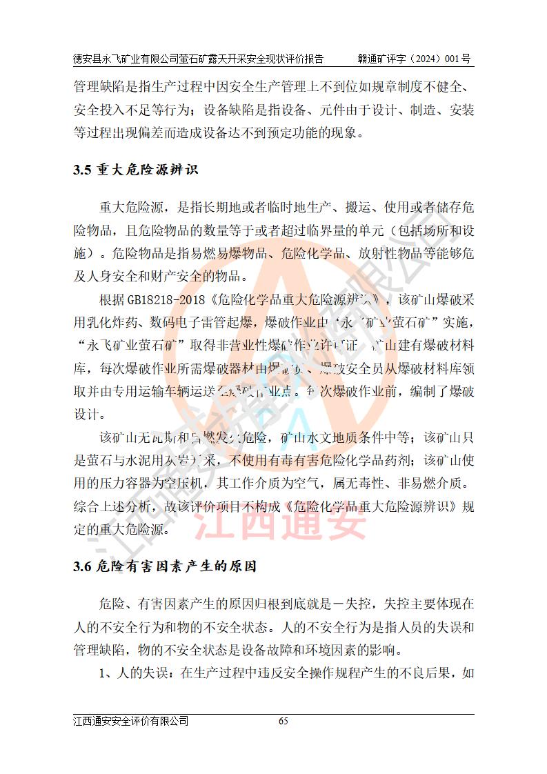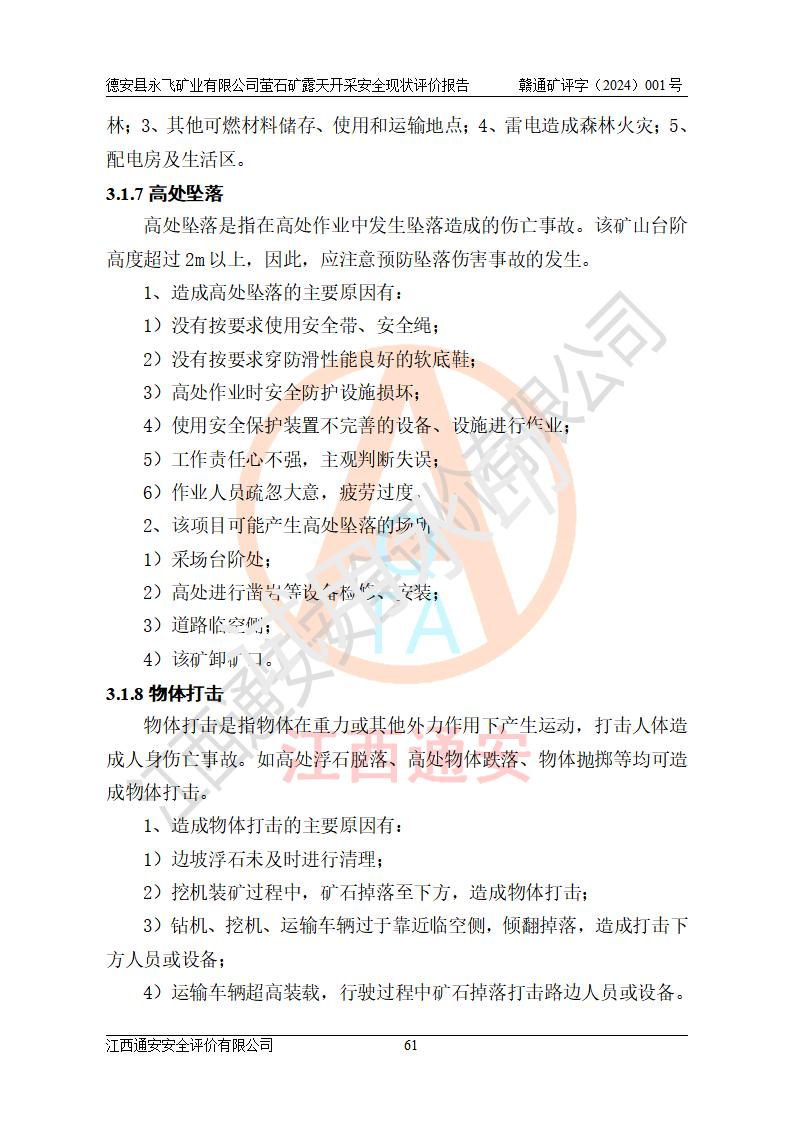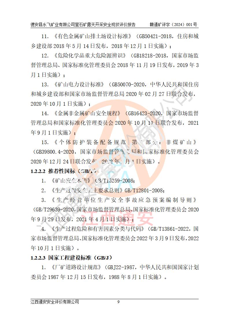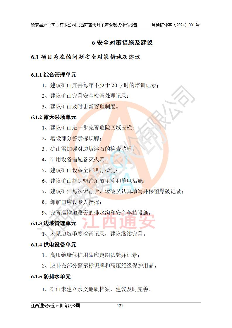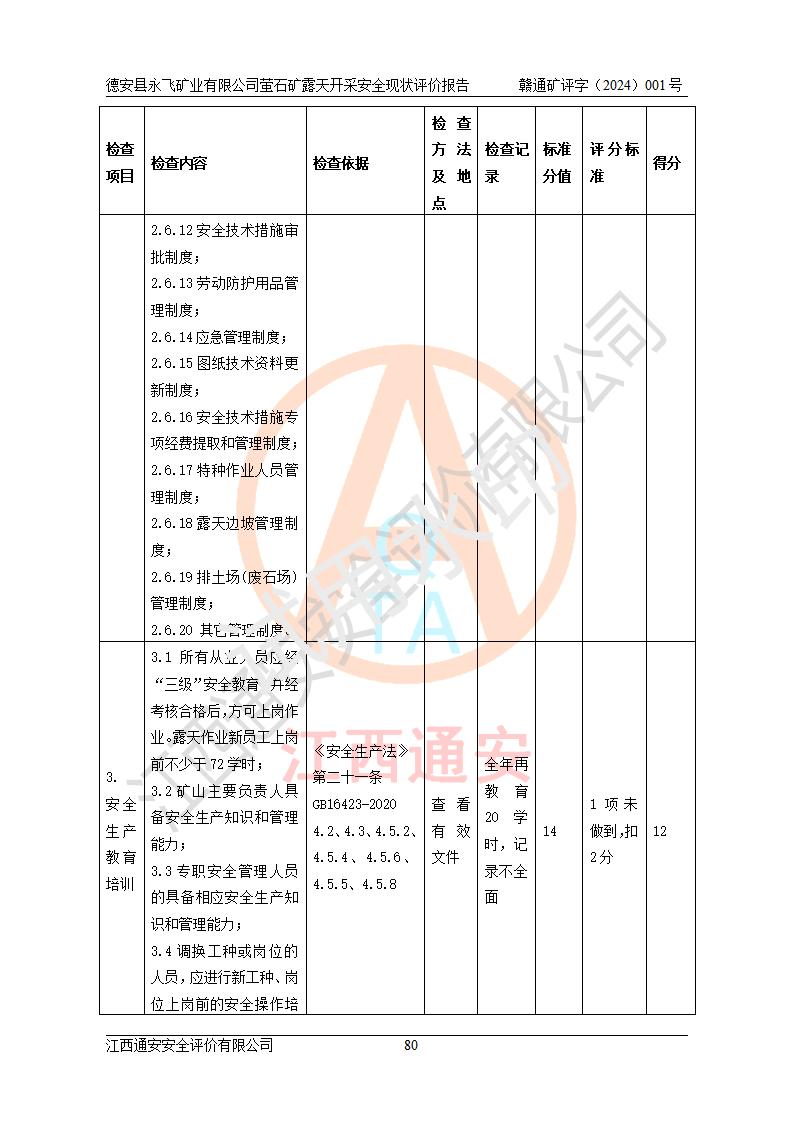 報告名稱 | 德安縣永飛礦業(yè)有限公司螢石礦露天開采安全現(xiàn)狀評價報告 | |||||