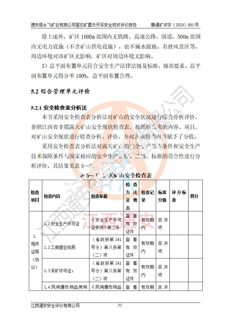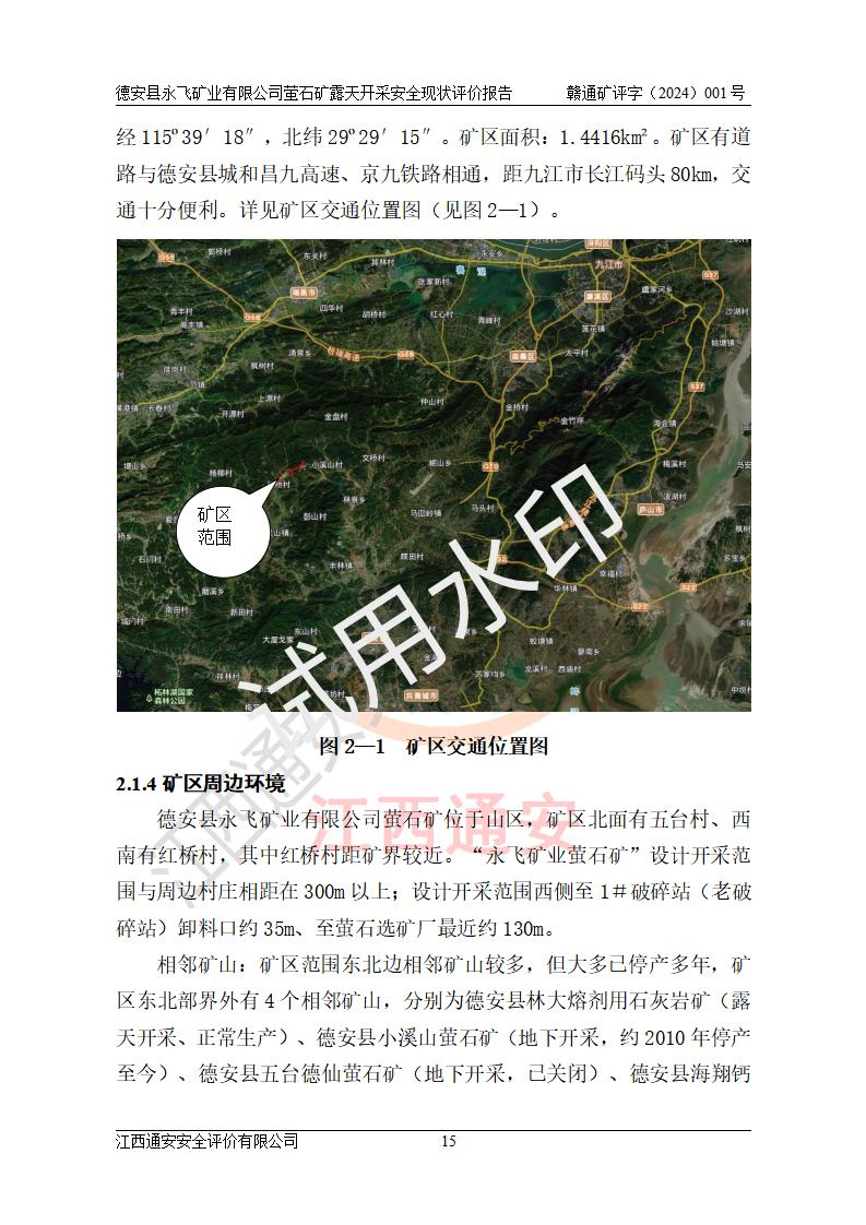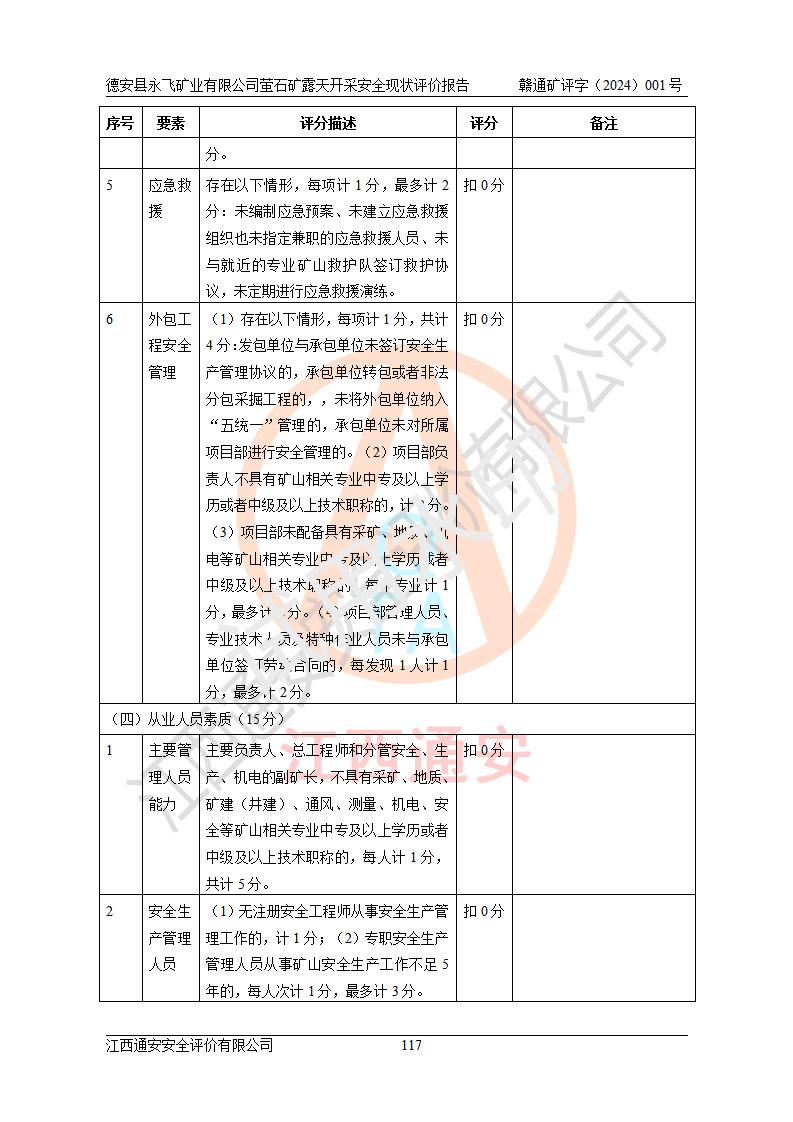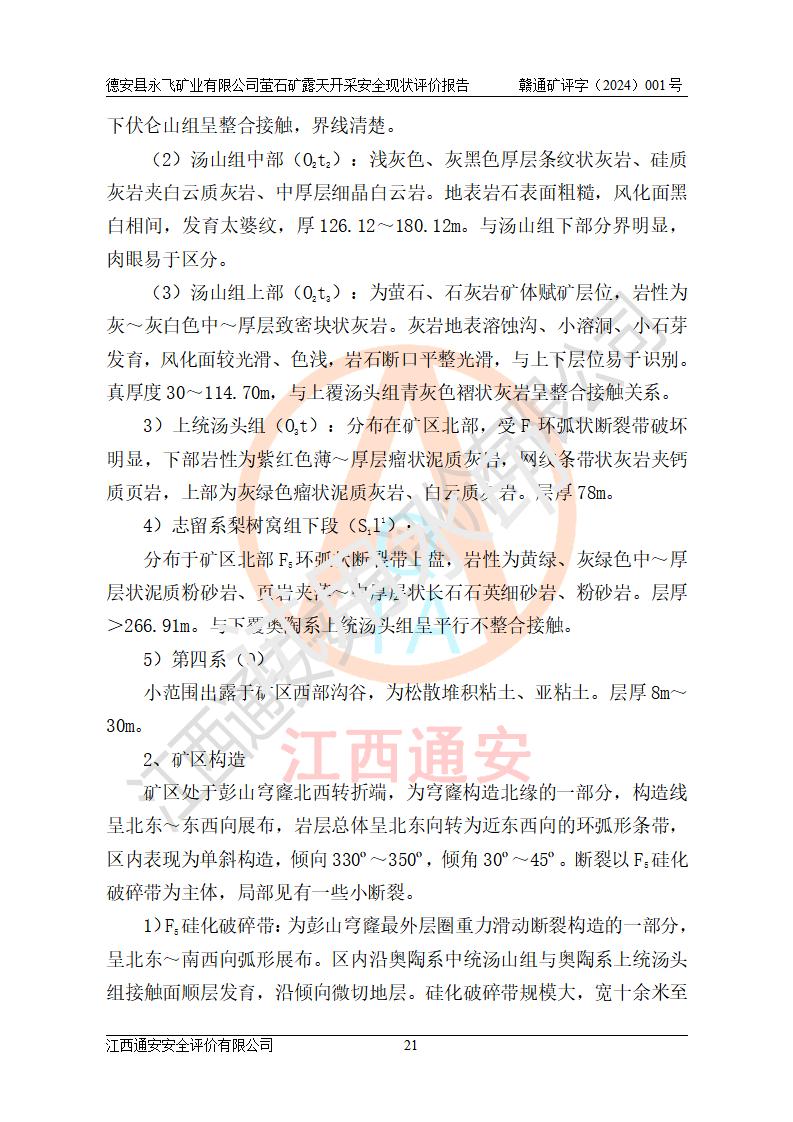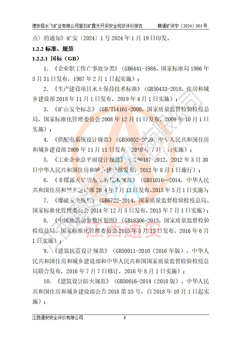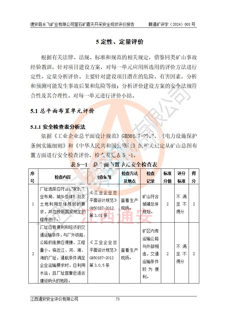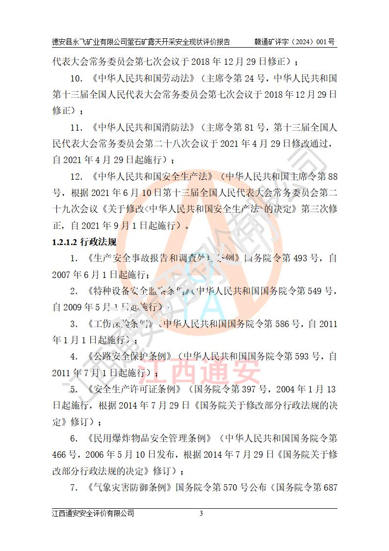 報告名稱 | 德安縣永飛礦業(yè)有限公司螢石礦露天開采安全現(xiàn)狀評價報告 | |||||