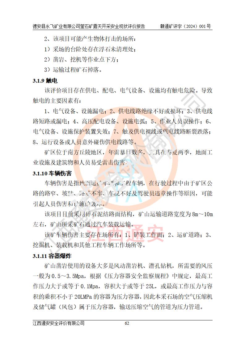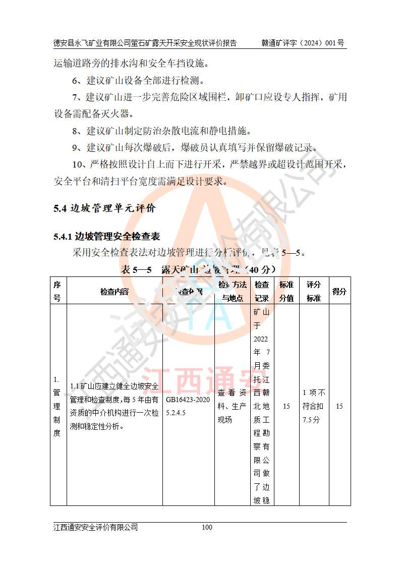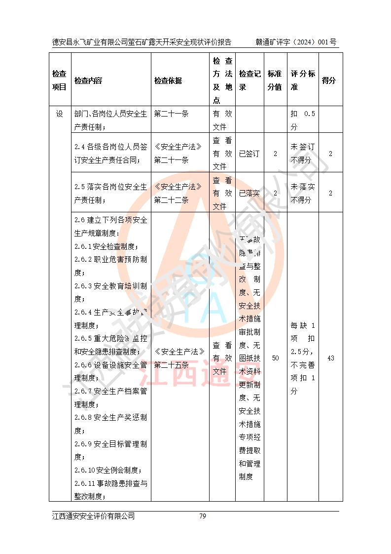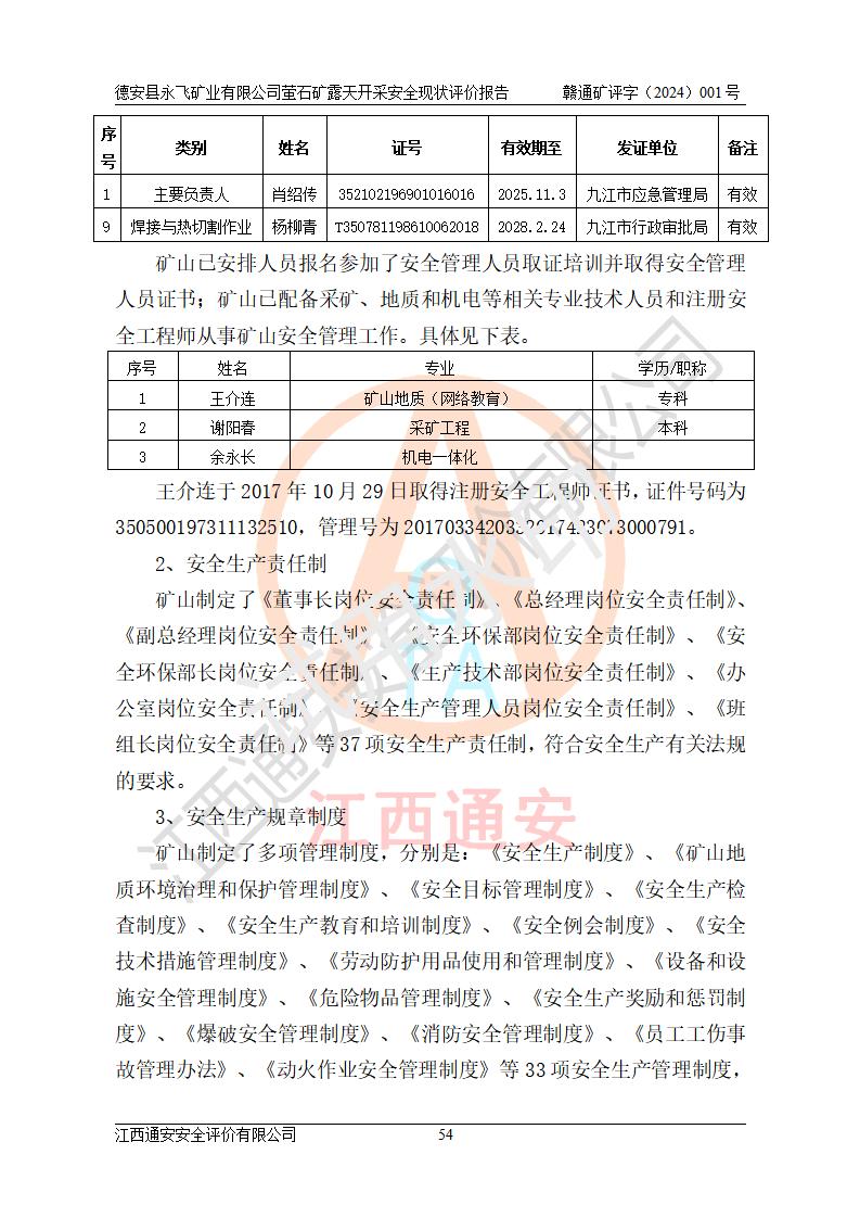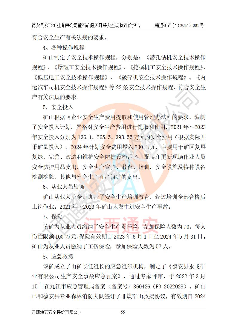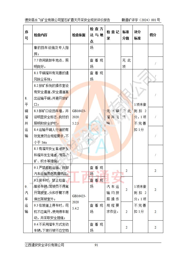 報告名稱 | 德安縣永飛礦業(yè)有限公司螢石礦露天開采安全現(xiàn)狀評價報告 | |||||