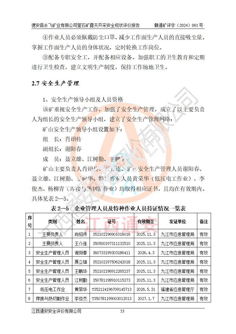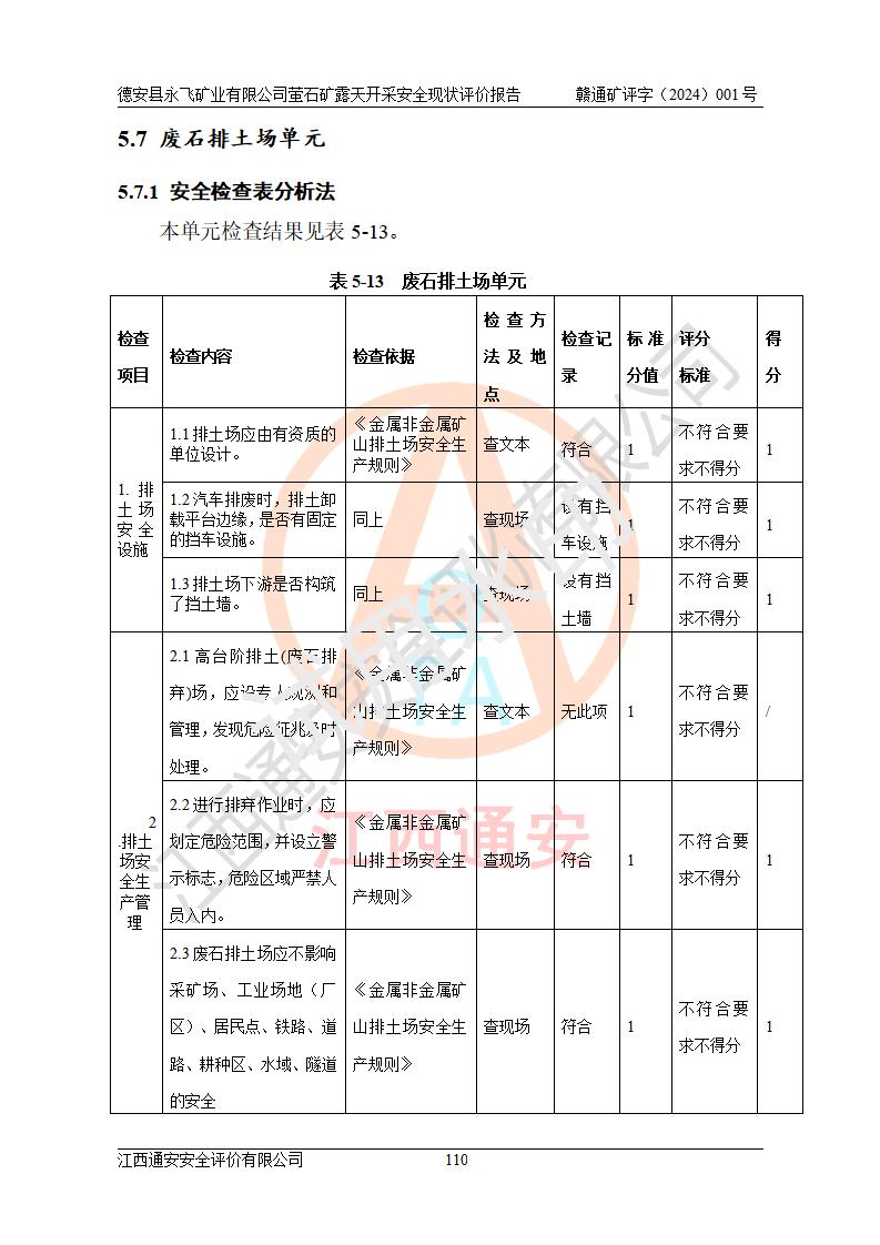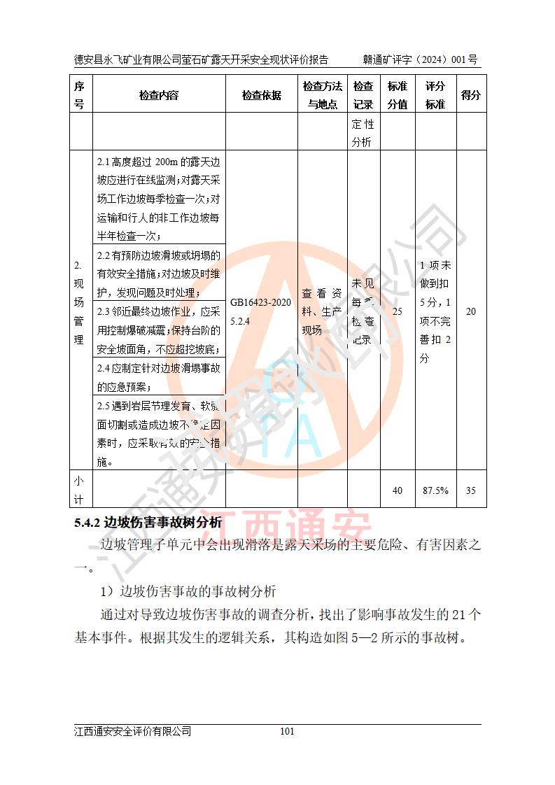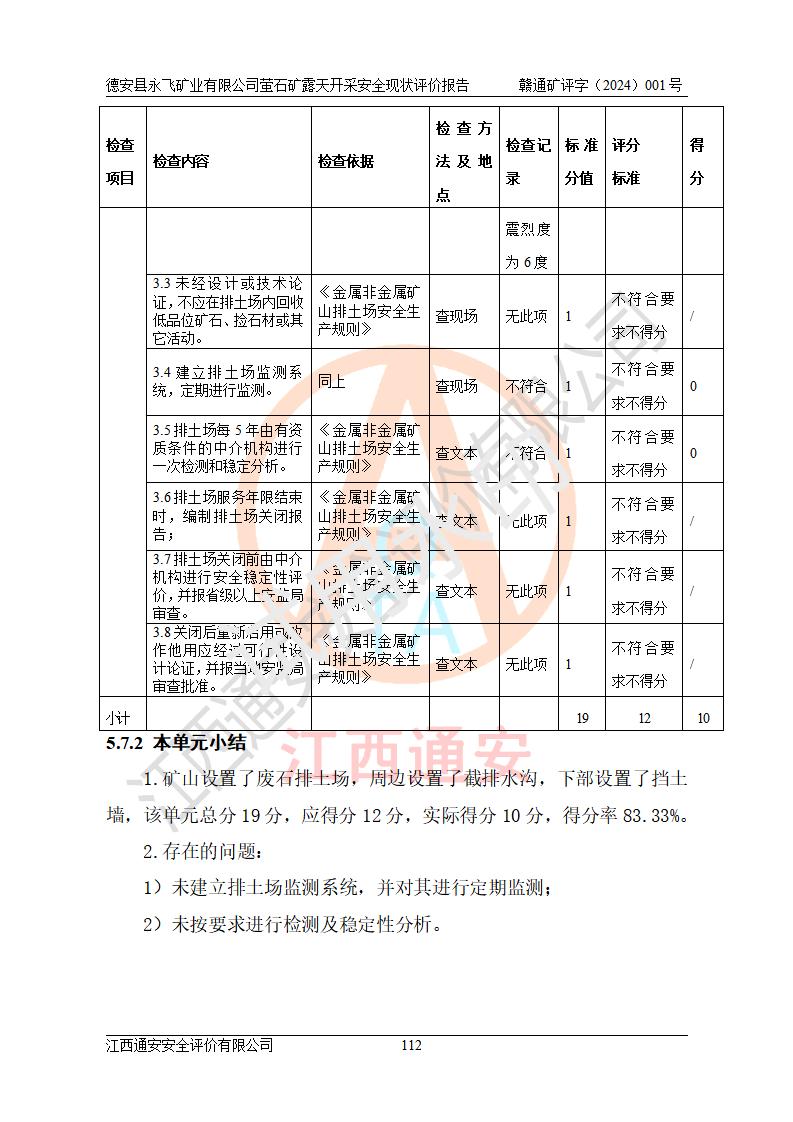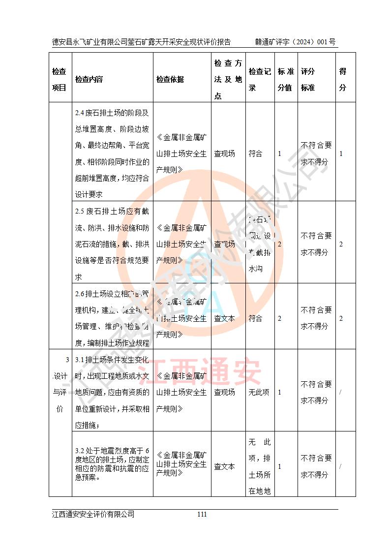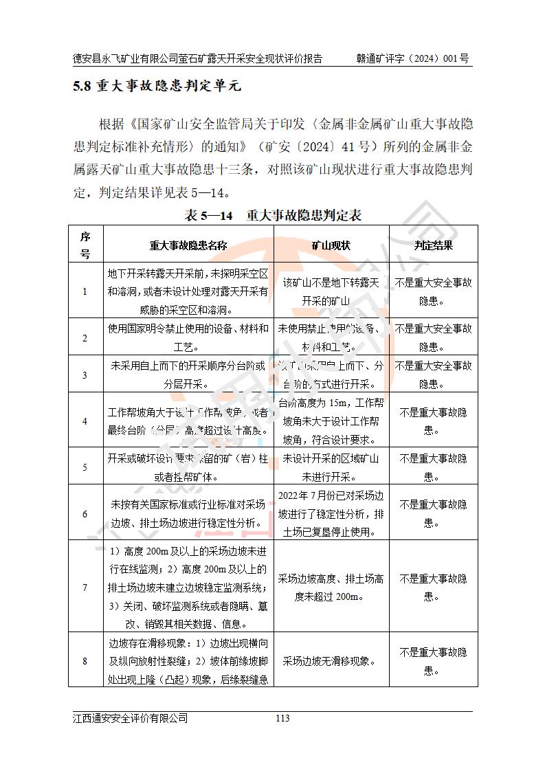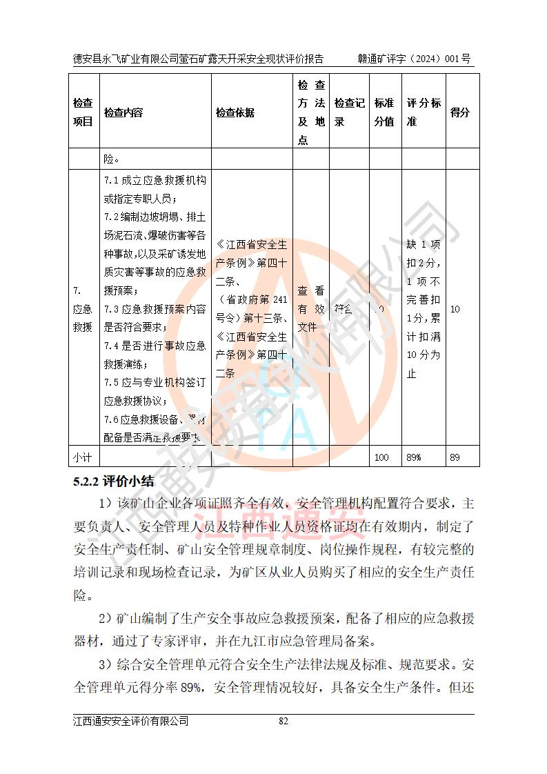 報告名稱 | 德安縣永飛礦業(yè)有限公司螢石礦露天開采安全現(xiàn)狀評價報告 | |||||