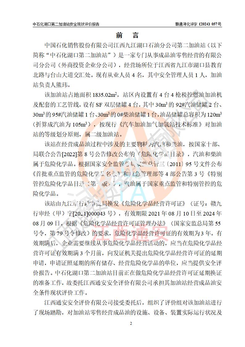 評(píng)價(jià)報(bào)告名稱 | 中國(guó)石化銷售股份有限公司江西九江湖口石油分公司第二加油站安全現(xiàn)狀評(píng)價(jià)報(bào)告 | |||