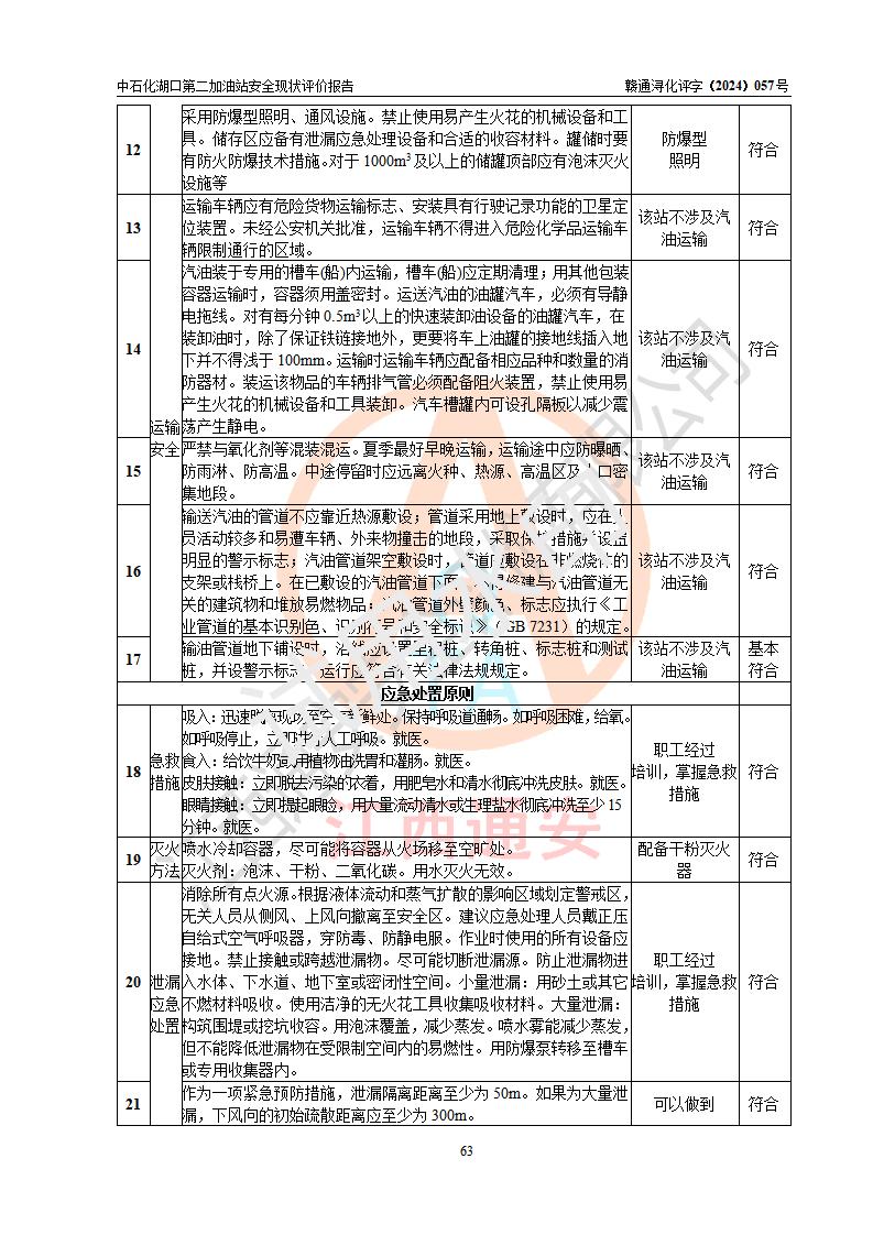 評(píng)價(jià)結(jié)論 | 中國(guó)石化銷售股份有限公司江西九江湖口石油分公司第二加油站涉及的安全條件、安全經(jīng)營(yíng)條件、安全生產(chǎn)管理符合《危險(xiǎn)化學(xué)品經(jīng)營(yíng)許可證管理辦法》、《汽車加油加氣加氫站技術(shù)標(biāo)準(zhǔn)》等**有關(guān)法規(guī)、標(biāo)準(zhǔn)、規(guī)范要求,能滿足危險(xiǎn)化學(xué)品經(jīng)營(yíng)安全條件。 | |||