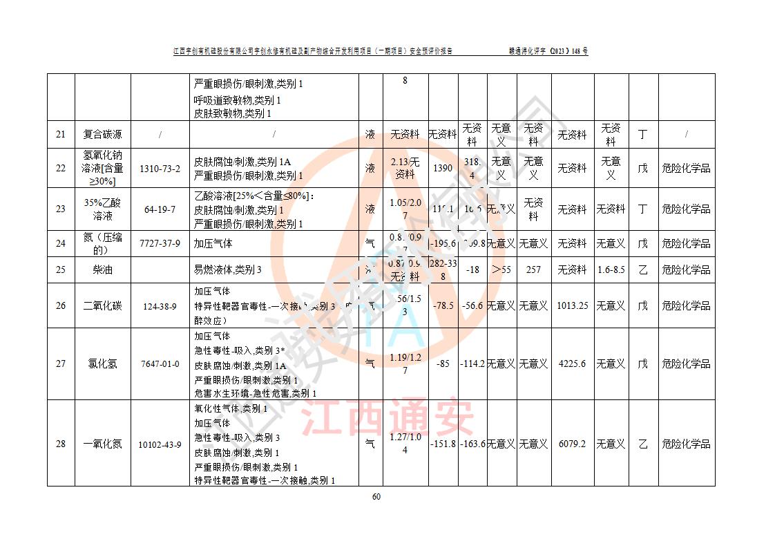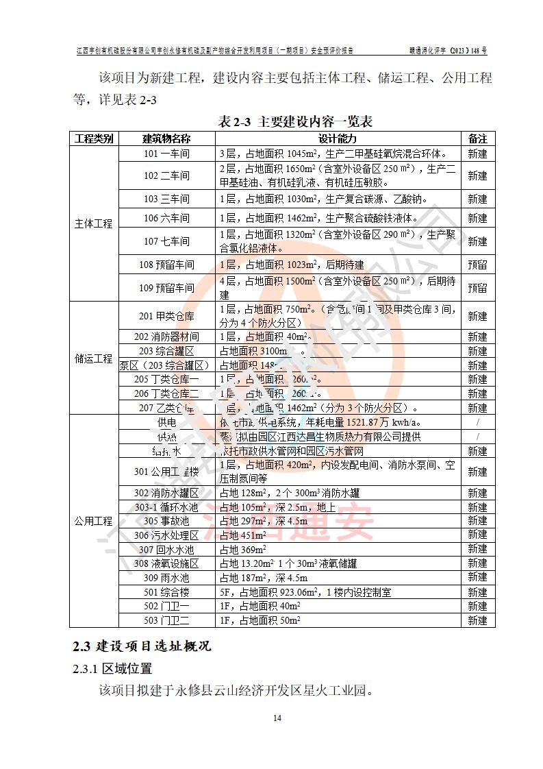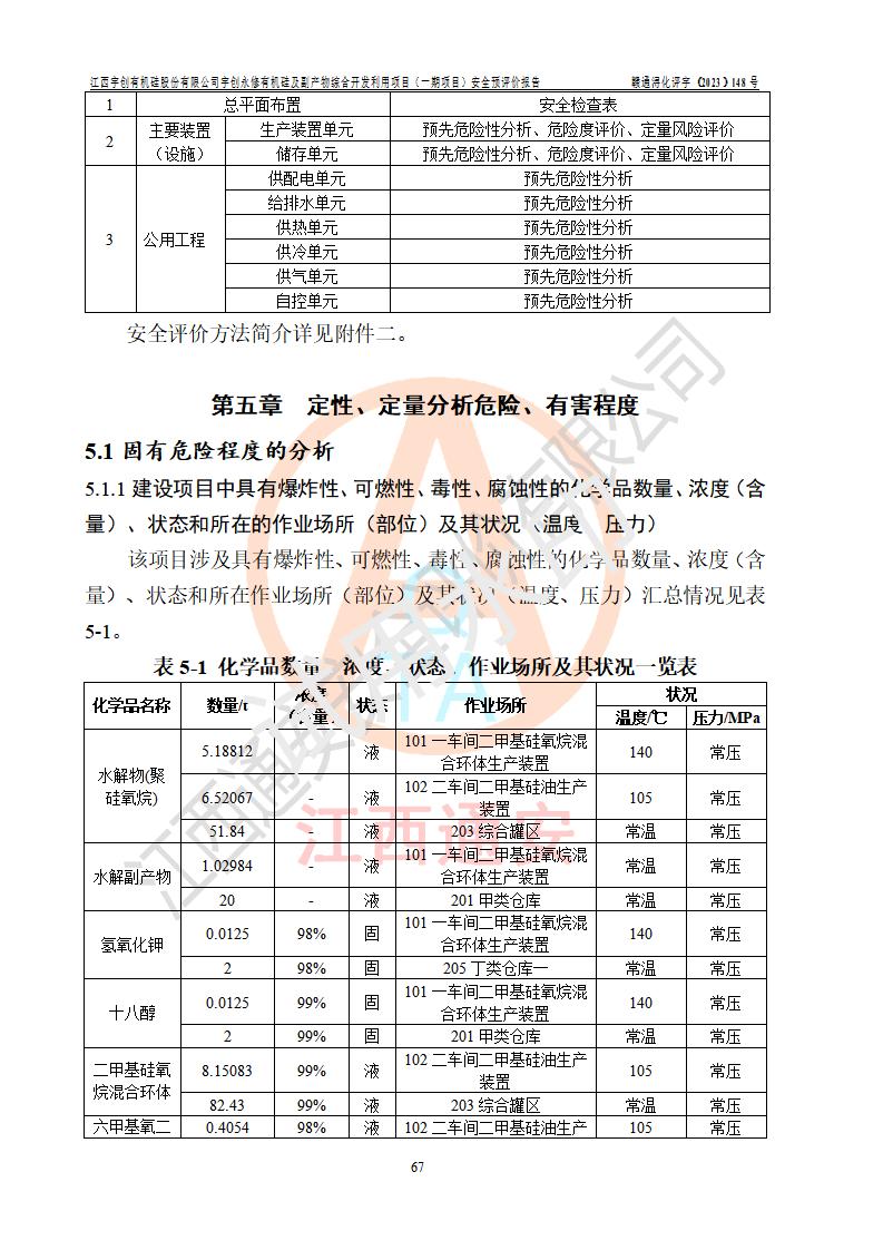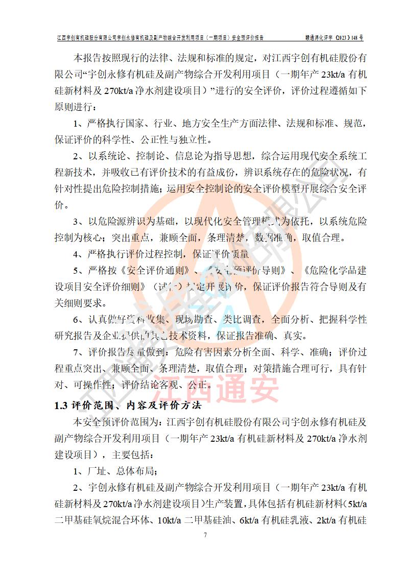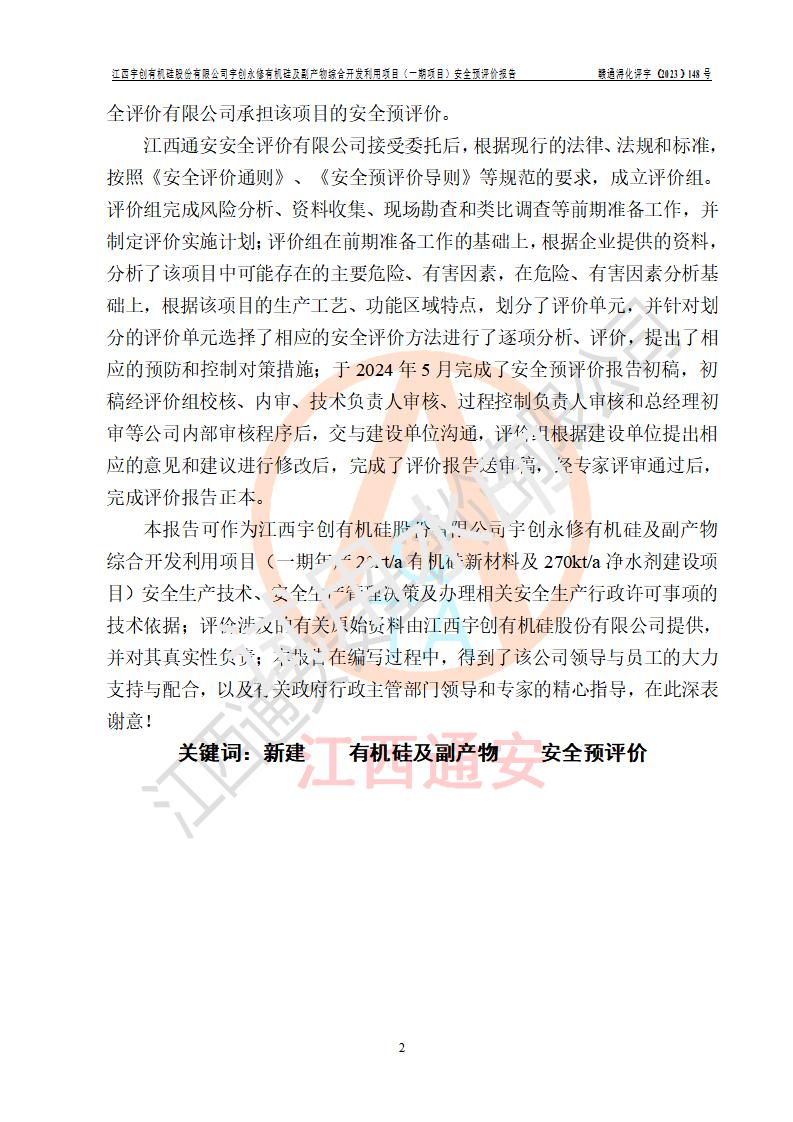 評(píng)價(jià)報(bào)告名稱 | 江西宇創(chuàng)有機(jī)硅股份有限公司 宇創(chuàng)永修有機(jī)硅及副產(chǎn)物綜合開發(fā)利用一期項(xiàng)目安全預(yù)評(píng)價(jià) | |||||
