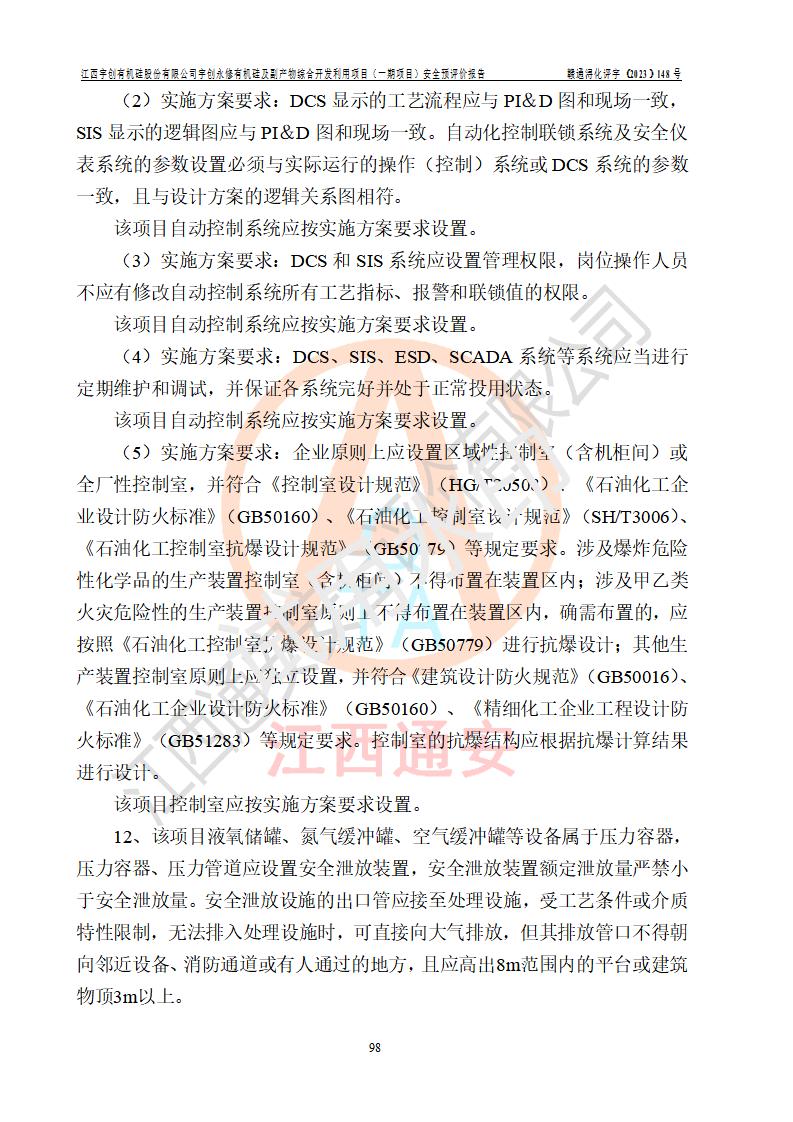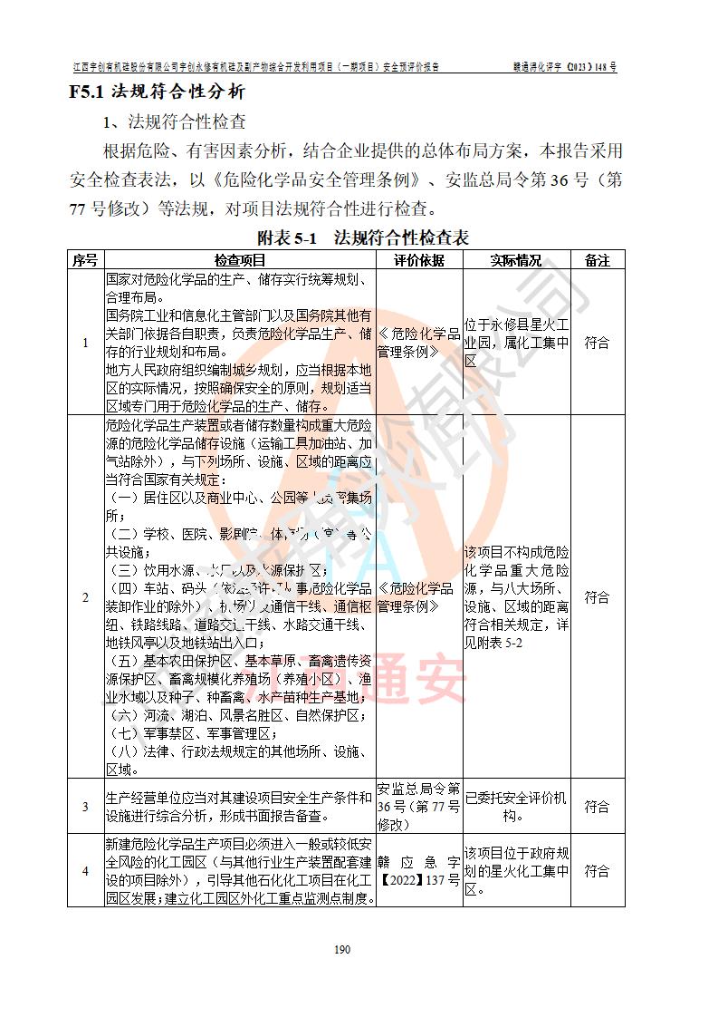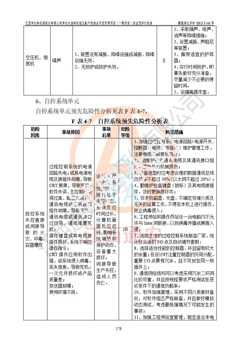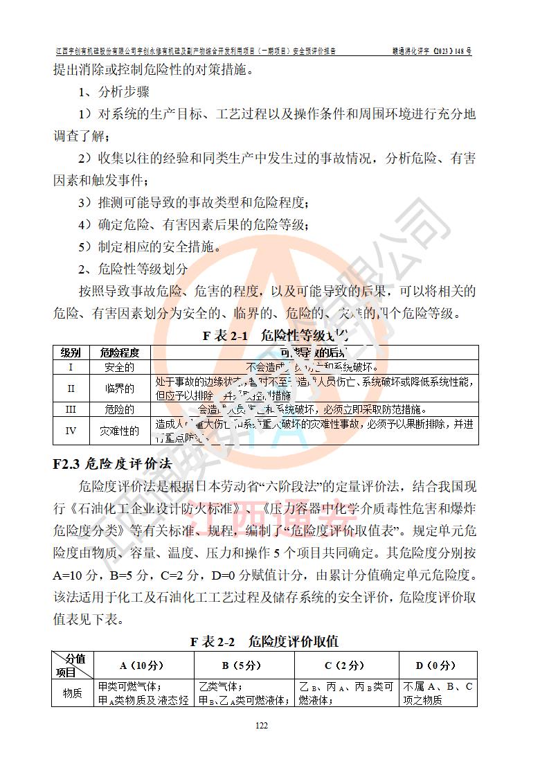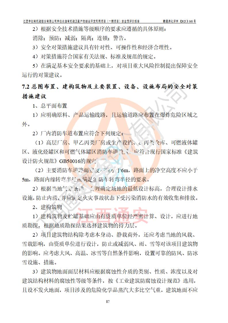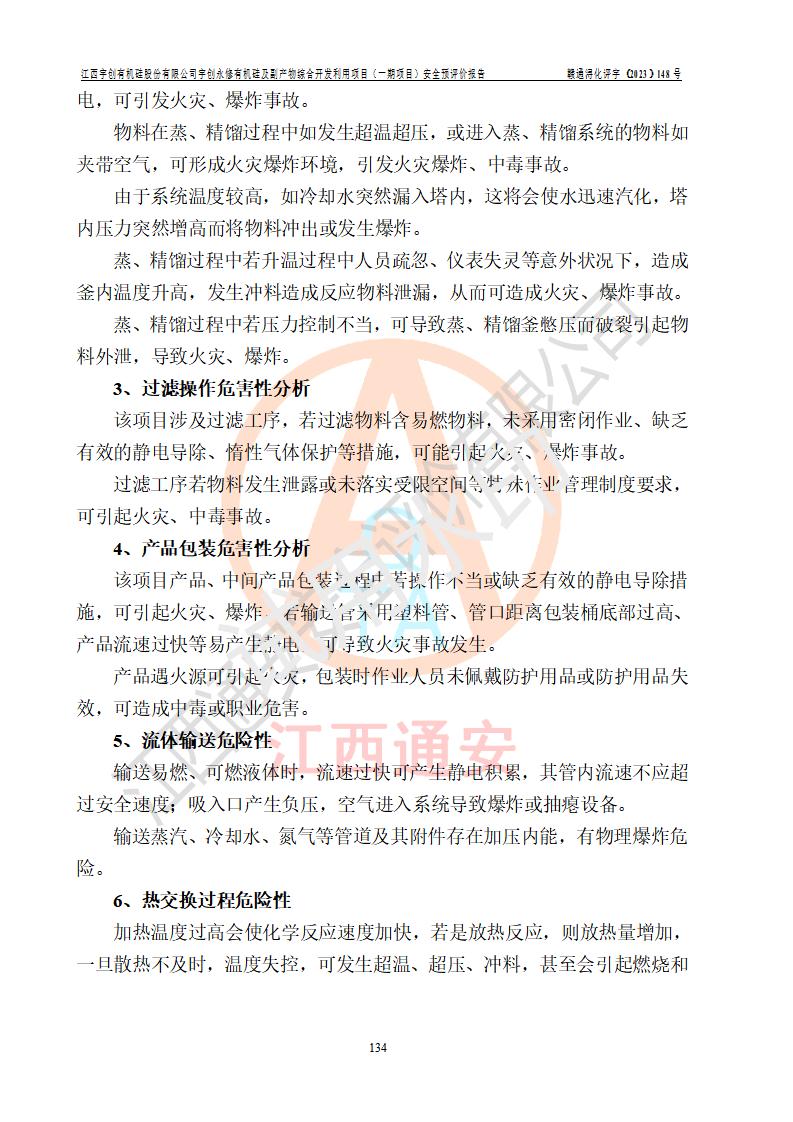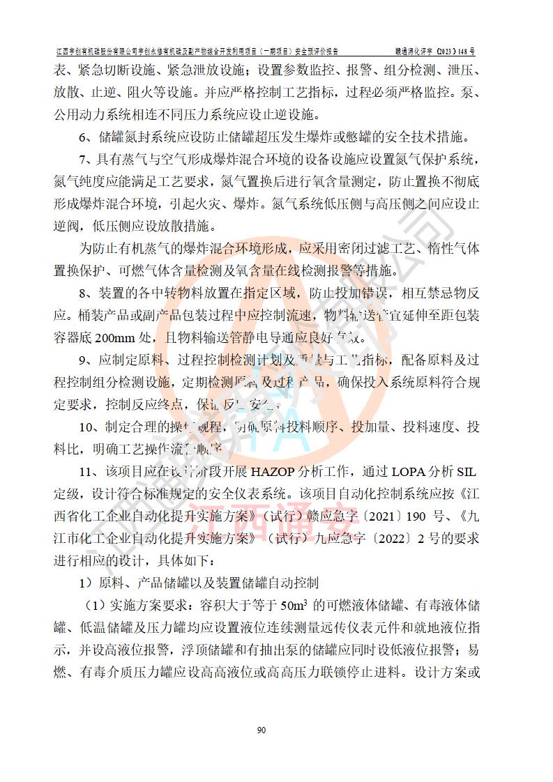 評(píng)價(jià)結(jié)論 | 江西宇創(chuàng)有機(jī)硅股份有限公司宇創(chuàng)永修有機(jī)硅及副產(chǎn)物綜合開發(fā)利用項(xiàng)目(一期年產(chǎn)23kt/a有機(jī)硅新材料及270kt/a凈水劑建設(shè)項(xiàng)目)的選址、總體布局、周邊環(huán)境、自然環(huán)境能滿足建設(shè)安全條件;項(xiàng)目選擇的工藝過程及設(shè)備設(shè)施的安全可靠性能達(dá)到**法規(guī)、標(biāo)準(zhǔn)規(guī)定要求;項(xiàng)目存在的危險(xiǎn)有害因素可控,在落實(shí)本評(píng)價(jià)報(bào)告提出的有關(guān)安全對(duì)策措施后,其危險(xiǎn)有害程度能達(dá)到可以接受的程度,項(xiàng)目建設(shè)能夠?qū)崿F(xiàn)安全運(yùn)行的目標(biāo)。 | |||||