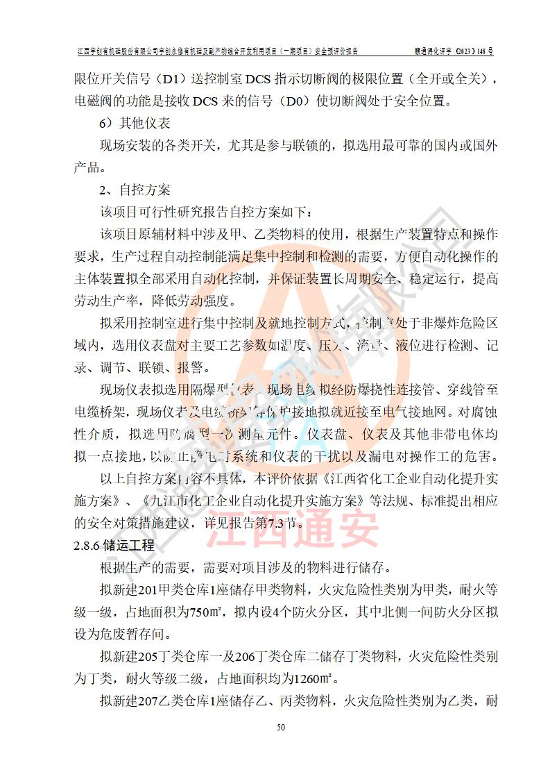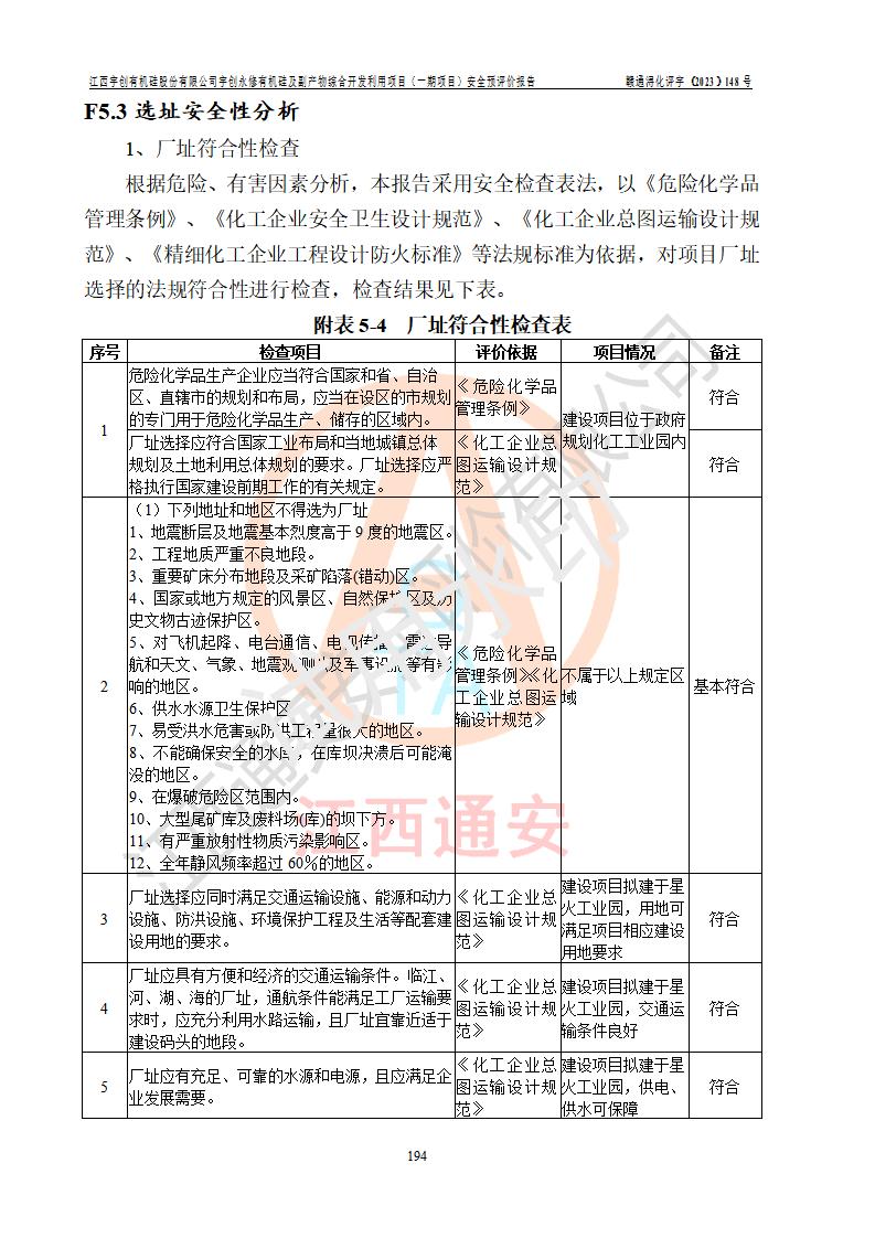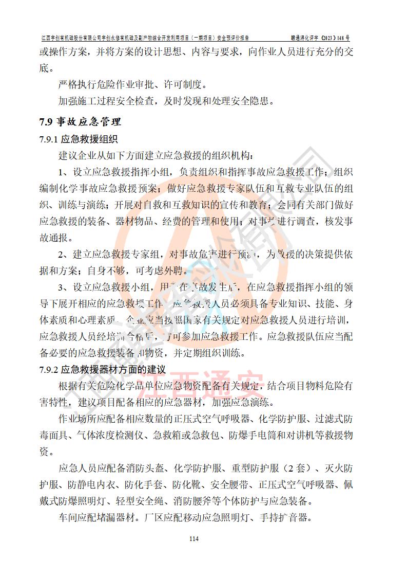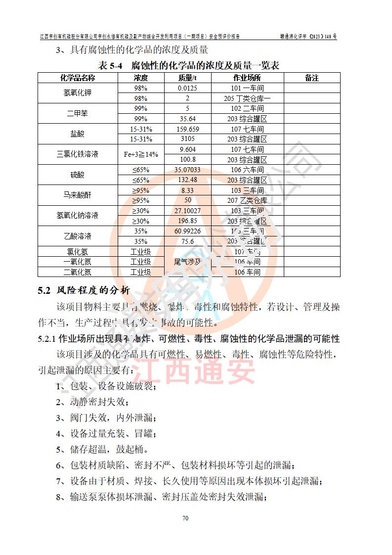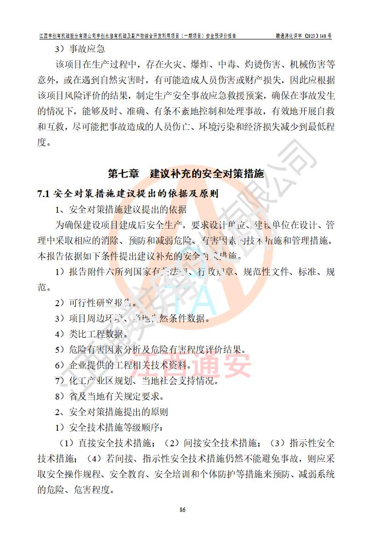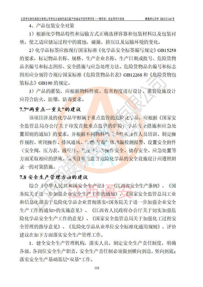 評(píng)價(jià)結(jié)論 | 江西宇創(chuàng)有機(jī)硅股份有限公司宇創(chuàng)永修有機(jī)硅及副產(chǎn)物綜合開發(fā)利用項(xiàng)目(一期年產(chǎn)23kt/a有機(jī)硅新材料及270kt/a凈水劑建設(shè)項(xiàng)目)的選址、總體布局、周邊環(huán)境、自然環(huán)境能滿足建設(shè)安全條件;項(xiàng)目選擇的工藝過程及設(shè)備設(shè)施的安全可靠性能達(dá)到**法規(guī)、標(biāo)準(zhǔn)規(guī)定要求;項(xiàng)目存在的危險(xiǎn)有害因素可控,在落實(shí)本評(píng)價(jià)報(bào)告提出的有關(guān)安全對(duì)策措施后,其危險(xiǎn)有害程度能達(dá)到可以接受的程度,項(xiàng)目建設(shè)能夠?qū)崿F(xiàn)安全運(yùn)行的目標(biāo)。 | |||||