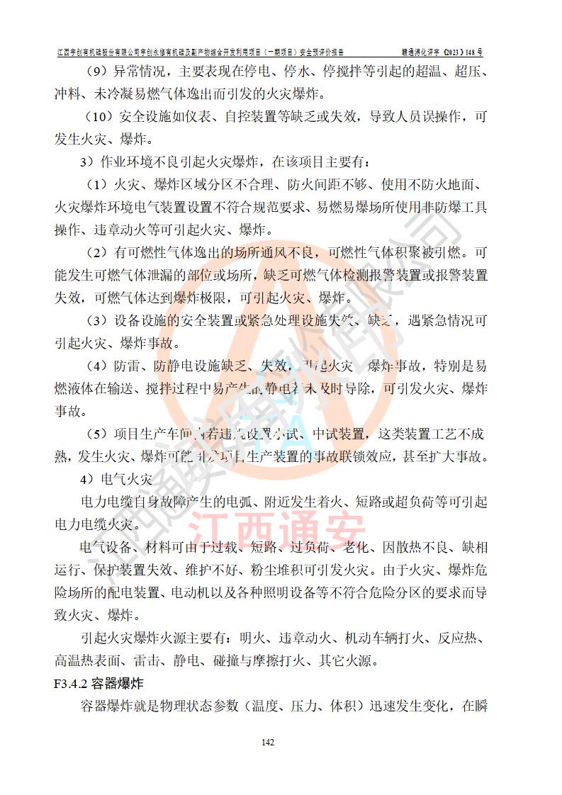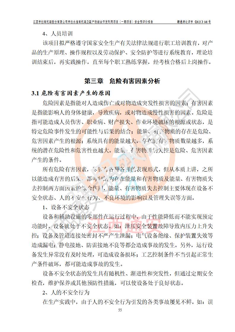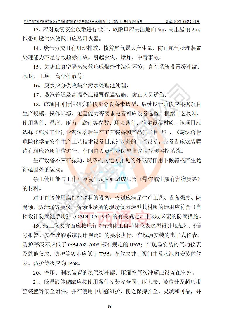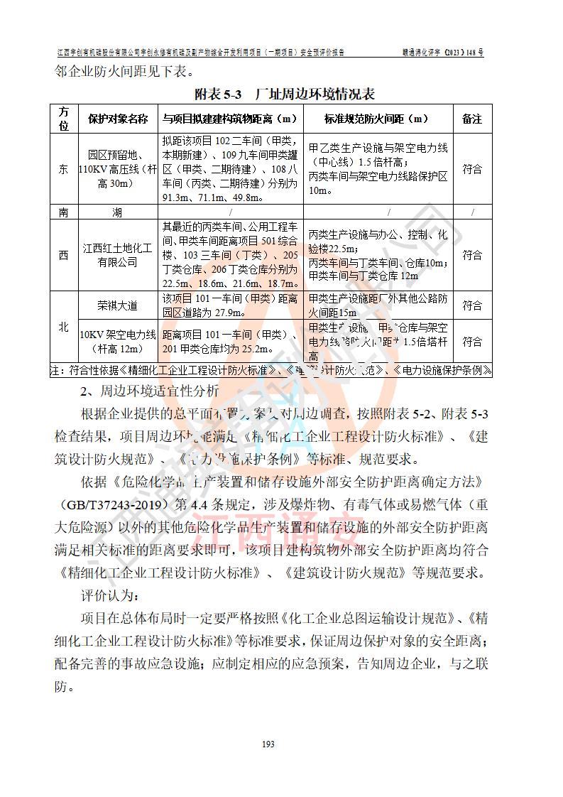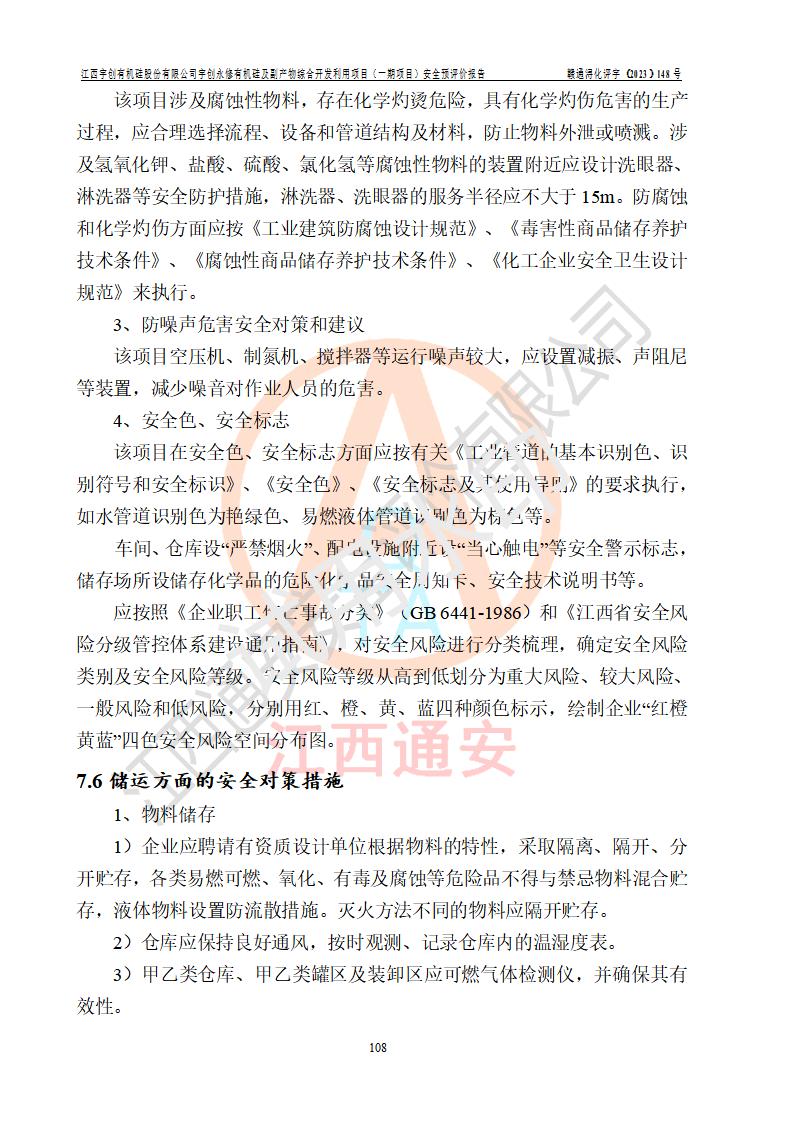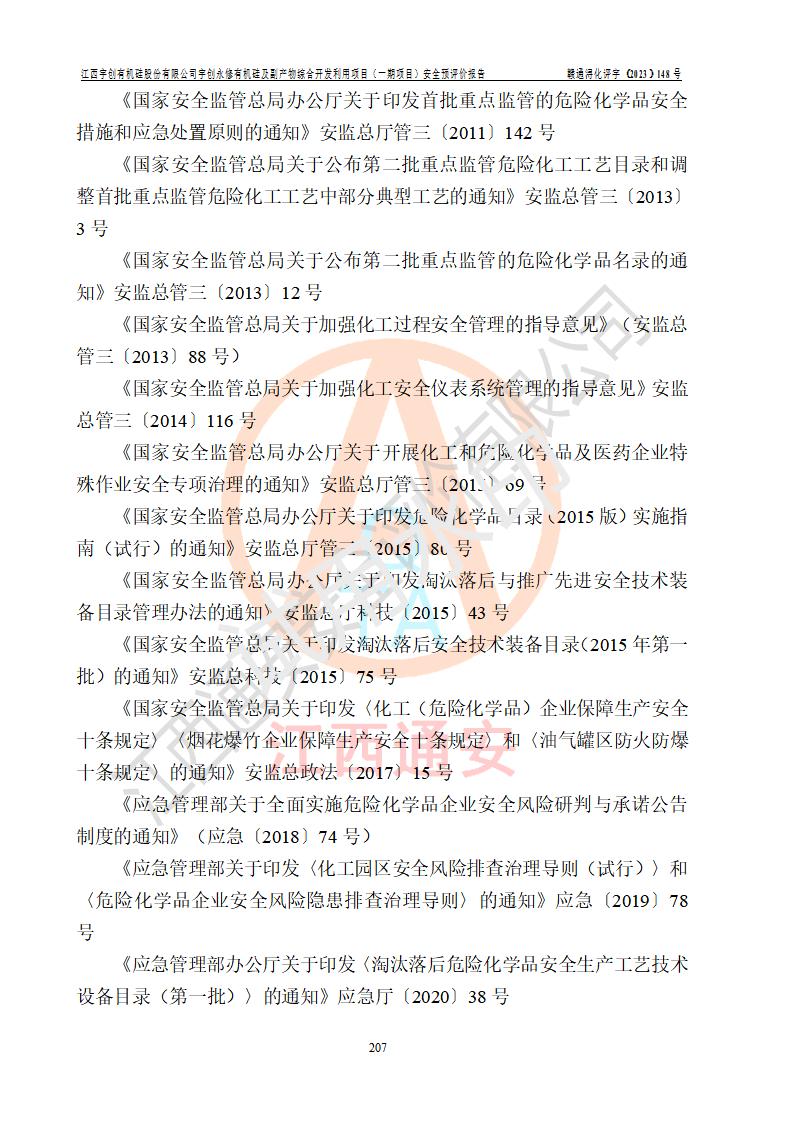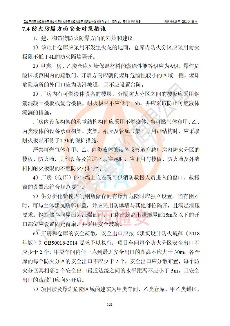 評(píng)價(jià)結(jié)論 | 江西宇創(chuàng)有機(jī)硅股份有限公司宇創(chuàng)永修有機(jī)硅及副產(chǎn)物綜合開發(fā)利用項(xiàng)目(一期年產(chǎn)23kt/a有機(jī)硅新材料及270kt/a凈水劑建設(shè)項(xiàng)目)的選址、總體布局、周邊環(huán)境、自然環(huán)境能滿足建設(shè)安全條件;項(xiàng)目選擇的工藝過程及設(shè)備設(shè)施的安全可靠性能達(dá)到**法規(guī)、標(biāo)準(zhǔn)規(guī)定要求;項(xiàng)目存在的危險(xiǎn)有害因素可控,在落實(shí)本評(píng)價(jià)報(bào)告提出的有關(guān)安全對(duì)策措施后,其危險(xiǎn)有害程度能達(dá)到可以接受的程度,項(xiàng)目建設(shè)能夠?qū)崿F(xiàn)安全運(yùn)行的目標(biāo)。 | |||||