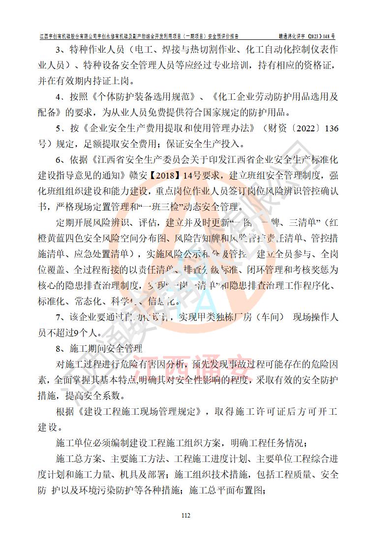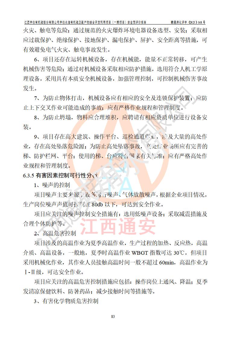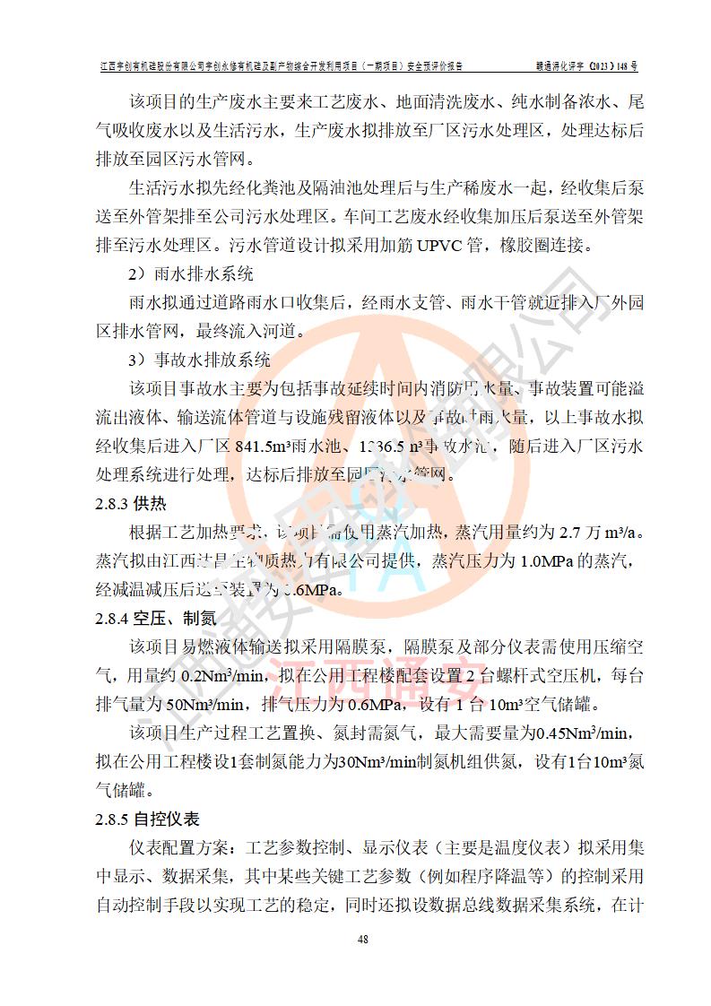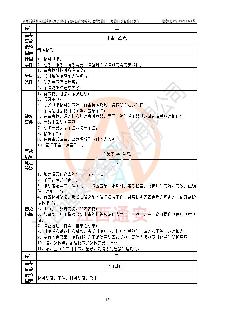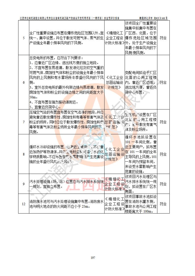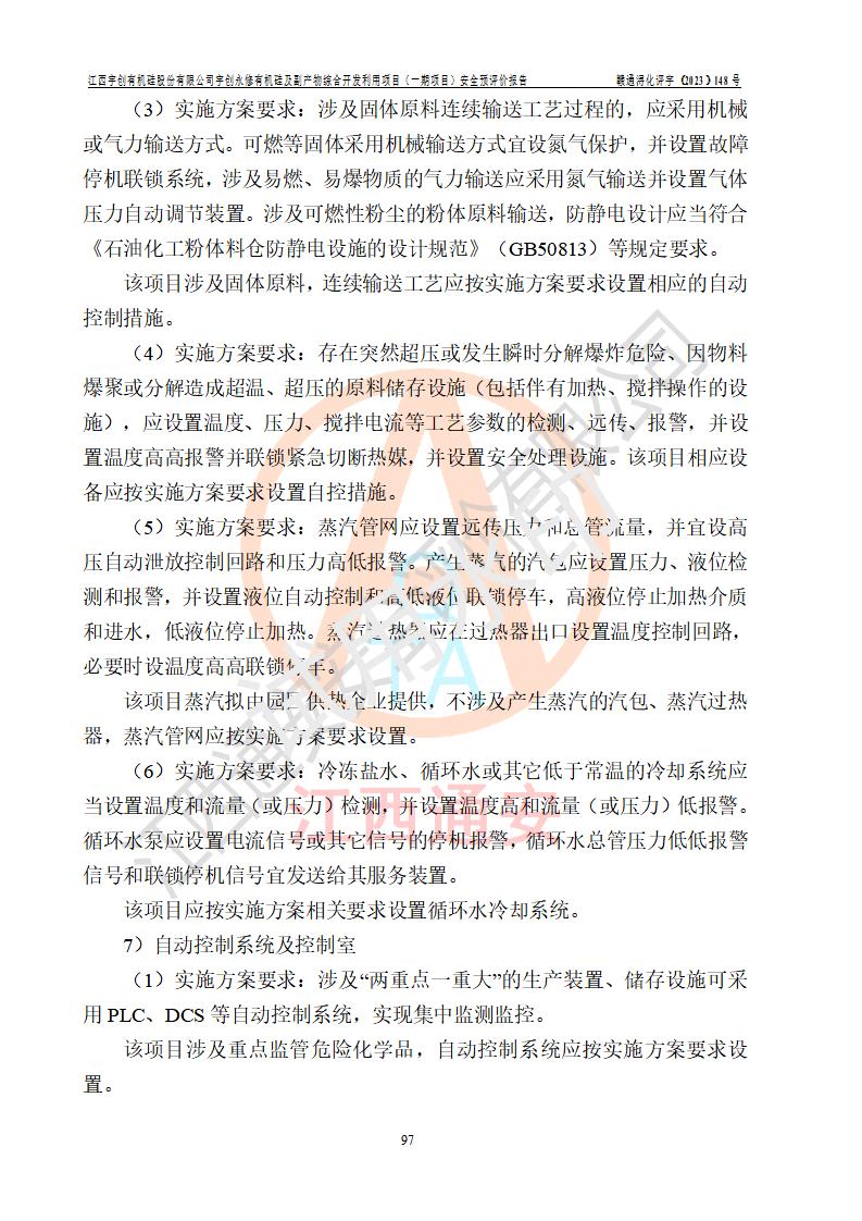 評(píng)價(jià)結(jié)論 | 江西宇創(chuàng)有機(jī)硅股份有限公司宇創(chuàng)永修有機(jī)硅及副產(chǎn)物綜合開發(fā)利用項(xiàng)目(一期年產(chǎn)23kt/a有機(jī)硅新材料及270kt/a凈水劑建設(shè)項(xiàng)目)的選址、總體布局、周邊環(huán)境、自然環(huán)境能滿足建設(shè)安全條件;項(xiàng)目選擇的工藝過程及設(shè)備設(shè)施的安全可靠性能達(dá)到**法規(guī)、標(biāo)準(zhǔn)規(guī)定要求;項(xiàng)目存在的危險(xiǎn)有害因素可控,在落實(shí)本評(píng)價(jià)報(bào)告提出的有關(guān)安全對(duì)策措施后,其危險(xiǎn)有害程度能達(dá)到可以接受的程度,項(xiàng)目建設(shè)能夠?qū)崿F(xiàn)安全運(yùn)行的目標(biāo)。 | |||||