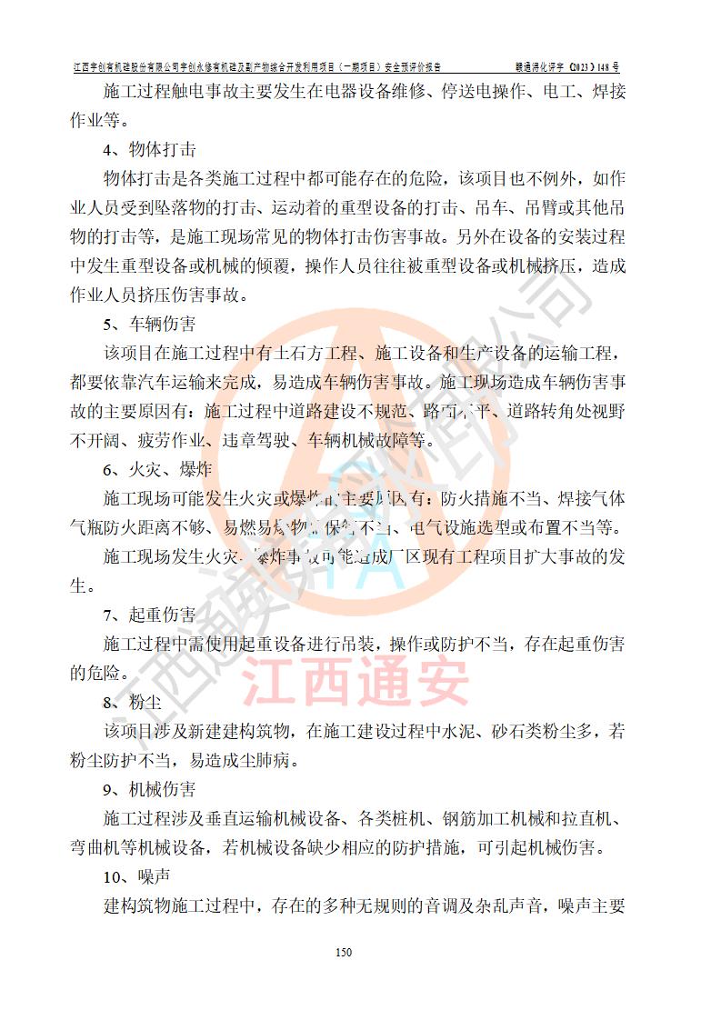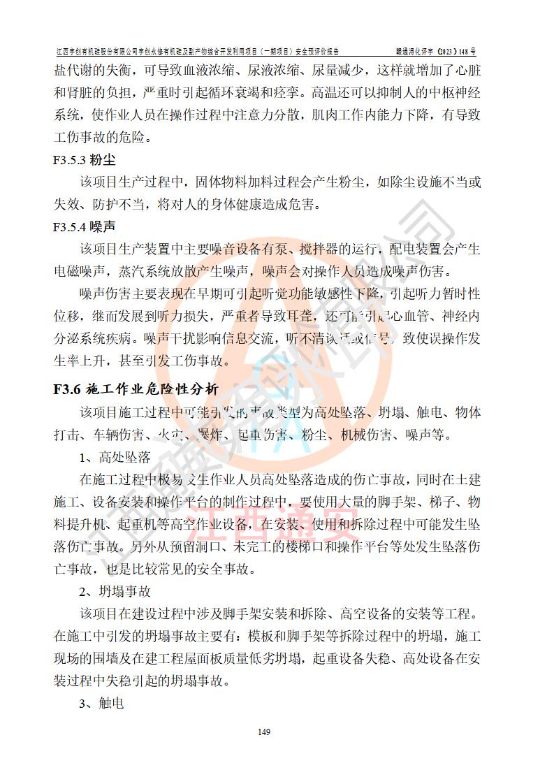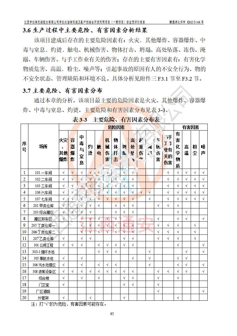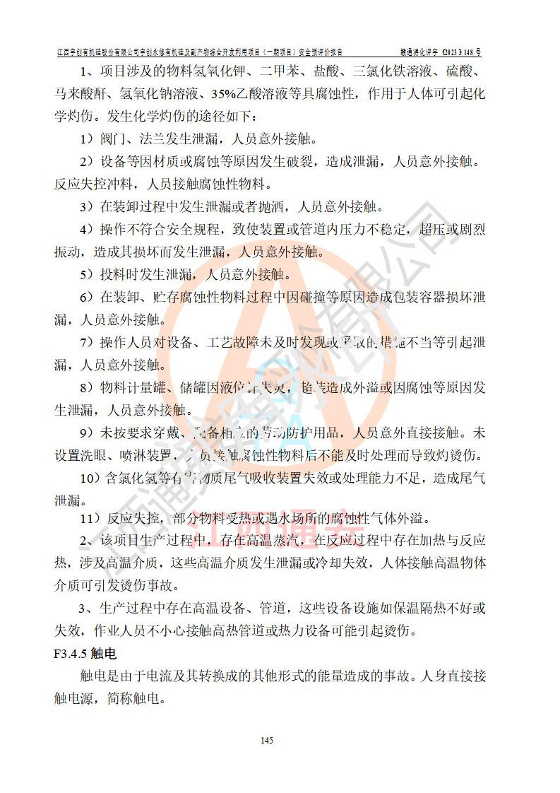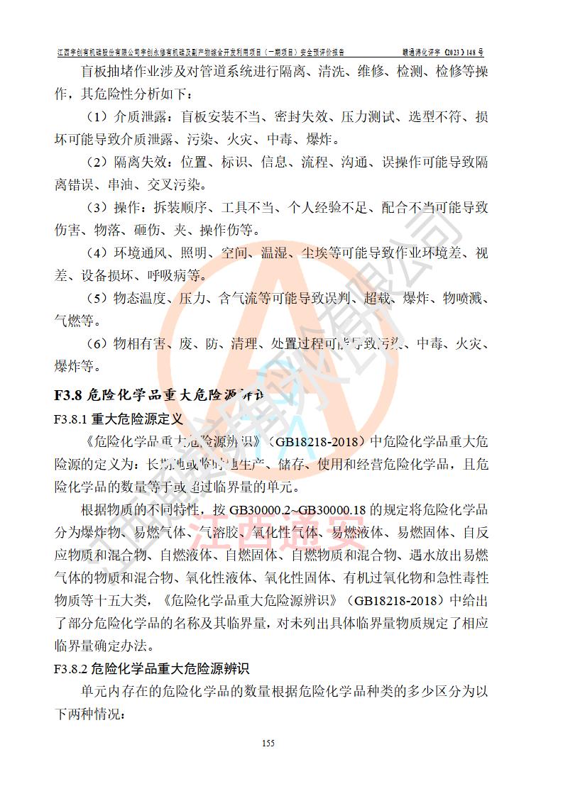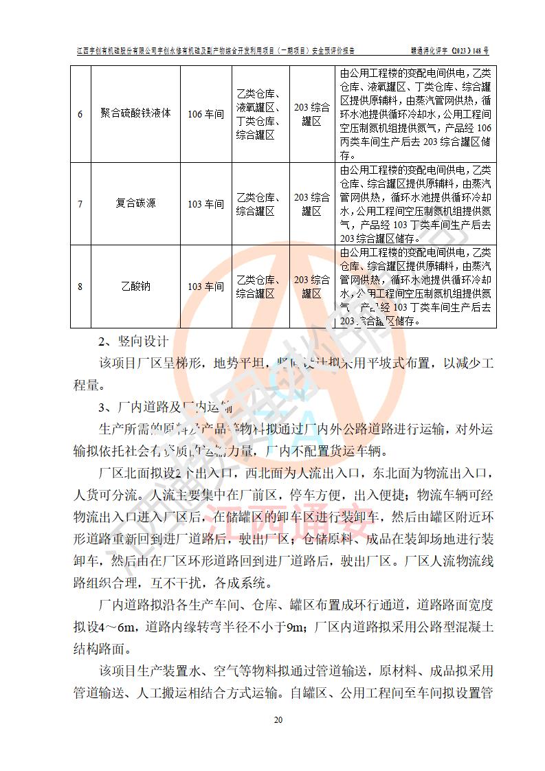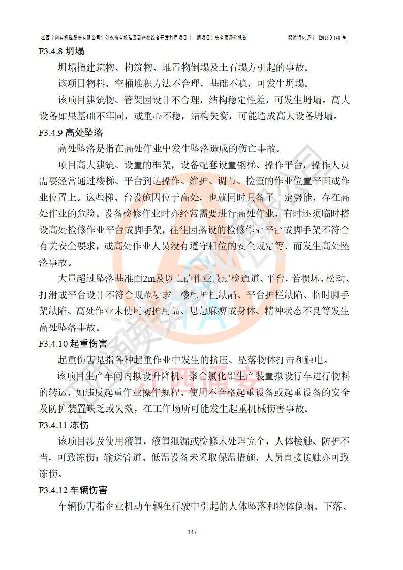 評(píng)價(jià)結(jié)論 | 江西宇創(chuàng)有機(jī)硅股份有限公司宇創(chuàng)永修有機(jī)硅及副產(chǎn)物綜合開發(fā)利用項(xiàng)目(一期年產(chǎn)23kt/a有機(jī)硅新材料及270kt/a凈水劑建設(shè)項(xiàng)目)的選址、總體布局、周邊環(huán)境、自然環(huán)境能滿足建設(shè)安全條件;項(xiàng)目選擇的工藝過程及設(shè)備設(shè)施的安全可靠性能達(dá)到**法規(guī)、標(biāo)準(zhǔn)規(guī)定要求;項(xiàng)目存在的危險(xiǎn)有害因素可控,在落實(shí)本評(píng)價(jià)報(bào)告提出的有關(guān)安全對(duì)策措施后,其危險(xiǎn)有害程度能達(dá)到可以接受的程度,項(xiàng)目建設(shè)能夠?qū)崿F(xiàn)安全運(yùn)行的目標(biāo)。 | |||||