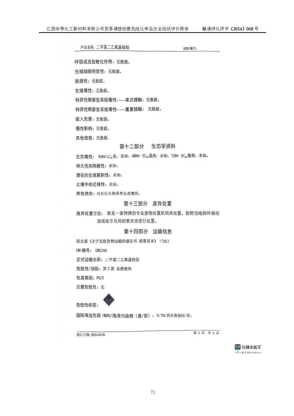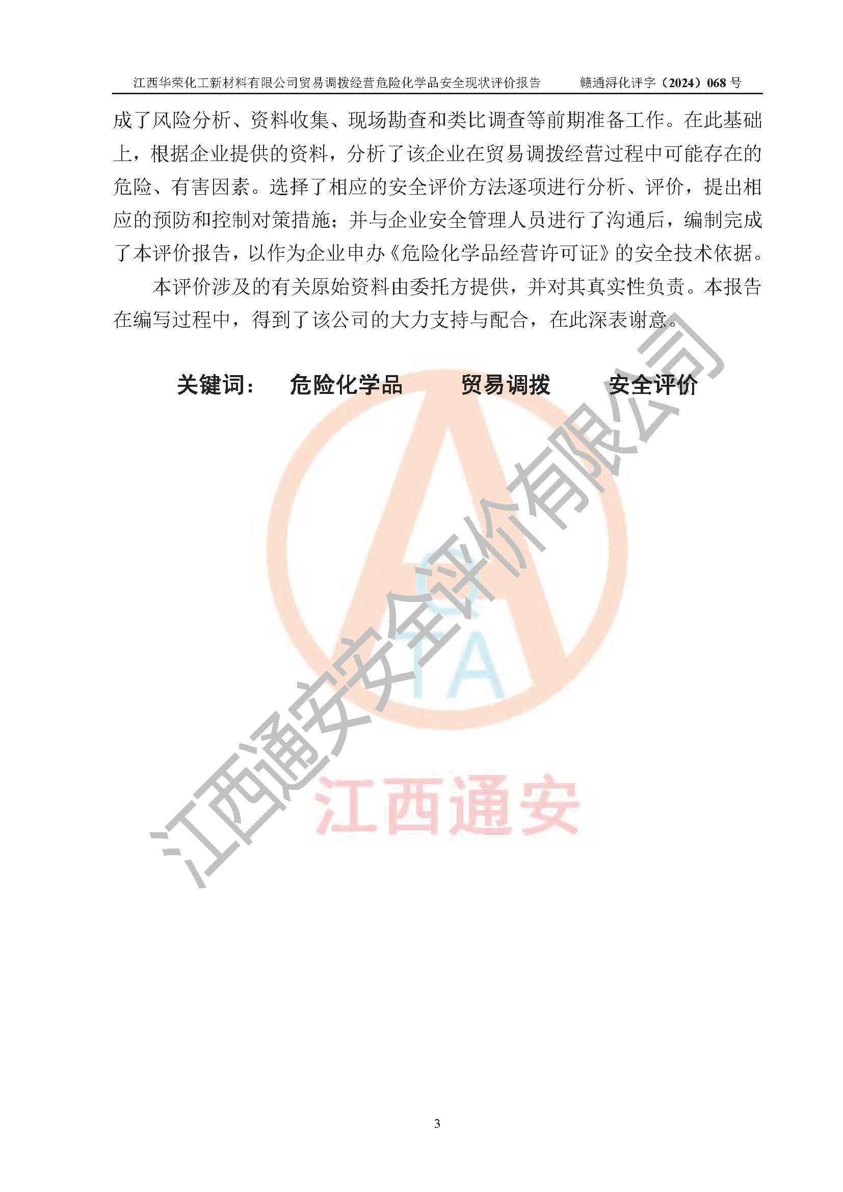 評價報告名稱 | 江西華榮化工新材料有限公司安全現(xiàn)狀評價報告 | ||||||