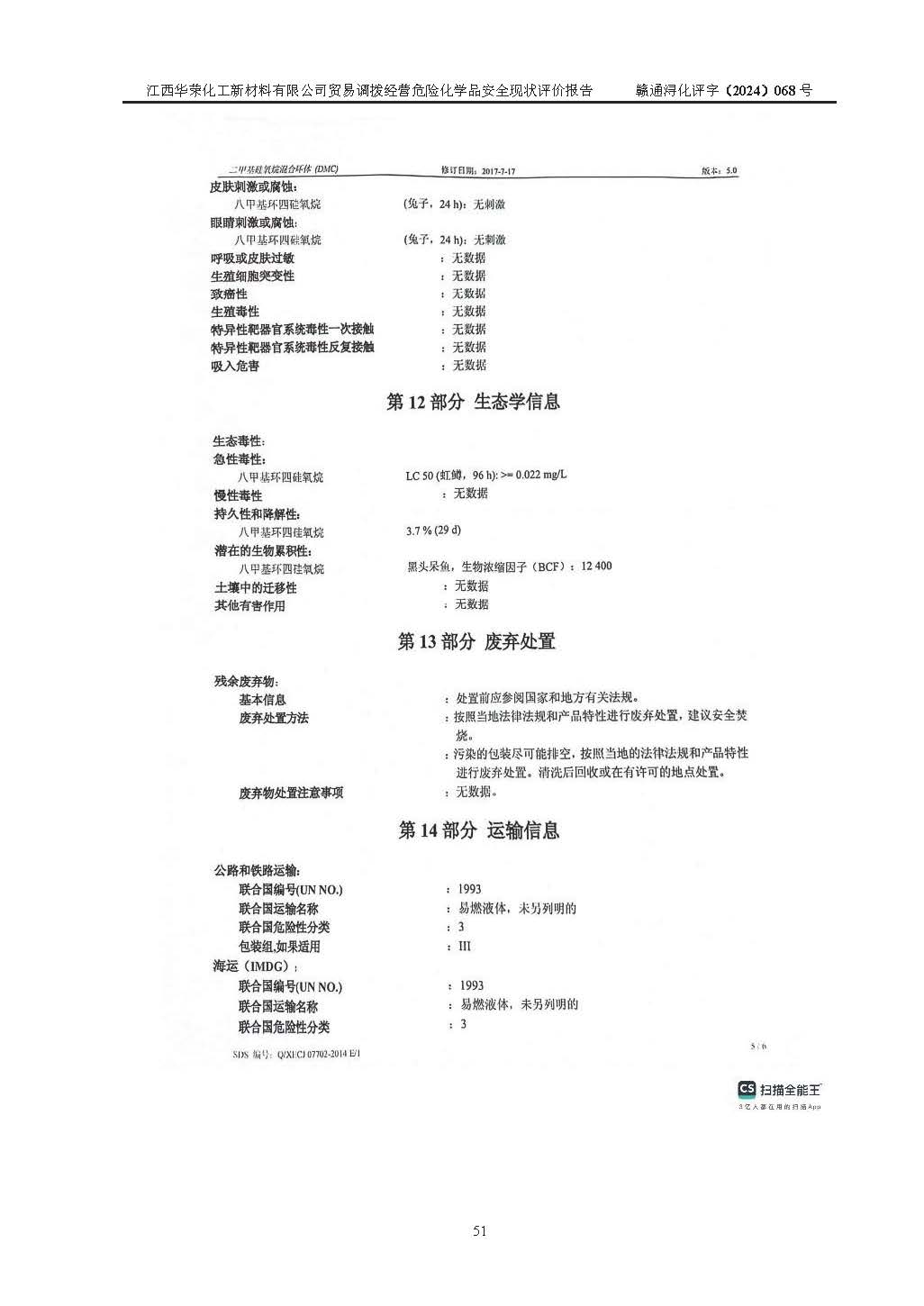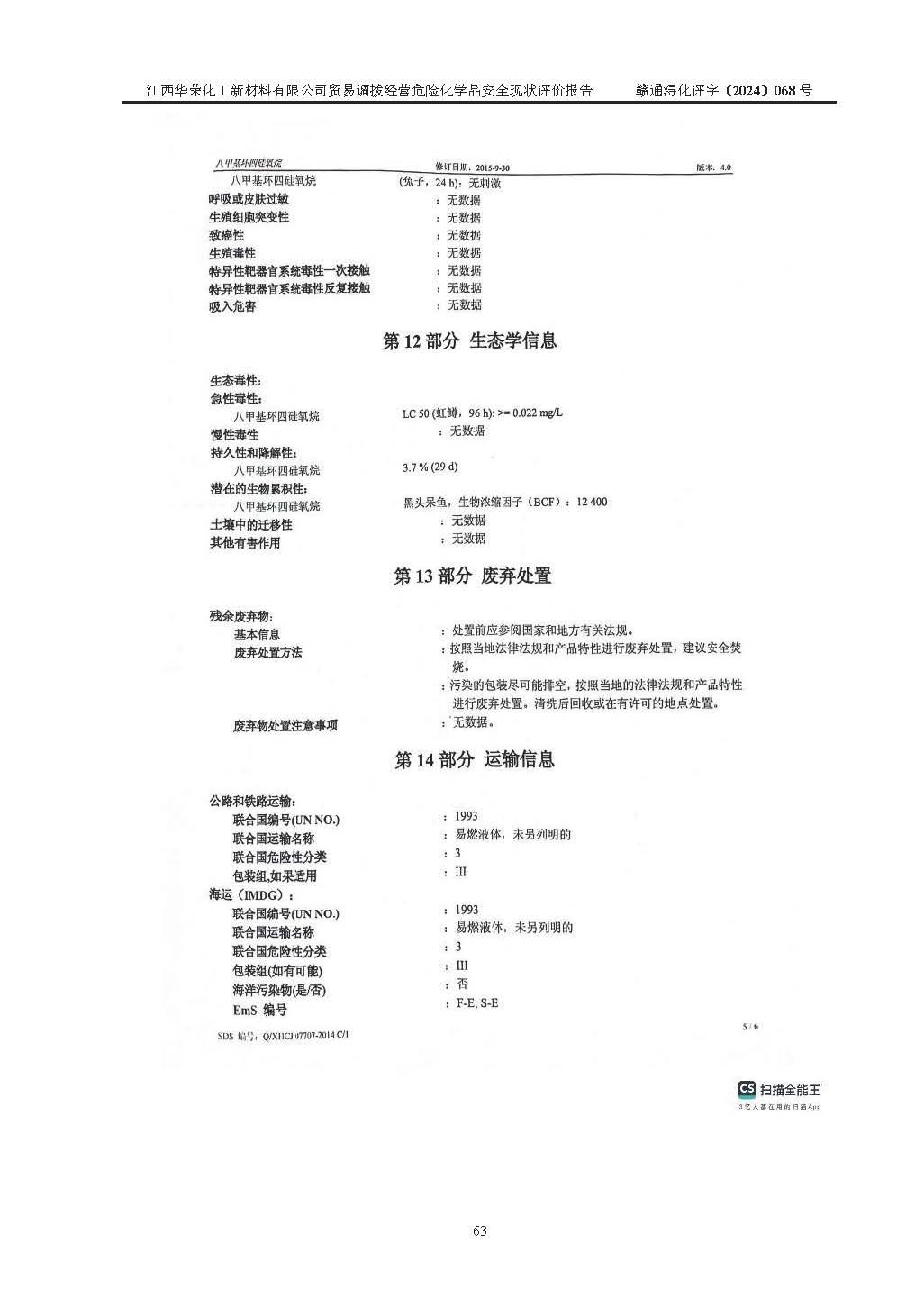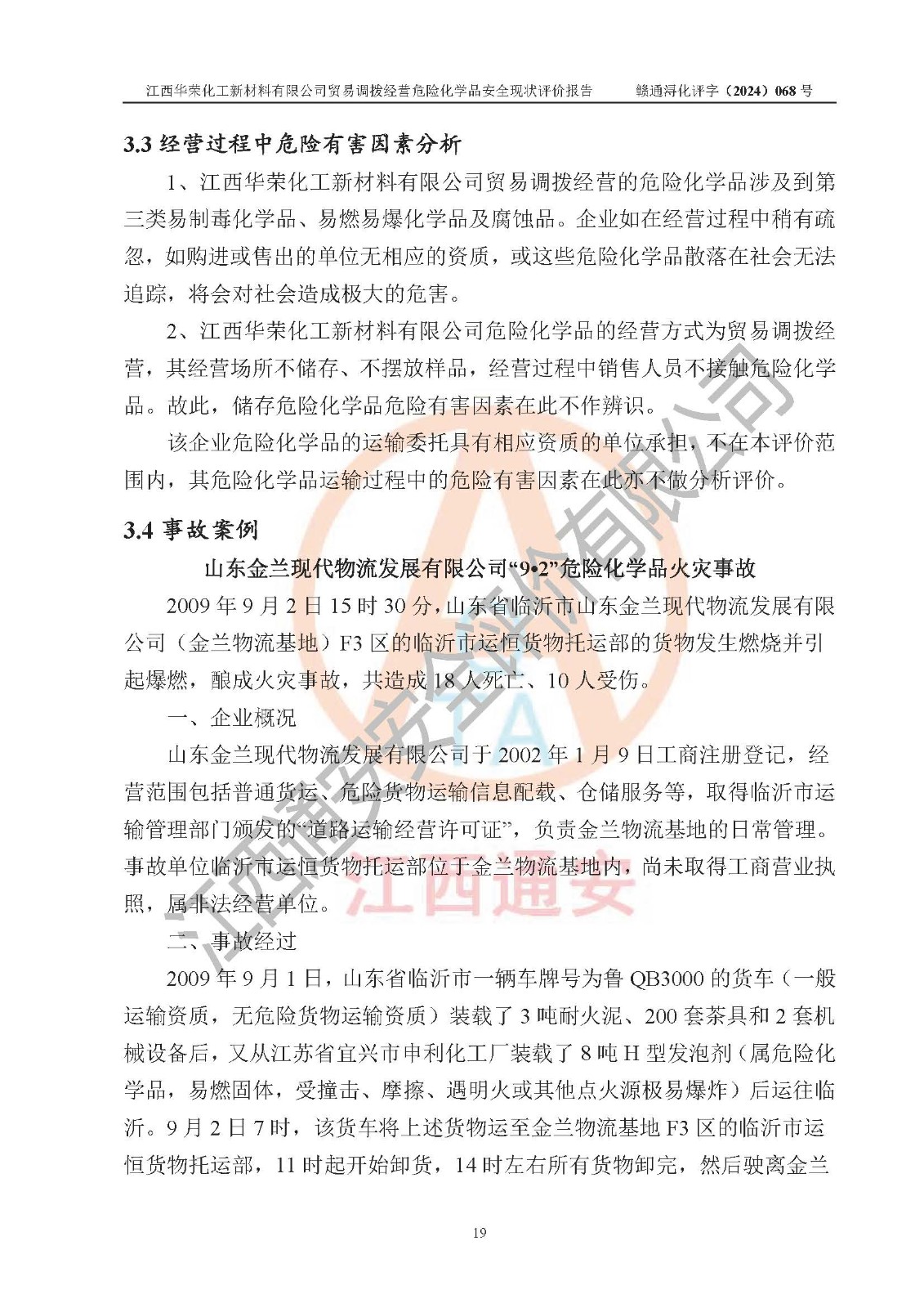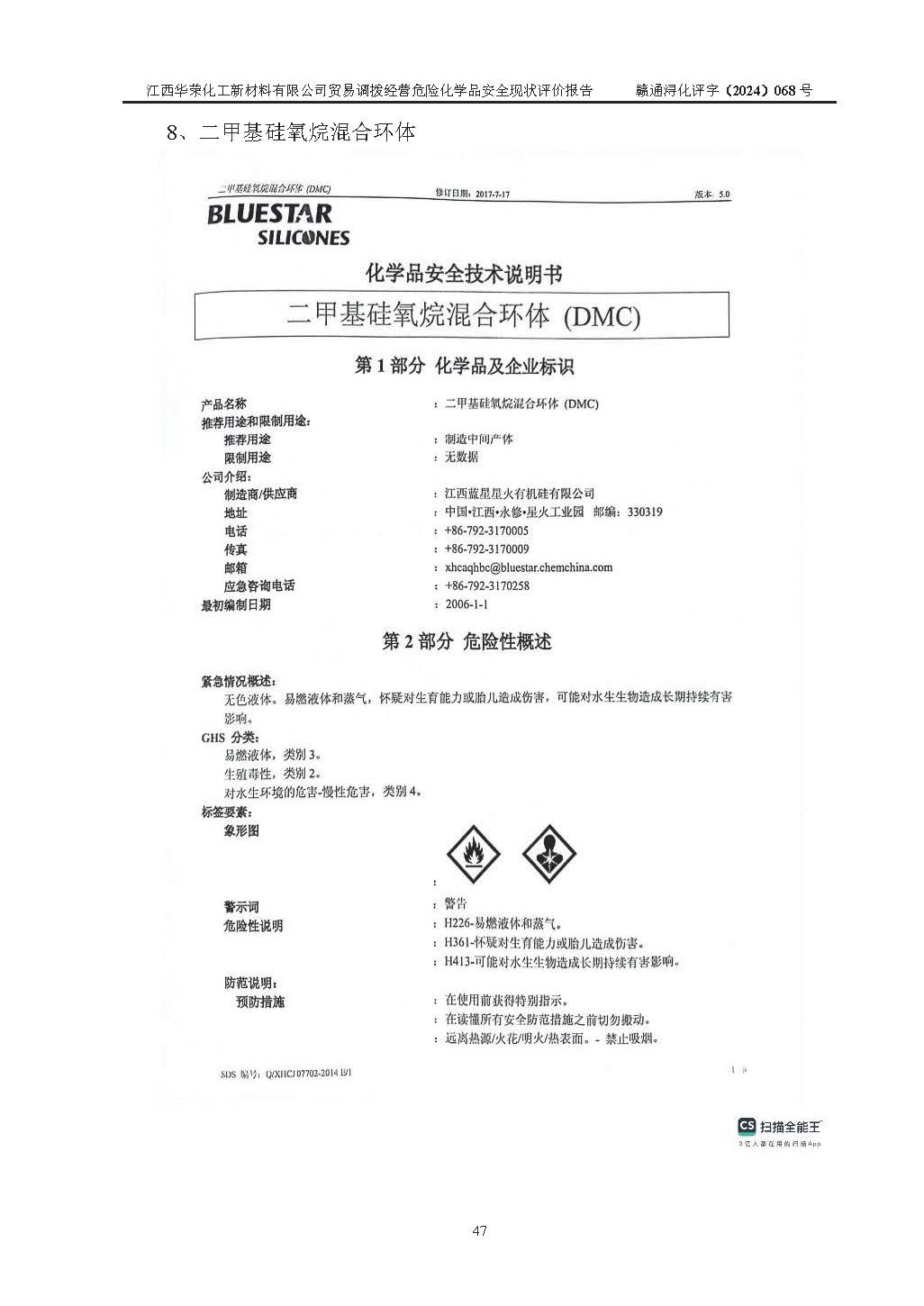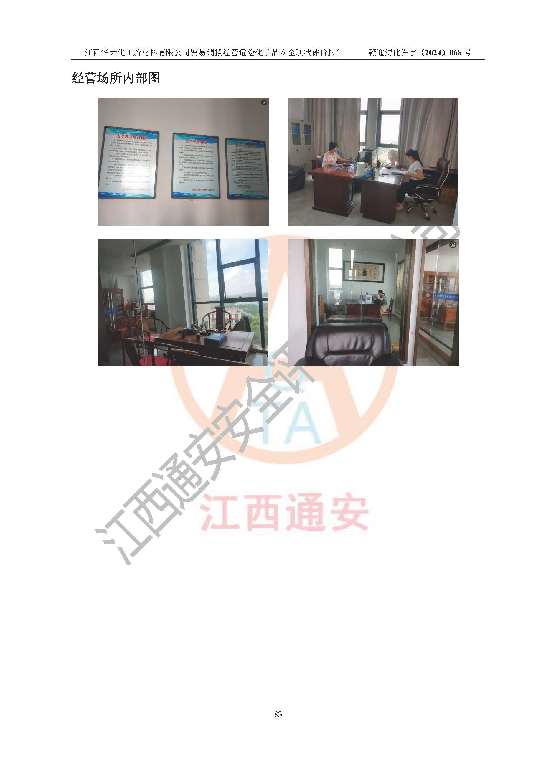 項目簡介 | 江西華榮化工新材料有限公司是一家于2015年11月09日注冊成立的有限責任公司,企業(yè)注冊地址與經營場所位于江西省九江市永修縣湖東新區(qū)開發(fā)大道南側銅鑼灣廣場總部經濟大樓908室,注冊資本與實收資本均為200萬元人民幣。該公司現(xiàn)有員工5人,法定**人王汝華。公司目前經營范圍為:許可項目:危險化學品經營(依法須經批準的項目,經相關部門批準后在許可**期內方可開展經營活動,具體經營項目和許可期限以相關部門批準文件或許可證件為準)一般項目:化工產品銷售(不含許可類化工產品),橡膠制品銷售,建筑材料銷售,金屬材料銷售,貨物進出口,信息技術咨詢服務(除依法須經批準的項目外,憑營業(yè)執(zhí)照依法自主開展經營活動)。 江西華榮化工新材料有限公司以貿易調撥方式經營危險化學品,品種為:甲基三氯硅烷、二甲基二氯硅烷、**基氯硅烷、四氯化硅、六甲基二硅氧烷、六甲基二硅氮烷、正硅酸乙酯、二甲基硅氧烷混合環(huán)體、六甲基環(huán)三硅氧烷、八甲基環(huán)四硅氧烷、四甲基硅烷、二甲基二乙氧基硅烷、甲基氫二氯硅烷(又稱為甲基二氯硅烷,新增)、[閉杯閃點≤60℃](36.有機硅類膠粘劑/54.有機硅樹脂)。不涉及危險化學品的運輸、儲存、店面零售、經營場所樣品擺放等問題。企業(yè)貿易調撥經營的危險化學品由具有危險化學品經營資質或生產廠家供貨,經營的危險化學品的運輸委托具有相應資質的單位承擔。 根據(jù)《危險化學品安全管理條例》(***第645號令修訂)、《危險化學品經營許可證管理辦法》(**安監(jiān)總局第55號令,第79號令修改)等法規(guī)和文件的要求,《危險化學品經營許可證》申請單位,應提供《安全評價報告》。 江西華榮化工新材料有限公司已向發(fā)證部門提出申請,目前正在做申請的準備工作,故委托江西通安安全評價有限公司承擔其貿易調撥經營危險化學品安全條件現(xiàn)狀評價工作。 江西通安安全評價有限公司接受委托后,組織了評價組;于2024年6月對該公司辦公經營場所進行了現(xiàn)場踏勘,查詢該公司經營管理模式及規(guī)章制度執(zhí)行情況。依據(jù)《安全評價通則》(AQ8001-2007)的要求,評價組完成了風險分析、資料收集、現(xiàn)場勘查和類比調查等前期準備工作。在此基礎上,根據(jù)企業(yè)提供的資料,分析了該企業(yè)在貿易調撥經營過程中可能存在的危險、有害因素。選擇了相應的安全評價方法逐項進行分析、評價,提出相應的預防和控制對策措施;并與企業(yè)安全管理人員進行了溝通后,編制完成了本評價報告,以作為企業(yè)申辦《危險化學品經營許可證》的安全技術依據(jù)。 本次評價范圍為江西華榮化工新材料有限公司貿易調撥經營危險化學品過程中的安全條件及安全管理方面的現(xiàn)狀。包括經營過程中安全管理的組織、機構、人員及安全管理制度等。該單位不涉及貿易調撥經營危險化學品的運輸、儲存,其委托危險化學品的道路運輸、儲存不在本評價范圍內。 | ||||||