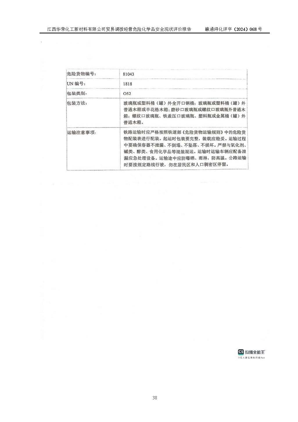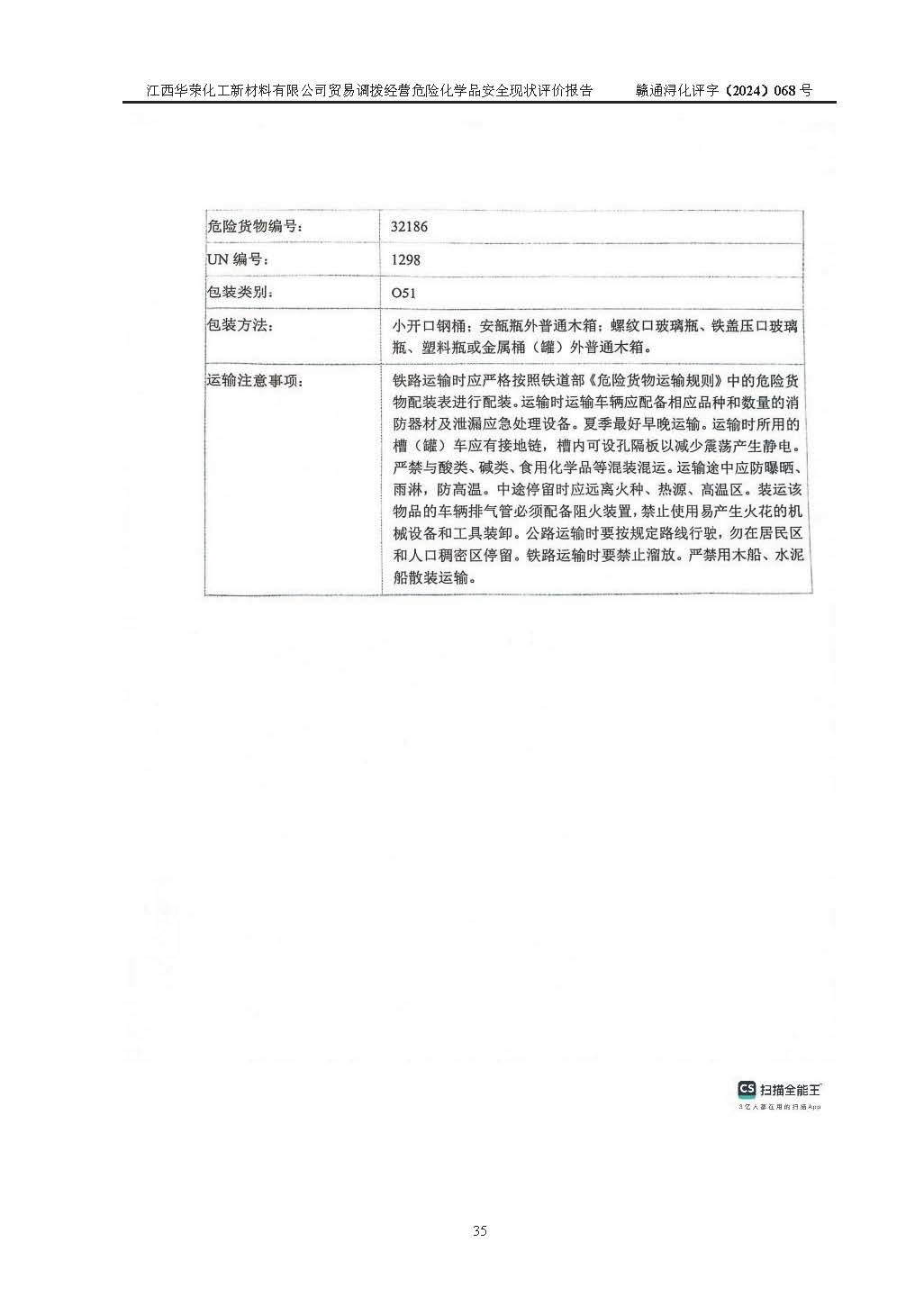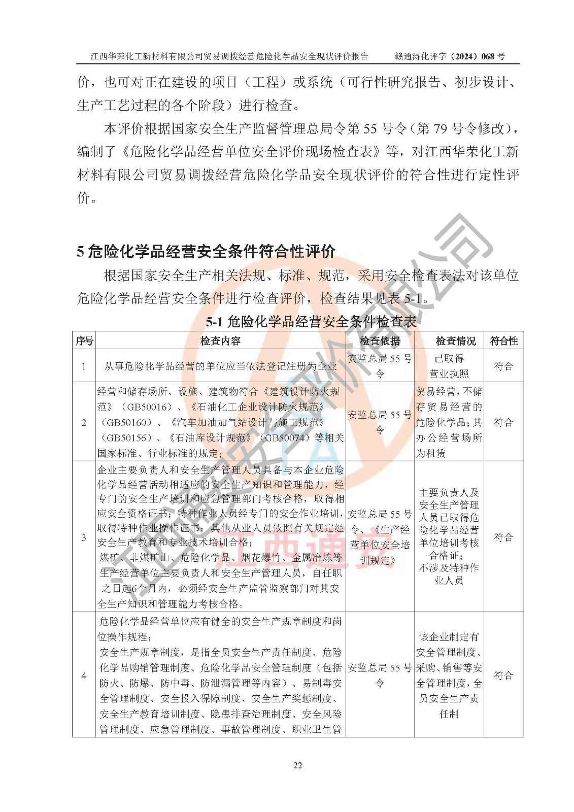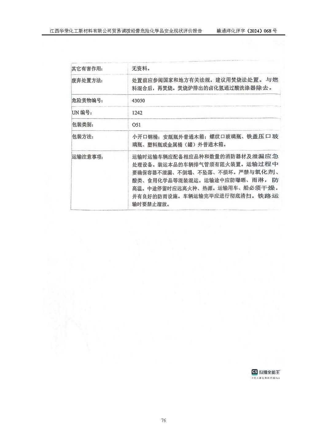 評價結論 | 綜上所述:江西華榮化工新材料有限公司貿易調撥經營危險化學品的安全條件符合**有關法規(guī)、標準、規(guī)范要求,風險可控,具備危險化學品貿易調撥經營的安全條件。 | ||||||