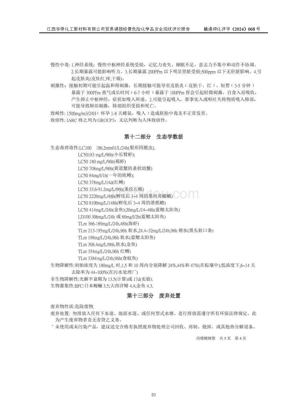 報告編號:贛通潯化評字(2024)068號