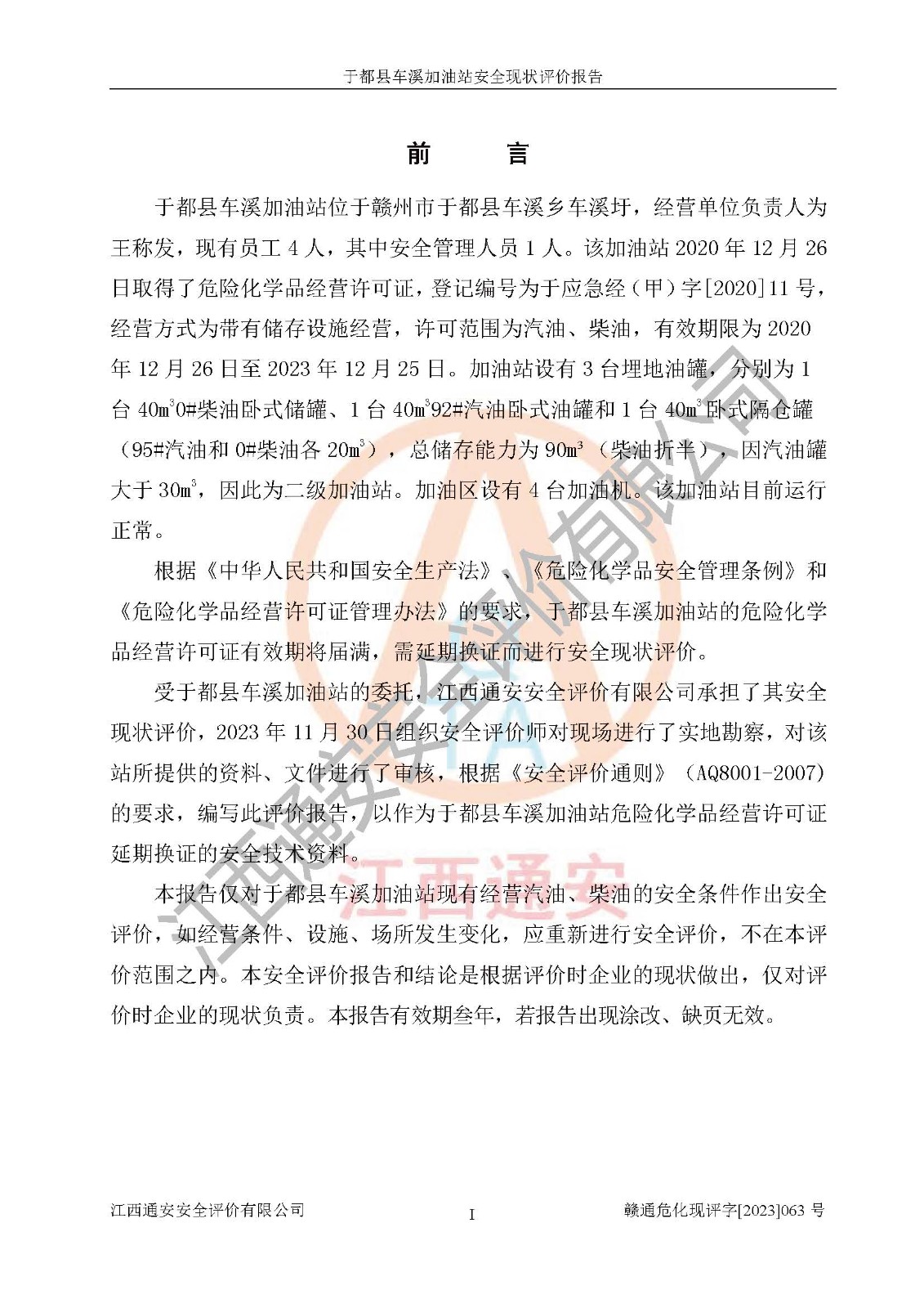 評價(jià)報(bào)告名稱 | 于都縣車溪加油站安全現(xiàn)狀評價(jià)報(bào)告 | |||