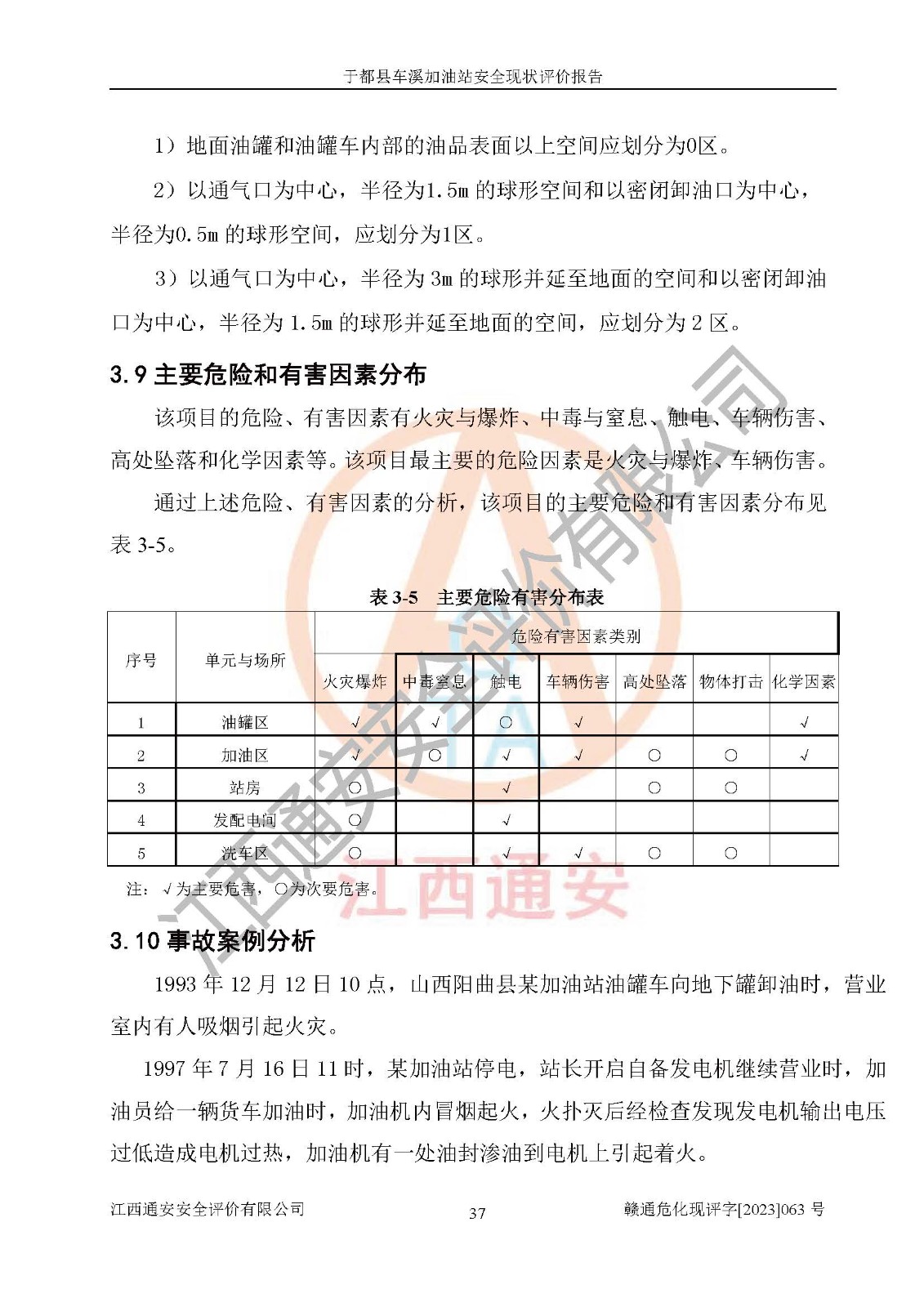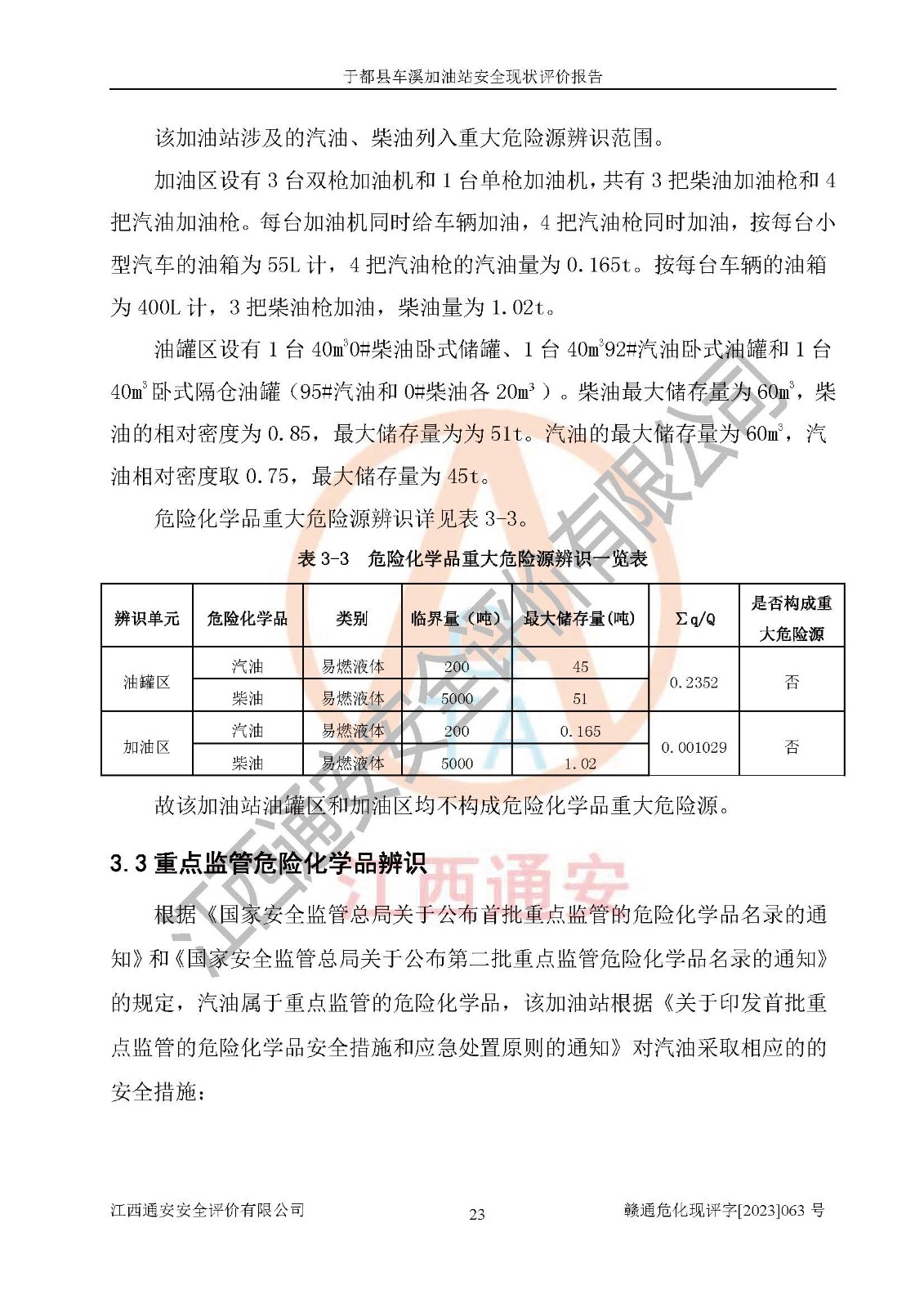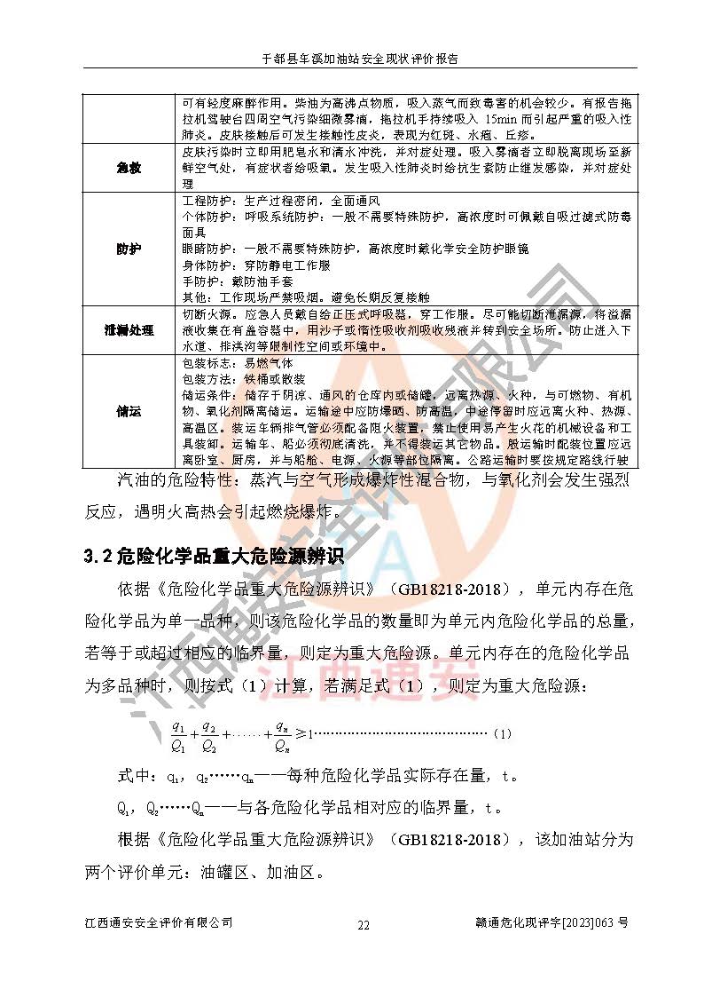 項(xiàng)目簡介 | 于都縣車溪加油站位于贛州市于都縣車溪鄉(xiāng)車溪圩,經(jīng)營單位負(fù)責(zé)人為王稱發(fā),現(xiàn)有員工4人,其中安全管理人員1人。該加油站2020年12月26日取得了危險(xiǎn)化學(xué)品經(jīng)營許可證,登記編號為于應(yīng)急經(jīng)(甲)字[2020]11號,經(jīng)營方式為帶有儲存設(shè)施經(jīng)營,許可范圍為汽油、柴油,**期限為2020年12月26日至2023年12月25日。加油站設(shè)有3臺埋地油罐,分別為1臺40m30#柴油臥式儲罐、1臺40m392#汽油臥式油罐和1臺40m3臥式隔倉罐(95#汽油和0#柴油各20m3),總儲存能力為90m3(柴油折半),因汽油罐大于30m3,因此為二級加油站。加油區(qū)設(shè)有4臺加油機(jī)。該加油站目前運(yùn)行正常。 | |||