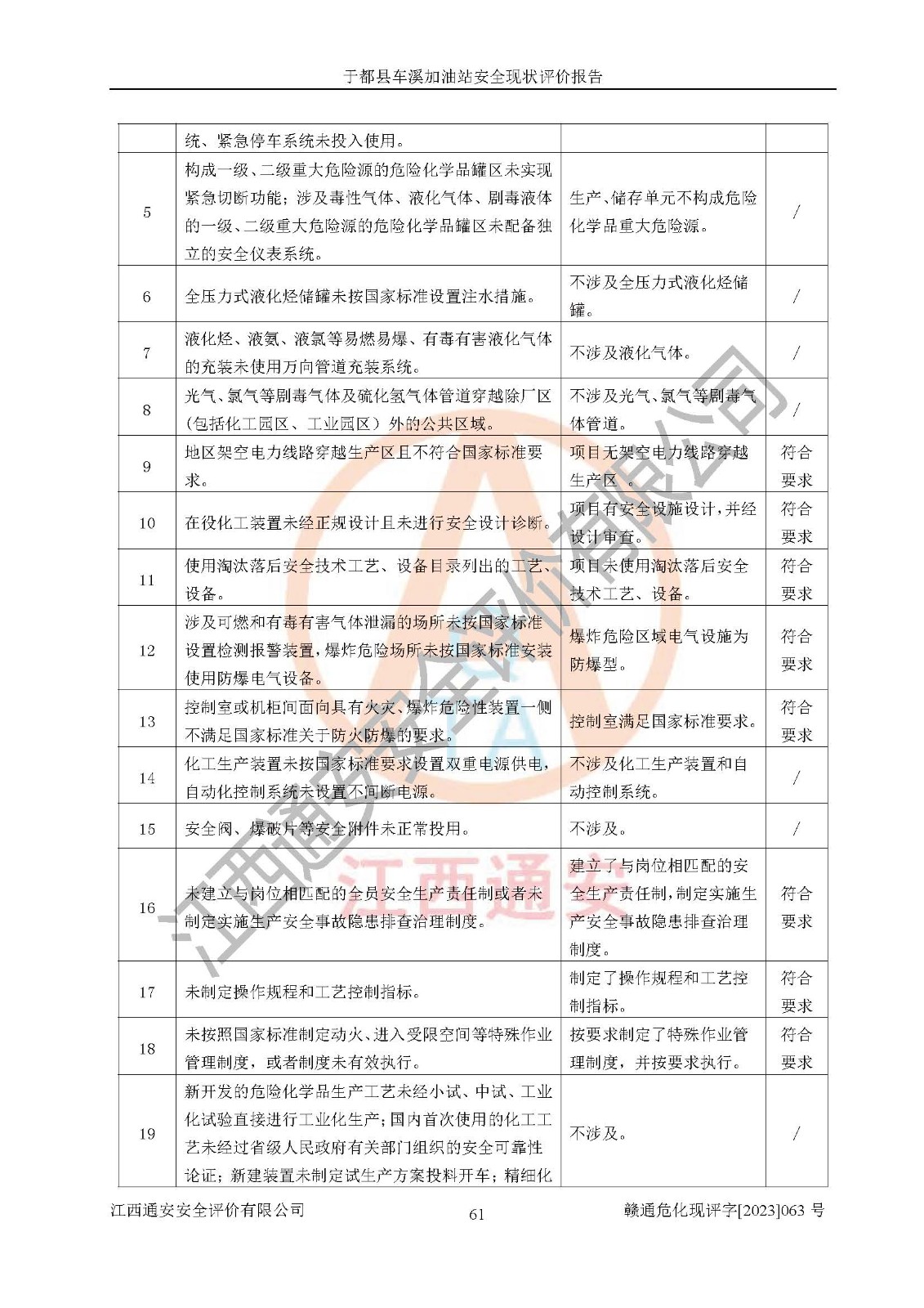 評價(jià)結(jié)論 | 于都縣車溪加油站安全現(xiàn)狀符合危險(xiǎn)化學(xué)品經(jīng)營安全條件。 | |||
