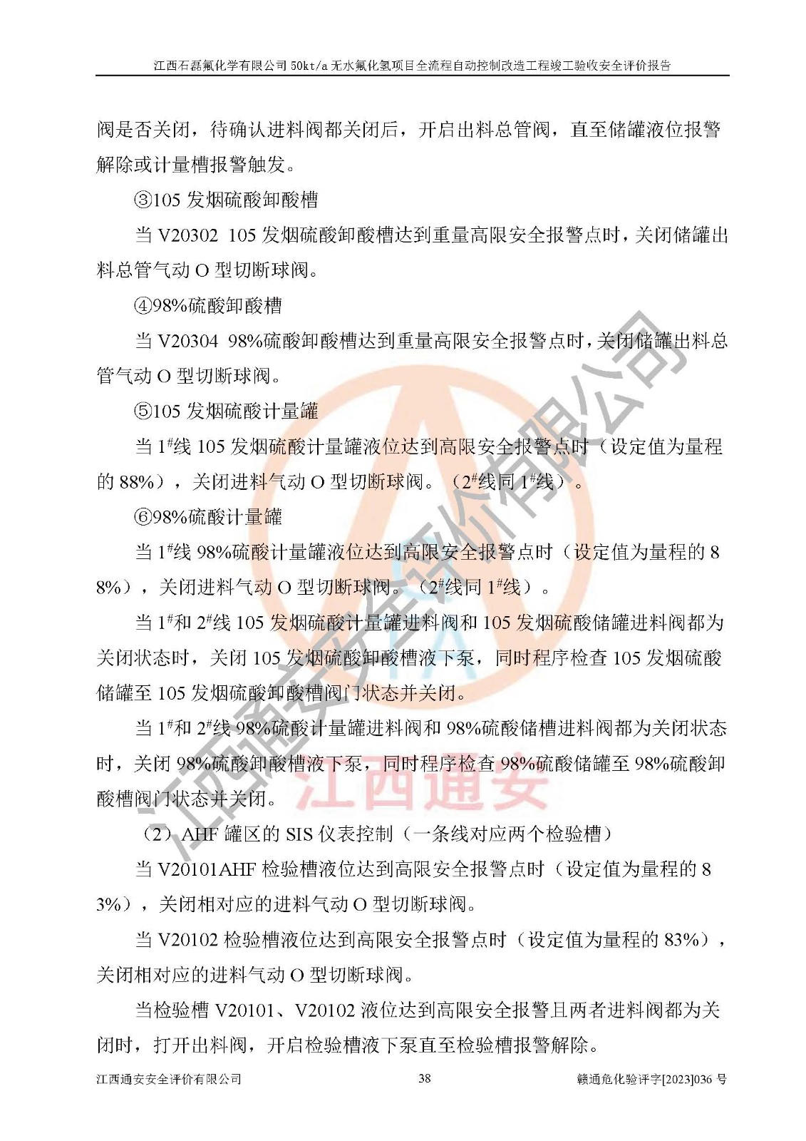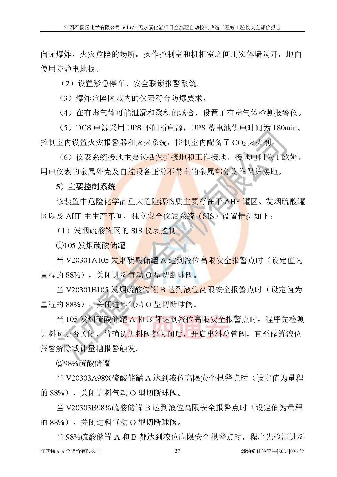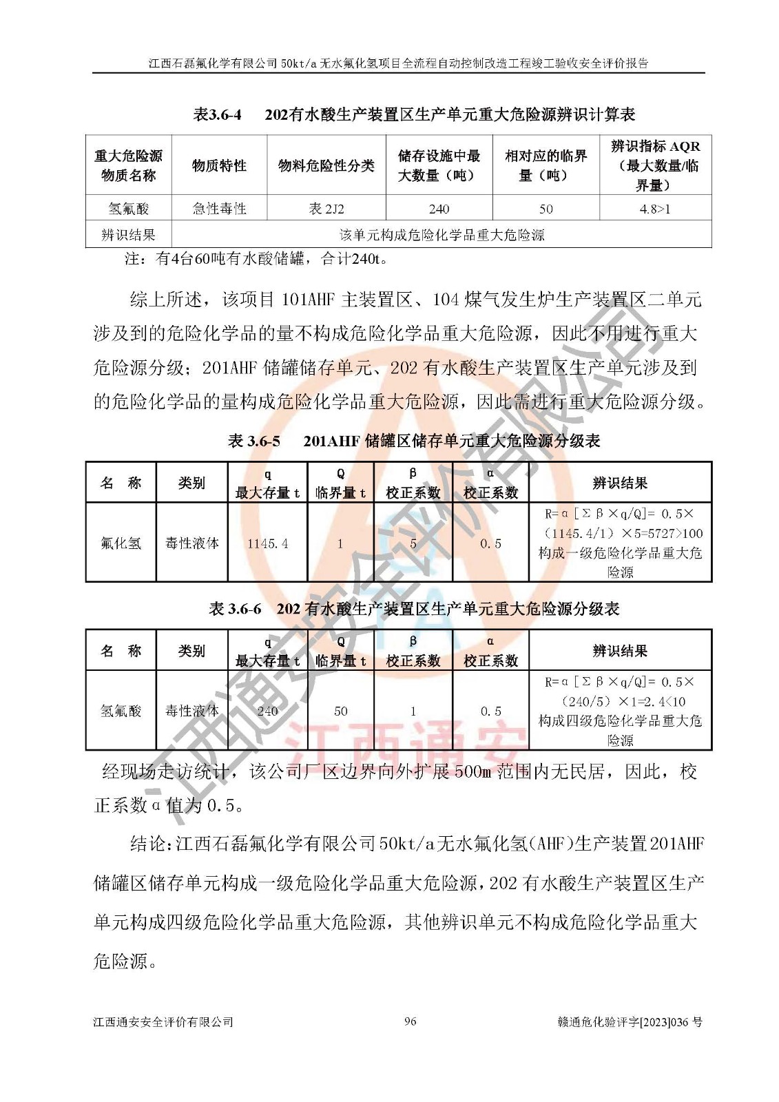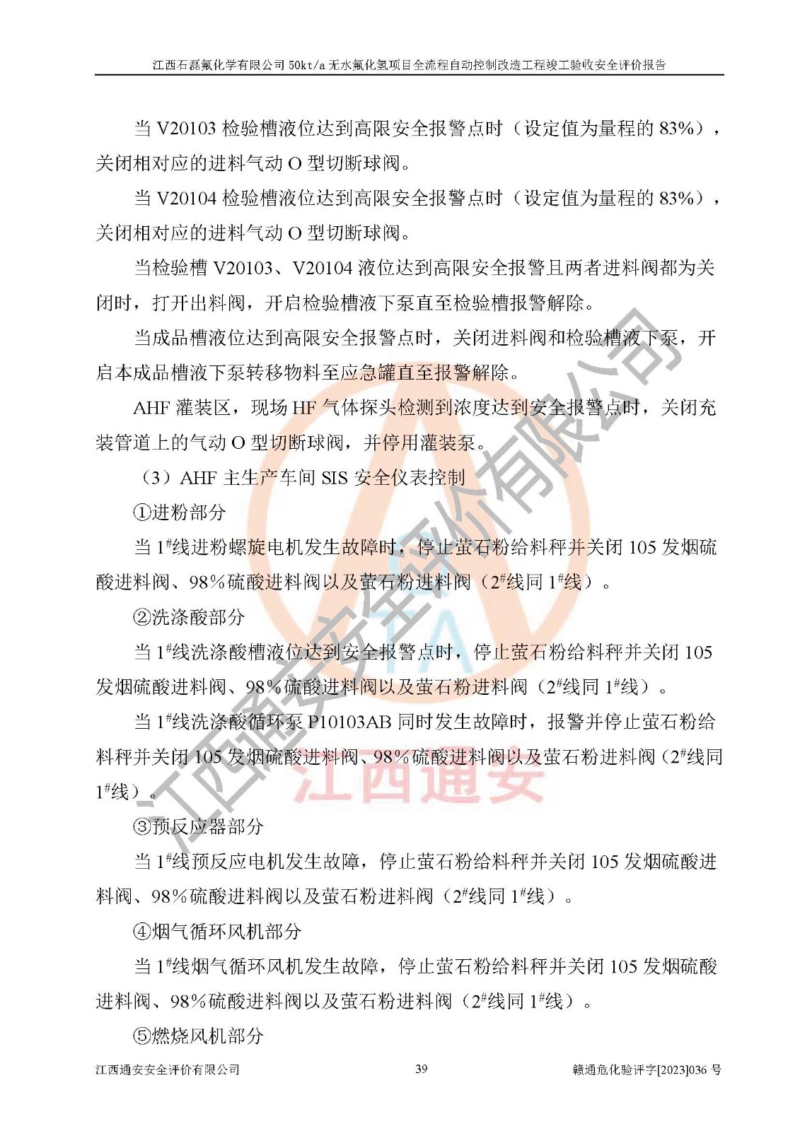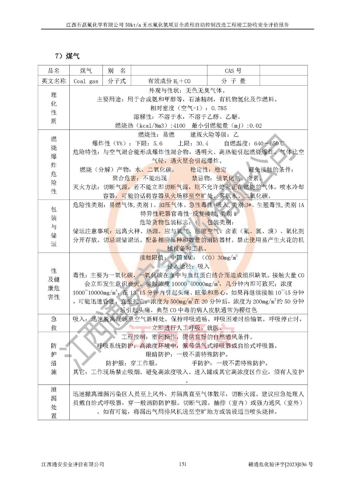 根據(jù)江西石磊氟化學(xué)有限公司提供的技術(shù)資料,通過(guò)現(xiàn)場(chǎng)檢查以及對(duì)主要危險(xiǎn)有害因素分析,以及采用定性、定量評(píng)價(jià)法進(jìn)行評(píng)價(jià)和分析,依據(jù)**相關(guān)法規(guī)標(biāo)準(zhǔn),得出評(píng)價(jià)結(jié)論。 1、該工程涉及的危險(xiǎn)化學(xué)品有:氟化氫、氫氟酸、硫酸、發(fā)煙硫酸、氟硅酸、煤氣、柴油(柴油發(fā)電機(jī)用)。 2、該工程中存在的主要危險(xiǎn)有:火災(zāi)、爆炸、中毒窒息、灼燙、觸電、機(jī)械傷害、高處墜落、起重傷害、凍傷、淹溺等。其中火災(zāi)爆炸、中毒和窒息是*主要的危險(xiǎn)因素。 3、該工程涉及的各種化學(xué)品中,硫酸屬于第三類易制毒危險(xiǎn)化學(xué)品,不涉及易制爆化學(xué)品。 4、本項(xiàng)目所涉及的原輔材料及產(chǎn)品、中間產(chǎn)品、副產(chǎn)品中,氟化氫、氫氟酸、CO(存在于發(fā)生爐煤氣中)屬于重點(diǎn)監(jiān)管的危險(xiǎn)化學(xué)品。不涉及特別管控危險(xiǎn)化學(xué)品。 5、該工程項(xiàng)目涉及的氟化氫、CO(存在于發(fā)生爐煤氣中)屬于高毒物品。 6、本項(xiàng)目煤焦油的危險(xiǎn)性類別包括致癌性,類別1A,根據(jù)《職業(yè)性接觸毒物危害程度分級(jí)》(GBZ 230-2010)的規(guī)定:屬于明確人類致癌物的,直接列為極度危害。因此本項(xiàng)目煤焦油為極度危害介質(zhì)。 7、該公司201AHF儲(chǔ)罐區(qū)儲(chǔ)存單元構(gòu)成**危險(xiǎn)化學(xué)品重大危險(xiǎn)源,202有水酸生產(chǎn)裝置區(qū)生產(chǎn)單元構(gòu)成四級(jí)危險(xiǎn)化學(xué)品重大危險(xiǎn)源 8、根據(jù)《**安全監(jiān)管總局關(guān)于公布首批重點(diǎn)監(jiān)管的危險(xiǎn)化工工藝目錄的通知》(安監(jiān)總管三〔2009〕116號(hào))和《**安全監(jiān)管總局關(guān)于公布第二批重點(diǎn)監(jiān)管危險(xiǎn)化工工藝目錄和調(diào)整首批重點(diǎn)監(jiān)管危險(xiǎn)化工工藝中部分典型工藝的通知》(安監(jiān)總管三〔2013〕3號(hào))進(jìn)行危險(xiǎn)工藝辨識(shí):該工程無(wú)水氟化氫(AHF)生產(chǎn)裝置生產(chǎn)過(guò)程涉及的氟化工藝為重點(diǎn)監(jiān)管的危險(xiǎn)化工工藝。 9、江西石磊氟化學(xué)有限公司50kt/a無(wú)水氟化氫項(xiàng)目自動(dòng)控制技術(shù)改造工程的設(shè)計(jì)、安裝施工和調(diào)試單位的資質(zhì)均符合要求。 10、江西石磊氟化學(xué)有限公司50kt/a無(wú)水氟化氫項(xiàng)目全流程自動(dòng)控制改造設(shè)計(jì)方案中提出的控制措施已得到落實(shí),企業(yè)控制系統(tǒng)設(shè)置情況與設(shè)計(jì)方案一致,設(shè)計(jì)、施工和調(diào)試單位由有**相應(yīng)資質(zhì)的自控系統(tǒng)施工單位進(jìn)行施工,并對(duì)自動(dòng)控制系統(tǒng)調(diào)試合格,出具了竣工圖,安全設(shè)施及安全管理符合**及有關(guān)部門(mén)關(guān)于安全生產(chǎn)法律、法規(guī)、標(biāo)準(zhǔn)的要求,安全風(fēng)險(xiǎn)程度是可以接受的,安全風(fēng)險(xiǎn)可控,滿足《江西省應(yīng)急管理廳關(guān)于印發(fā)<江西省化工企業(yè)自動(dòng)化提升實(shí)施方案>(試行)的通知》(贛應(yīng)急字[2021]190號(hào))的要求,具備全流程自動(dòng)控制改造工程竣工驗(yàn)收條件。 |
