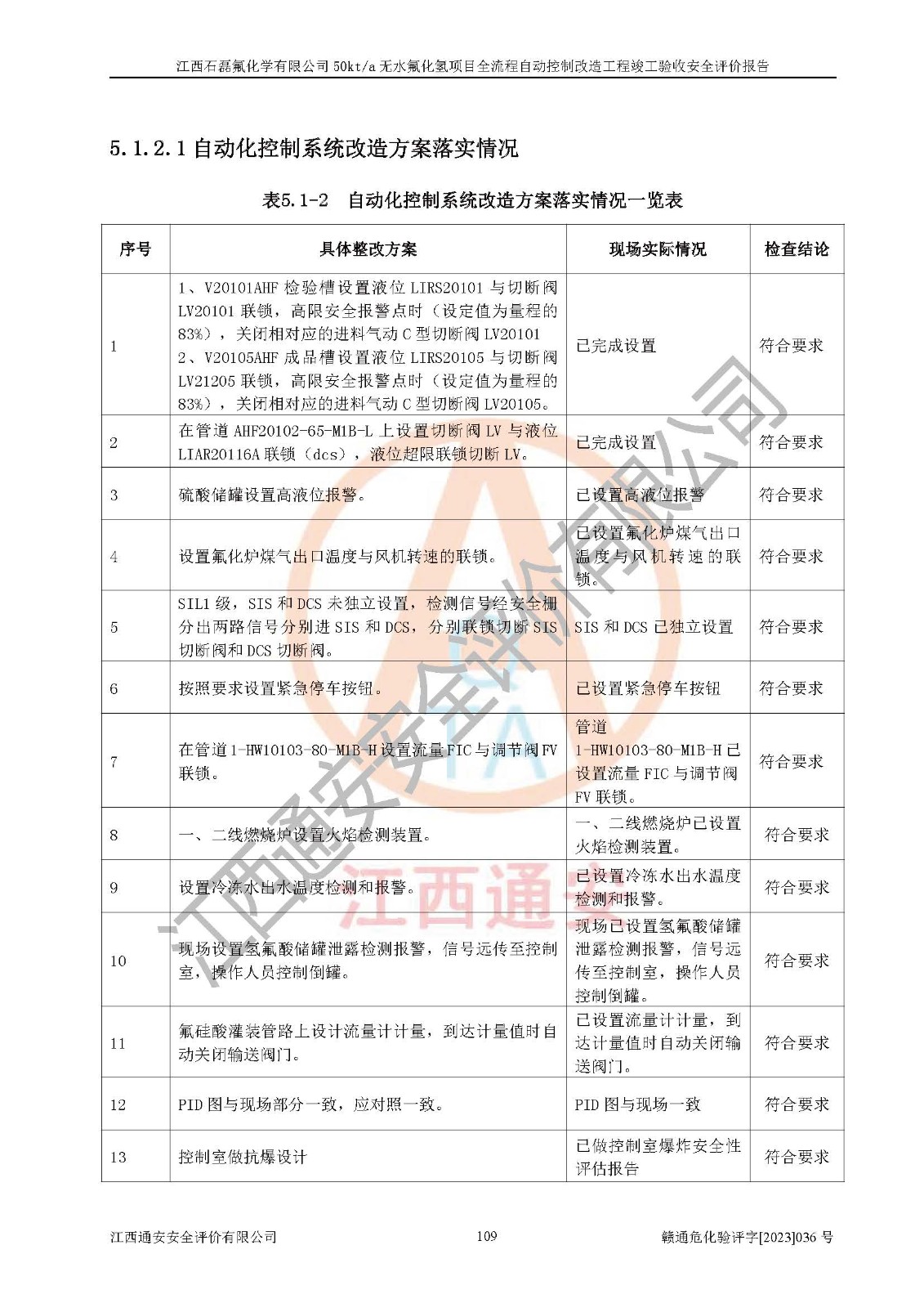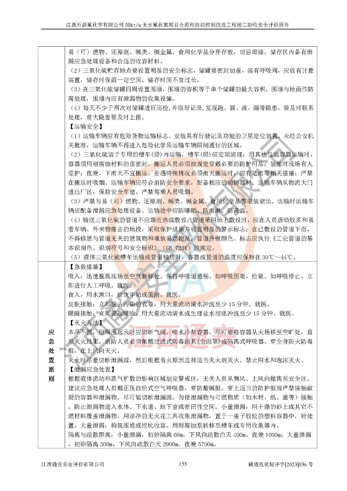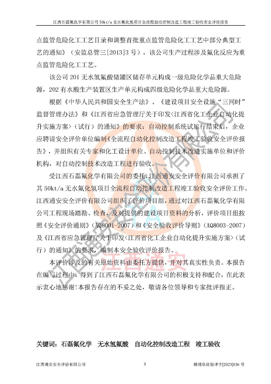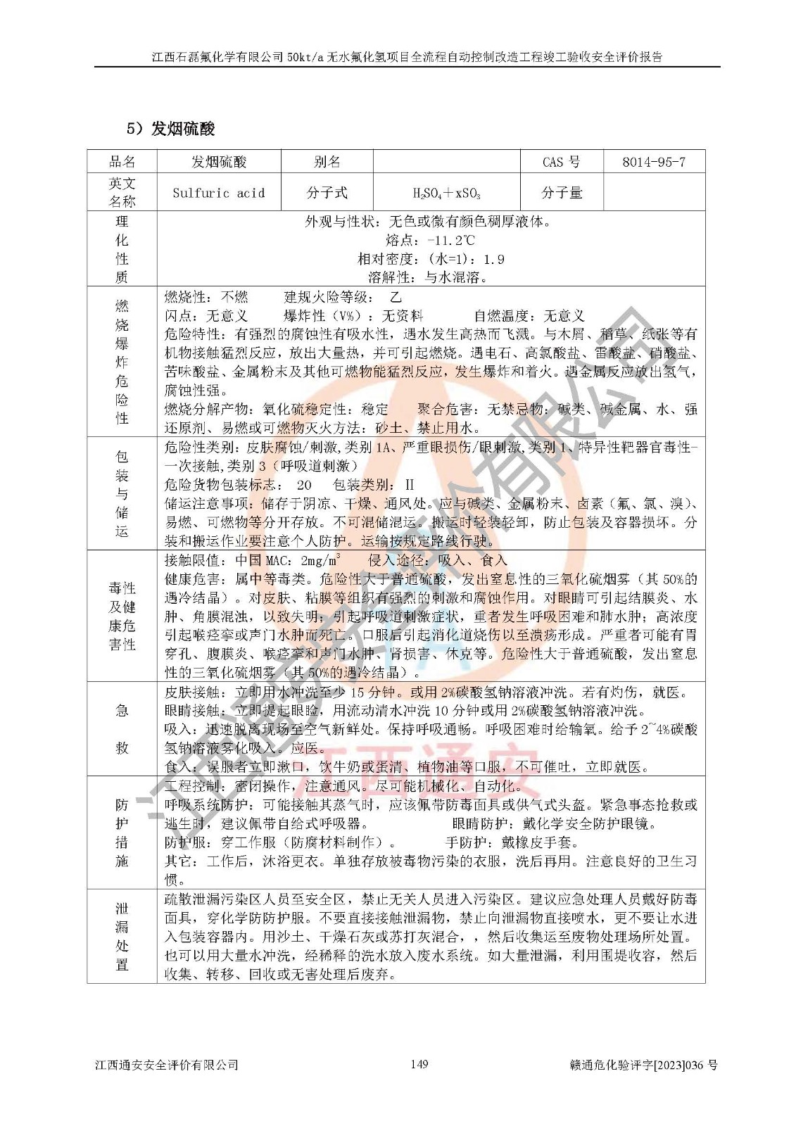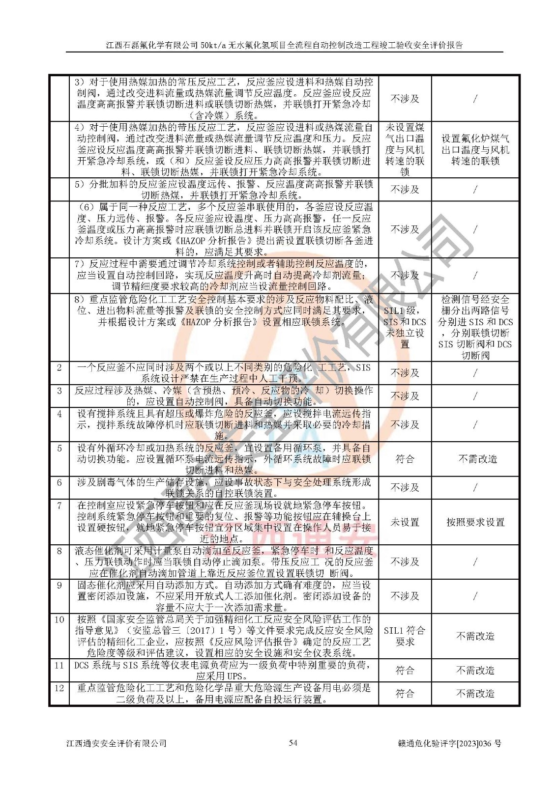 根據(jù)江西石磊氟化學(xué)有限公司提供的技術(shù)資料,通過(guò)現(xiàn)場(chǎng)檢查以及對(duì)主要危險(xiǎn)有害因素分析,以及采用定性、定量評(píng)價(jià)法進(jìn)行評(píng)價(jià)和分析,依據(jù)**相關(guān)法規(guī)標(biāo)準(zhǔn),得出評(píng)價(jià)結(jié)論。 1、該工程涉及的危險(xiǎn)化學(xué)品有:氟化氫、氫氟酸、硫酸、發(fā)煙硫酸、氟硅酸、煤氣、柴油(柴油發(fā)電機(jī)用)。 2、該工程中存在的主要危險(xiǎn)有:火災(zāi)、爆炸、中毒窒息、灼燙、觸電、機(jī)械傷害、高處墜落、起重傷害、凍傷、淹溺等。其中火災(zāi)爆炸、中毒和窒息是*主要的危險(xiǎn)因素。 3、該工程涉及的各種化學(xué)品中,硫酸屬于第三類易制毒危險(xiǎn)化學(xué)品,不涉及易制爆化學(xué)品。 4、本項(xiàng)目所涉及的原輔材料及產(chǎn)品、中間產(chǎn)品、副產(chǎn)品中,氟化氫、氫氟酸、CO(存在于發(fā)生爐煤氣中)屬于重點(diǎn)監(jiān)管的危險(xiǎn)化學(xué)品。不涉及特別管控危險(xiǎn)化學(xué)品。 5、該工程項(xiàng)目涉及的氟化氫、CO(存在于發(fā)生爐煤氣中)屬于高毒物品。 6、本項(xiàng)目煤焦油的危險(xiǎn)性類別包括致癌性,類別1A,根據(jù)《職業(yè)性接觸毒物危害程度分級(jí)》(GBZ 230-2010)的規(guī)定:屬于明確人類致癌物的,直接列為極度危害。因此本項(xiàng)目煤焦油為極度危害介質(zhì)。 7、該公司201AHF儲(chǔ)罐區(qū)儲(chǔ)存單元構(gòu)成**危險(xiǎn)化學(xué)品重大危險(xiǎn)源,202有水酸生產(chǎn)裝置區(qū)生產(chǎn)單元構(gòu)成四級(jí)危險(xiǎn)化學(xué)品重大危險(xiǎn)源 8、根據(jù)《**安全監(jiān)管總局關(guān)于公布首批重點(diǎn)監(jiān)管的危險(xiǎn)化工工藝目錄的通知》(安監(jiān)總管三〔2009〕116號(hào))和《**安全監(jiān)管總局關(guān)于公布第二批重點(diǎn)監(jiān)管危險(xiǎn)化工工藝目錄和調(diào)整首批重點(diǎn)監(jiān)管危險(xiǎn)化工工藝中部分典型工藝的通知》(安監(jiān)總管三〔2013〕3號(hào))進(jìn)行危險(xiǎn)工藝辨識(shí):該工程無(wú)水氟化氫(AHF)生產(chǎn)裝置生產(chǎn)過(guò)程涉及的氟化工藝為重點(diǎn)監(jiān)管的危險(xiǎn)化工工藝。 9、江西石磊氟化學(xué)有限公司50kt/a無(wú)水氟化氫項(xiàng)目自動(dòng)控制技術(shù)改造工程的設(shè)計(jì)、安裝施工和調(diào)試單位的資質(zhì)均符合要求。 10、江西石磊氟化學(xué)有限公司50kt/a無(wú)水氟化氫項(xiàng)目全流程自動(dòng)控制改造設(shè)計(jì)方案中提出的控制措施已得到落實(shí),企業(yè)控制系統(tǒng)設(shè)置情況與設(shè)計(jì)方案一致,設(shè)計(jì)、施工和調(diào)試單位由有**相應(yīng)資質(zhì)的自控系統(tǒng)施工單位進(jìn)行施工,并對(duì)自動(dòng)控制系統(tǒng)調(diào)試合格,出具了竣工圖,安全設(shè)施及安全管理符合**及有關(guān)部門(mén)關(guān)于安全生產(chǎn)法律、法規(guī)、標(biāo)準(zhǔn)的要求,安全風(fēng)險(xiǎn)程度是可以接受的,安全風(fēng)險(xiǎn)可控,滿足《江西省應(yīng)急管理廳關(guān)于印發(fā)<江西省化工企業(yè)自動(dòng)化提升實(shí)施方案>(試行)的通知》(贛應(yīng)急字[2021]190號(hào))的要求,具備全流程自動(dòng)控制改造工程竣工驗(yàn)收條件。 |