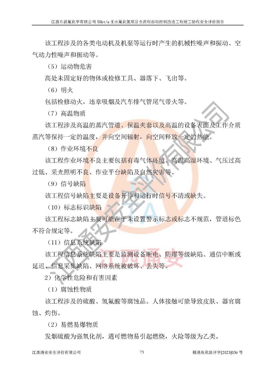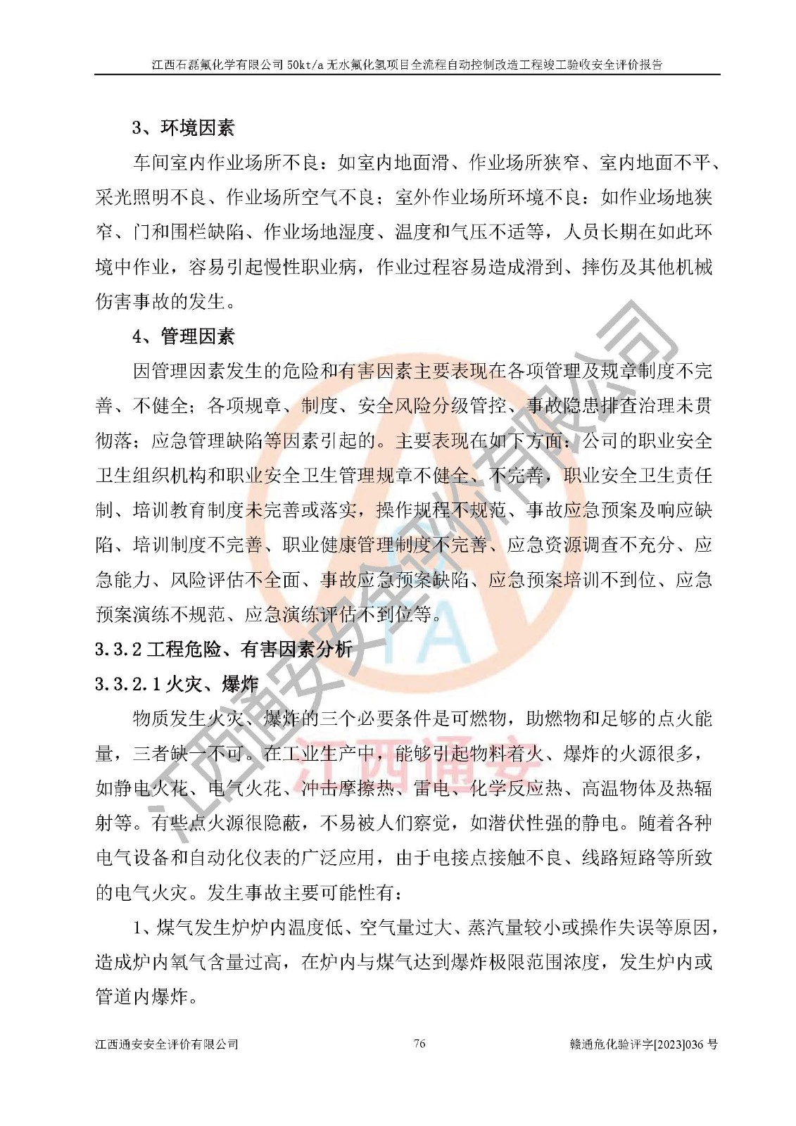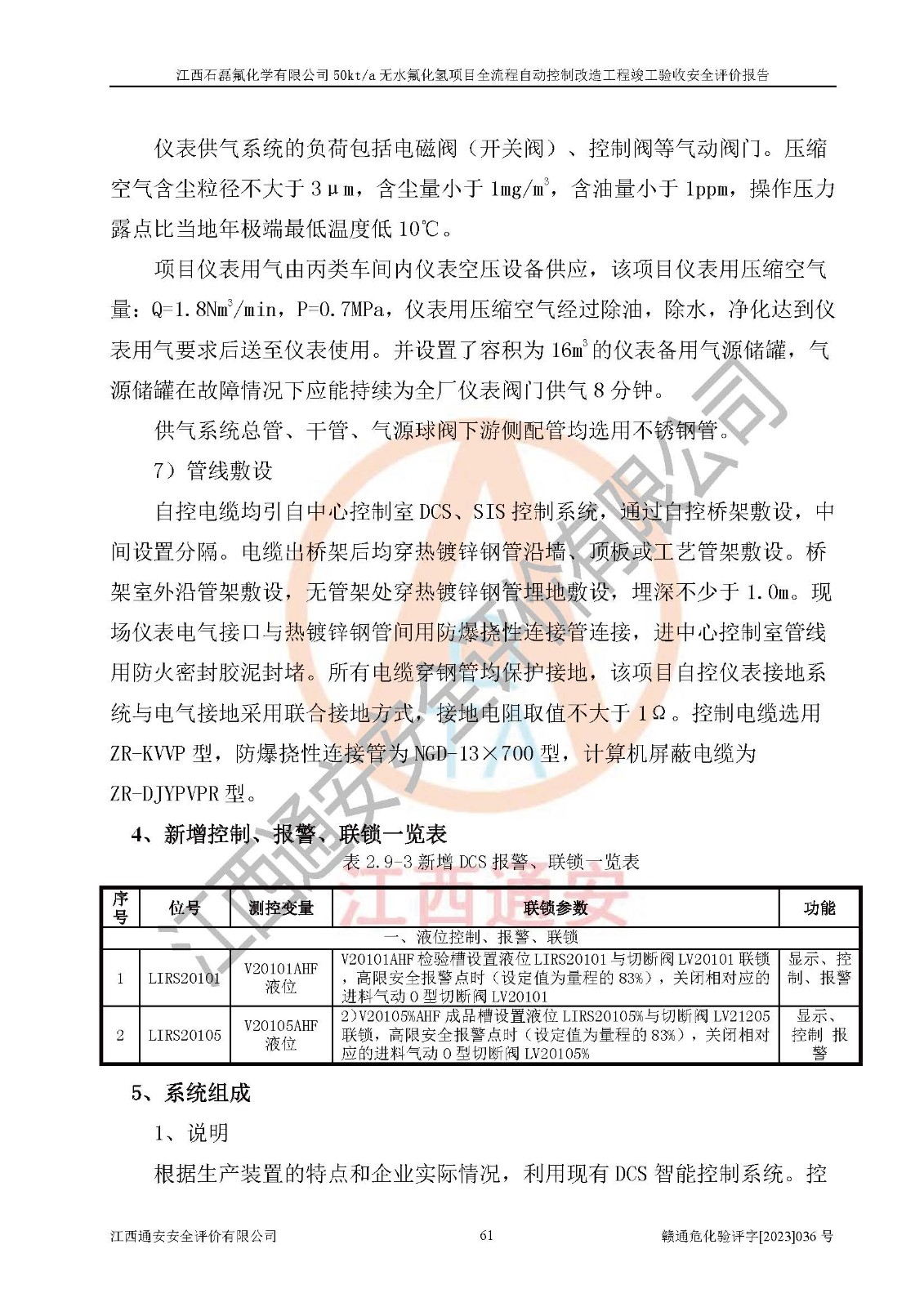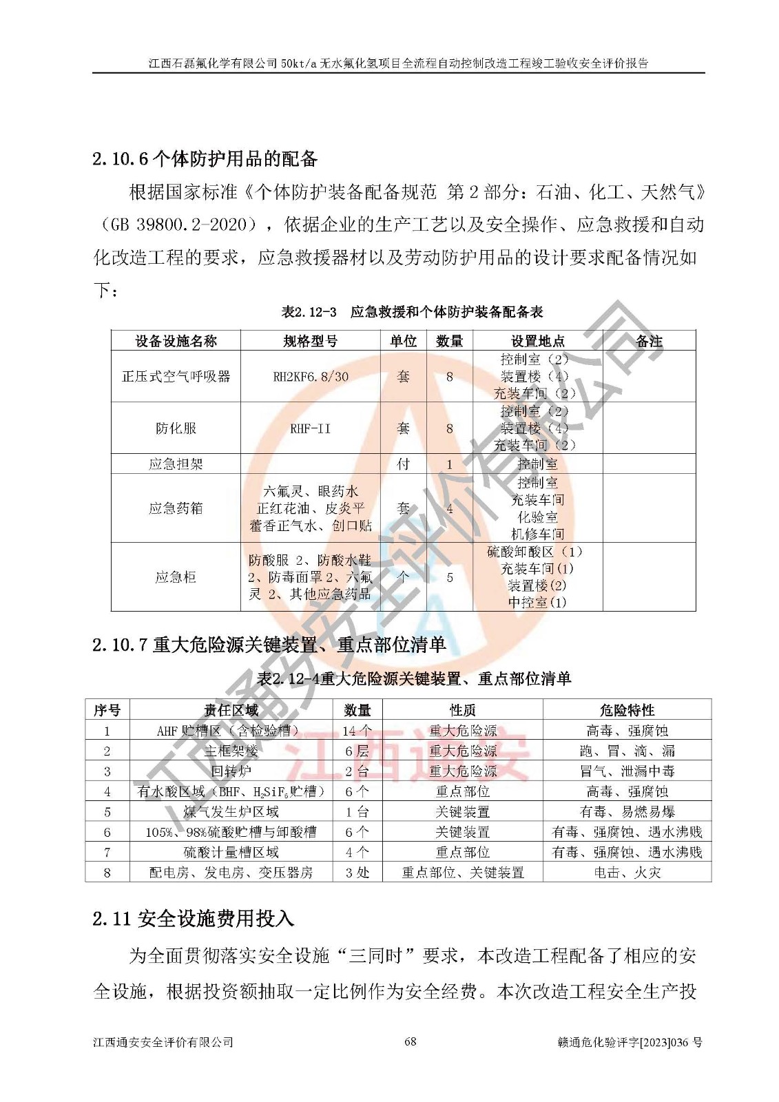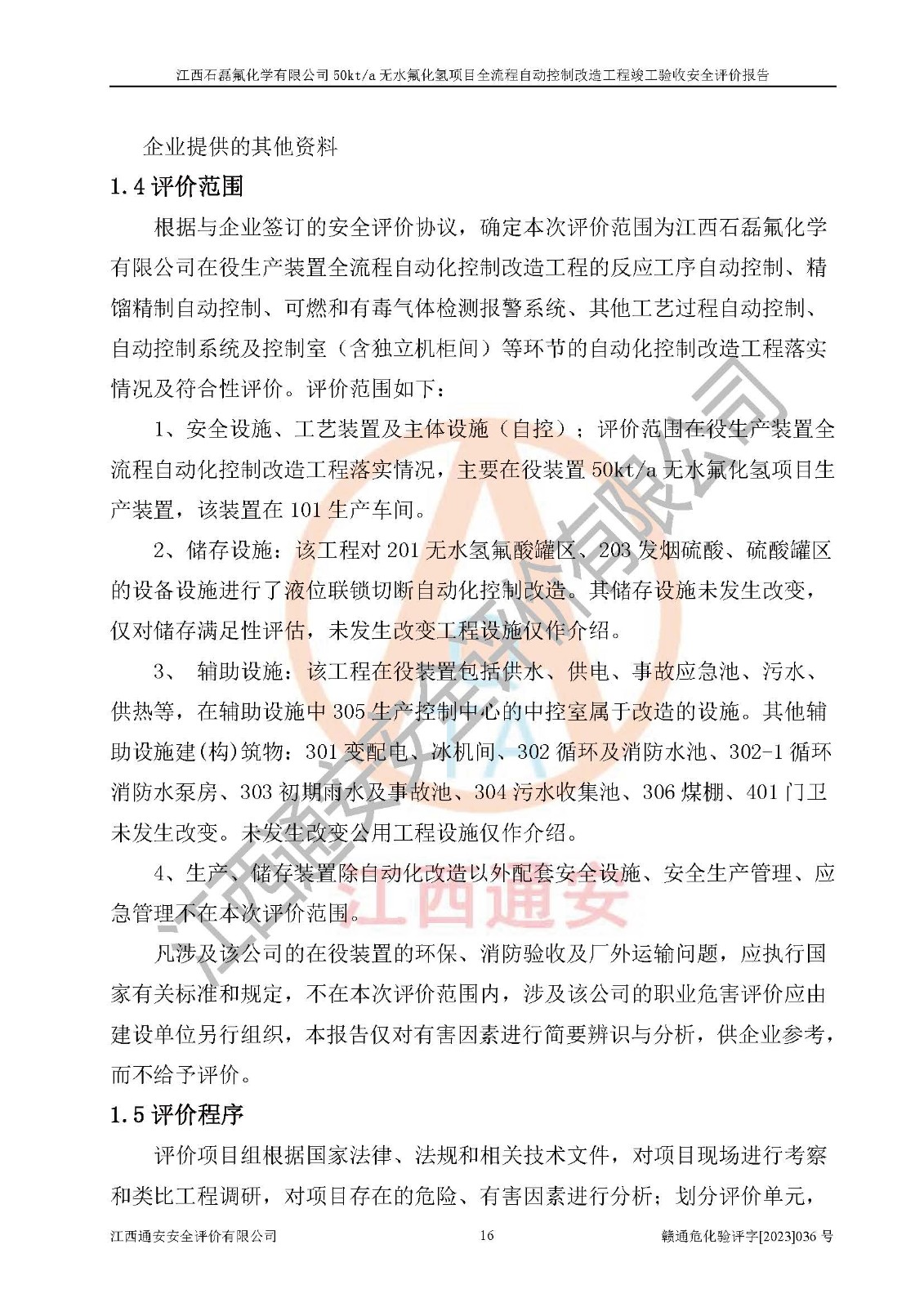 根據(jù)江西石磊氟化學(xué)有限公司提供的技術(shù)資料,通過(guò)現(xiàn)場(chǎng)檢查以及對(duì)主要危險(xiǎn)有害因素分析,以及采用定性、定量評(píng)價(jià)法進(jìn)行評(píng)價(jià)和分析,依據(jù)**相關(guān)法規(guī)標(biāo)準(zhǔn),得出評(píng)價(jià)結(jié)論。 1、該工程涉及的危險(xiǎn)化學(xué)品有:氟化氫、氫氟酸、硫酸、發(fā)煙硫酸、氟硅酸、煤氣、柴油(柴油發(fā)電機(jī)用)。 2、該工程中存在的主要危險(xiǎn)有:火災(zāi)、爆炸、中毒窒息、灼燙、觸電、機(jī)械傷害、高處墜落、起重傷害、凍傷、淹溺等。其中火災(zāi)爆炸、中毒和窒息是*主要的危險(xiǎn)因素。 3、該工程涉及的各種化學(xué)品中,硫酸屬于第三類易制毒危險(xiǎn)化學(xué)品,不涉及易制爆化學(xué)品。 4、本項(xiàng)目所涉及的原輔材料及產(chǎn)品、中間產(chǎn)品、副產(chǎn)品中,氟化氫、氫氟酸、CO(存在于發(fā)生爐煤氣中)屬于重點(diǎn)監(jiān)管的危險(xiǎn)化學(xué)品。不涉及特別管控危險(xiǎn)化學(xué)品。 5、該工程項(xiàng)目涉及的氟化氫、CO(存在于發(fā)生爐煤氣中)屬于高毒物品。 6、本項(xiàng)目煤焦油的危險(xiǎn)性類別包括致癌性,類別1A,根據(jù)《職業(yè)性接觸毒物危害程度分級(jí)》(GBZ 230-2010)的規(guī)定:屬于明確人類致癌物的,直接列為極度危害。因此本項(xiàng)目煤焦油為極度危害介質(zhì)。 7、該公司201AHF儲(chǔ)罐區(qū)儲(chǔ)存單元構(gòu)成**危險(xiǎn)化學(xué)品重大危險(xiǎn)源,202有水酸生產(chǎn)裝置區(qū)生產(chǎn)單元構(gòu)成四級(jí)危險(xiǎn)化學(xué)品重大危險(xiǎn)源 8、根據(jù)《**安全監(jiān)管總局關(guān)于公布首批重點(diǎn)監(jiān)管的危險(xiǎn)化工工藝目錄的通知》(安監(jiān)總管三〔2009〕116號(hào))和《**安全監(jiān)管總局關(guān)于公布第二批重點(diǎn)監(jiān)管危險(xiǎn)化工工藝目錄和調(diào)整首批重點(diǎn)監(jiān)管危險(xiǎn)化工工藝中部分典型工藝的通知》(安監(jiān)總管三〔2013〕3號(hào))進(jìn)行危險(xiǎn)工藝辨識(shí):該工程無(wú)水氟化氫(AHF)生產(chǎn)裝置生產(chǎn)過(guò)程涉及的氟化工藝為重點(diǎn)監(jiān)管的危險(xiǎn)化工工藝。 9、江西石磊氟化學(xué)有限公司50kt/a無(wú)水氟化氫項(xiàng)目自動(dòng)控制技術(shù)改造工程的設(shè)計(jì)、安裝施工和調(diào)試單位的資質(zhì)均符合要求。 10、江西石磊氟化學(xué)有限公司50kt/a無(wú)水氟化氫項(xiàng)目全流程自動(dòng)控制改造設(shè)計(jì)方案中提出的控制措施已得到落實(shí),企業(yè)控制系統(tǒng)設(shè)置情況與設(shè)計(jì)方案一致,設(shè)計(jì)、施工和調(diào)試單位由有**相應(yīng)資質(zhì)的自控系統(tǒng)施工單位進(jìn)行施工,并對(duì)自動(dòng)控制系統(tǒng)調(diào)試合格,出具了竣工圖,安全設(shè)施及安全管理符合**及有關(guān)部門(mén)關(guān)于安全生產(chǎn)法律、法規(guī)、標(biāo)準(zhǔn)的要求,安全風(fēng)險(xiǎn)程度是可以接受的,安全風(fēng)險(xiǎn)可控,滿足《江西省應(yīng)急管理廳關(guān)于印發(fā)<江西省化工企業(yè)自動(dòng)化提升實(shí)施方案>(試行)的通知》(贛應(yīng)急字[2021]190號(hào))的要求,具備全流程自動(dòng)控制改造工程竣工驗(yàn)收條件。 |