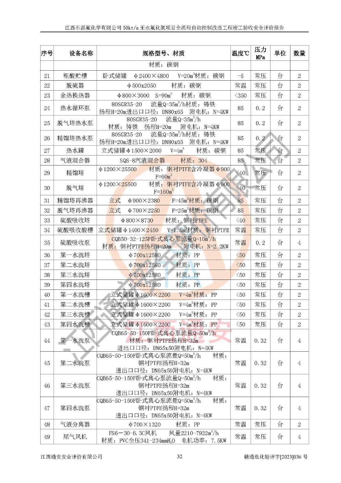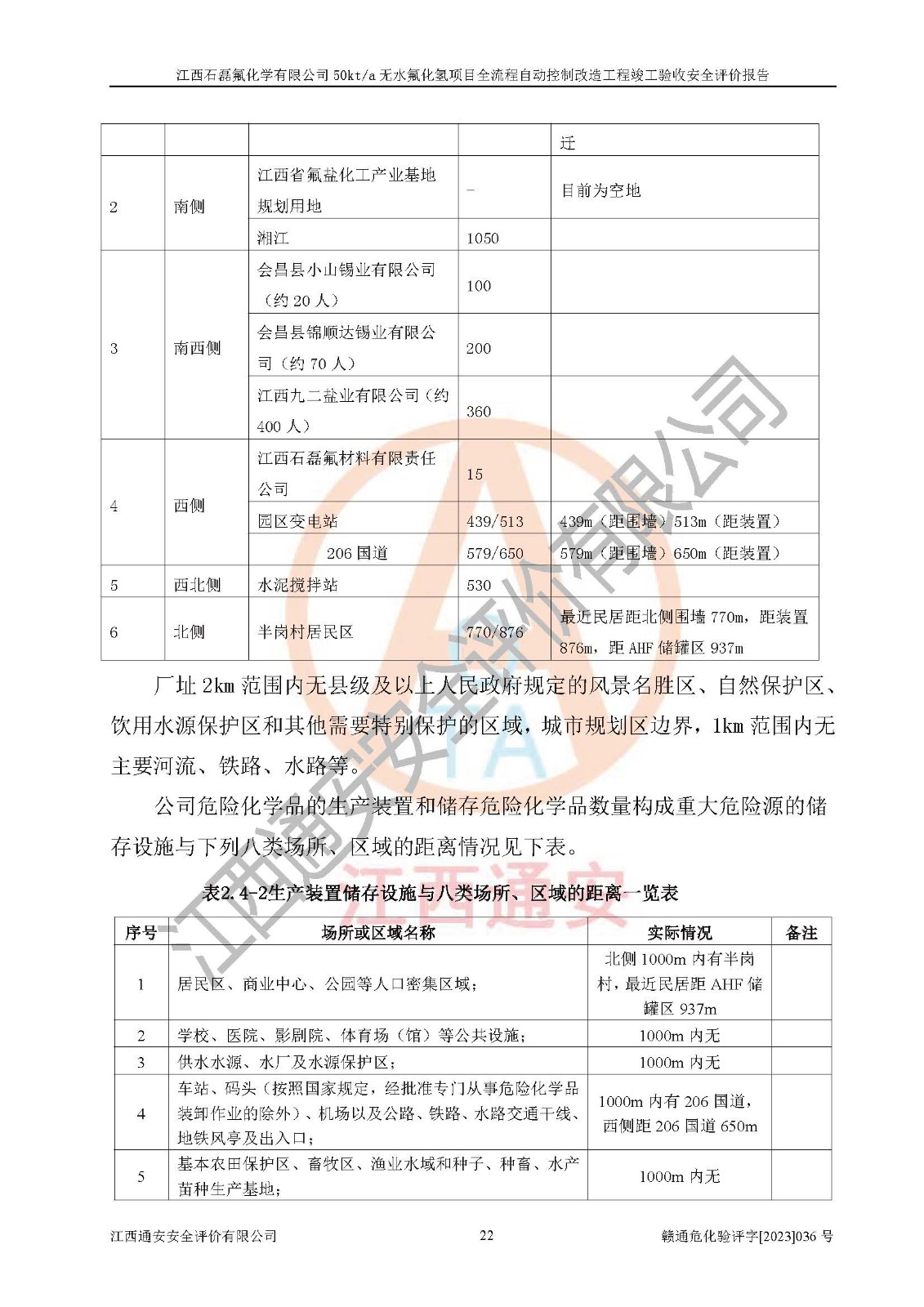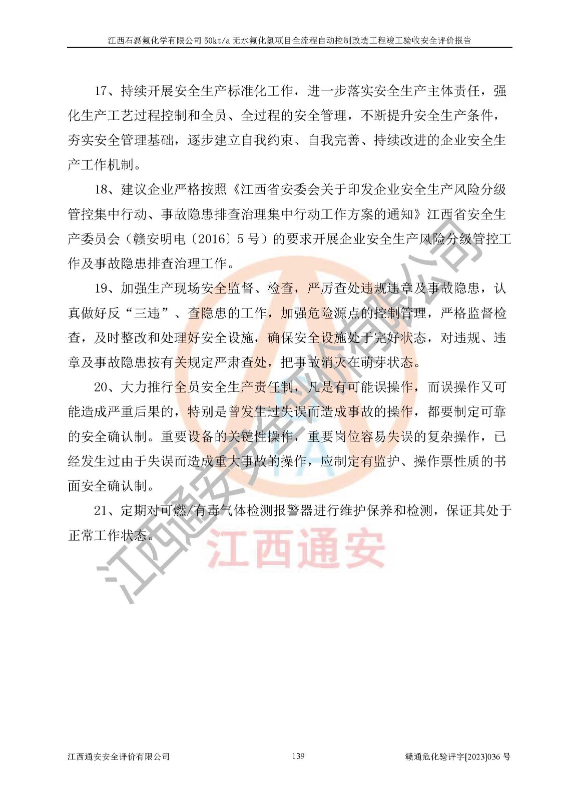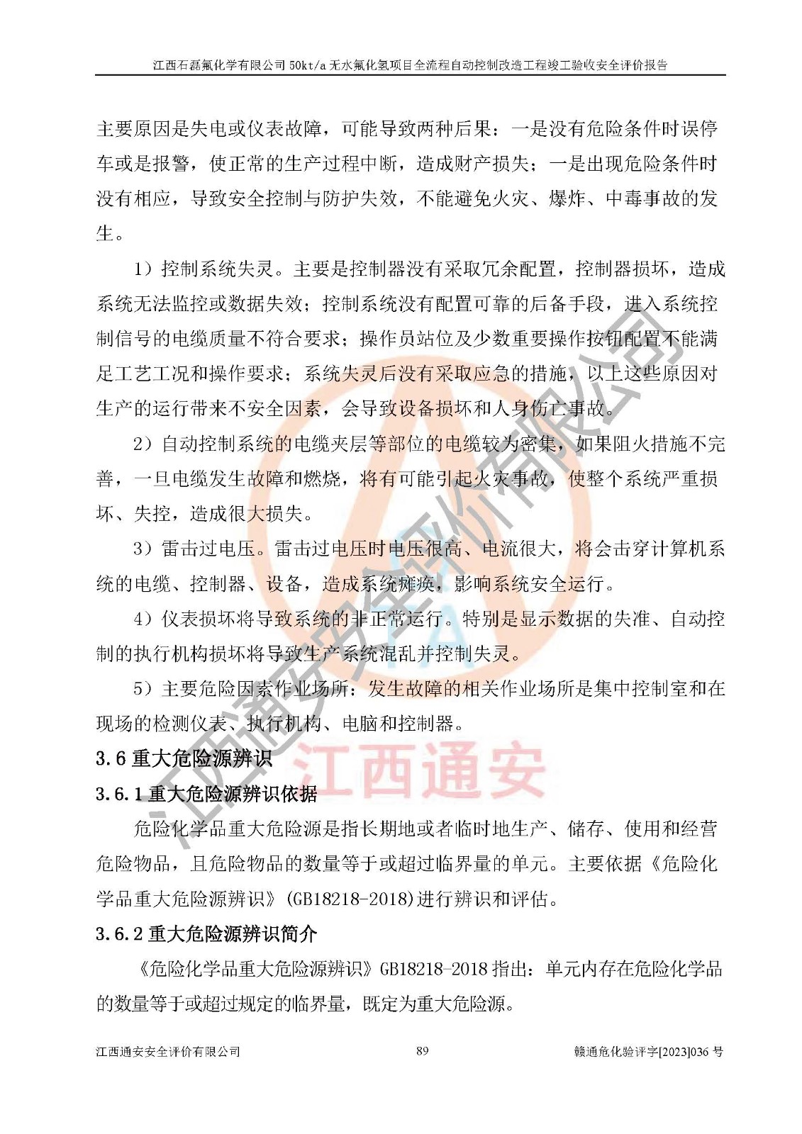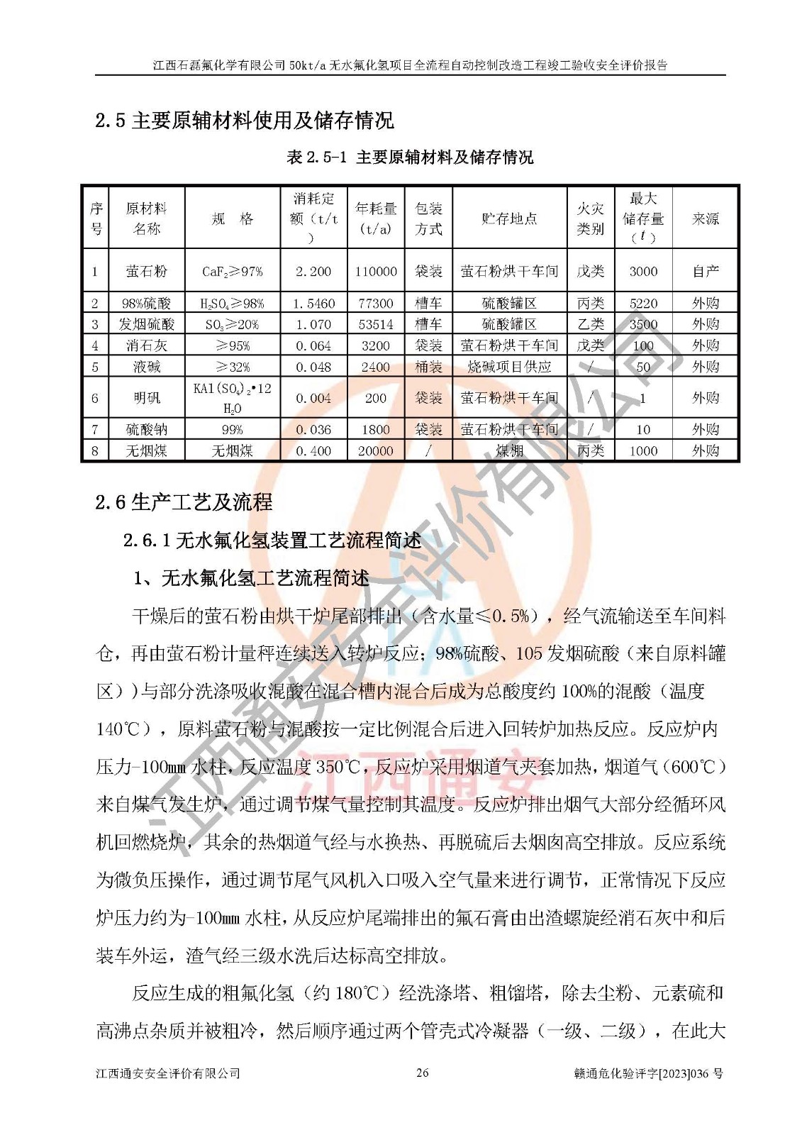 根據(jù)江西石磊氟化學(xué)有限公司提供的技術(shù)資料,通過(guò)現(xiàn)場(chǎng)檢查以及對(duì)主要危險(xiǎn)有害因素分析,以及采用定性、定量評(píng)價(jià)法進(jìn)行評(píng)價(jià)和分析,依據(jù)**相關(guān)法規(guī)標(biāo)準(zhǔn),得出評(píng)價(jià)結(jié)論。 1、該工程涉及的危險(xiǎn)化學(xué)品有:氟化氫、氫氟酸、硫酸、發(fā)煙硫酸、氟硅酸、煤氣、柴油(柴油發(fā)電機(jī)用)。 2、該工程中存在的主要危險(xiǎn)有:火災(zāi)、爆炸、中毒窒息、灼燙、觸電、機(jī)械傷害、高處墜落、起重傷害、凍傷、淹溺等。其中火災(zāi)爆炸、中毒和窒息是*主要的危險(xiǎn)因素。 3、該工程涉及的各種化學(xué)品中,硫酸屬于第三類易制毒危險(xiǎn)化學(xué)品,不涉及易制爆化學(xué)品。 4、本項(xiàng)目所涉及的原輔材料及產(chǎn)品、中間產(chǎn)品、副產(chǎn)品中,氟化氫、氫氟酸、CO(存在于發(fā)生爐煤氣中)屬于重點(diǎn)監(jiān)管的危險(xiǎn)化學(xué)品。不涉及特別管控危險(xiǎn)化學(xué)品。 5、該工程項(xiàng)目涉及的氟化氫、CO(存在于發(fā)生爐煤氣中)屬于高毒物品。 6、本項(xiàng)目煤焦油的危險(xiǎn)性類別包括致癌性,類別1A,根據(jù)《職業(yè)性接觸毒物危害程度分級(jí)》(GBZ 230-2010)的規(guī)定:屬于明確人類致癌物的,直接列為極度危害。因此本項(xiàng)目煤焦油為極度危害介質(zhì)。 7、該公司201AHF儲(chǔ)罐區(qū)儲(chǔ)存單元構(gòu)成**危險(xiǎn)化學(xué)品重大危險(xiǎn)源,202有水酸生產(chǎn)裝置區(qū)生產(chǎn)單元構(gòu)成四級(jí)危險(xiǎn)化學(xué)品重大危險(xiǎn)源 8、根據(jù)《**安全監(jiān)管總局關(guān)于公布首批重點(diǎn)監(jiān)管的危險(xiǎn)化工工藝目錄的通知》(安監(jiān)總管三〔2009〕116號(hào))和《**安全監(jiān)管總局關(guān)于公布第二批重點(diǎn)監(jiān)管危險(xiǎn)化工工藝目錄和調(diào)整首批重點(diǎn)監(jiān)管危險(xiǎn)化工工藝中部分典型工藝的通知》(安監(jiān)總管三〔2013〕3號(hào))進(jìn)行危險(xiǎn)工藝辨識(shí):該工程無(wú)水氟化氫(AHF)生產(chǎn)裝置生產(chǎn)過(guò)程涉及的氟化工藝為重點(diǎn)監(jiān)管的危險(xiǎn)化工工藝。 9、江西石磊氟化學(xué)有限公司50kt/a無(wú)水氟化氫項(xiàng)目自動(dòng)控制技術(shù)改造工程的設(shè)計(jì)、安裝施工和調(diào)試單位的資質(zhì)均符合要求。 10、江西石磊氟化學(xué)有限公司50kt/a無(wú)水氟化氫項(xiàng)目全流程自動(dòng)控制改造設(shè)計(jì)方案中提出的控制措施已得到落實(shí),企業(yè)控制系統(tǒng)設(shè)置情況與設(shè)計(jì)方案一致,設(shè)計(jì)、施工和調(diào)試單位由有**相應(yīng)資質(zhì)的自控系統(tǒng)施工單位進(jìn)行施工,并對(duì)自動(dòng)控制系統(tǒng)調(diào)試合格,出具了竣工圖,安全設(shè)施及安全管理符合**及有關(guān)部門(mén)關(guān)于安全生產(chǎn)法律、法規(guī)、標(biāo)準(zhǔn)的要求,安全風(fēng)險(xiǎn)程度是可以接受的,安全風(fēng)險(xiǎn)可控,滿足《江西省應(yīng)急管理廳關(guān)于印發(fā)<江西省化工企業(yè)自動(dòng)化提升實(shí)施方案>(試行)的通知》(贛應(yīng)急字[2021]190號(hào))的要求,具備全流程自動(dòng)控制改造工程竣工驗(yàn)收條件。 |