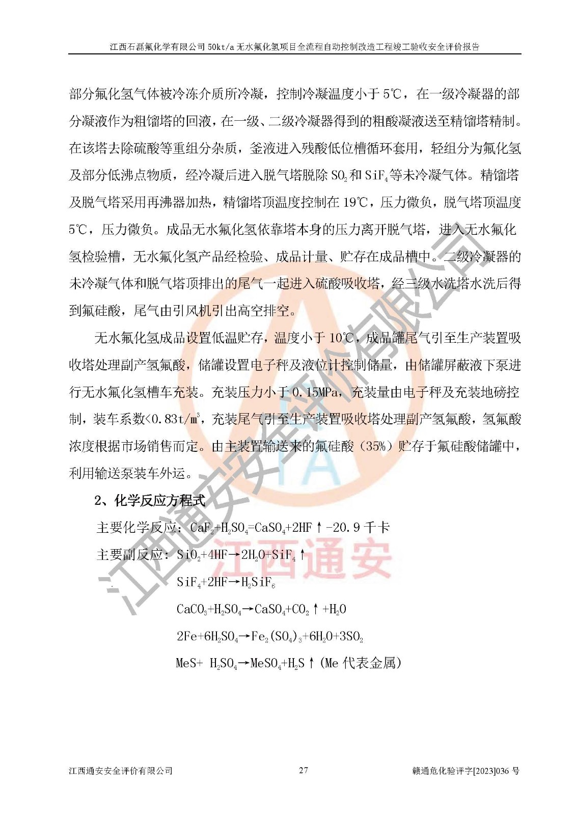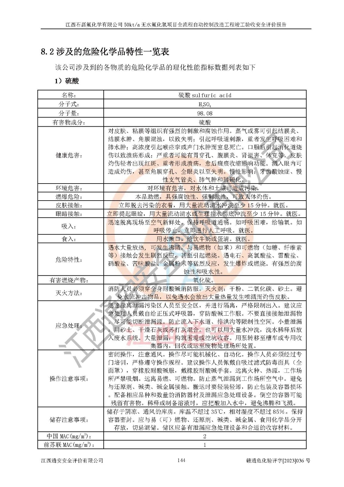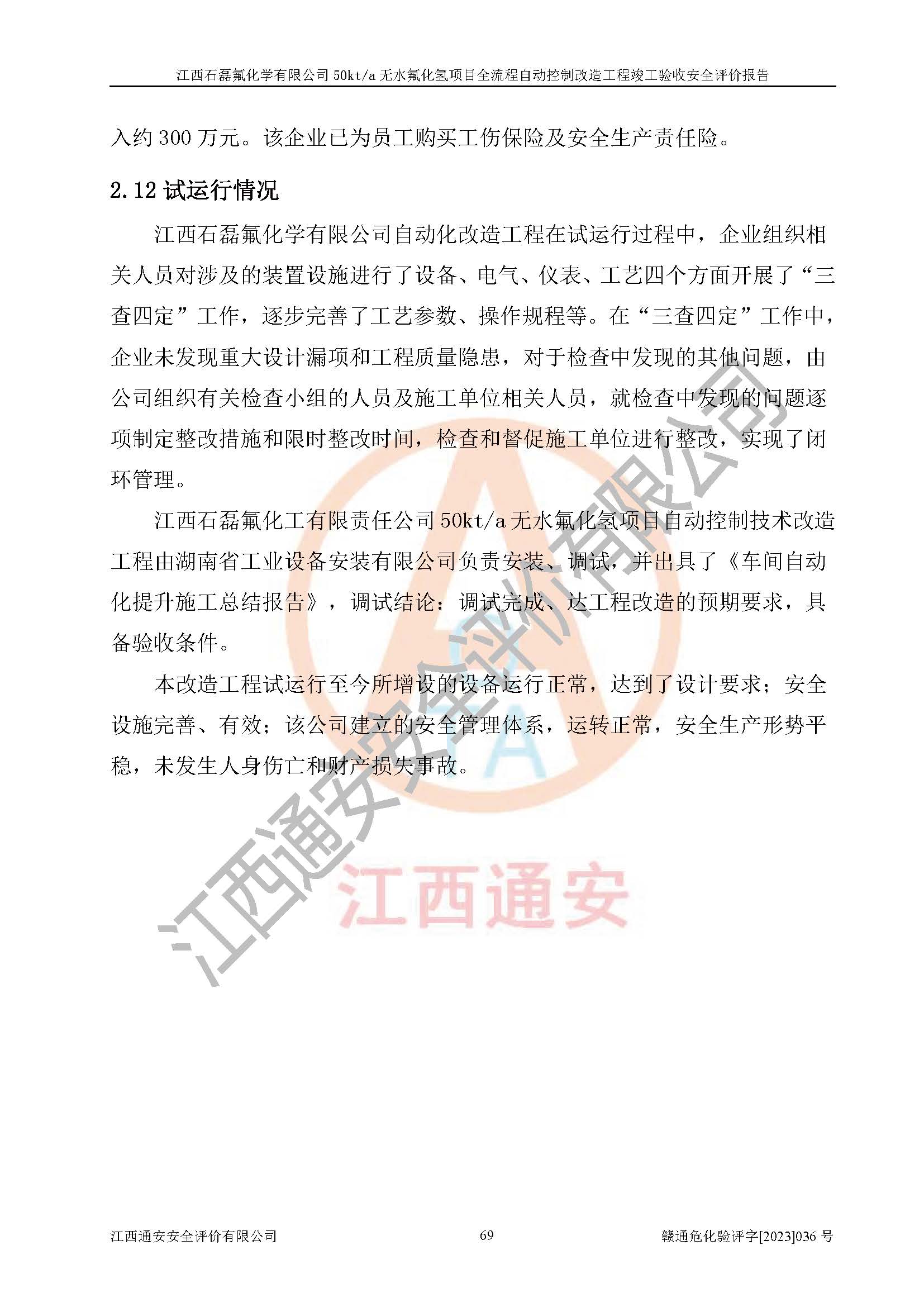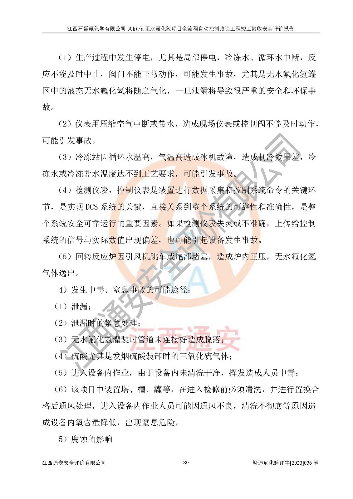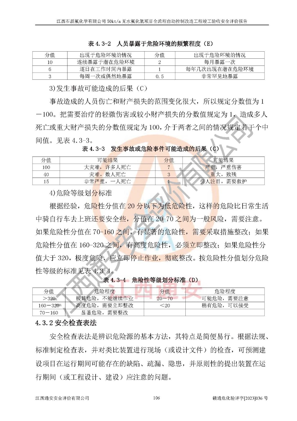 根據(jù)江西石磊氟化學(xué)有限公司提供的技術(shù)資料,通過(guò)現(xiàn)場(chǎng)檢查以及對(duì)主要危險(xiǎn)有害因素分析,以及采用定性、定量評(píng)價(jià)法進(jìn)行評(píng)價(jià)和分析,依據(jù)**相關(guān)法規(guī)標(biāo)準(zhǔn),得出評(píng)價(jià)結(jié)論。 1、該工程涉及的危險(xiǎn)化學(xué)品有:氟化氫、氫氟酸、硫酸、發(fā)煙硫酸、氟硅酸、煤氣、柴油(柴油發(fā)電機(jī)用)。 2、該工程中存在的主要危險(xiǎn)有:火災(zāi)、爆炸、中毒窒息、灼燙、觸電、機(jī)械傷害、高處墜落、起重傷害、凍傷、淹溺等。其中火災(zāi)爆炸、中毒和窒息是*主要的危險(xiǎn)因素。 3、該工程涉及的各種化學(xué)品中,硫酸屬于第三類易制毒危險(xiǎn)化學(xué)品,不涉及易制爆化學(xué)品。 4、本項(xiàng)目所涉及的原輔材料及產(chǎn)品、中間產(chǎn)品、副產(chǎn)品中,氟化氫、氫氟酸、CO(存在于發(fā)生爐煤氣中)屬于重點(diǎn)監(jiān)管的危險(xiǎn)化學(xué)品。不涉及特別管控危險(xiǎn)化學(xué)品。 5、該工程項(xiàng)目涉及的氟化氫、CO(存在于發(fā)生爐煤氣中)屬于高毒物品。 6、本項(xiàng)目煤焦油的危險(xiǎn)性類別包括致癌性,類別1A,根據(jù)《職業(yè)性接觸毒物危害程度分級(jí)》(GBZ 230-2010)的規(guī)定:屬于明確人類致癌物的,直接列為極度危害。因此本項(xiàng)目煤焦油為極度危害介質(zhì)。 7、該公司201AHF儲(chǔ)罐區(qū)儲(chǔ)存單元構(gòu)成**危險(xiǎn)化學(xué)品重大危險(xiǎn)源,202有水酸生產(chǎn)裝置區(qū)生產(chǎn)單元構(gòu)成四級(jí)危險(xiǎn)化學(xué)品重大危險(xiǎn)源 8、根據(jù)《**安全監(jiān)管總局關(guān)于公布首批重點(diǎn)監(jiān)管的危險(xiǎn)化工工藝目錄的通知》(安監(jiān)總管三〔2009〕116號(hào))和《**安全監(jiān)管總局關(guān)于公布第二批重點(diǎn)監(jiān)管危險(xiǎn)化工工藝目錄和調(diào)整首批重點(diǎn)監(jiān)管危險(xiǎn)化工工藝中部分典型工藝的通知》(安監(jiān)總管三〔2013〕3號(hào))進(jìn)行危險(xiǎn)工藝辨識(shí):該工程無(wú)水氟化氫(AHF)生產(chǎn)裝置生產(chǎn)過(guò)程涉及的氟化工藝為重點(diǎn)監(jiān)管的危險(xiǎn)化工工藝。 9、江西石磊氟化學(xué)有限公司50kt/a無(wú)水氟化氫項(xiàng)目自動(dòng)控制技術(shù)改造工程的設(shè)計(jì)、安裝施工和調(diào)試單位的資質(zhì)均符合要求。 10、江西石磊氟化學(xué)有限公司50kt/a無(wú)水氟化氫項(xiàng)目全流程自動(dòng)控制改造設(shè)計(jì)方案中提出的控制措施已得到落實(shí),企業(yè)控制系統(tǒng)設(shè)置情況與設(shè)計(jì)方案一致,設(shè)計(jì)、施工和調(diào)試單位由有**相應(yīng)資質(zhì)的自控系統(tǒng)施工單位進(jìn)行施工,并對(duì)自動(dòng)控制系統(tǒng)調(diào)試合格,出具了竣工圖,安全設(shè)施及安全管理符合**及有關(guān)部門(mén)關(guān)于安全生產(chǎn)法律、法規(guī)、標(biāo)準(zhǔn)的要求,安全風(fēng)險(xiǎn)程度是可以接受的,安全風(fēng)險(xiǎn)可控,滿足《江西省應(yīng)急管理廳關(guān)于印發(fā)<江西省化工企業(yè)自動(dòng)化提升實(shí)施方案>(試行)的通知》(贛應(yīng)急字[2021]190號(hào))的要求,具備全流程自動(dòng)控制改造工程竣工驗(yàn)收條件。 |