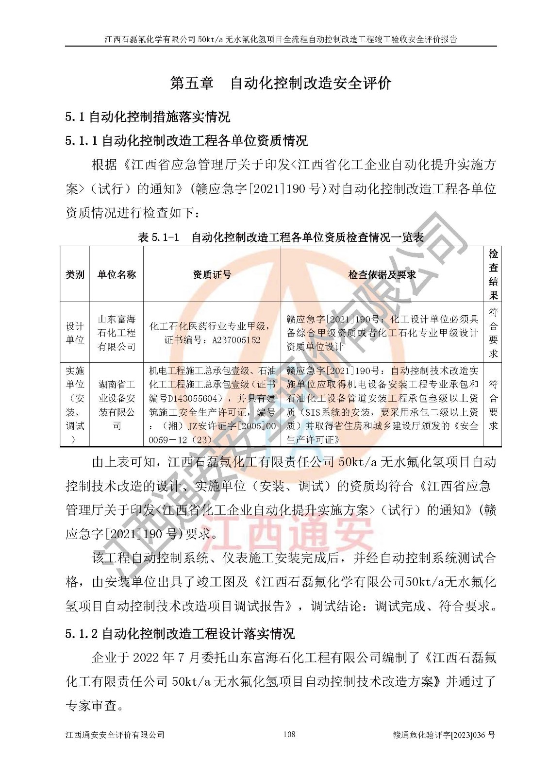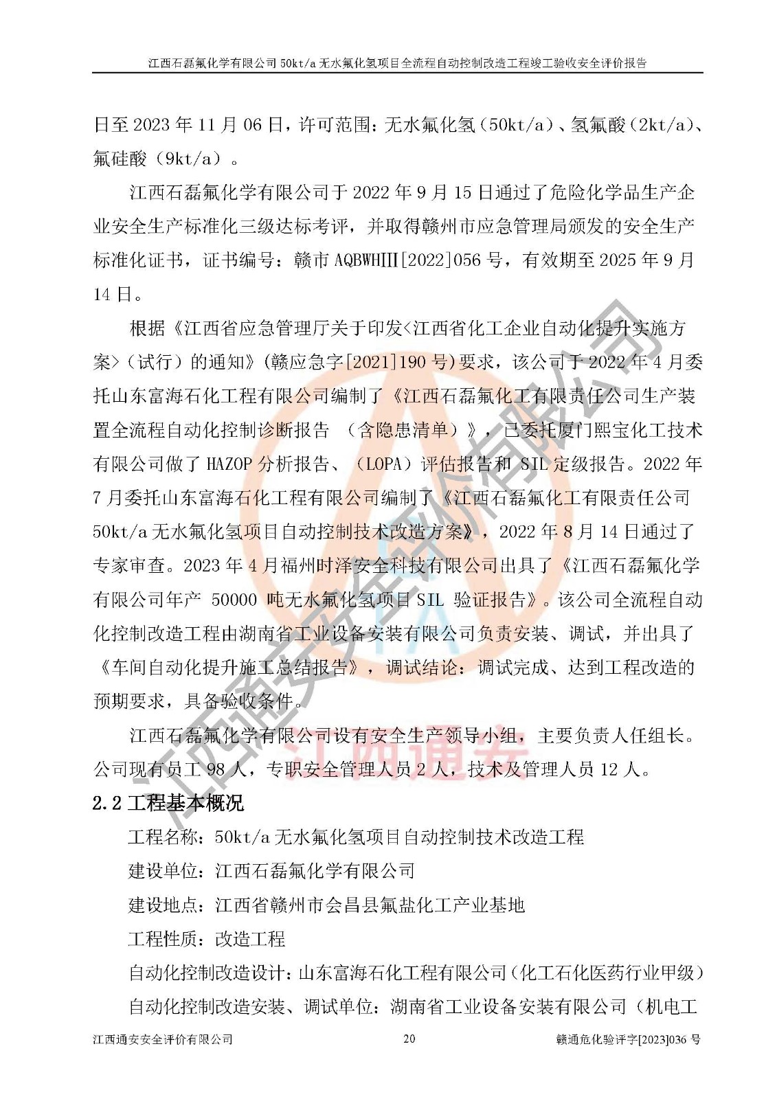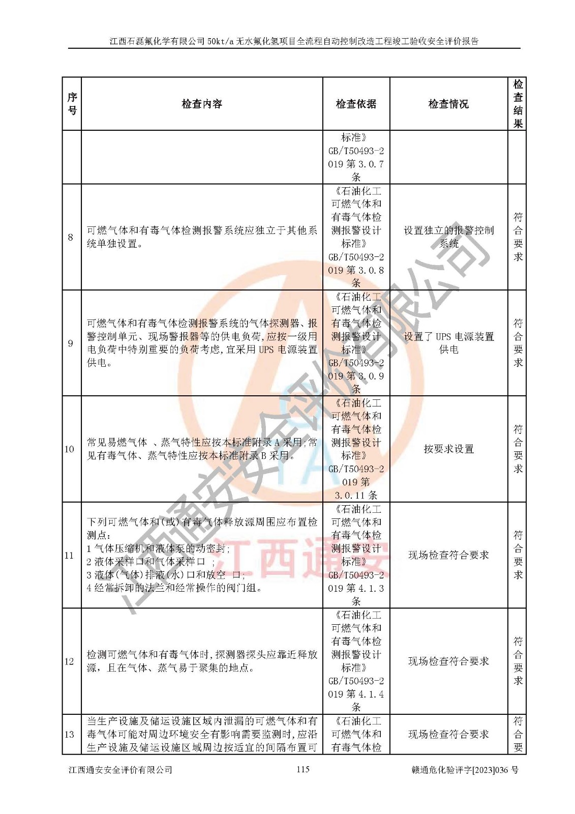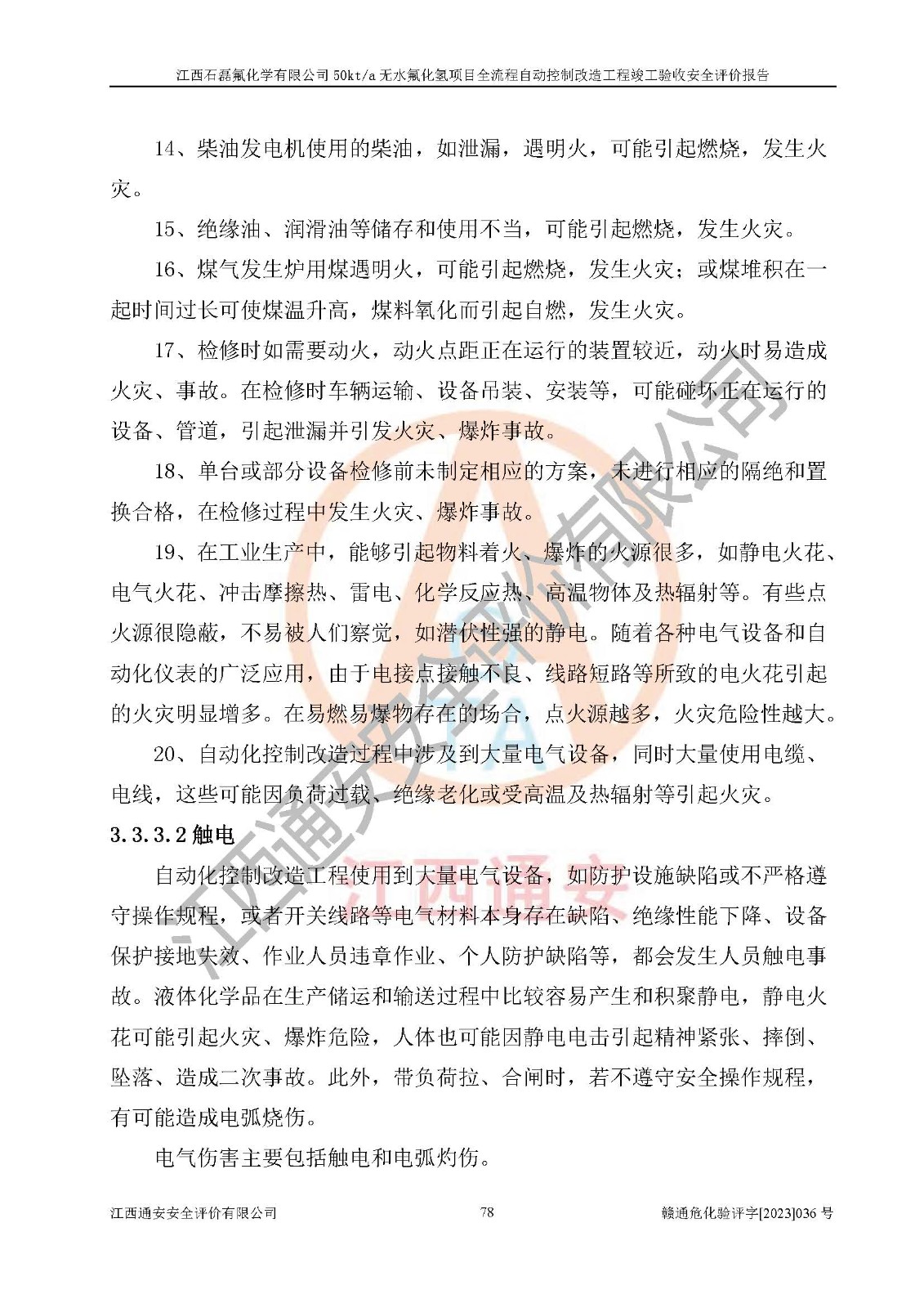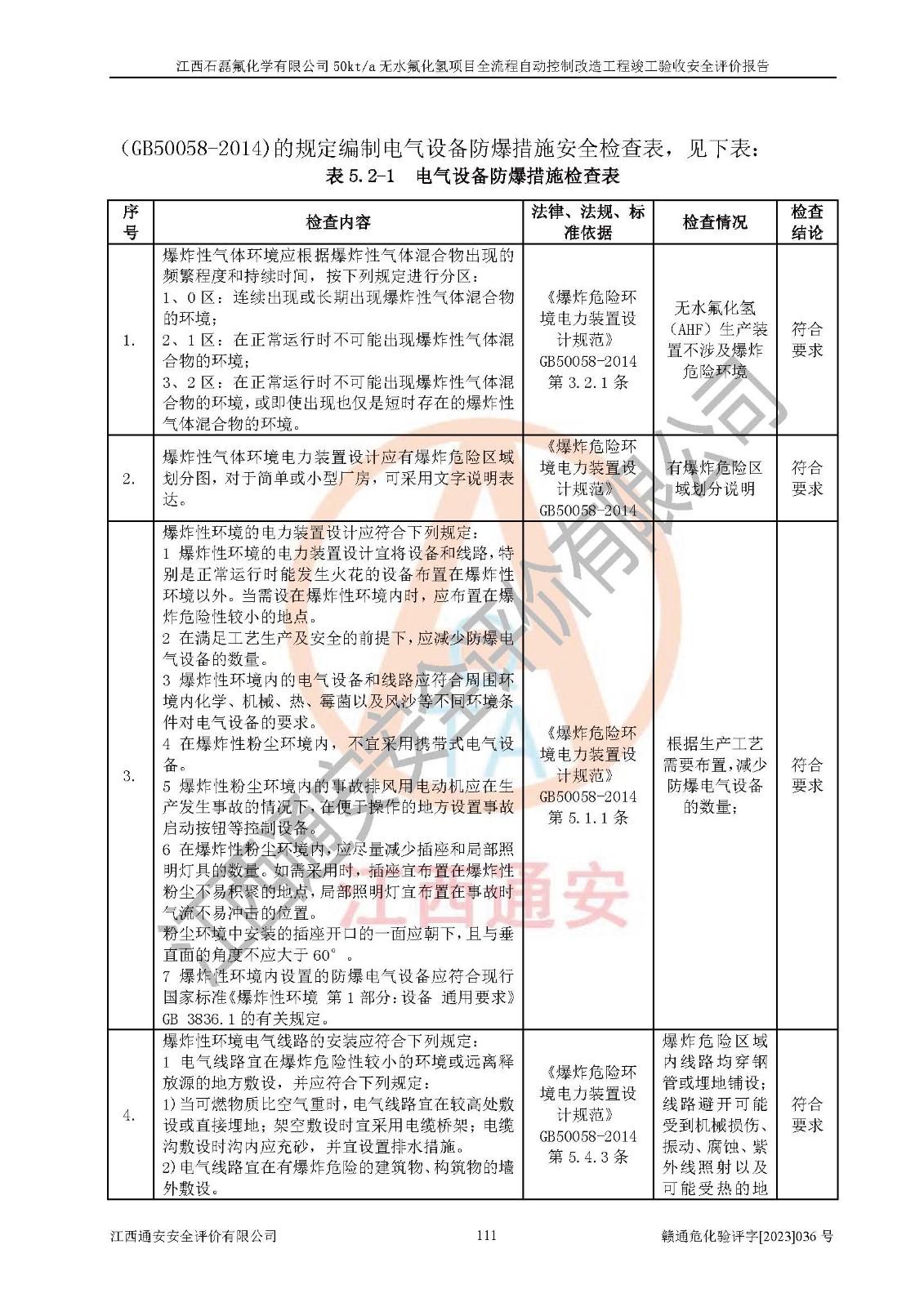 根據(jù)江西石磊氟化學(xué)有限公司提供的技術(shù)資料,通過(guò)現(xiàn)場(chǎng)檢查以及對(duì)主要危險(xiǎn)有害因素分析,以及采用定性、定量評(píng)價(jià)法進(jìn)行評(píng)價(jià)和分析,依據(jù)**相關(guān)法規(guī)標(biāo)準(zhǔn),得出評(píng)價(jià)結(jié)論。 1、該工程涉及的危險(xiǎn)化學(xué)品有:氟化氫、氫氟酸、硫酸、發(fā)煙硫酸、氟硅酸、煤氣、柴油(柴油發(fā)電機(jī)用)。 2、該工程中存在的主要危險(xiǎn)有:火災(zāi)、爆炸、中毒窒息、灼燙、觸電、機(jī)械傷害、高處墜落、起重傷害、凍傷、淹溺等。其中火災(zāi)爆炸、中毒和窒息是*主要的危險(xiǎn)因素。 3、該工程涉及的各種化學(xué)品中,硫酸屬于第三類易制毒危險(xiǎn)化學(xué)品,不涉及易制爆化學(xué)品。 4、本項(xiàng)目所涉及的原輔材料及產(chǎn)品、中間產(chǎn)品、副產(chǎn)品中,氟化氫、氫氟酸、CO(存在于發(fā)生爐煤氣中)屬于重點(diǎn)監(jiān)管的危險(xiǎn)化學(xué)品。不涉及特別管控危險(xiǎn)化學(xué)品。 5、該工程項(xiàng)目涉及的氟化氫、CO(存在于發(fā)生爐煤氣中)屬于高毒物品。 6、本項(xiàng)目煤焦油的危險(xiǎn)性類別包括致癌性,類別1A,根據(jù)《職業(yè)性接觸毒物危害程度分級(jí)》(GBZ 230-2010)的規(guī)定:屬于明確人類致癌物的,直接列為極度危害。因此本項(xiàng)目煤焦油為極度危害介質(zhì)。 7、該公司201AHF儲(chǔ)罐區(qū)儲(chǔ)存單元構(gòu)成**危險(xiǎn)化學(xué)品重大危險(xiǎn)源,202有水酸生產(chǎn)裝置區(qū)生產(chǎn)單元構(gòu)成四級(jí)危險(xiǎn)化學(xué)品重大危險(xiǎn)源 8、根據(jù)《**安全監(jiān)管總局關(guān)于公布首批重點(diǎn)監(jiān)管的危險(xiǎn)化工工藝目錄的通知》(安監(jiān)總管三〔2009〕116號(hào))和《**安全監(jiān)管總局關(guān)于公布第二批重點(diǎn)監(jiān)管危險(xiǎn)化工工藝目錄和調(diào)整首批重點(diǎn)監(jiān)管危險(xiǎn)化工工藝中部分典型工藝的通知》(安監(jiān)總管三〔2013〕3號(hào))進(jìn)行危險(xiǎn)工藝辨識(shí):該工程無(wú)水氟化氫(AHF)生產(chǎn)裝置生產(chǎn)過(guò)程涉及的氟化工藝為重點(diǎn)監(jiān)管的危險(xiǎn)化工工藝。 9、江西石磊氟化學(xué)有限公司50kt/a無(wú)水氟化氫項(xiàng)目自動(dòng)控制技術(shù)改造工程的設(shè)計(jì)、安裝施工和調(diào)試單位的資質(zhì)均符合要求。 10、江西石磊氟化學(xué)有限公司50kt/a無(wú)水氟化氫項(xiàng)目全流程自動(dòng)控制改造設(shè)計(jì)方案中提出的控制措施已得到落實(shí),企業(yè)控制系統(tǒng)設(shè)置情況與設(shè)計(jì)方案一致,設(shè)計(jì)、施工和調(diào)試單位由有**相應(yīng)資質(zhì)的自控系統(tǒng)施工單位進(jìn)行施工,并對(duì)自動(dòng)控制系統(tǒng)調(diào)試合格,出具了竣工圖,安全設(shè)施及安全管理符合**及有關(guān)部門(mén)關(guān)于安全生產(chǎn)法律、法規(guī)、標(biāo)準(zhǔn)的要求,安全風(fēng)險(xiǎn)程度是可以接受的,安全風(fēng)險(xiǎn)可控,滿足《江西省應(yīng)急管理廳關(guān)于印發(fā)<江西省化工企業(yè)自動(dòng)化提升實(shí)施方案>(試行)的通知》(贛應(yīng)急字[2021]190號(hào))的要求,具備全流程自動(dòng)控制改造工程竣工驗(yàn)收條件。 |