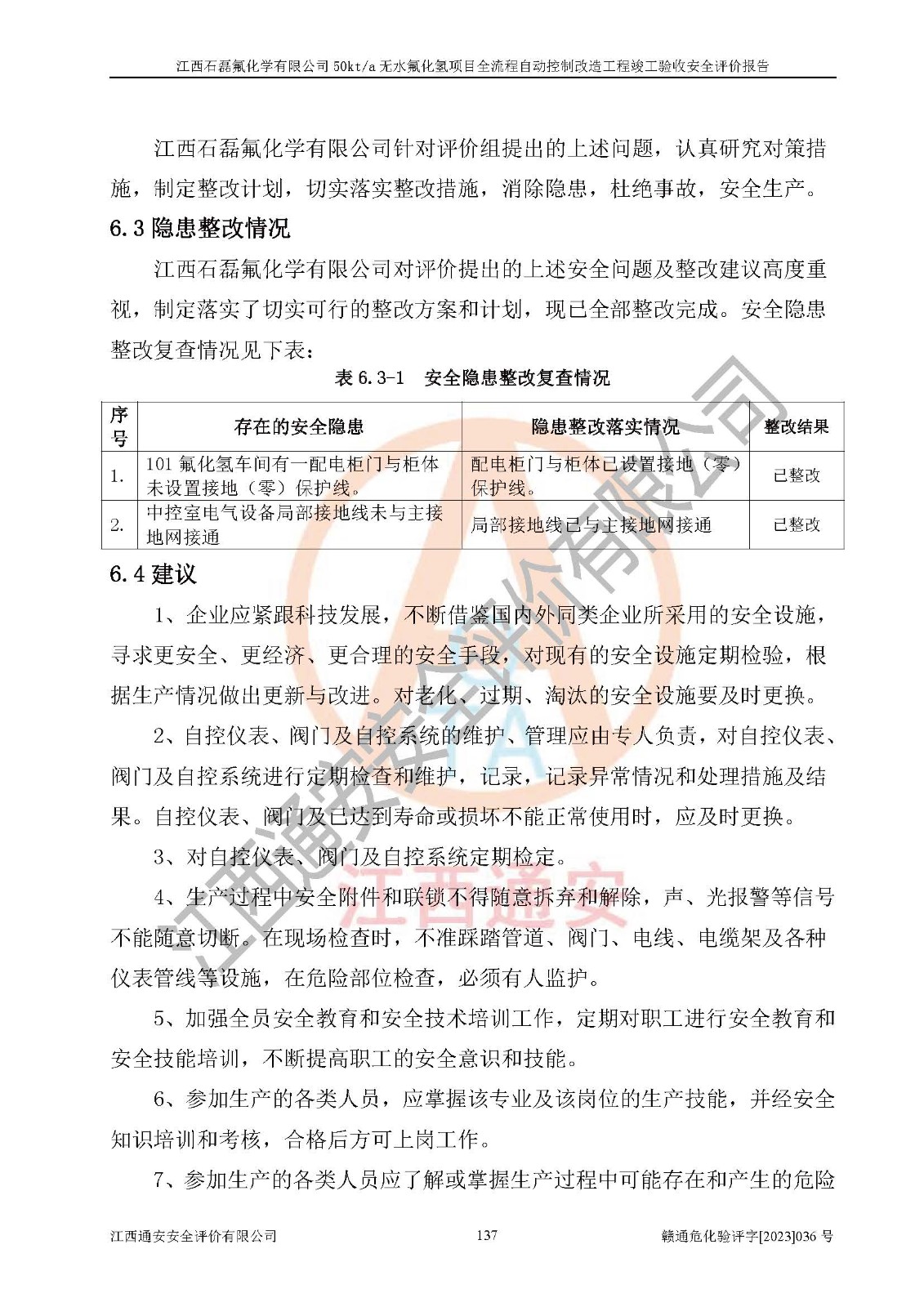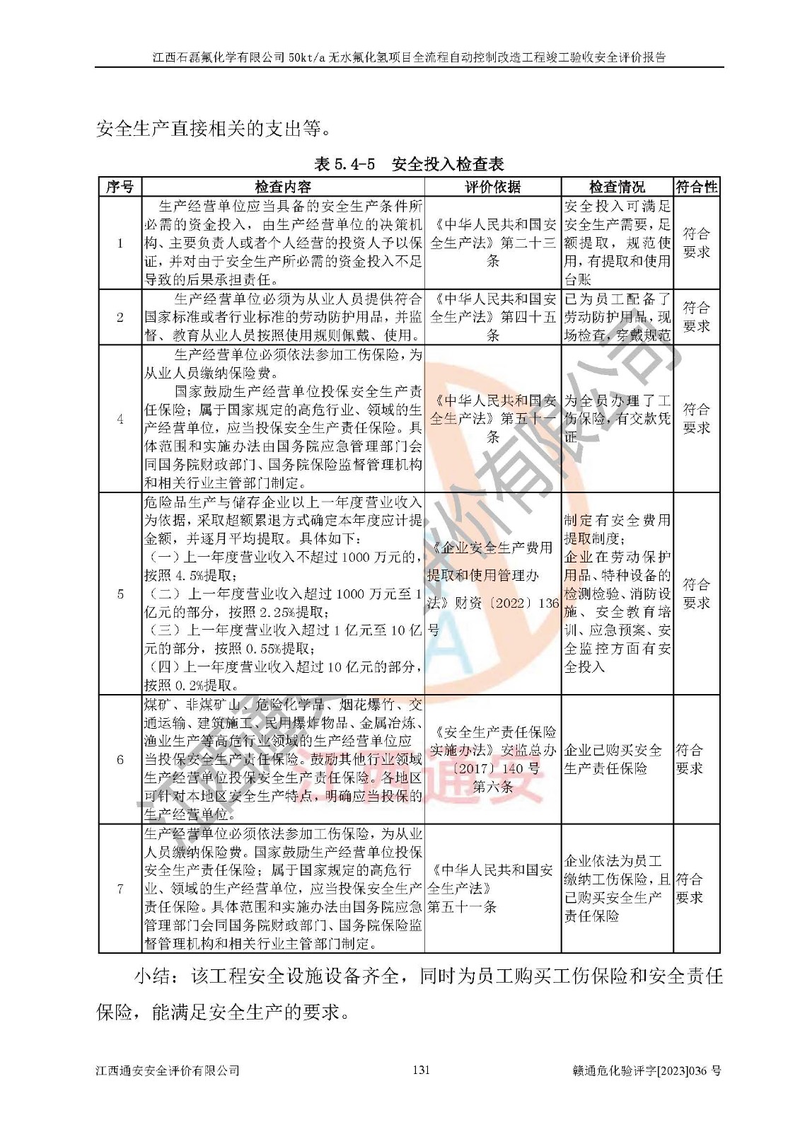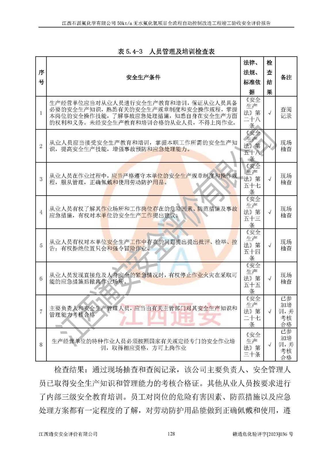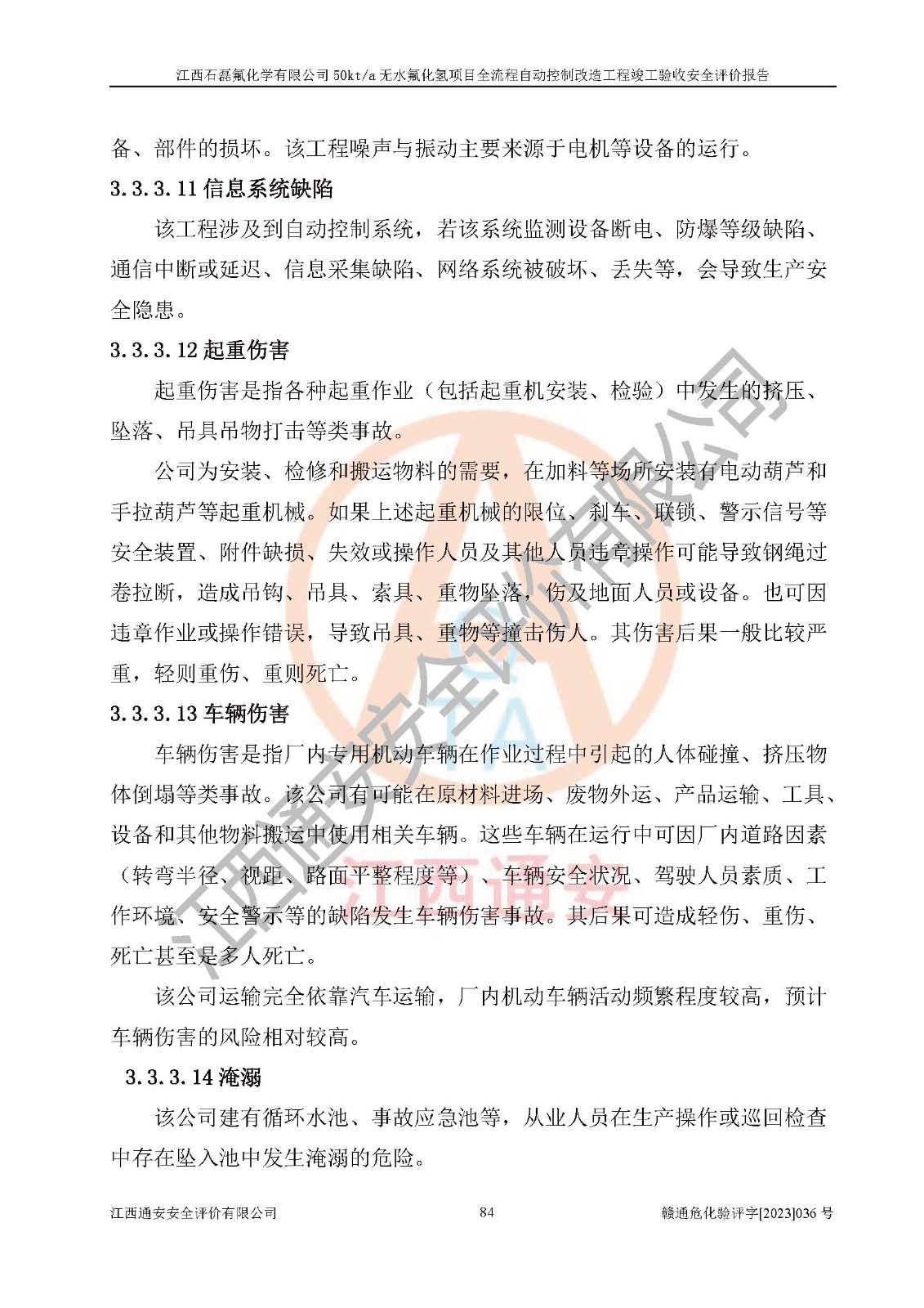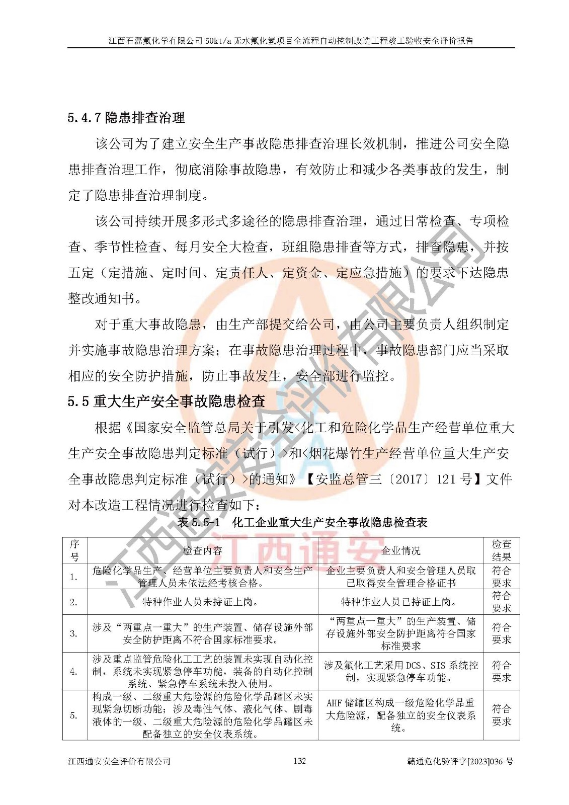 根據(jù)江西石磊氟化學(xué)有限公司提供的技術(shù)資料,通過(guò)現(xiàn)場(chǎng)檢查以及對(duì)主要危險(xiǎn)有害因素分析,以及采用定性、定量評(píng)價(jià)法進(jìn)行評(píng)價(jià)和分析,依據(jù)**相關(guān)法規(guī)標(biāo)準(zhǔn),得出評(píng)價(jià)結(jié)論。 1、該工程涉及的危險(xiǎn)化學(xué)品有:氟化氫、氫氟酸、硫酸、發(fā)煙硫酸、氟硅酸、煤氣、柴油(柴油發(fā)電機(jī)用)。 2、該工程中存在的主要危險(xiǎn)有:火災(zāi)、爆炸、中毒窒息、灼燙、觸電、機(jī)械傷害、高處墜落、起重傷害、凍傷、淹溺等。其中火災(zāi)爆炸、中毒和窒息是*主要的危險(xiǎn)因素。 3、該工程涉及的各種化學(xué)品中,硫酸屬于第三類易制毒危險(xiǎn)化學(xué)品,不涉及易制爆化學(xué)品。 4、本項(xiàng)目所涉及的原輔材料及產(chǎn)品、中間產(chǎn)品、副產(chǎn)品中,氟化氫、氫氟酸、CO(存在于發(fā)生爐煤氣中)屬于重點(diǎn)監(jiān)管的危險(xiǎn)化學(xué)品。不涉及特別管控危險(xiǎn)化學(xué)品。 5、該工程項(xiàng)目涉及的氟化氫、CO(存在于發(fā)生爐煤氣中)屬于高毒物品。 6、本項(xiàng)目煤焦油的危險(xiǎn)性類別包括致癌性,類別1A,根據(jù)《職業(yè)性接觸毒物危害程度分級(jí)》(GBZ 230-2010)的規(guī)定:屬于明確人類致癌物的,直接列為極度危害。因此本項(xiàng)目煤焦油為極度危害介質(zhì)。 7、該公司201AHF儲(chǔ)罐區(qū)儲(chǔ)存單元構(gòu)成**危險(xiǎn)化學(xué)品重大危險(xiǎn)源,202有水酸生產(chǎn)裝置區(qū)生產(chǎn)單元構(gòu)成四級(jí)危險(xiǎn)化學(xué)品重大危險(xiǎn)源 8、根據(jù)《**安全監(jiān)管總局關(guān)于公布首批重點(diǎn)監(jiān)管的危險(xiǎn)化工工藝目錄的通知》(安監(jiān)總管三〔2009〕116號(hào))和《**安全監(jiān)管總局關(guān)于公布第二批重點(diǎn)監(jiān)管危險(xiǎn)化工工藝目錄和調(diào)整首批重點(diǎn)監(jiān)管危險(xiǎn)化工工藝中部分典型工藝的通知》(安監(jiān)總管三〔2013〕3號(hào))進(jìn)行危險(xiǎn)工藝辨識(shí):該工程無(wú)水氟化氫(AHF)生產(chǎn)裝置生產(chǎn)過(guò)程涉及的氟化工藝為重點(diǎn)監(jiān)管的危險(xiǎn)化工工藝。 9、江西石磊氟化學(xué)有限公司50kt/a無(wú)水氟化氫項(xiàng)目自動(dòng)控制技術(shù)改造工程的設(shè)計(jì)、安裝施工和調(diào)試單位的資質(zhì)均符合要求。 10、江西石磊氟化學(xué)有限公司50kt/a無(wú)水氟化氫項(xiàng)目全流程自動(dòng)控制改造設(shè)計(jì)方案中提出的控制措施已得到落實(shí),企業(yè)控制系統(tǒng)設(shè)置情況與設(shè)計(jì)方案一致,設(shè)計(jì)、施工和調(diào)試單位由有**相應(yīng)資質(zhì)的自控系統(tǒng)施工單位進(jìn)行施工,并對(duì)自動(dòng)控制系統(tǒng)調(diào)試合格,出具了竣工圖,安全設(shè)施及安全管理符合**及有關(guān)部門(mén)關(guān)于安全生產(chǎn)法律、法規(guī)、標(biāo)準(zhǔn)的要求,安全風(fēng)險(xiǎn)程度是可以接受的,安全風(fēng)險(xiǎn)可控,滿足《江西省應(yīng)急管理廳關(guān)于印發(fā)<江西省化工企業(yè)自動(dòng)化提升實(shí)施方案>(試行)的通知》(贛應(yīng)急字[2021]190號(hào))的要求,具備全流程自動(dòng)控制改造工程竣工驗(yàn)收條件。 |