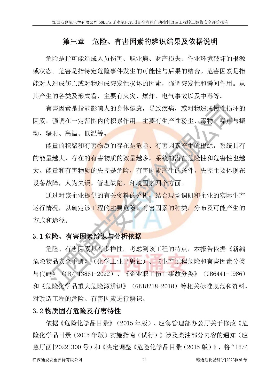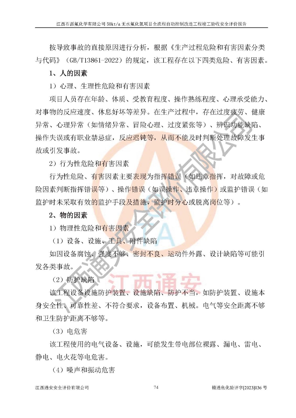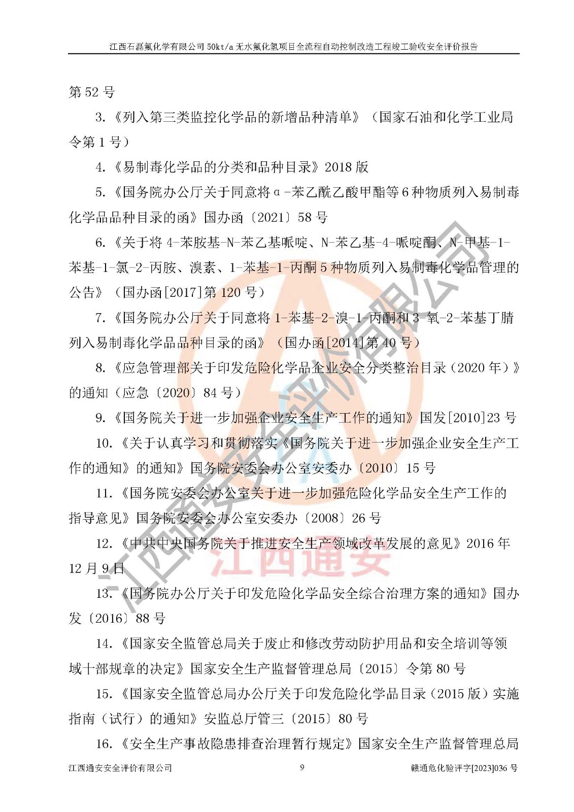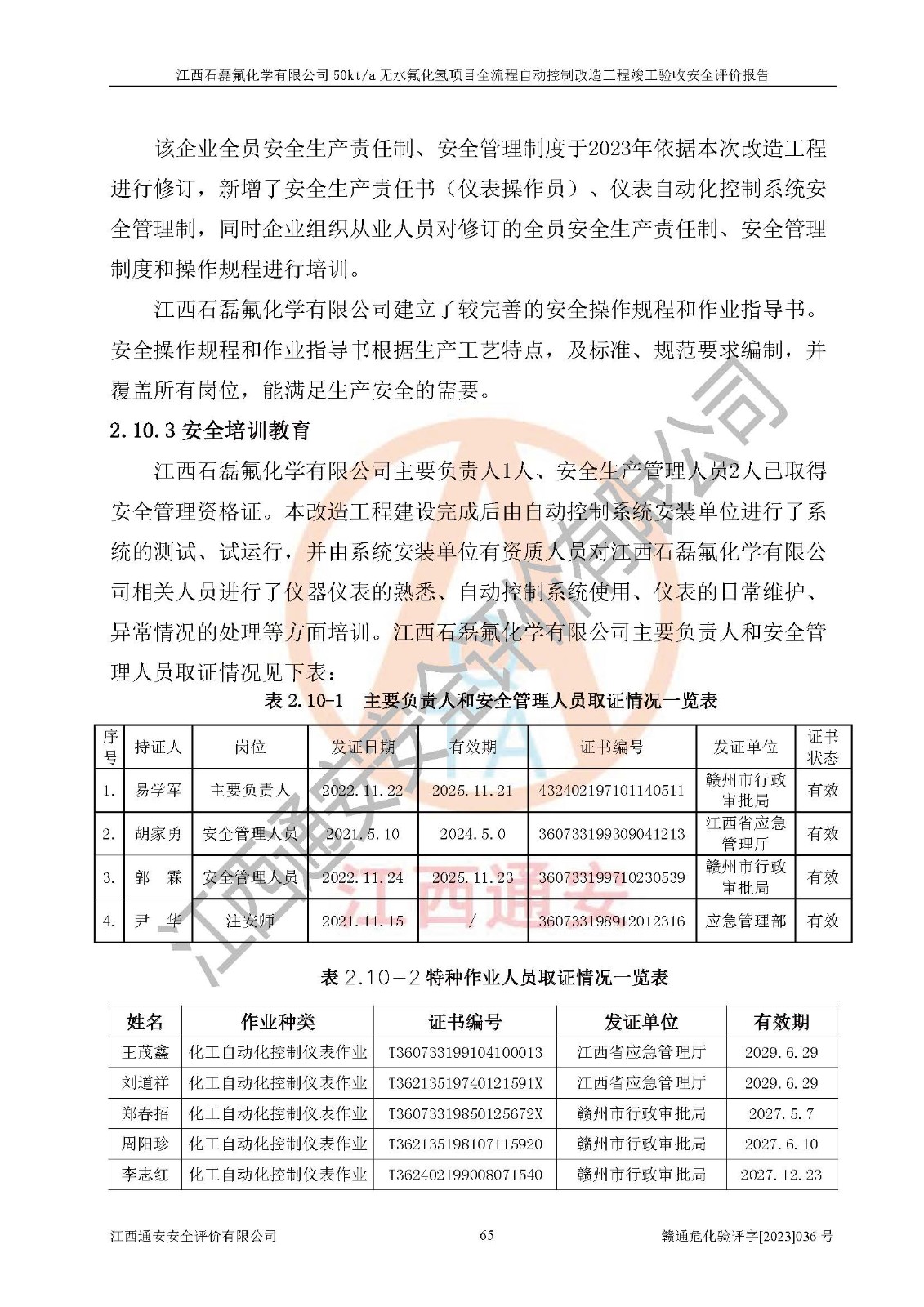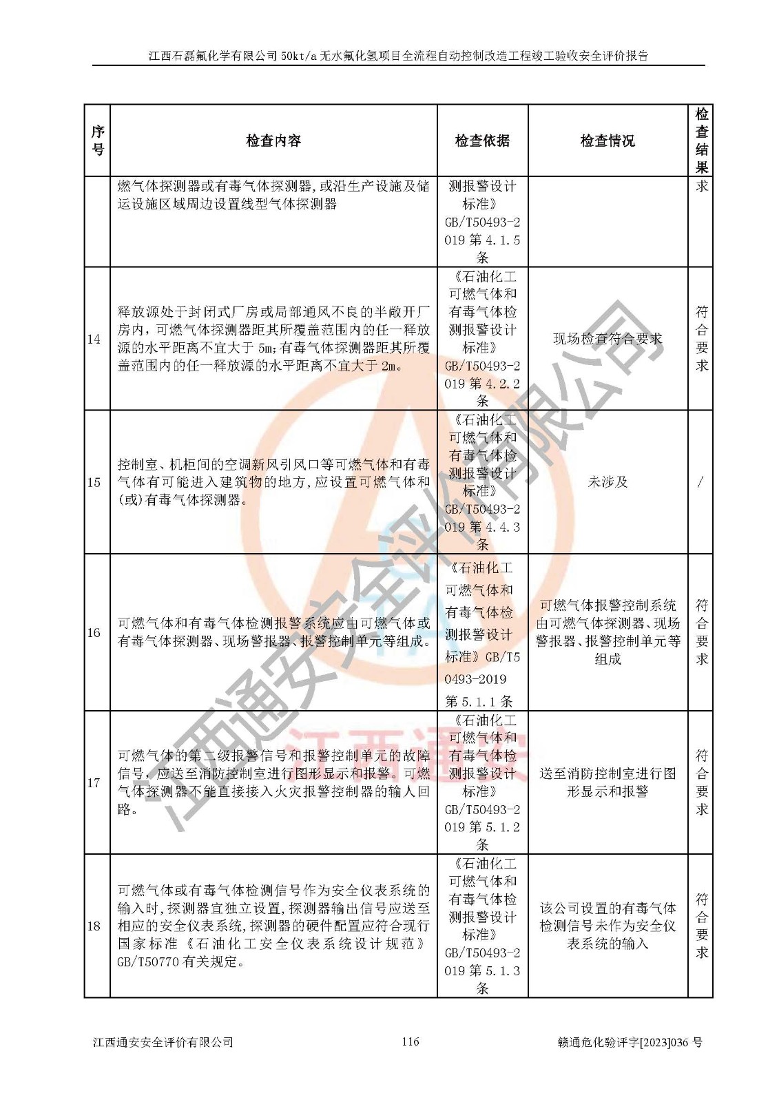根據(jù)江西石磊氟化學(xué)有限公司提供的技術(shù)資料,通過(guò)現(xiàn)場(chǎng)檢查以及對(duì)主要危險(xiǎn)有害因素分析,以及采用定性、定量評(píng)價(jià)法進(jìn)行評(píng)價(jià)和分析,依據(jù)**相關(guān)法規(guī)標(biāo)準(zhǔn),得出評(píng)價(jià)結(jié)論。 1、該工程涉及的危險(xiǎn)化學(xué)品有:氟化氫、氫氟酸、硫酸、發(fā)煙硫酸、氟硅酸、煤氣、柴油(柴油發(fā)電機(jī)用)。 2、該工程中存在的主要危險(xiǎn)有:火災(zāi)、爆炸、中毒窒息、灼燙、觸電、機(jī)械傷害、高處墜落、起重傷害、凍傷、淹溺等。其中火災(zāi)爆炸、中毒和窒息是*主要的危險(xiǎn)因素。 3、該工程涉及的各種化學(xué)品中,硫酸屬于第三類易制毒危險(xiǎn)化學(xué)品,不涉及易制爆化學(xué)品。 4、本項(xiàng)目所涉及的原輔材料及產(chǎn)品、中間產(chǎn)品、副產(chǎn)品中,氟化氫、氫氟酸、CO(存在于發(fā)生爐煤氣中)屬于重點(diǎn)監(jiān)管的危險(xiǎn)化學(xué)品。不涉及特別管控危險(xiǎn)化學(xué)品。 5、該工程項(xiàng)目涉及的氟化氫、CO(存在于發(fā)生爐煤氣中)屬于高毒物品。 6、本項(xiàng)目煤焦油的危險(xiǎn)性類別包括致癌性,類別1A,根據(jù)《職業(yè)性接觸毒物危害程度分級(jí)》(GBZ 230-2010)的規(guī)定:屬于明確人類致癌物的,直接列為極度危害。因此本項(xiàng)目煤焦油為極度危害介質(zhì)。 7、該公司201AHF儲(chǔ)罐區(qū)儲(chǔ)存單元構(gòu)成**危險(xiǎn)化學(xué)品重大危險(xiǎn)源,202有水酸生產(chǎn)裝置區(qū)生產(chǎn)單元構(gòu)成四級(jí)危險(xiǎn)化學(xué)品重大危險(xiǎn)源 8、根據(jù)《**安全監(jiān)管總局關(guān)于公布首批重點(diǎn)監(jiān)管的危險(xiǎn)化工工藝目錄的通知》(安監(jiān)總管三〔2009〕116號(hào))和《**安全監(jiān)管總局關(guān)于公布第二批重點(diǎn)監(jiān)管危險(xiǎn)化工工藝目錄和調(diào)整首批重點(diǎn)監(jiān)管危險(xiǎn)化工工藝中部分典型工藝的通知》(安監(jiān)總管三〔2013〕3號(hào))進(jìn)行危險(xiǎn)工藝辨識(shí):該工程無(wú)水氟化氫(AHF)生產(chǎn)裝置生產(chǎn)過(guò)程涉及的氟化工藝為重點(diǎn)監(jiān)管的危險(xiǎn)化工工藝。 9、江西石磊氟化學(xué)有限公司50kt/a無(wú)水氟化氫項(xiàng)目自動(dòng)控制技術(shù)改造工程的設(shè)計(jì)、安裝施工和調(diào)試單位的資質(zhì)均符合要求。 10、江西石磊氟化學(xué)有限公司50kt/a無(wú)水氟化氫項(xiàng)目全流程自動(dòng)控制改造設(shè)計(jì)方案中提出的控制措施已得到落實(shí),企業(yè)控制系統(tǒng)設(shè)置情況與設(shè)計(jì)方案一致,設(shè)計(jì)、施工和調(diào)試單位由有**相應(yīng)資質(zhì)的自控系統(tǒng)施工單位進(jìn)行施工,并對(duì)自動(dòng)控制系統(tǒng)調(diào)試合格,出具了竣工圖,安全設(shè)施及安全管理符合**及有關(guān)部門(mén)關(guān)于安全生產(chǎn)法律、法規(guī)、標(biāo)準(zhǔn)的要求,安全風(fēng)險(xiǎn)程度是可以接受的,安全風(fēng)險(xiǎn)可控,滿足《江西省應(yīng)急管理廳關(guān)于印發(fā)<江西省化工企業(yè)自動(dòng)化提升實(shí)施方案>(試行)的通知》(贛應(yīng)急字[2021]190號(hào))的要求,具備全流程自動(dòng)控制改造工程竣工驗(yàn)收條件。 |