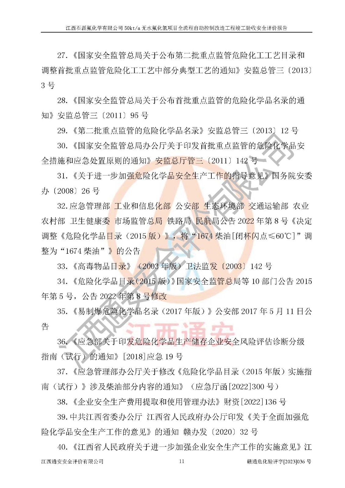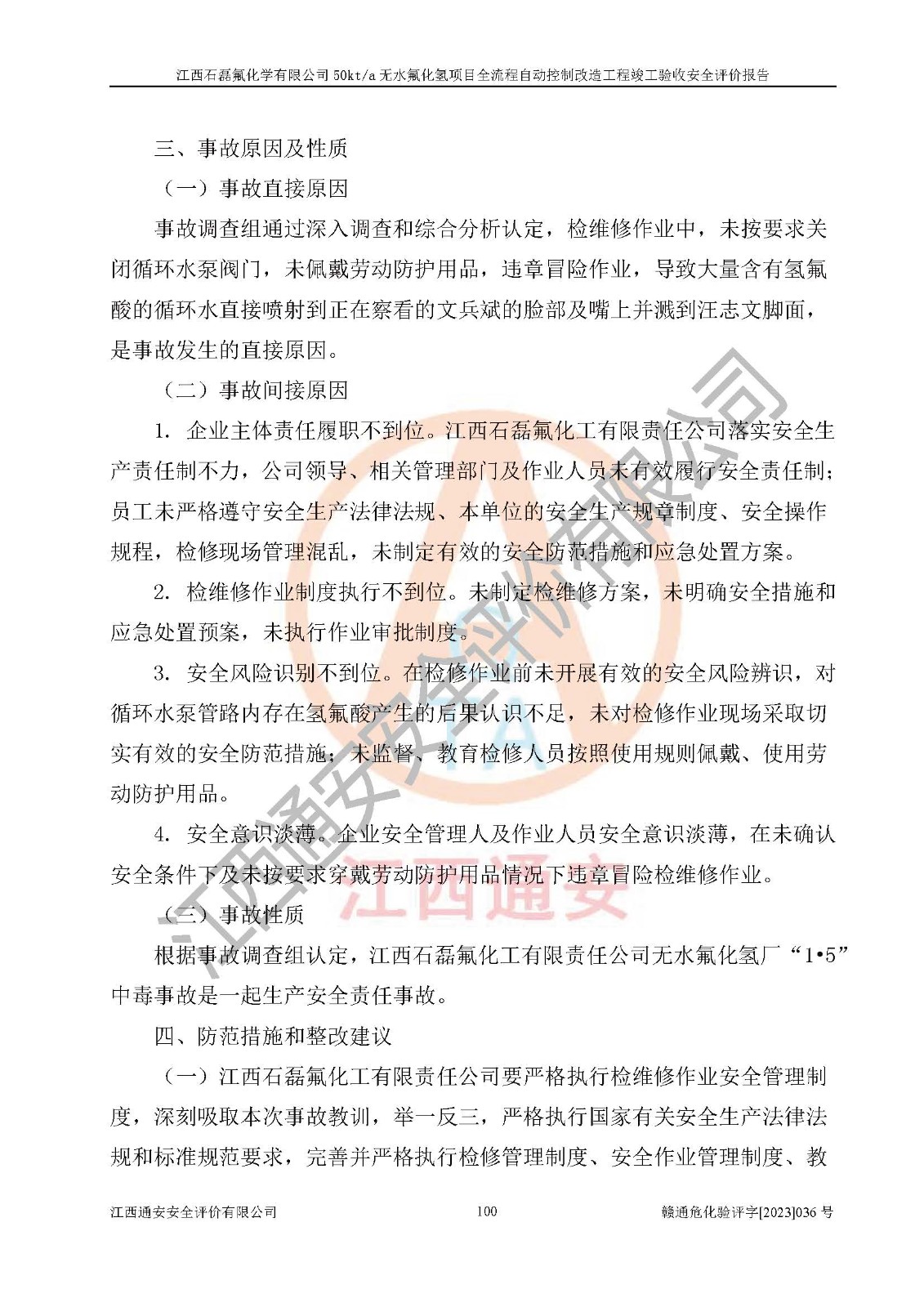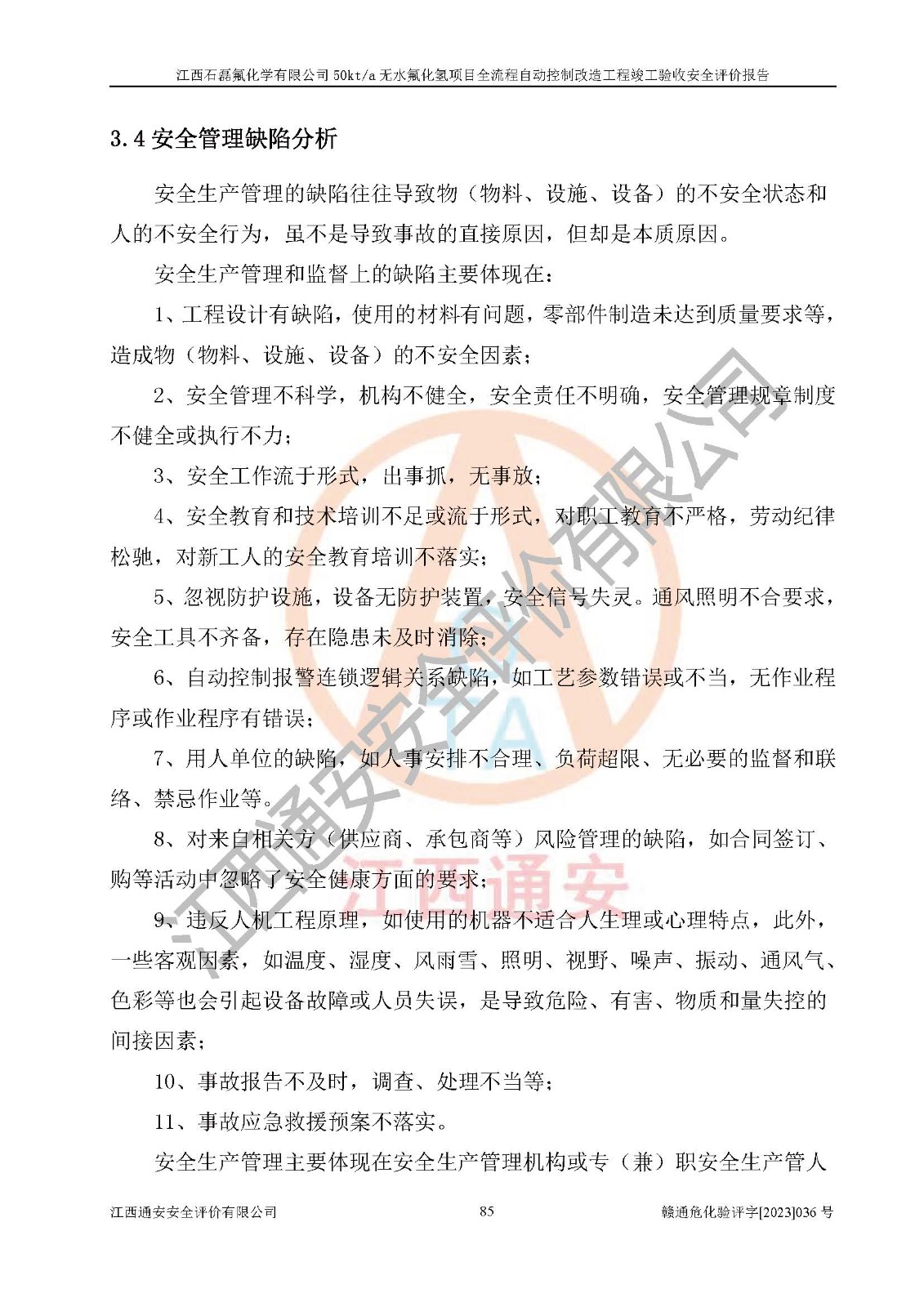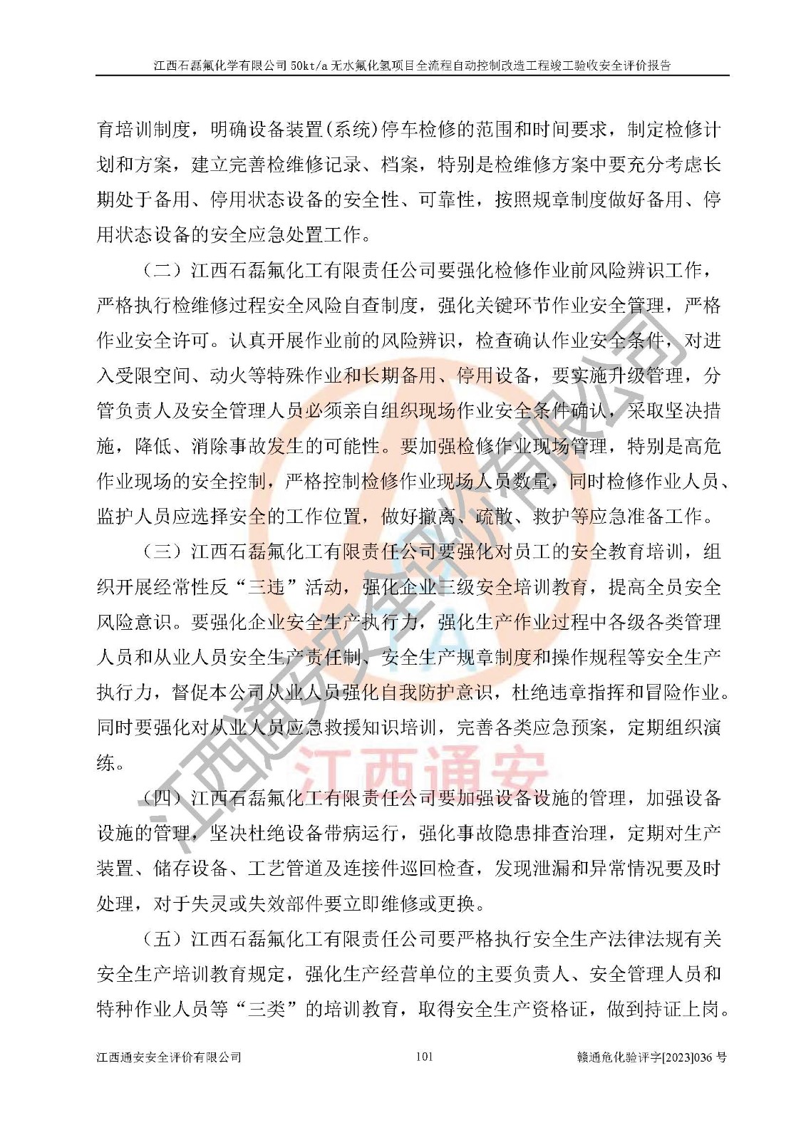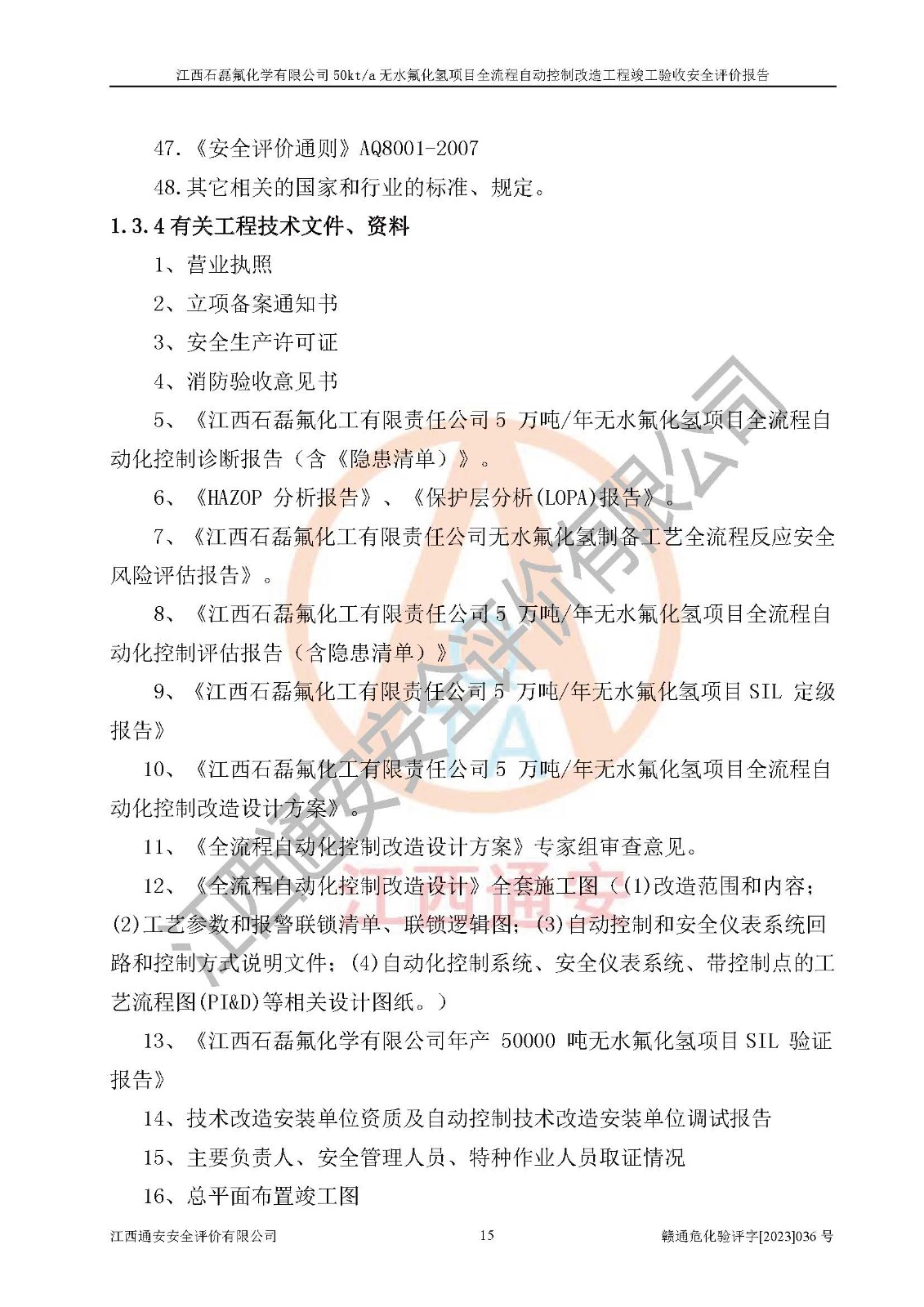 根據(jù)江西石磊氟化學(xué)有限公司提供的技術(shù)資料,通過(guò)現(xiàn)場(chǎng)檢查以及對(duì)主要危險(xiǎn)有害因素分析,以及采用定性、定量評(píng)價(jià)法進(jìn)行評(píng)價(jià)和分析,依據(jù)**相關(guān)法規(guī)標(biāo)準(zhǔn),得出評(píng)價(jià)結(jié)論。 1、該工程涉及的危險(xiǎn)化學(xué)品有:氟化氫、氫氟酸、硫酸、發(fā)煙硫酸、氟硅酸、煤氣、柴油(柴油發(fā)電機(jī)用)。 2、該工程中存在的主要危險(xiǎn)有:火災(zāi)、爆炸、中毒窒息、灼燙、觸電、機(jī)械傷害、高處墜落、起重傷害、凍傷、淹溺等。其中火災(zāi)爆炸、中毒和窒息是*主要的危險(xiǎn)因素。 3、該工程涉及的各種化學(xué)品中,硫酸屬于第三類易制毒危險(xiǎn)化學(xué)品,不涉及易制爆化學(xué)品。 4、本項(xiàng)目所涉及的原輔材料及產(chǎn)品、中間產(chǎn)品、副產(chǎn)品中,氟化氫、氫氟酸、CO(存在于發(fā)生爐煤氣中)屬于重點(diǎn)監(jiān)管的危險(xiǎn)化學(xué)品。不涉及特別管控危險(xiǎn)化學(xué)品。 5、該工程項(xiàng)目涉及的氟化氫、CO(存在于發(fā)生爐煤氣中)屬于高毒物品。 6、本項(xiàng)目煤焦油的危險(xiǎn)性類別包括致癌性,類別1A,根據(jù)《職業(yè)性接觸毒物危害程度分級(jí)》(GBZ 230-2010)的規(guī)定:屬于明確人類致癌物的,直接列為極度危害。因此本項(xiàng)目煤焦油為極度危害介質(zhì)。 7、該公司201AHF儲(chǔ)罐區(qū)儲(chǔ)存單元構(gòu)成**危險(xiǎn)化學(xué)品重大危險(xiǎn)源,202有水酸生產(chǎn)裝置區(qū)生產(chǎn)單元構(gòu)成四級(jí)危險(xiǎn)化學(xué)品重大危險(xiǎn)源 8、根據(jù)《**安全監(jiān)管總局關(guān)于公布首批重點(diǎn)監(jiān)管的危險(xiǎn)化工工藝目錄的通知》(安監(jiān)總管三〔2009〕116號(hào))和《**安全監(jiān)管總局關(guān)于公布第二批重點(diǎn)監(jiān)管危險(xiǎn)化工工藝目錄和調(diào)整首批重點(diǎn)監(jiān)管危險(xiǎn)化工工藝中部分典型工藝的通知》(安監(jiān)總管三〔2013〕3號(hào))進(jìn)行危險(xiǎn)工藝辨識(shí):該工程無(wú)水氟化氫(AHF)生產(chǎn)裝置生產(chǎn)過(guò)程涉及的氟化工藝為重點(diǎn)監(jiān)管的危險(xiǎn)化工工藝。 9、江西石磊氟化學(xué)有限公司50kt/a無(wú)水氟化氫項(xiàng)目自動(dòng)控制技術(shù)改造工程的設(shè)計(jì)、安裝施工和調(diào)試單位的資質(zhì)均符合要求。 10、江西石磊氟化學(xué)有限公司50kt/a無(wú)水氟化氫項(xiàng)目全流程自動(dòng)控制改造設(shè)計(jì)方案中提出的控制措施已得到落實(shí),企業(yè)控制系統(tǒng)設(shè)置情況與設(shè)計(jì)方案一致,設(shè)計(jì)、施工和調(diào)試單位由有**相應(yīng)資質(zhì)的自控系統(tǒng)施工單位進(jìn)行施工,并對(duì)自動(dòng)控制系統(tǒng)調(diào)試合格,出具了竣工圖,安全設(shè)施及安全管理符合**及有關(guān)部門(mén)關(guān)于安全生產(chǎn)法律、法規(guī)、標(biāo)準(zhǔn)的要求,安全風(fēng)險(xiǎn)程度是可以接受的,安全風(fēng)險(xiǎn)可控,滿足《江西省應(yīng)急管理廳關(guān)于印發(fā)<江西省化工企業(yè)自動(dòng)化提升實(shí)施方案>(試行)的通知》(贛應(yīng)急字[2021]190號(hào))的要求,具備全流程自動(dòng)控制改造工程竣工驗(yàn)收條件。 |