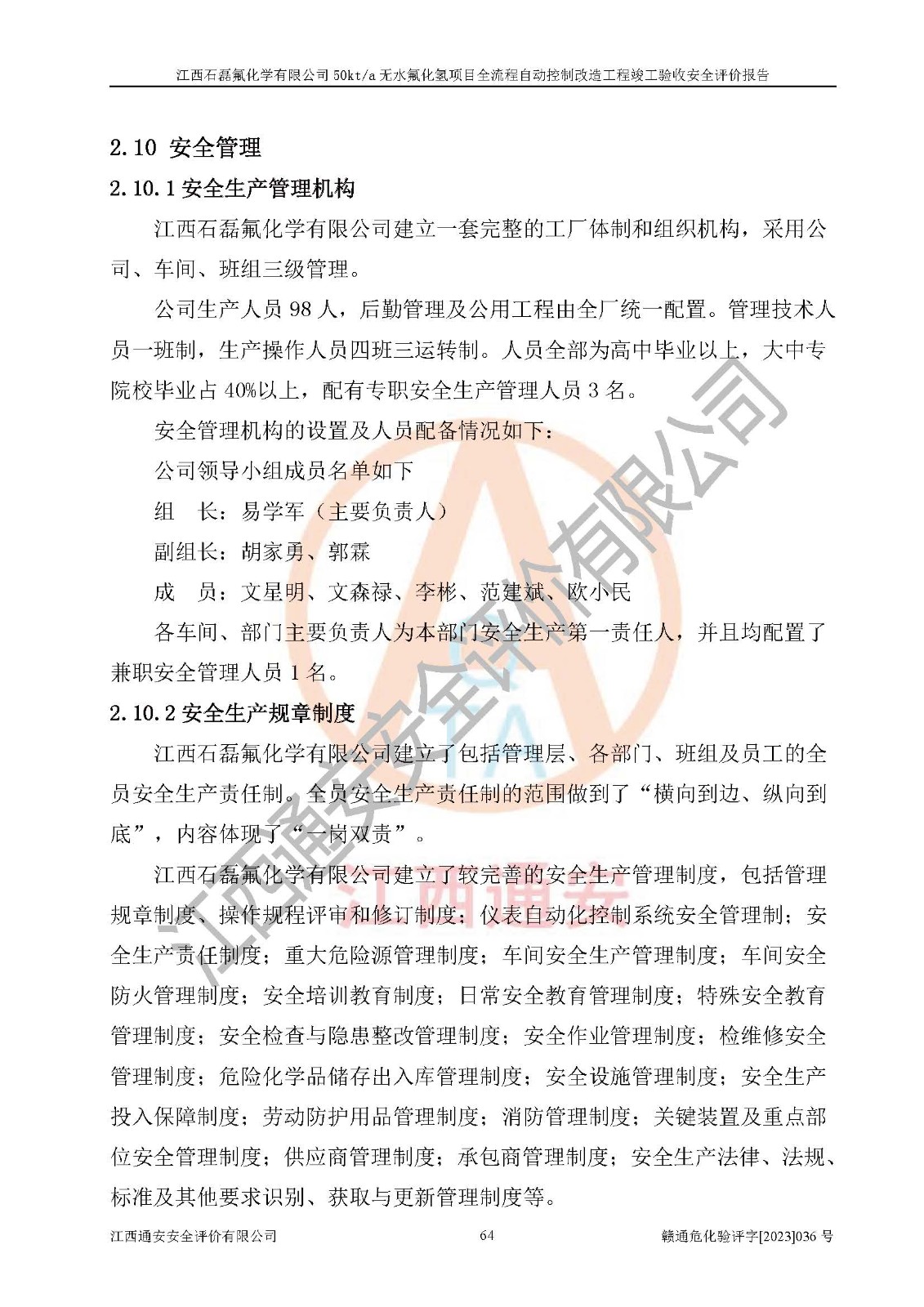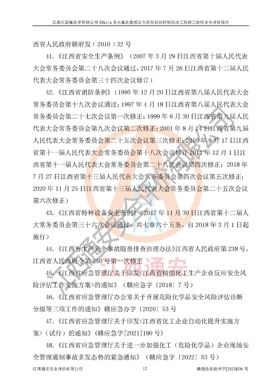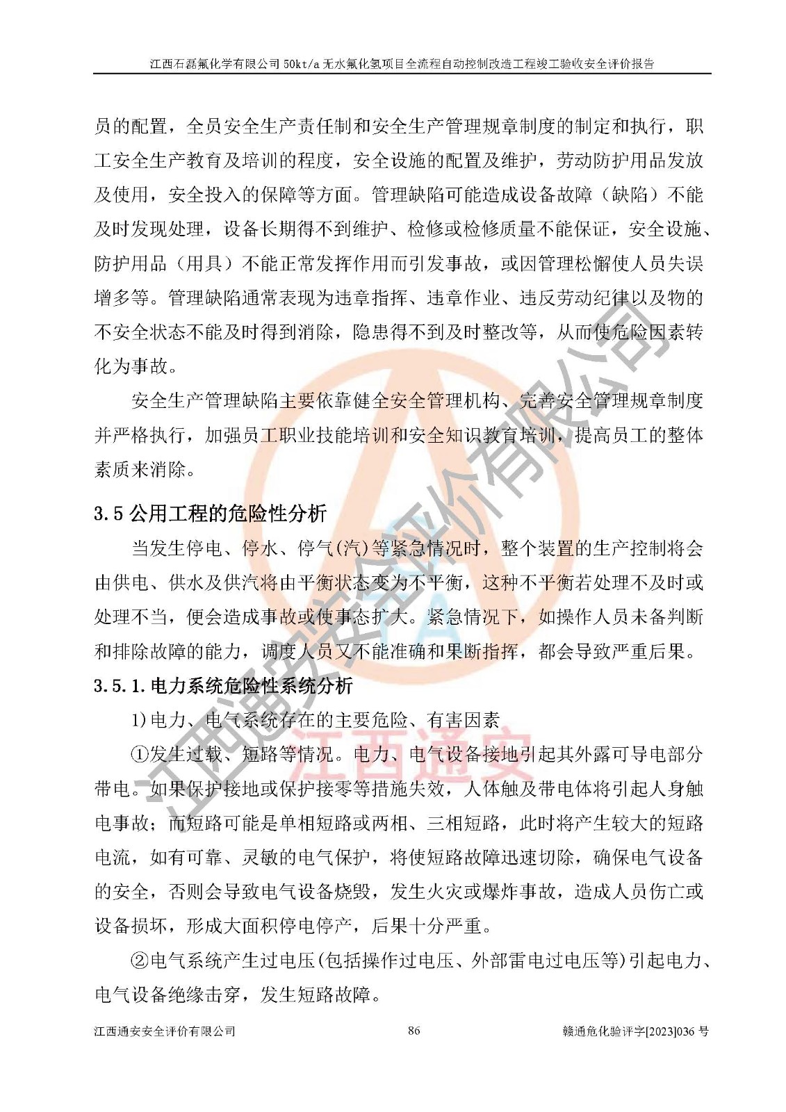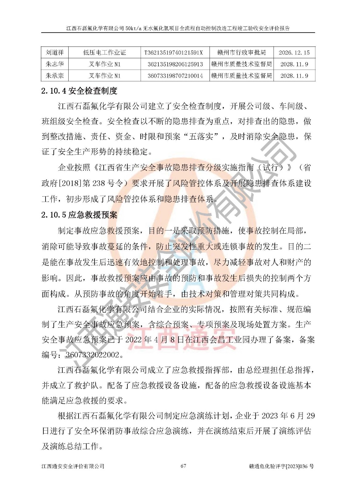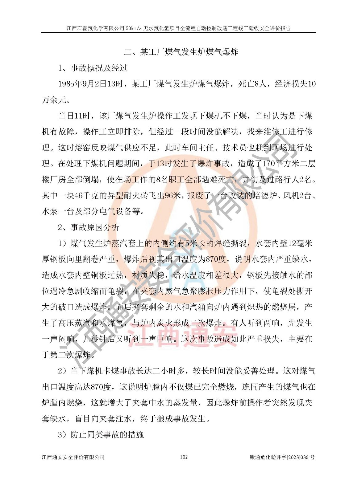 根據(jù)江西石磊氟化學(xué)有限公司提供的技術(shù)資料,通過(guò)現(xiàn)場(chǎng)檢查以及對(duì)主要危險(xiǎn)有害因素分析,以及采用定性、定量評(píng)價(jià)法進(jìn)行評(píng)價(jià)和分析,依據(jù)**相關(guān)法規(guī)標(biāo)準(zhǔn),得出評(píng)價(jià)結(jié)論。 1、該工程涉及的危險(xiǎn)化學(xué)品有:氟化氫、氫氟酸、硫酸、發(fā)煙硫酸、氟硅酸、煤氣、柴油(柴油發(fā)電機(jī)用)。 2、該工程中存在的主要危險(xiǎn)有:火災(zāi)、爆炸、中毒窒息、灼燙、觸電、機(jī)械傷害、高處墜落、起重傷害、凍傷、淹溺等。其中火災(zāi)爆炸、中毒和窒息是*主要的危險(xiǎn)因素。 3、該工程涉及的各種化學(xué)品中,硫酸屬于第三類易制毒危險(xiǎn)化學(xué)品,不涉及易制爆化學(xué)品。 4、本項(xiàng)目所涉及的原輔材料及產(chǎn)品、中間產(chǎn)品、副產(chǎn)品中,氟化氫、氫氟酸、CO(存在于發(fā)生爐煤氣中)屬于重點(diǎn)監(jiān)管的危險(xiǎn)化學(xué)品。不涉及特別管控危險(xiǎn)化學(xué)品。 5、該工程項(xiàng)目涉及的氟化氫、CO(存在于發(fā)生爐煤氣中)屬于高毒物品。 6、本項(xiàng)目煤焦油的危險(xiǎn)性類別包括致癌性,類別1A,根據(jù)《職業(yè)性接觸毒物危害程度分級(jí)》(GBZ 230-2010)的規(guī)定:屬于明確人類致癌物的,直接列為極度危害。因此本項(xiàng)目煤焦油為極度危害介質(zhì)。 7、該公司201AHF儲(chǔ)罐區(qū)儲(chǔ)存單元構(gòu)成**危險(xiǎn)化學(xué)品重大危險(xiǎn)源,202有水酸生產(chǎn)裝置區(qū)生產(chǎn)單元構(gòu)成四級(jí)危險(xiǎn)化學(xué)品重大危險(xiǎn)源 8、根據(jù)《**安全監(jiān)管總局關(guān)于公布首批重點(diǎn)監(jiān)管的危險(xiǎn)化工工藝目錄的通知》(安監(jiān)總管三〔2009〕116號(hào))和《**安全監(jiān)管總局關(guān)于公布第二批重點(diǎn)監(jiān)管危險(xiǎn)化工工藝目錄和調(diào)整首批重點(diǎn)監(jiān)管危險(xiǎn)化工工藝中部分典型工藝的通知》(安監(jiān)總管三〔2013〕3號(hào))進(jìn)行危險(xiǎn)工藝辨識(shí):該工程無(wú)水氟化氫(AHF)生產(chǎn)裝置生產(chǎn)過(guò)程涉及的氟化工藝為重點(diǎn)監(jiān)管的危險(xiǎn)化工工藝。 9、江西石磊氟化學(xué)有限公司50kt/a無(wú)水氟化氫項(xiàng)目自動(dòng)控制技術(shù)改造工程的設(shè)計(jì)、安裝施工和調(diào)試單位的資質(zhì)均符合要求。 10、江西石磊氟化學(xué)有限公司50kt/a無(wú)水氟化氫項(xiàng)目全流程自動(dòng)控制改造設(shè)計(jì)方案中提出的控制措施已得到落實(shí),企業(yè)控制系統(tǒng)設(shè)置情況與設(shè)計(jì)方案一致,設(shè)計(jì)、施工和調(diào)試單位由有**相應(yīng)資質(zhì)的自控系統(tǒng)施工單位進(jìn)行施工,并對(duì)自動(dòng)控制系統(tǒng)調(diào)試合格,出具了竣工圖,安全設(shè)施及安全管理符合**及有關(guān)部門(mén)關(guān)于安全生產(chǎn)法律、法規(guī)、標(biāo)準(zhǔn)的要求,安全風(fēng)險(xiǎn)程度是可以接受的,安全風(fēng)險(xiǎn)可控,滿足《江西省應(yīng)急管理廳關(guān)于印發(fā)<江西省化工企業(yè)自動(dòng)化提升實(shí)施方案>(試行)的通知》(贛應(yīng)急字[2021]190號(hào))的要求,具備全流程自動(dòng)控制改造工程竣工驗(yàn)收條件。 |