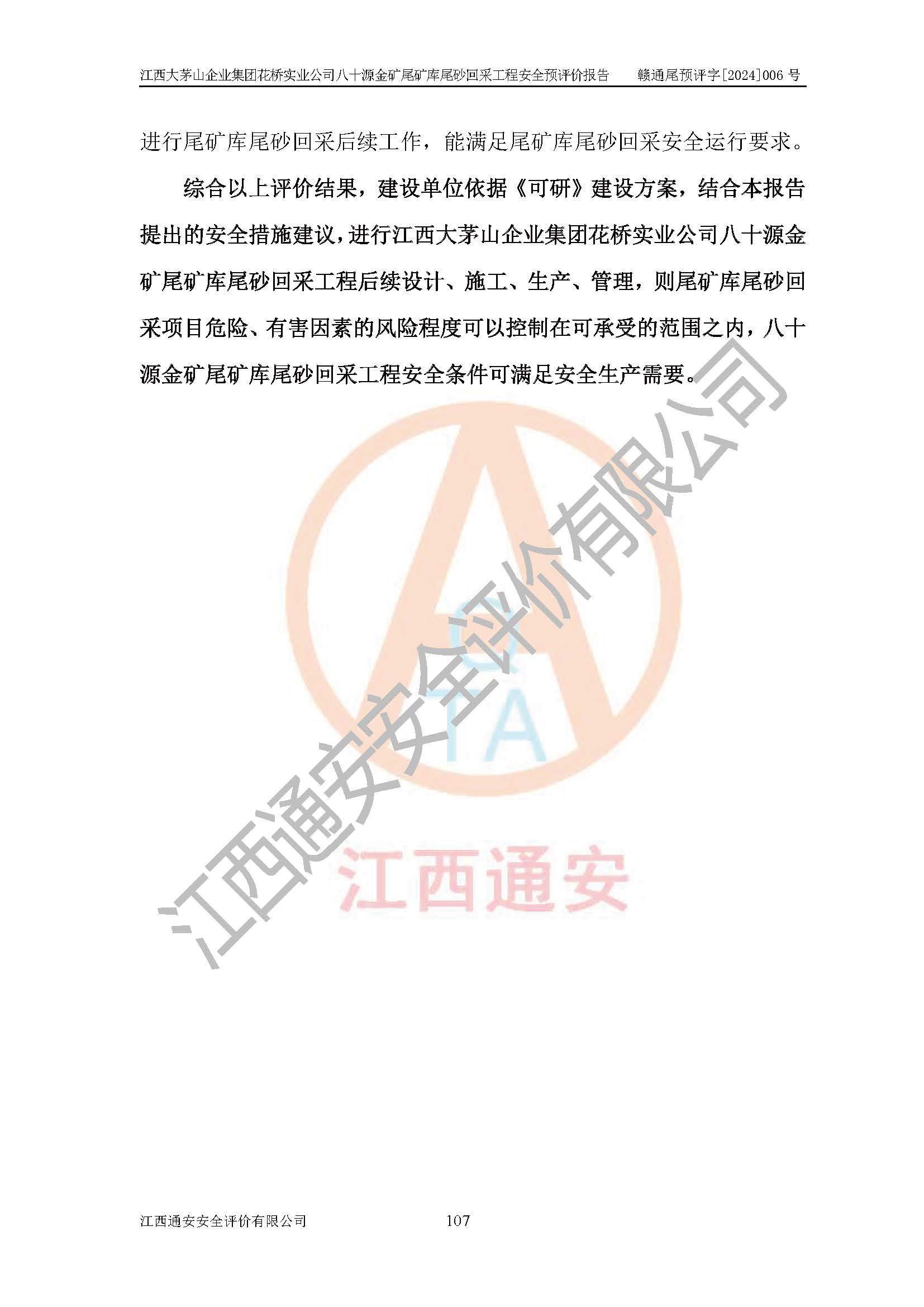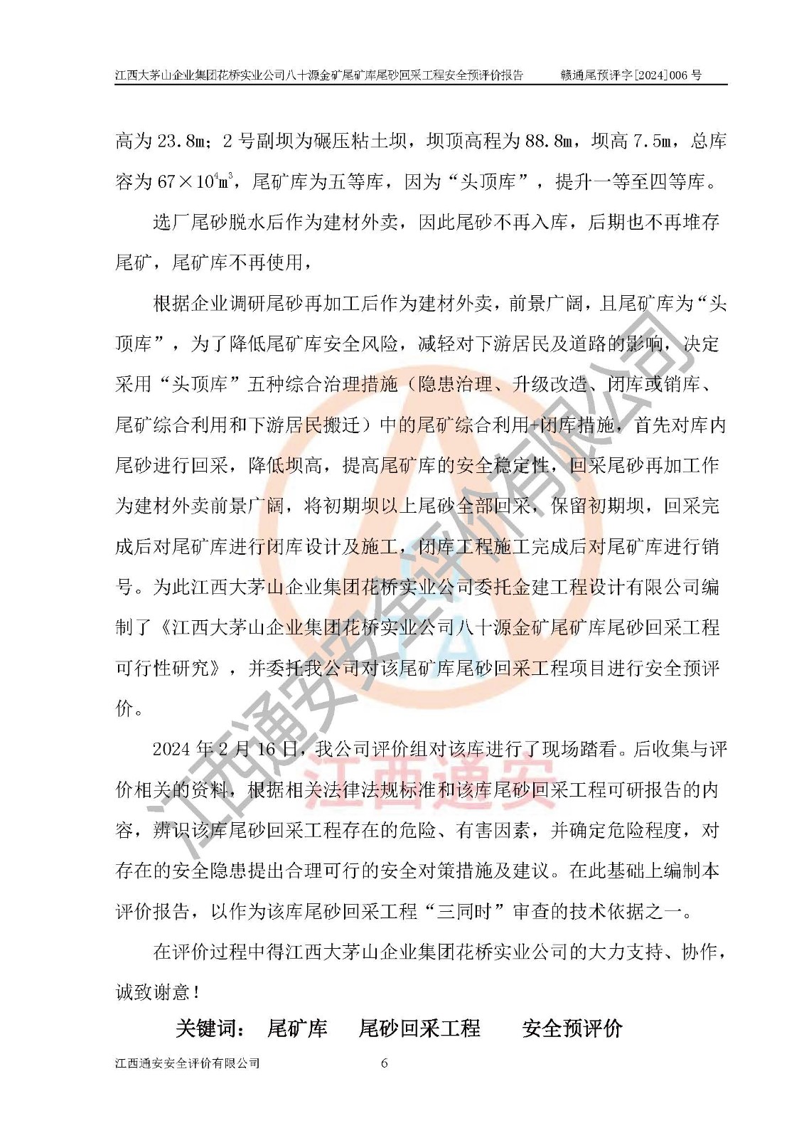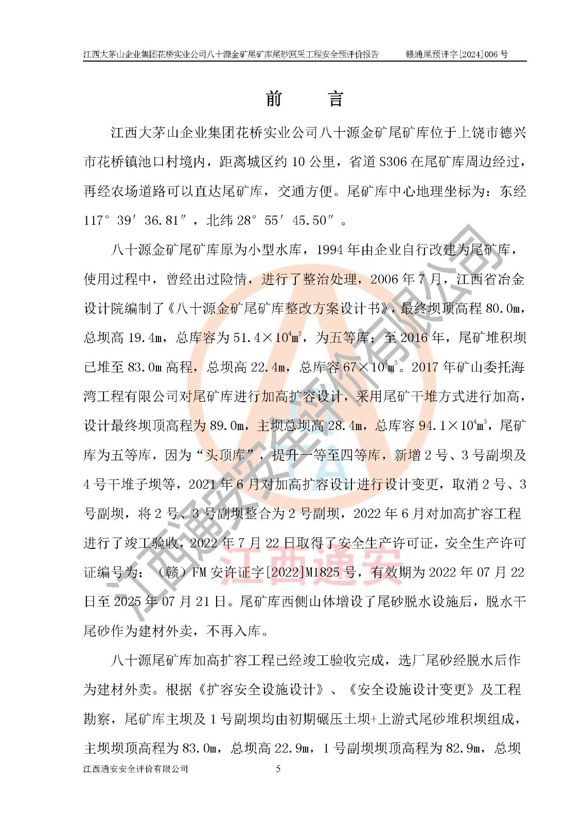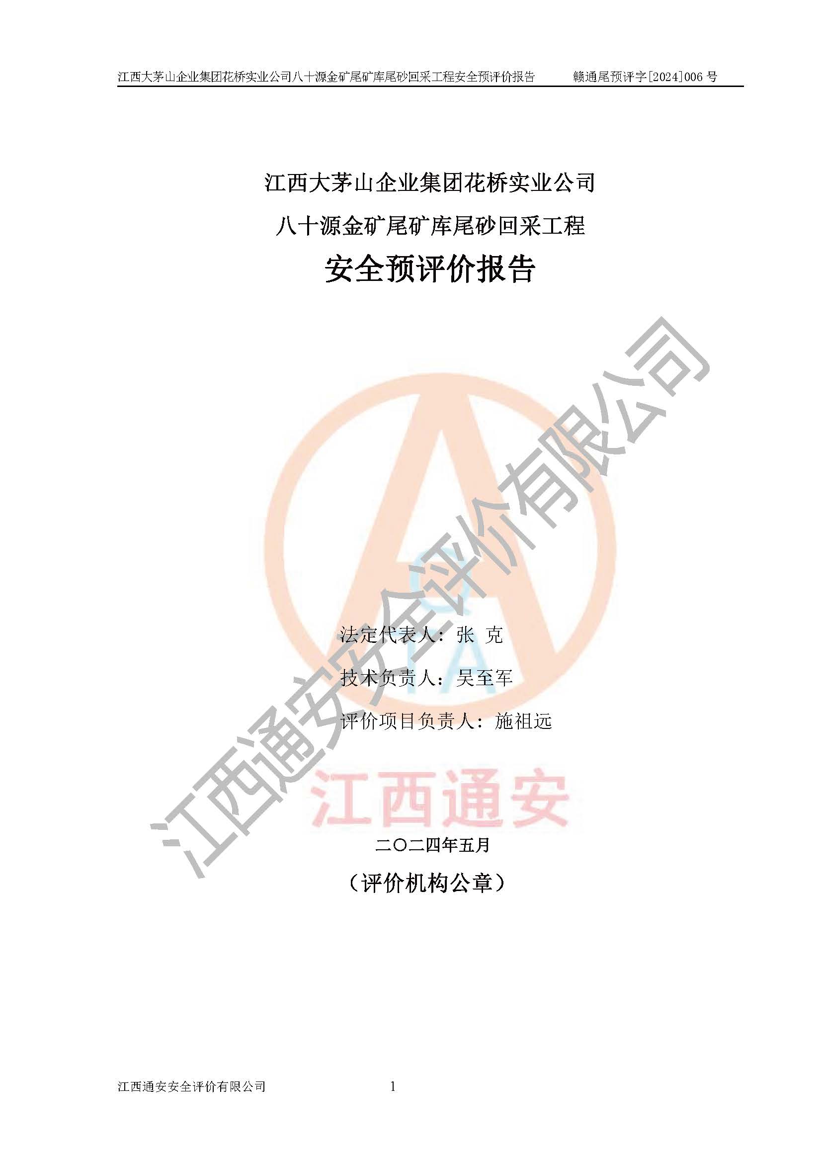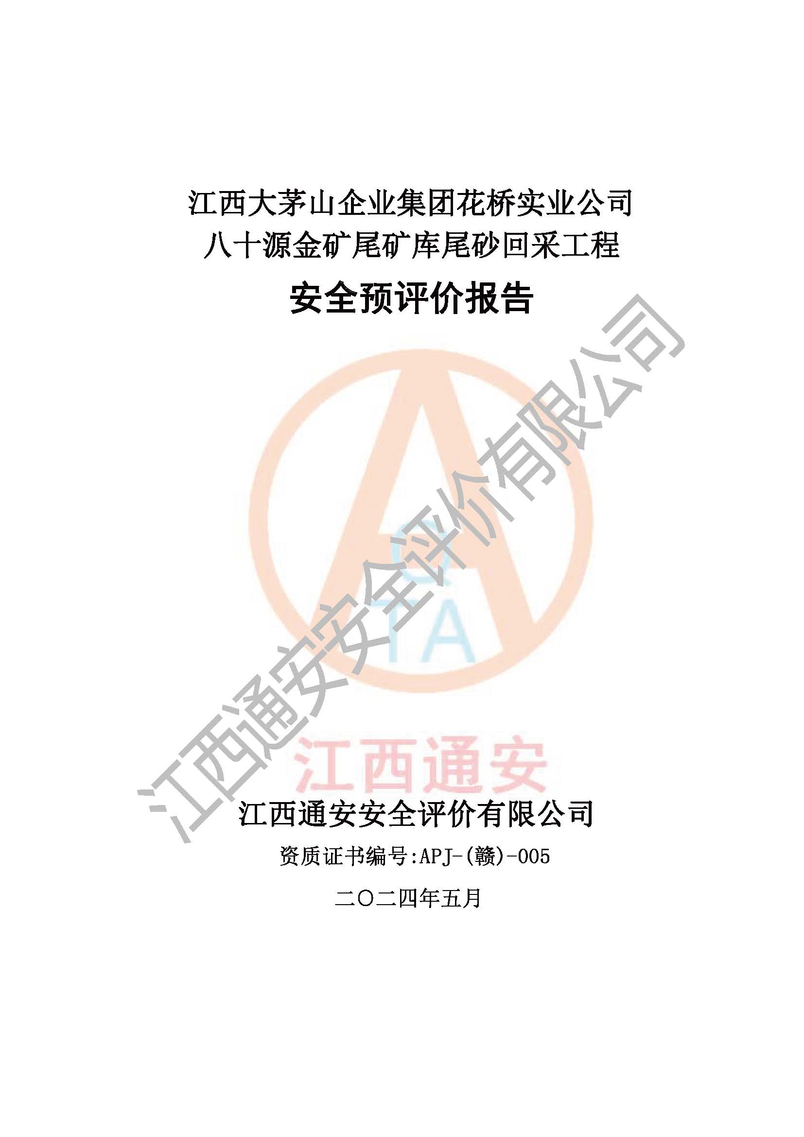評價報告名稱 | 江西大茅山企業(yè)集團花橋?qū)崢I(yè)公司八十源金礦尾礦庫尾砂回采工程安全預評價報告 | |||
