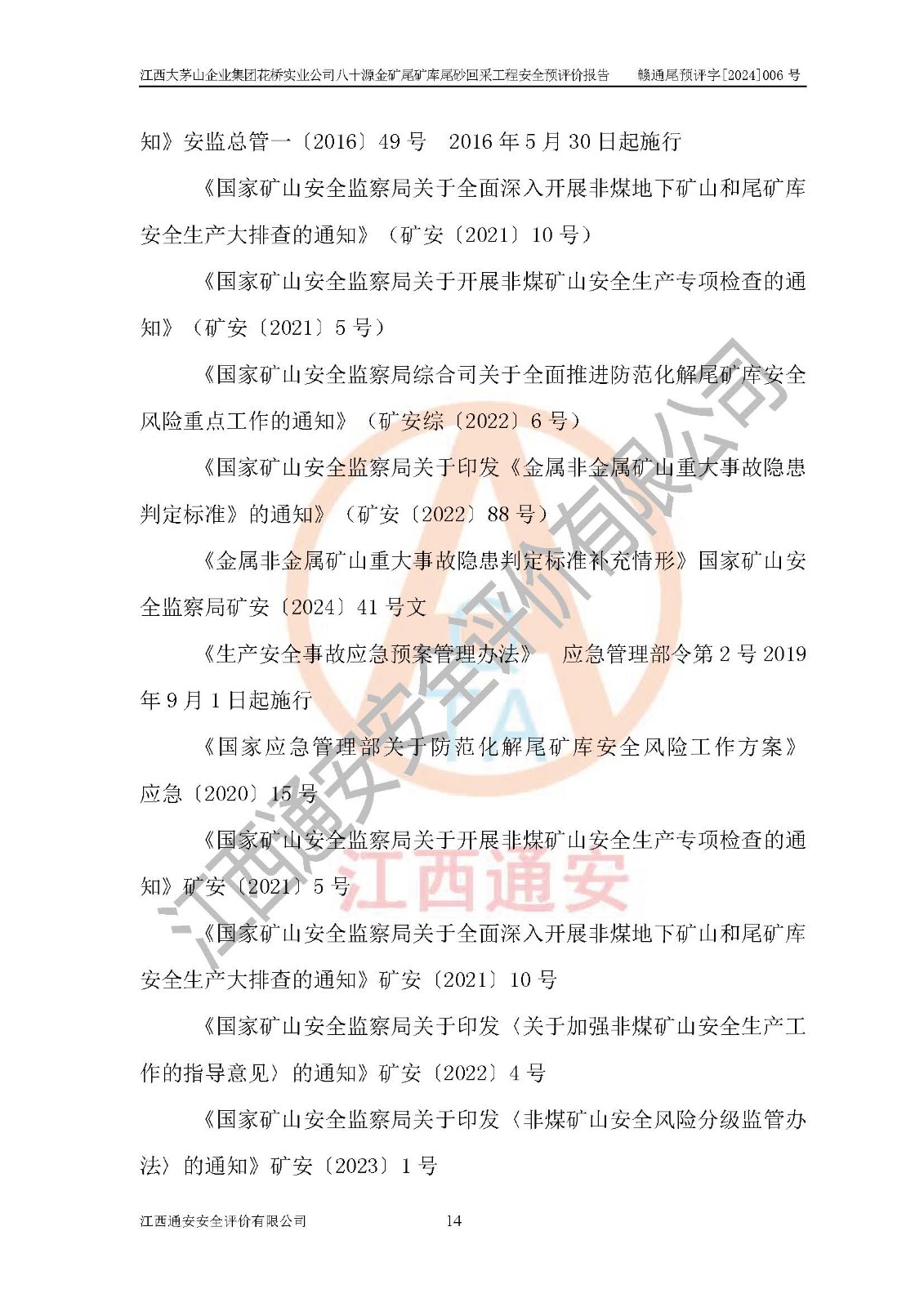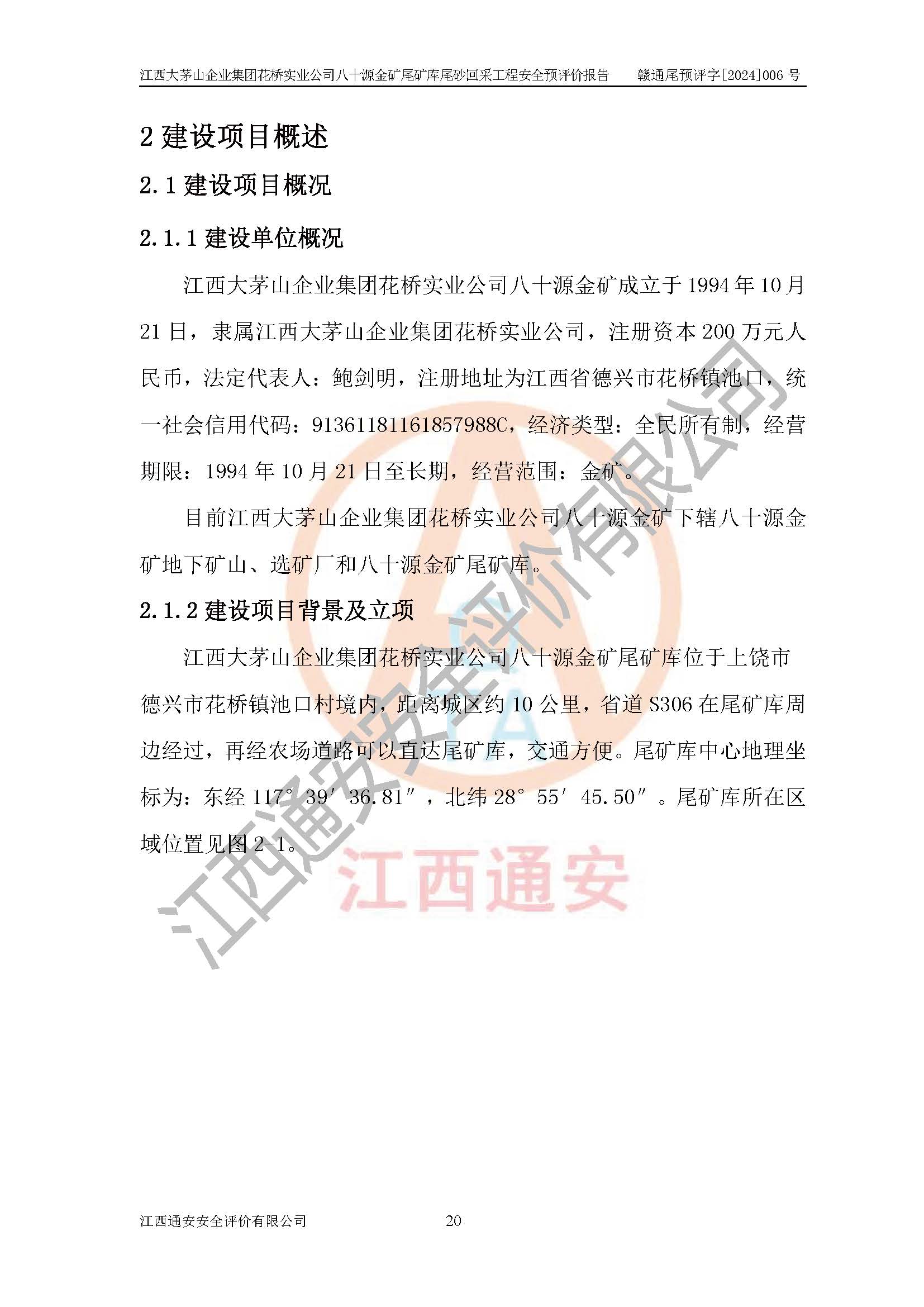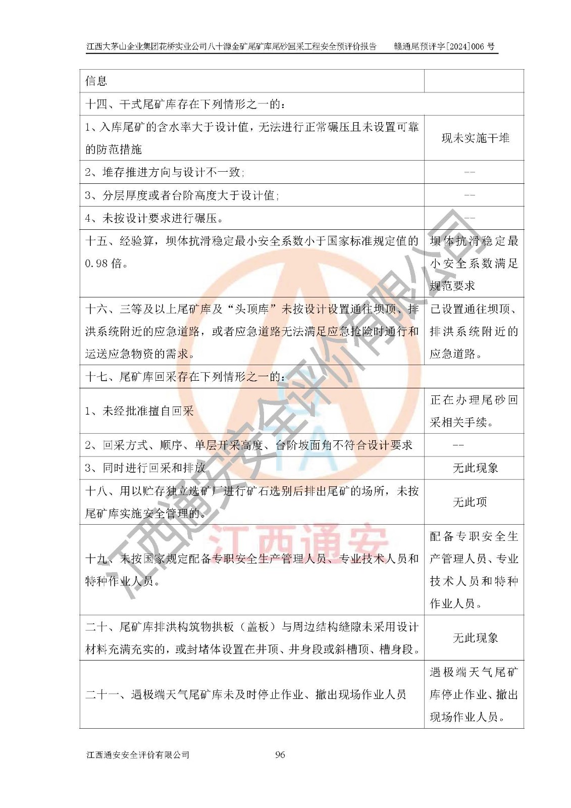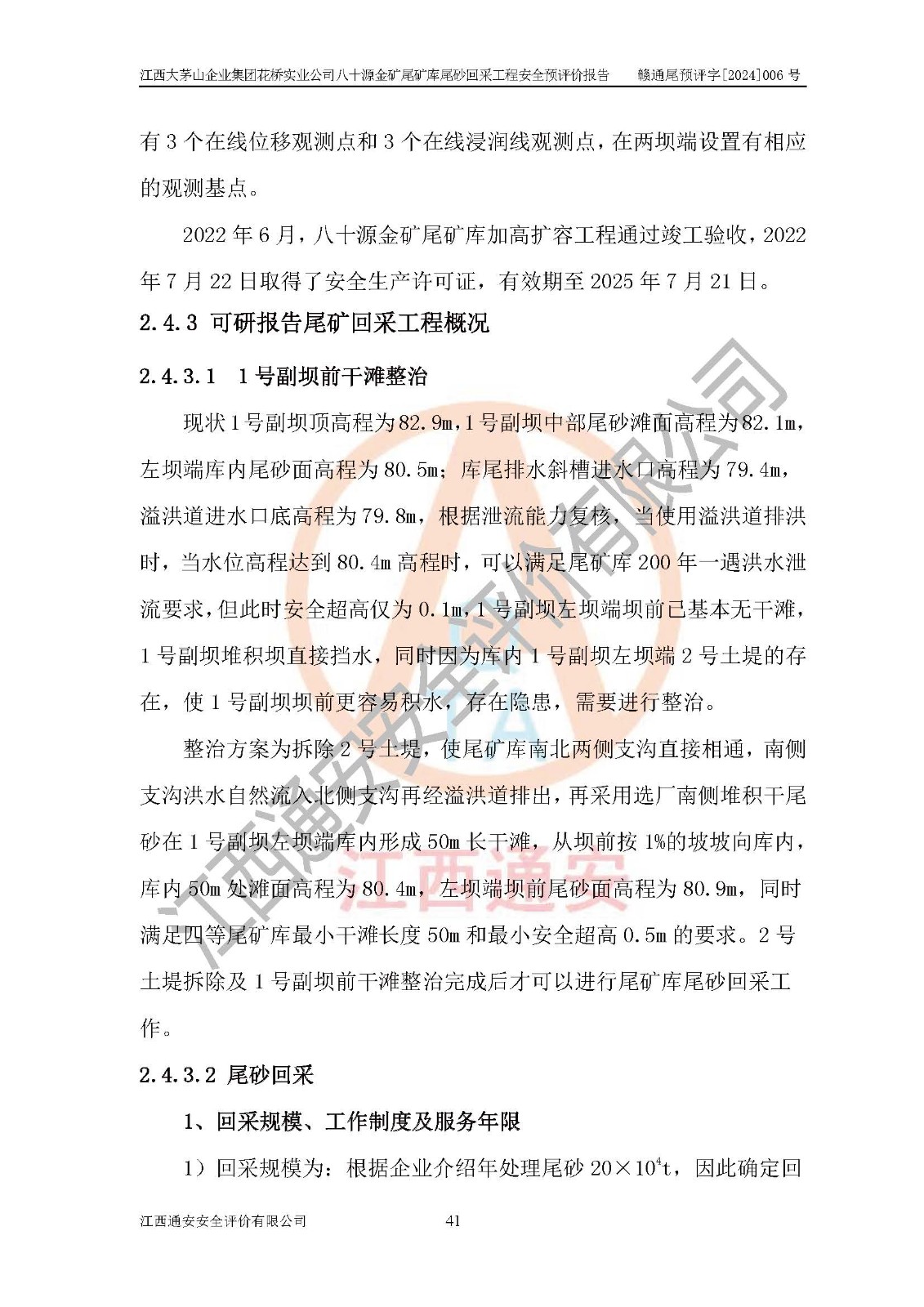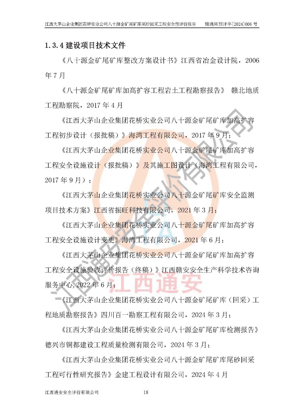 評價報告名稱 | 江西大茅山企業(yè)集團花橋?qū)崢I(yè)公司八十源金礦尾礦庫尾砂回采工程安全預評價報告 | |||