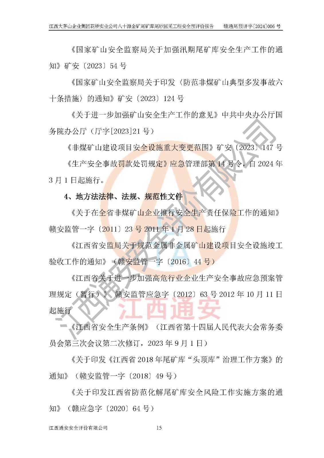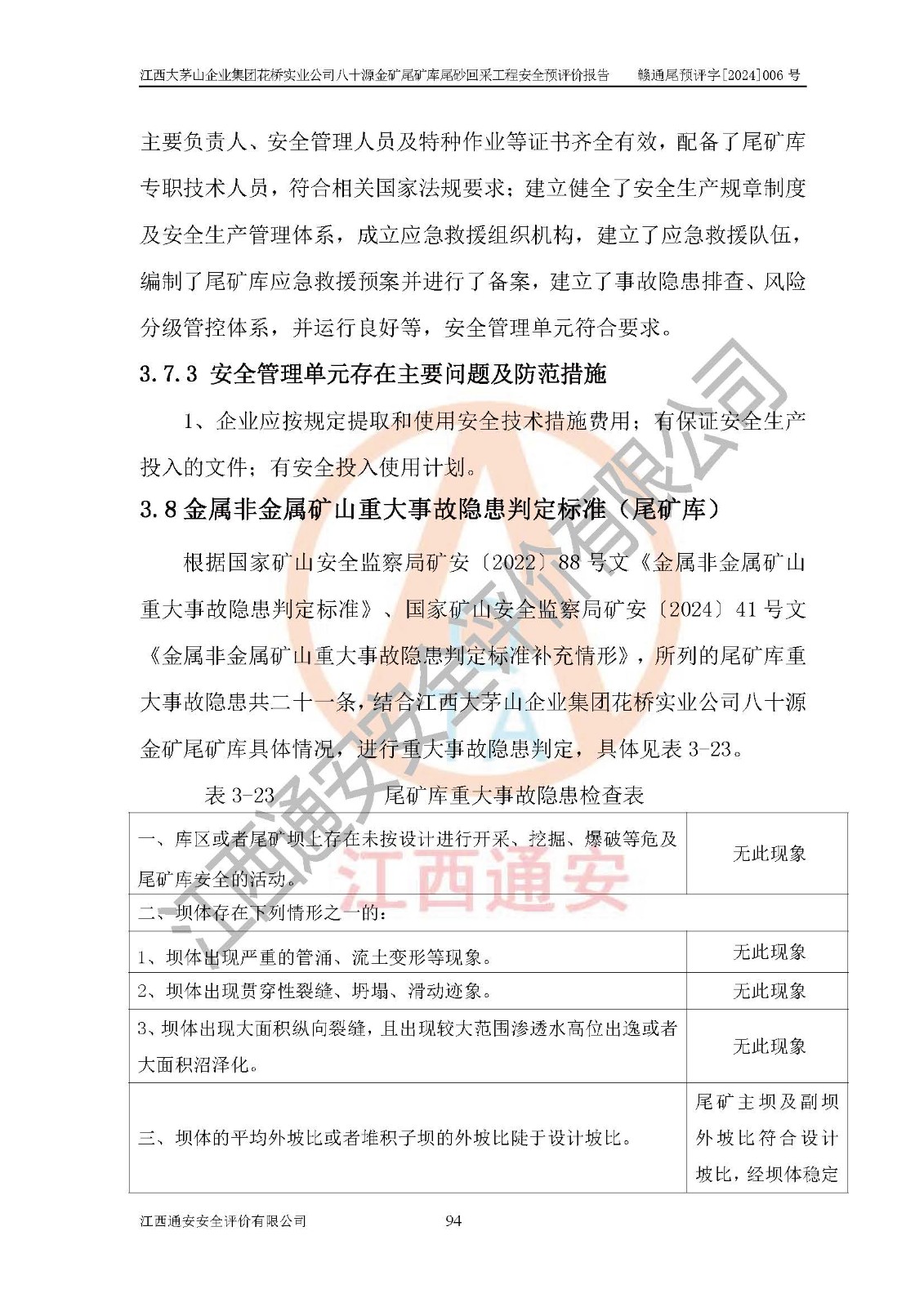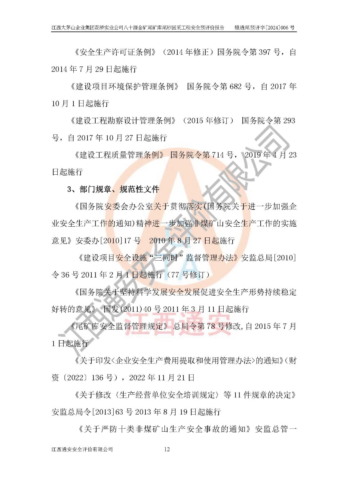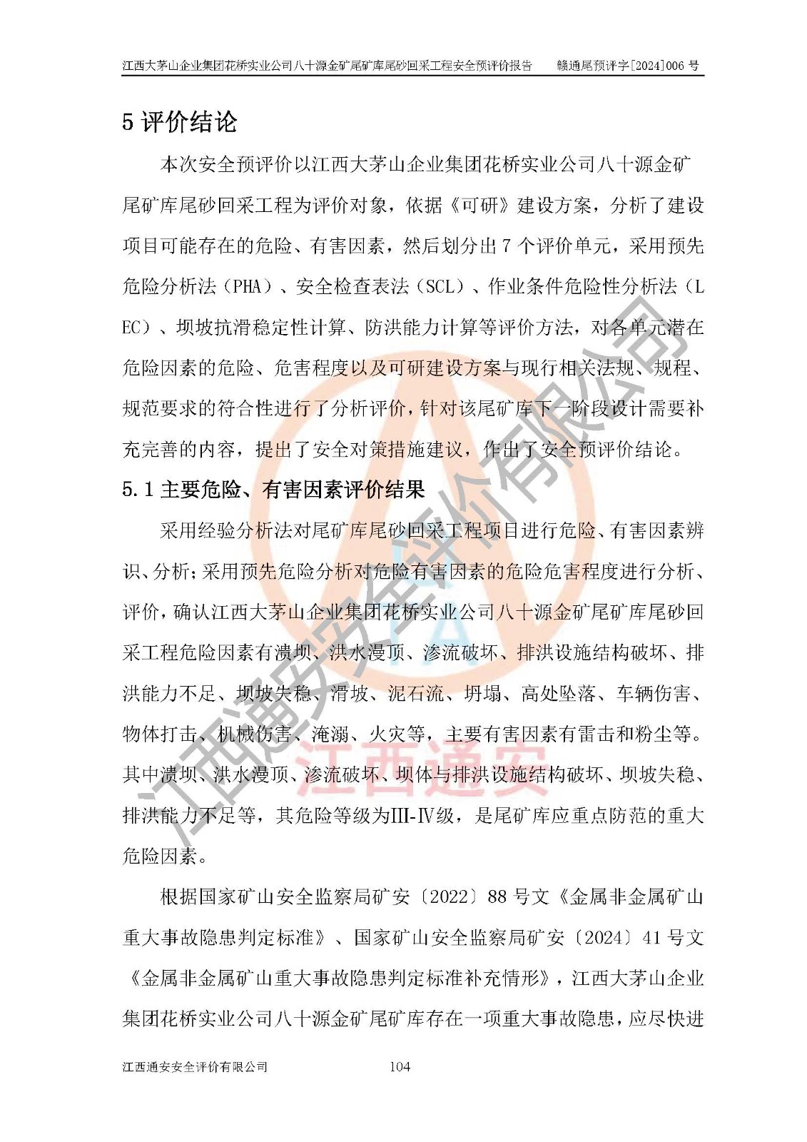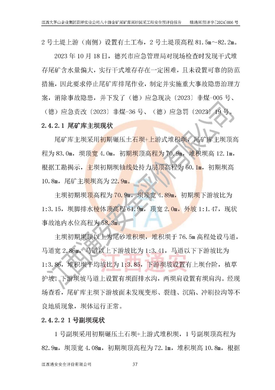 評價報告名稱 | 江西大茅山企業(yè)集團花橋?qū)崢I(yè)公司八十源金礦尾礦庫尾砂回采工程安全預評價報告 | |||