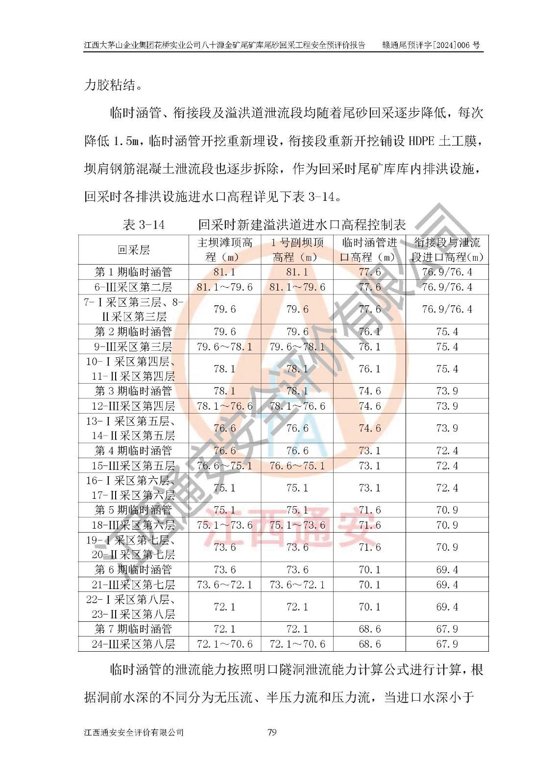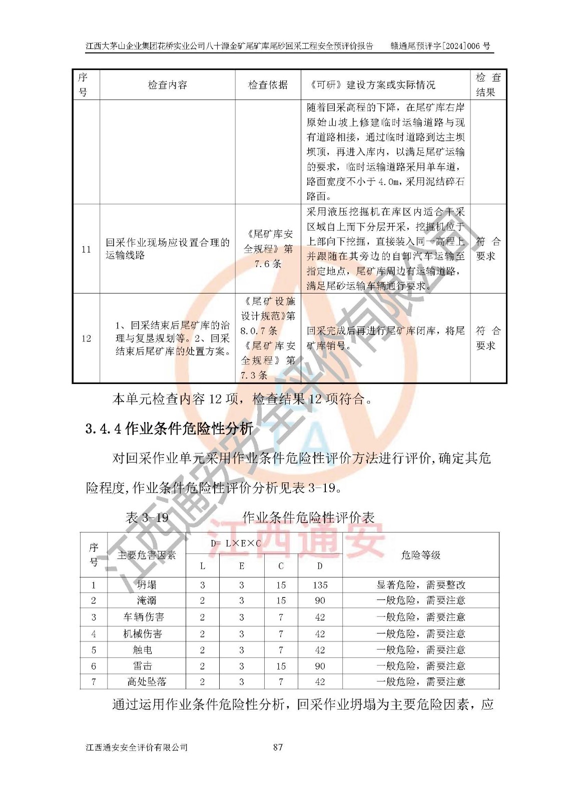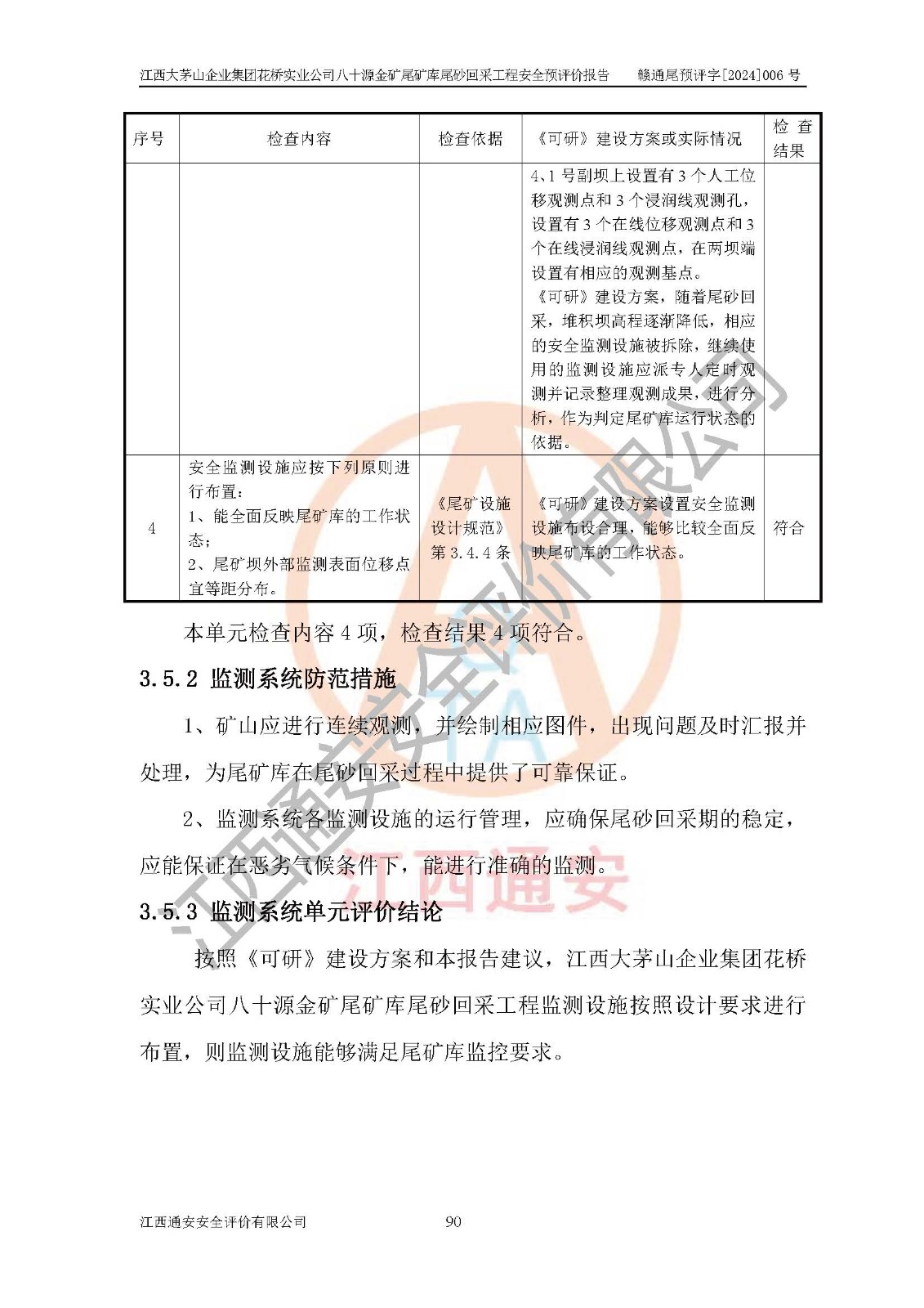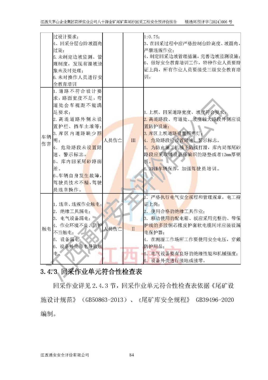 評價結(jié)論 | 建設(shè)單位依據(jù)《可研》建設(shè)方案,結(jié)合本報告提出的安全措施建議,進行江西大茅山企業(yè)集團花橋?qū)崢I(yè)公司八十源金礦尾礦庫尾砂回采工程后續(xù)設(shè)計、施工、生產(chǎn)、管理,則尾礦庫尾砂回采項目危險、有害因素的風險程度可以控制在可承受的范圍之內(nèi),八十源金礦尾礦庫尾砂回采工程安全條件可滿足安全生產(chǎn)需要。 | |||