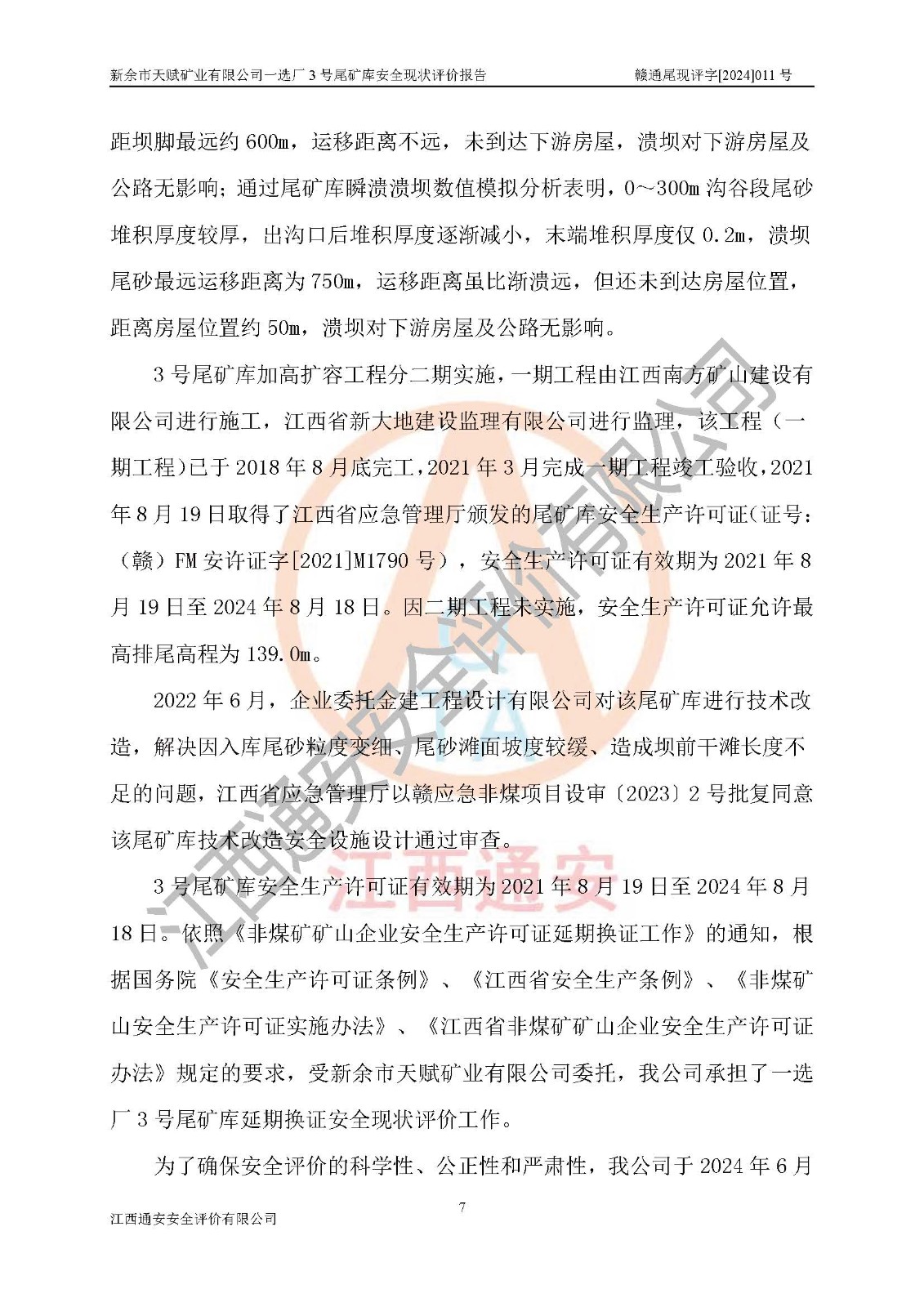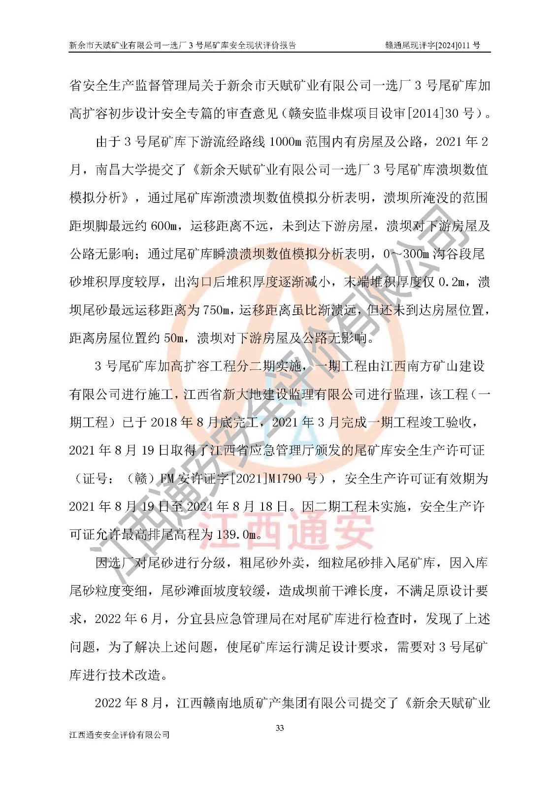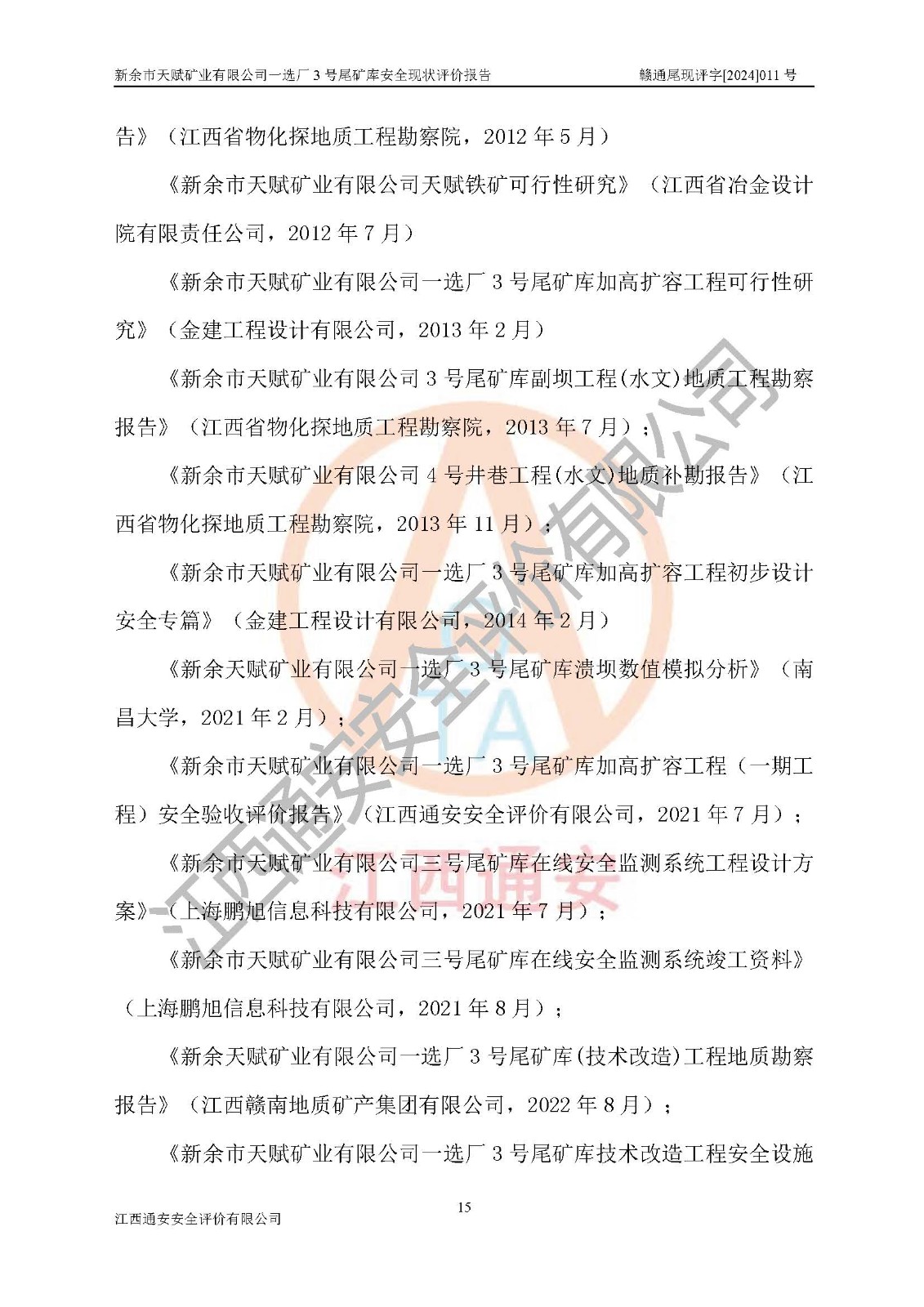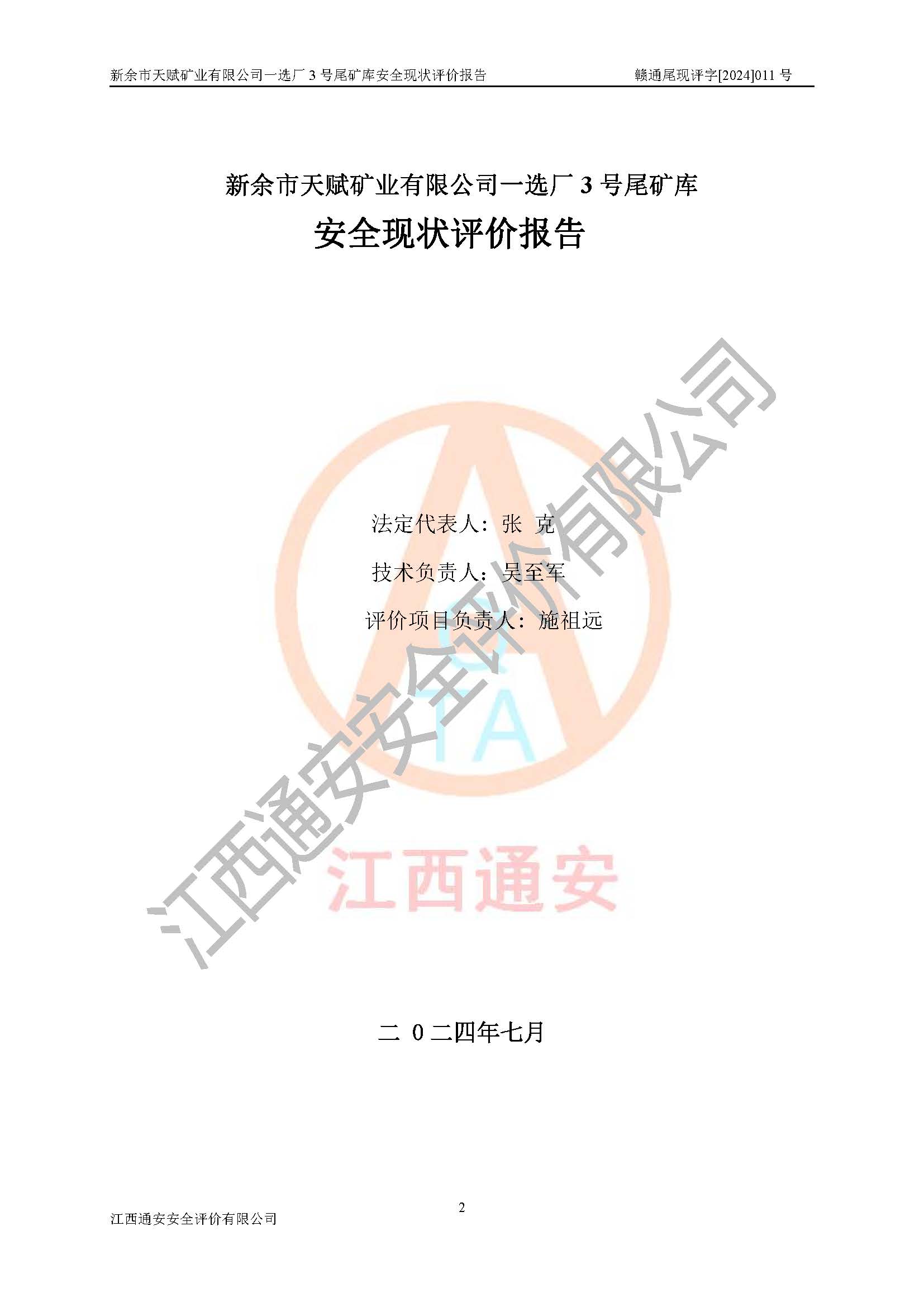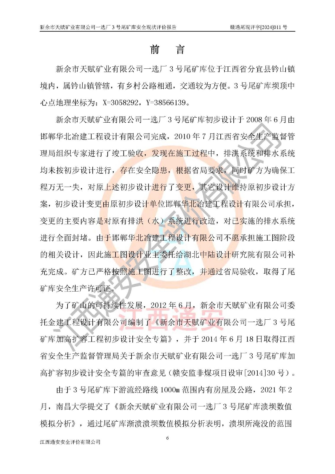 評(píng)價(jià)報(bào)告名稱 | 新余市天賦礦業(yè)有限公司一選廠3號(hào)尾礦庫現(xiàn)狀評(píng)價(jià)報(bào)告 | |||