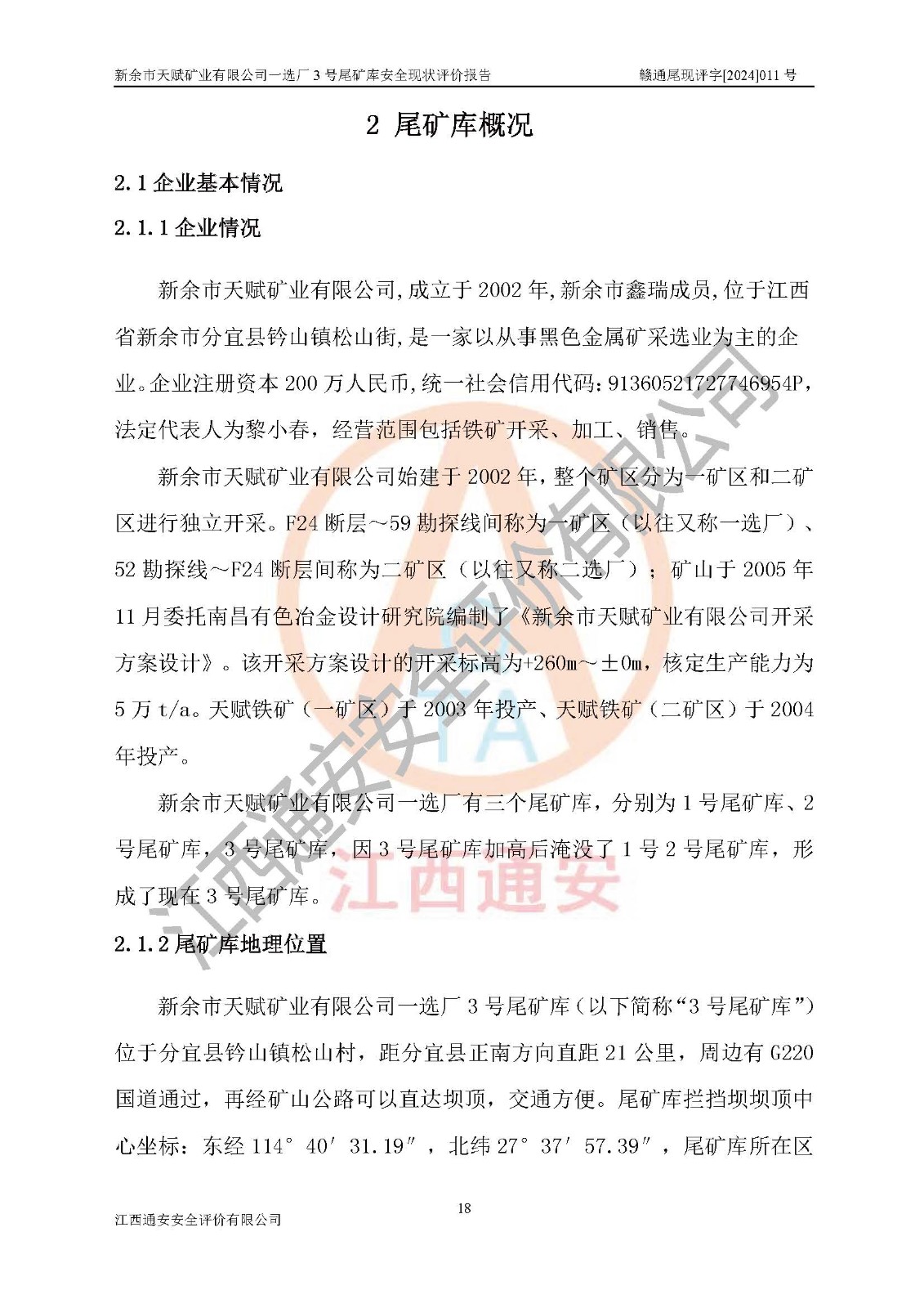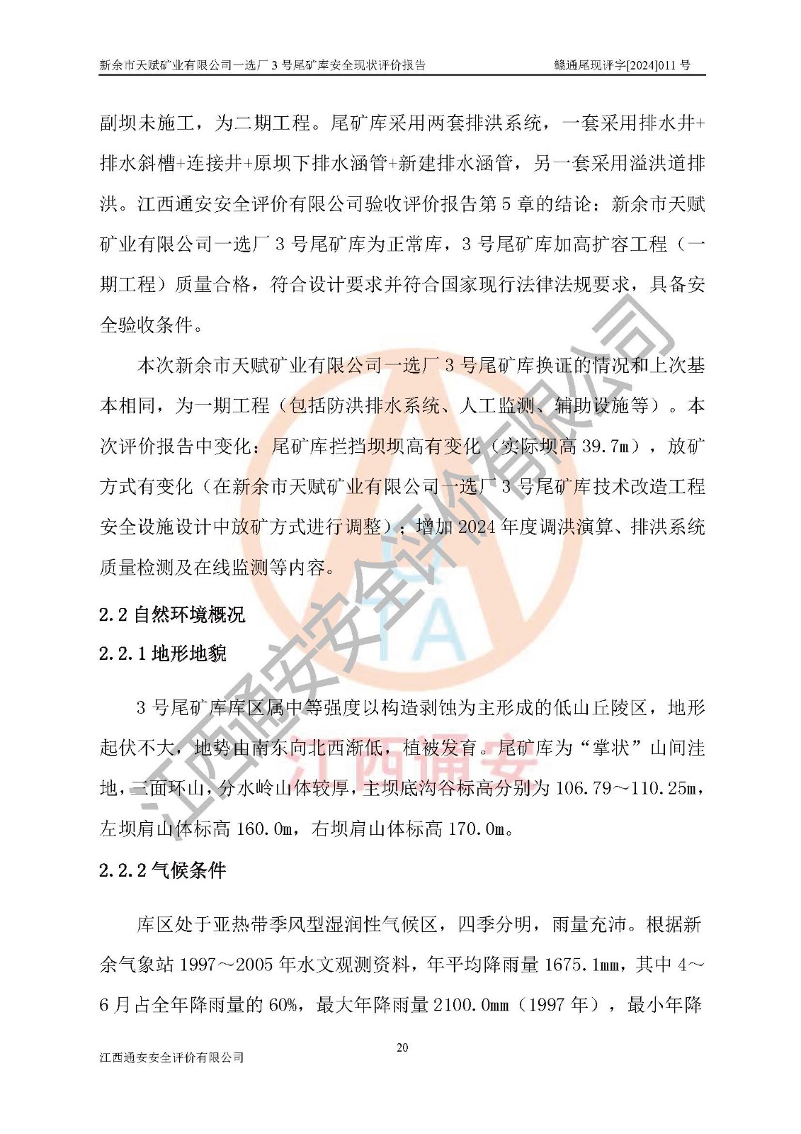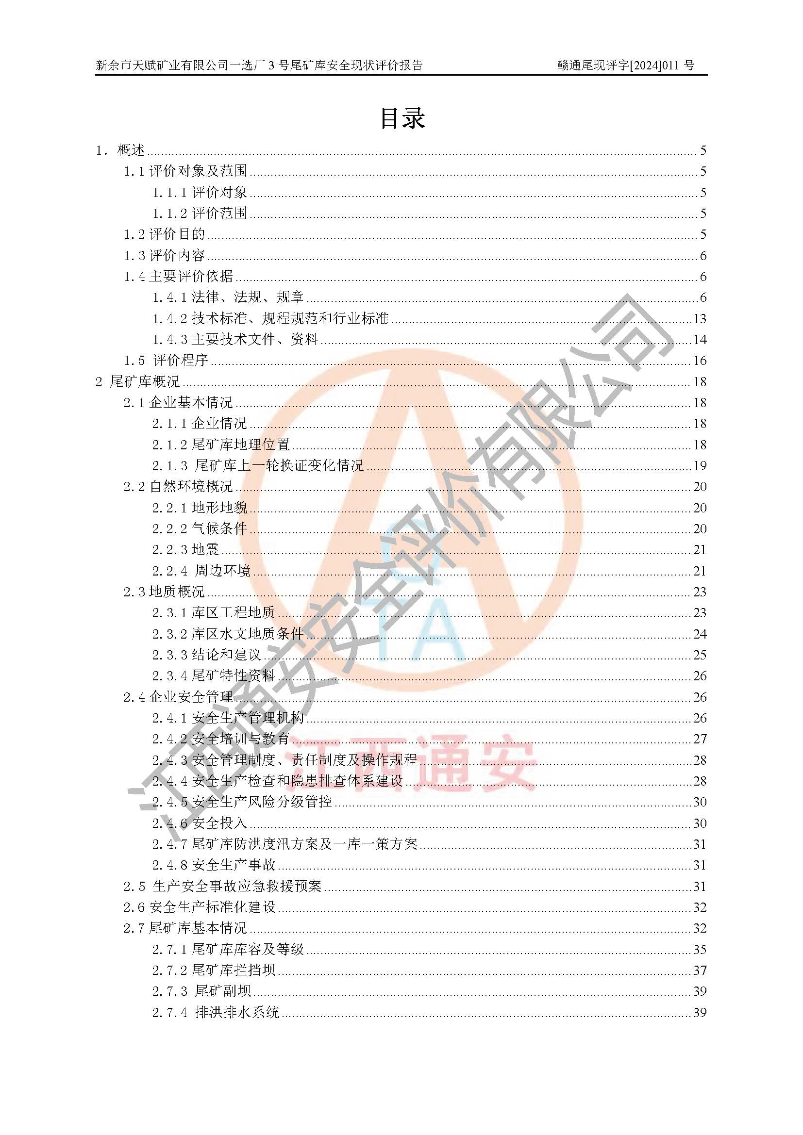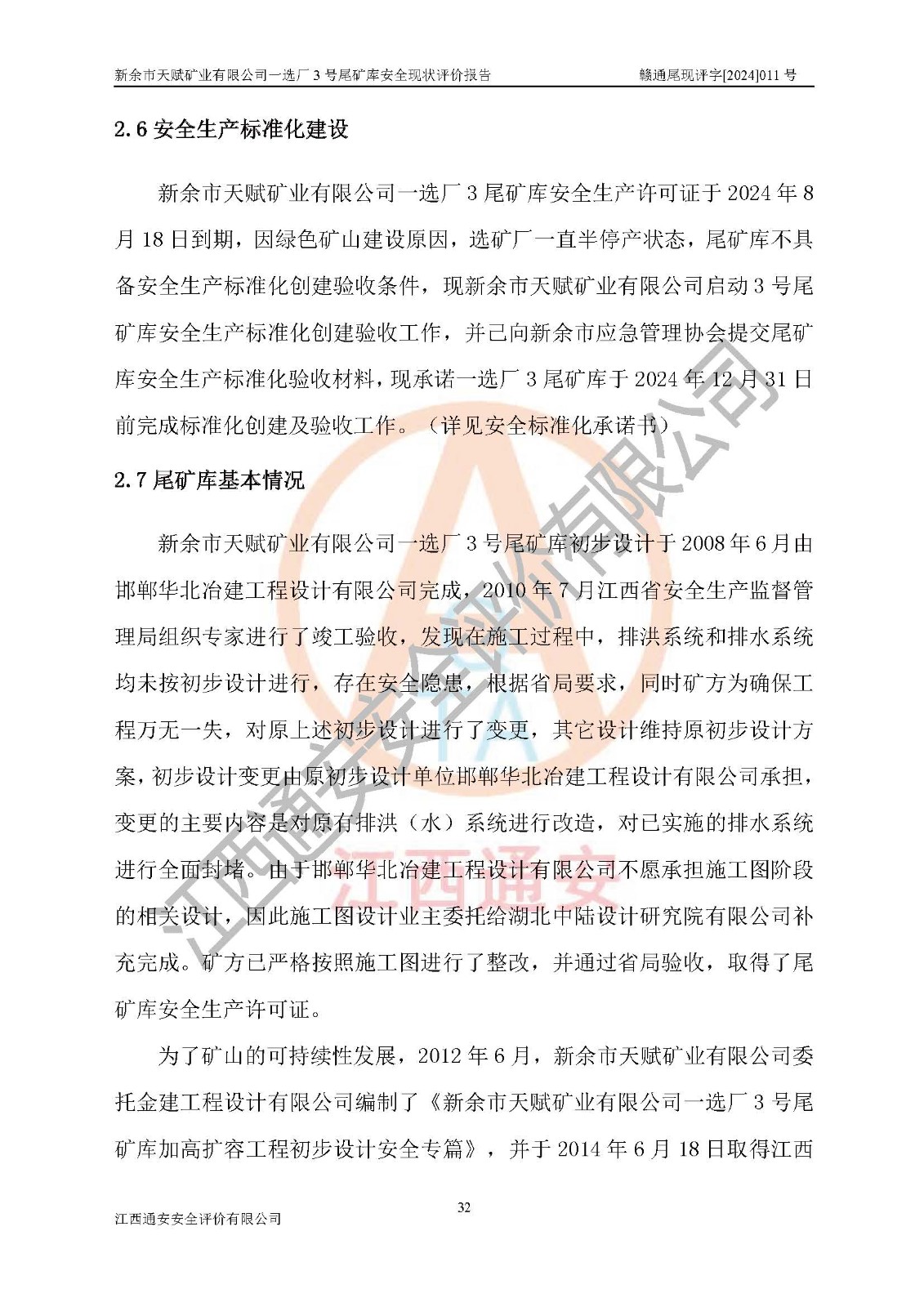 評(píng)價(jià)報(bào)告名稱 | 新余市天賦礦業(yè)有限公司一選廠3號(hào)尾礦庫現(xiàn)狀評(píng)價(jià)報(bào)告 | |||