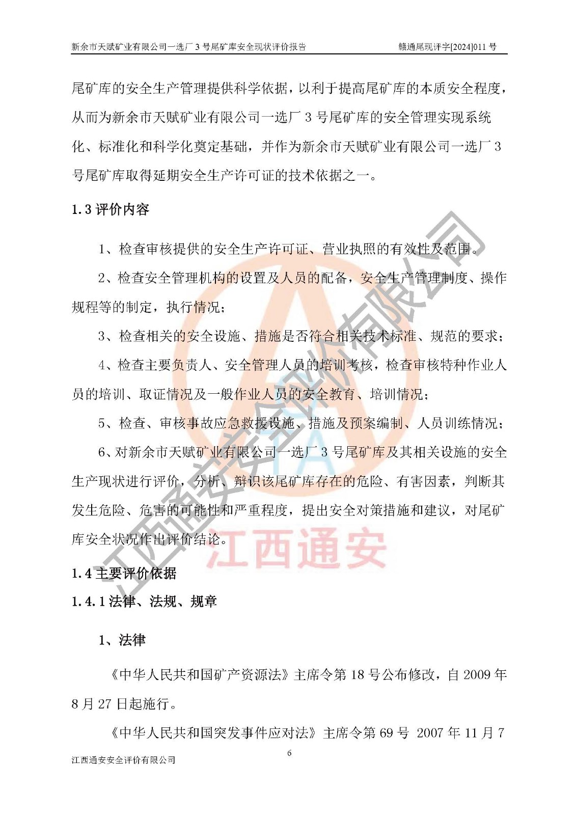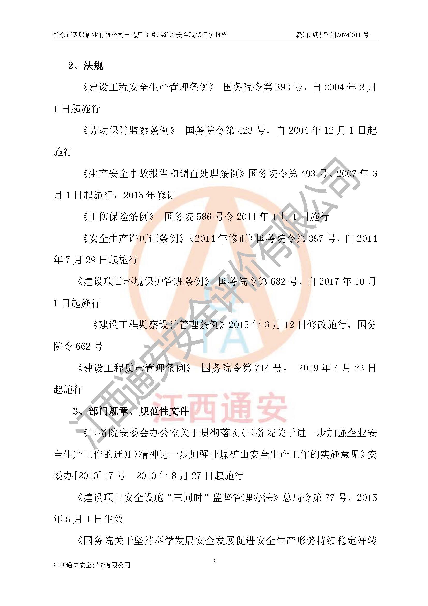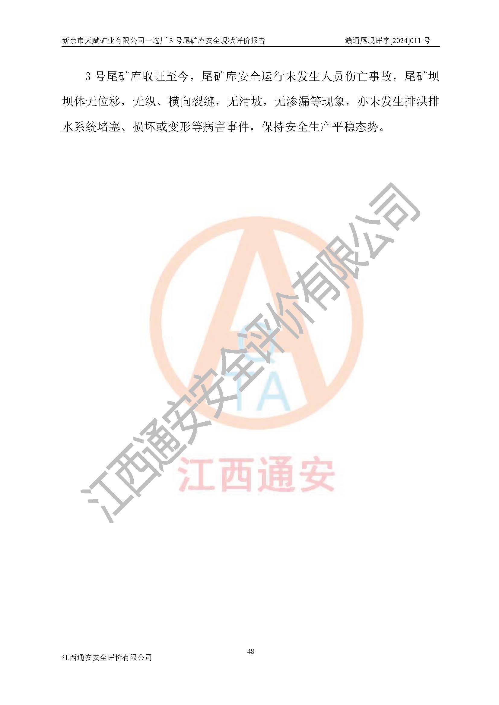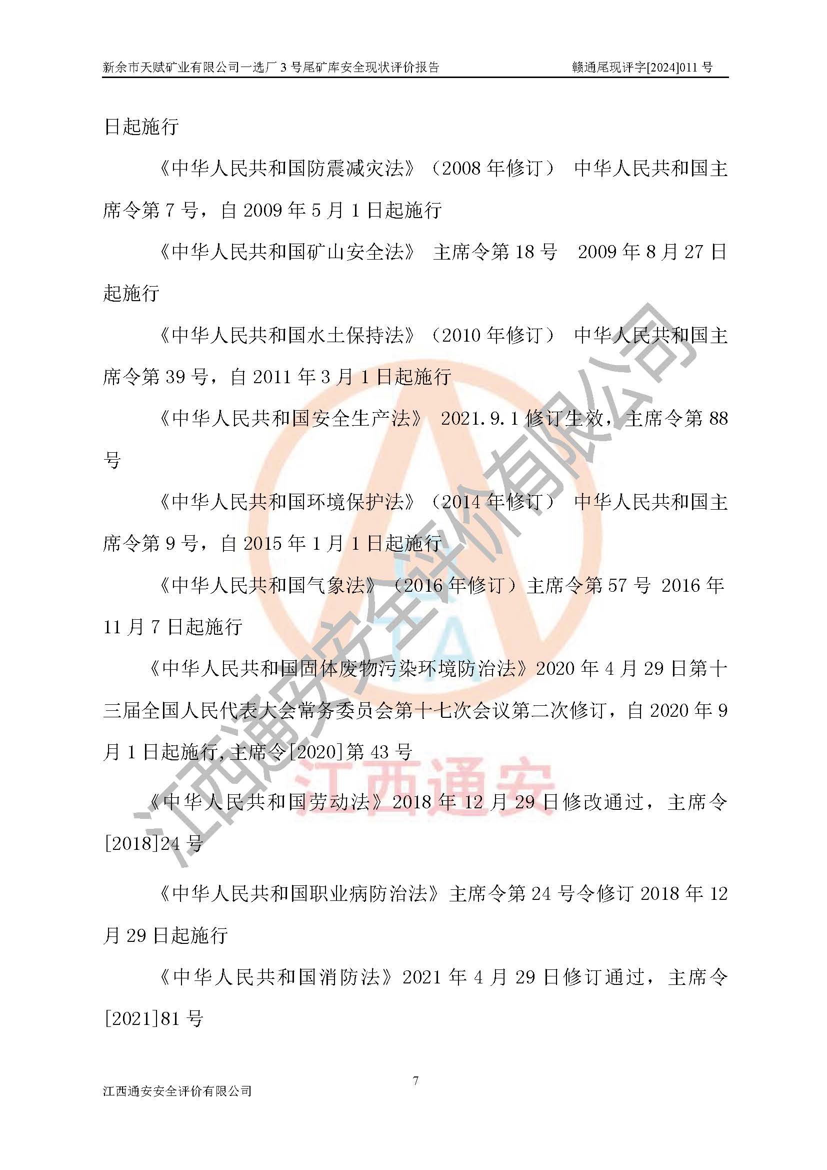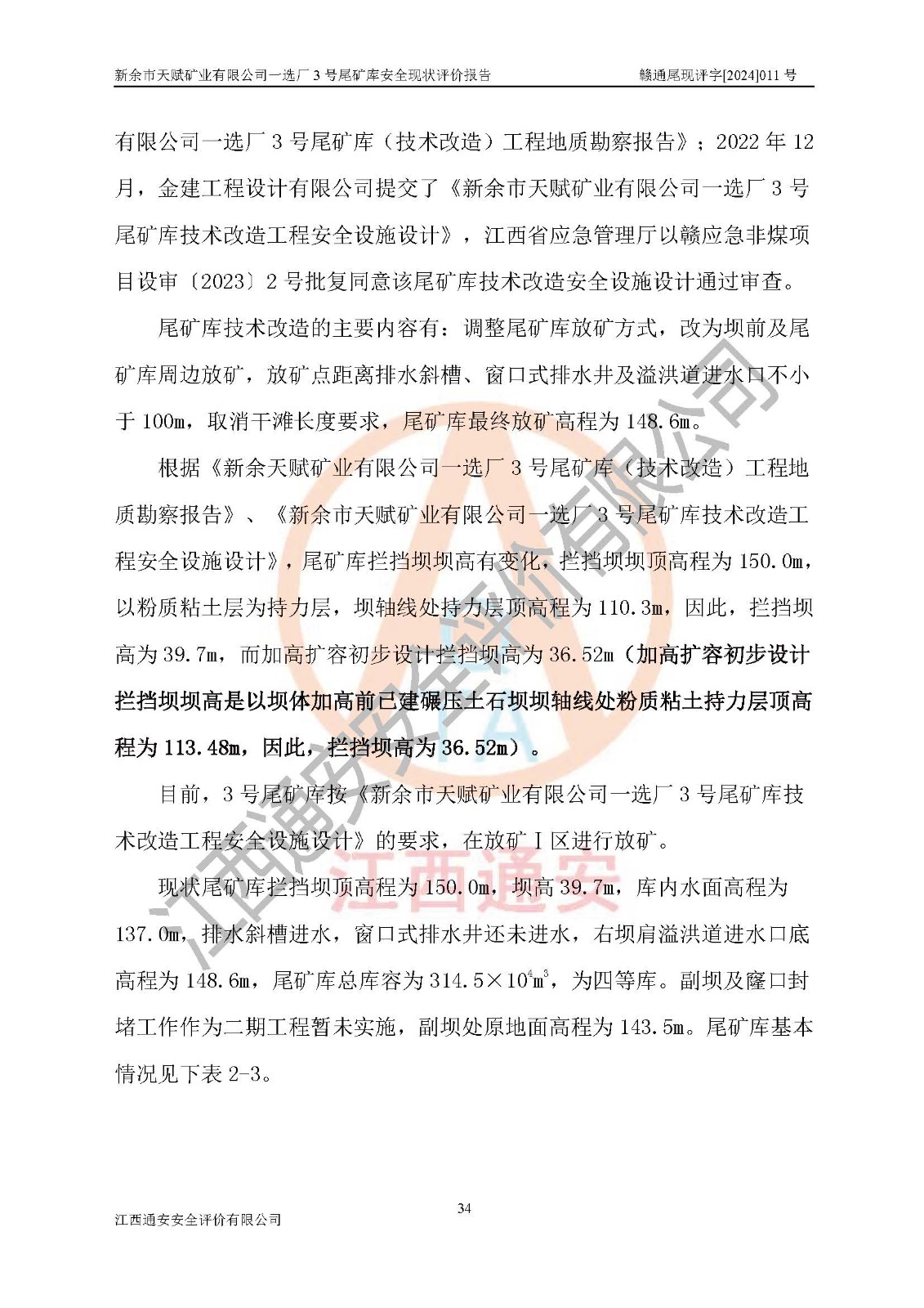 評(píng)價(jià)報(bào)告名稱 | 新余市天賦礦業(yè)有限公司一選廠3號(hào)尾礦庫現(xiàn)狀評(píng)價(jià)報(bào)告 | |||
