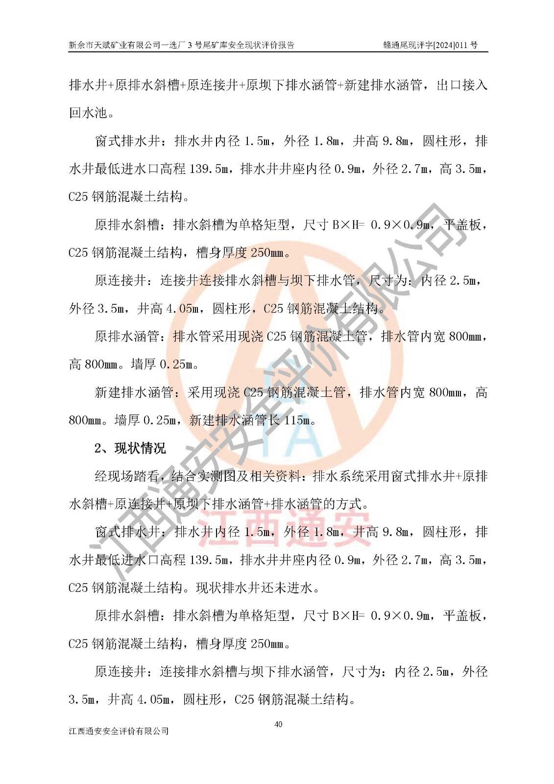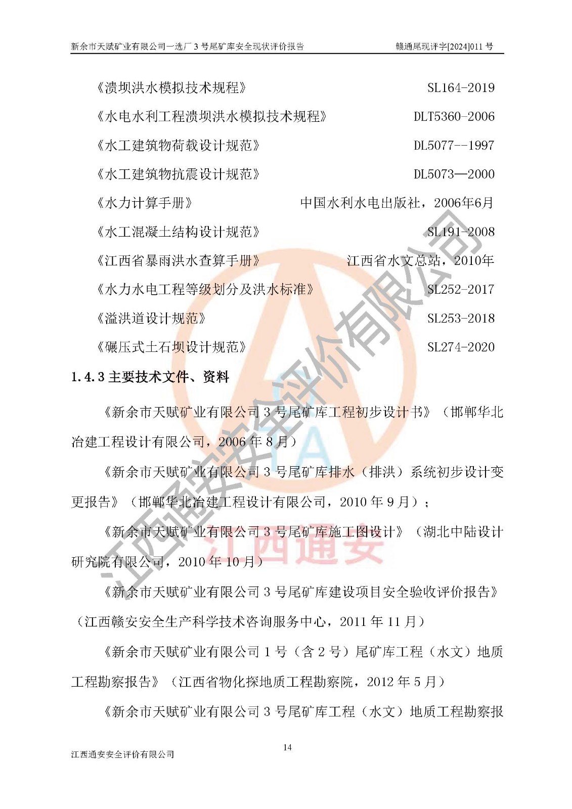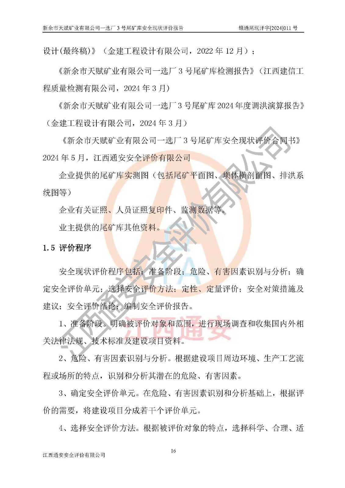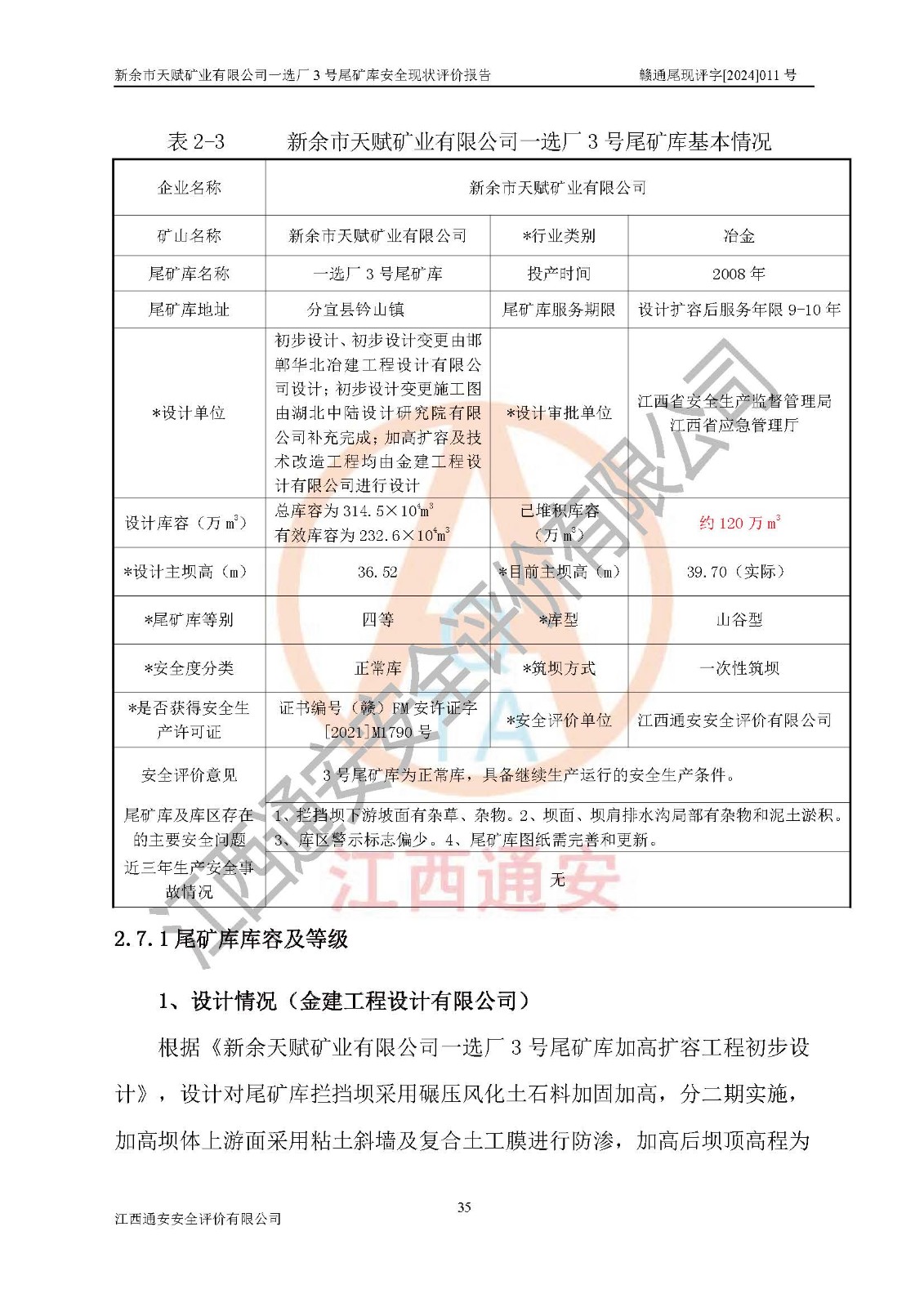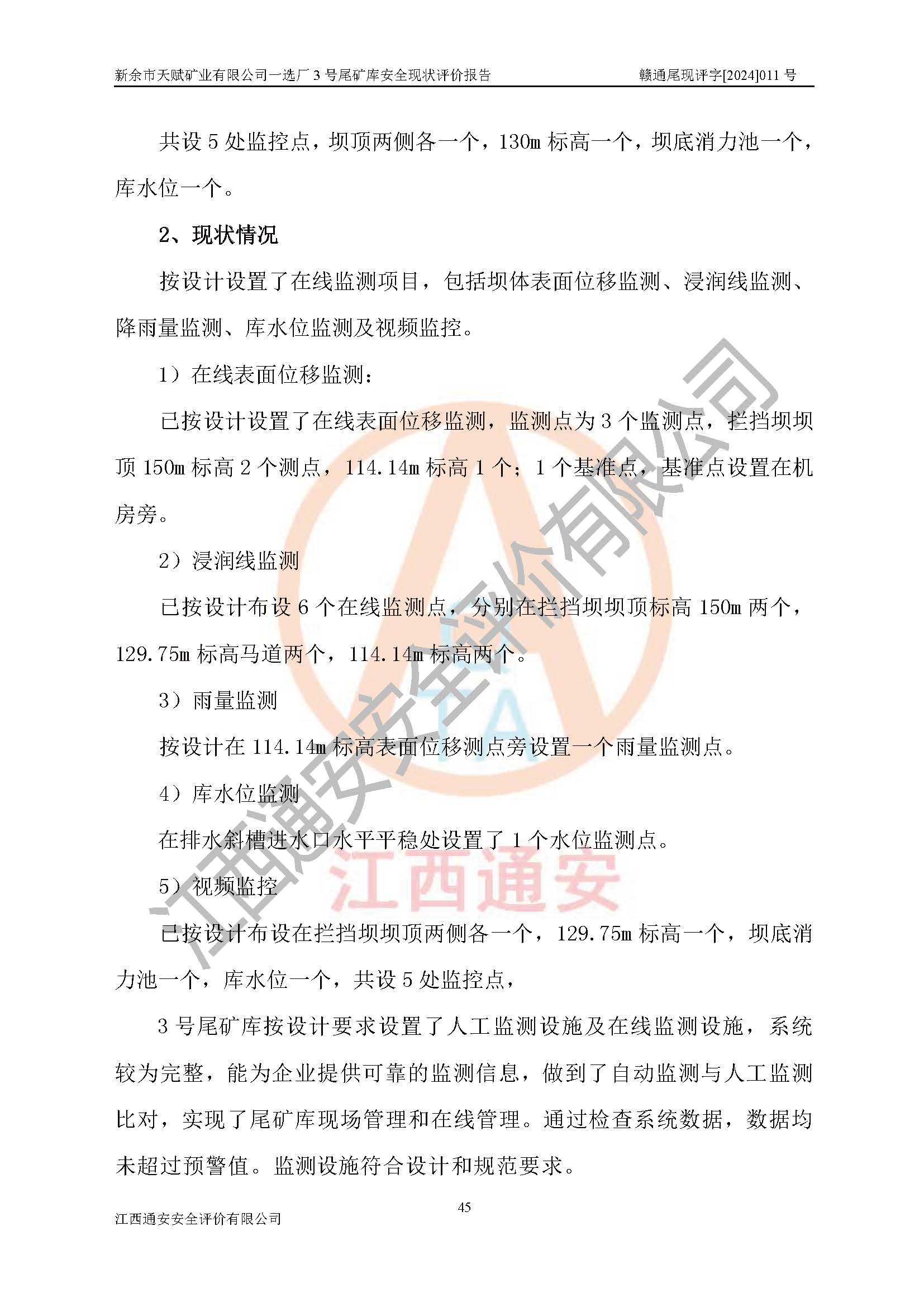 評(píng)價(jià)報(bào)告名稱 | 新余市天賦礦業(yè)有限公司一選廠3號(hào)尾礦庫現(xiàn)狀評(píng)價(jià)報(bào)告 | |||