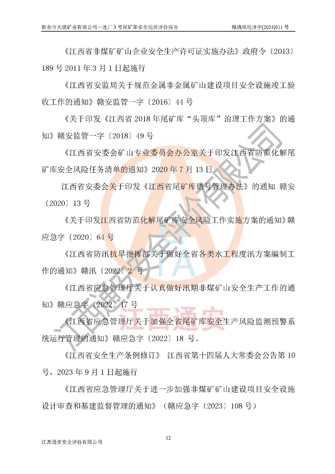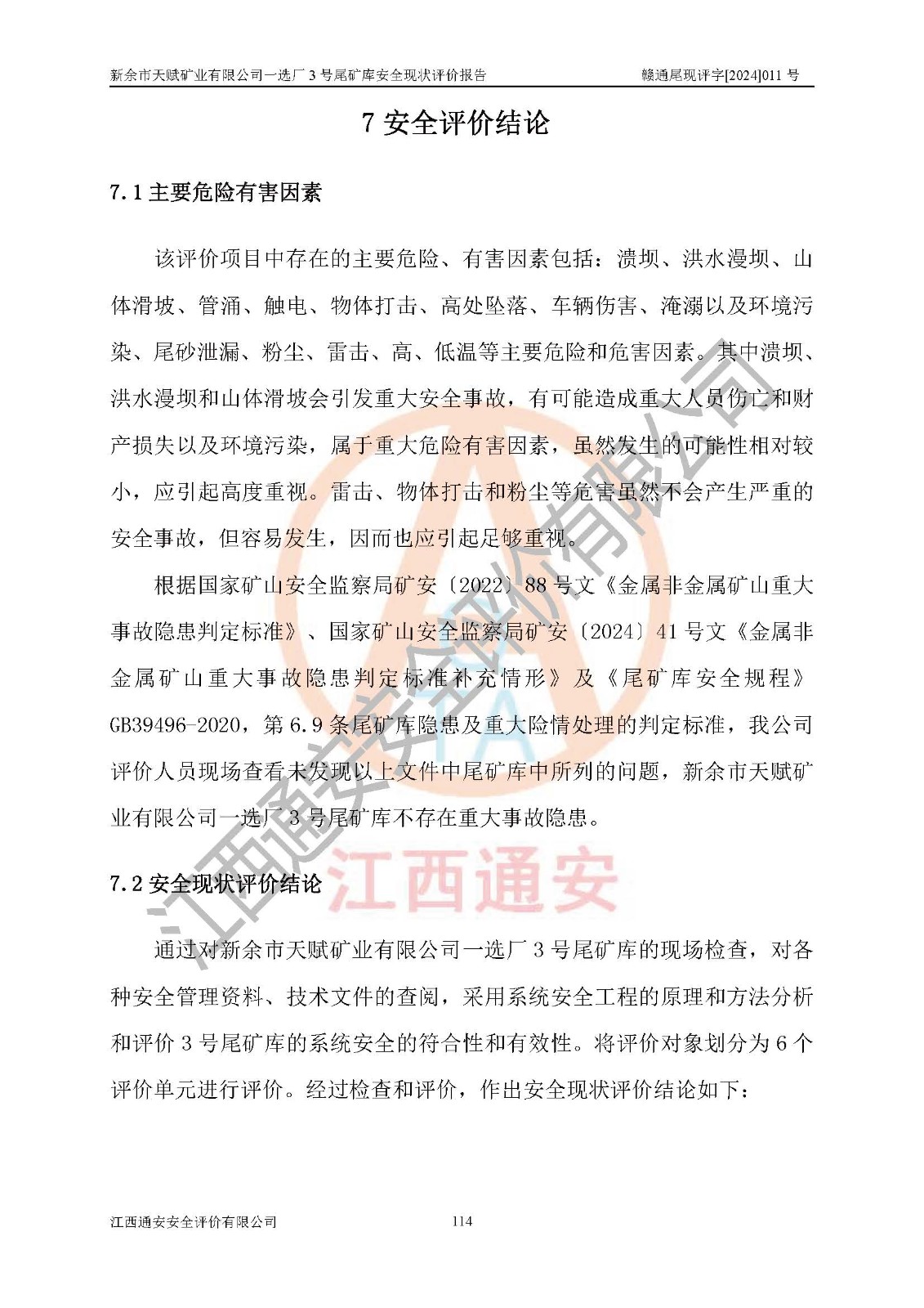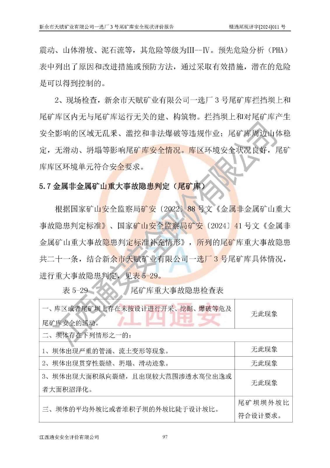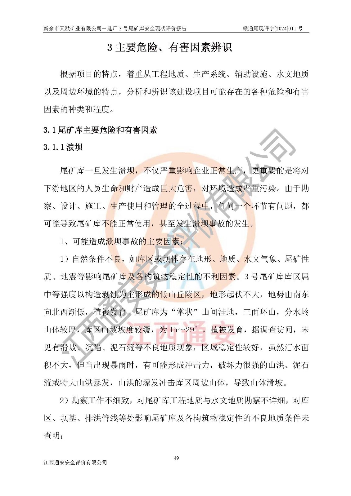 評(píng)價(jià)報(bào)告名稱 | 新余市天賦礦業(yè)有限公司一選廠3號(hào)尾礦庫現(xiàn)狀評(píng)價(jià)報(bào)告 | |||