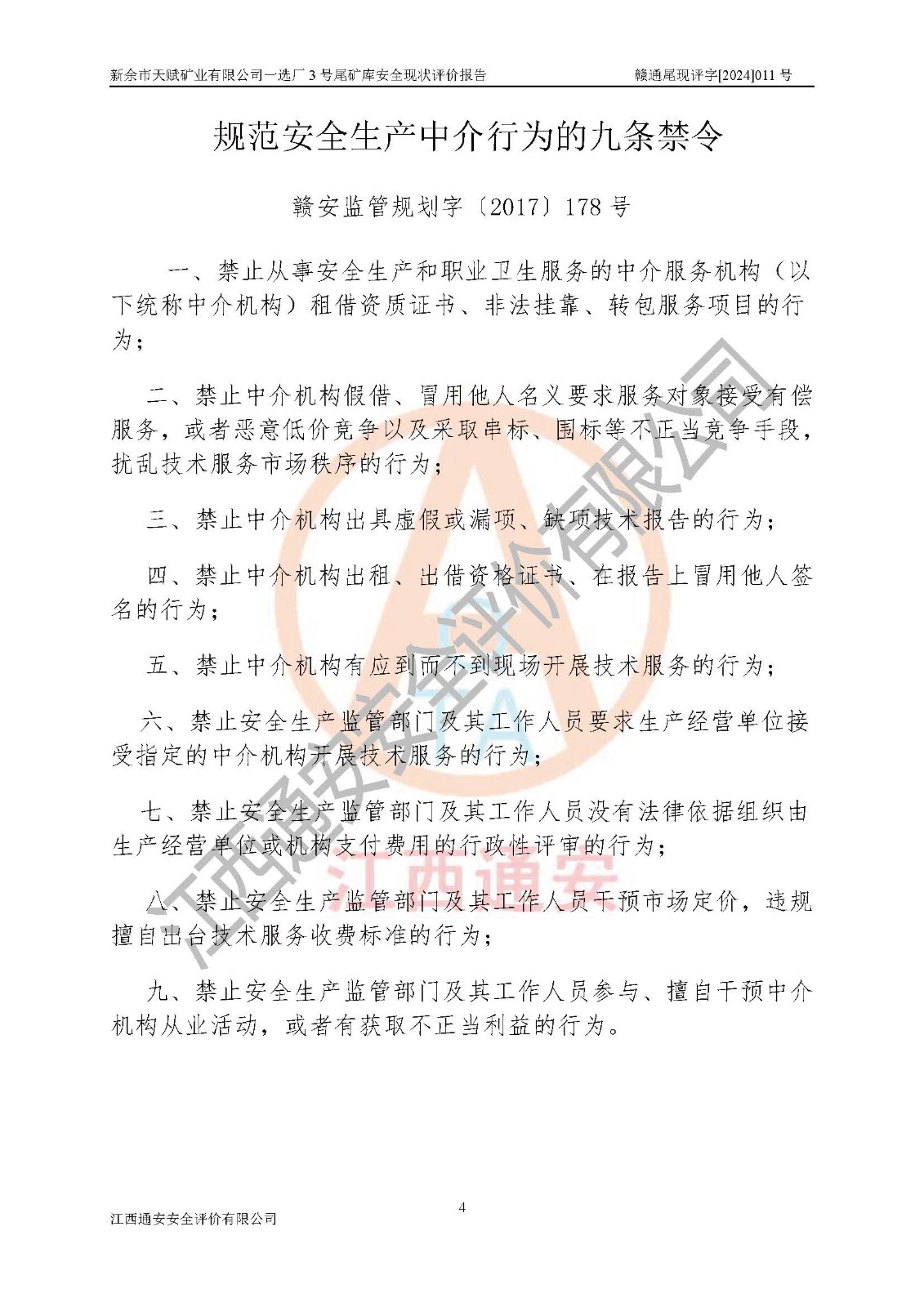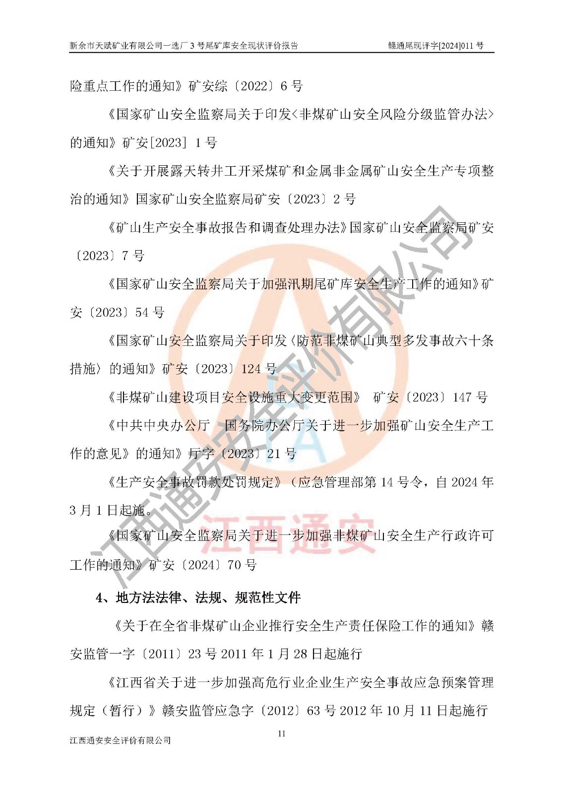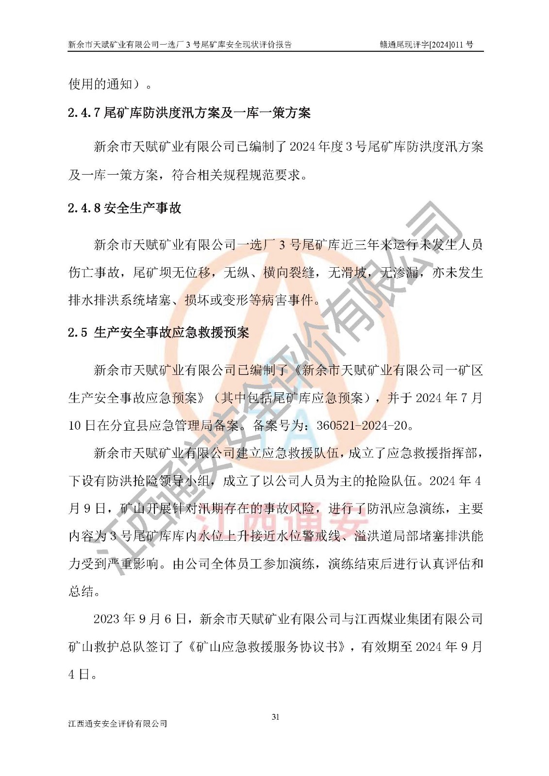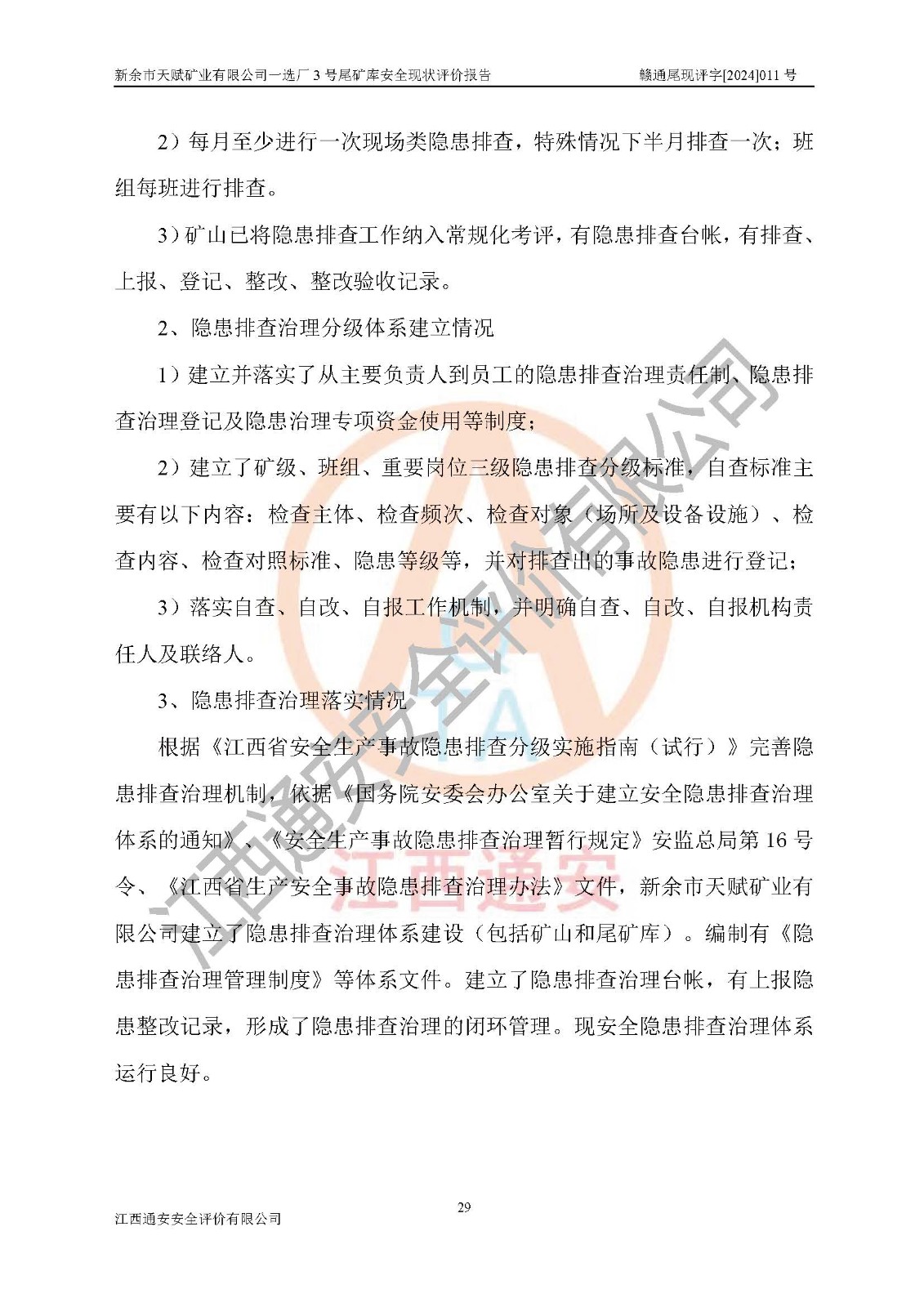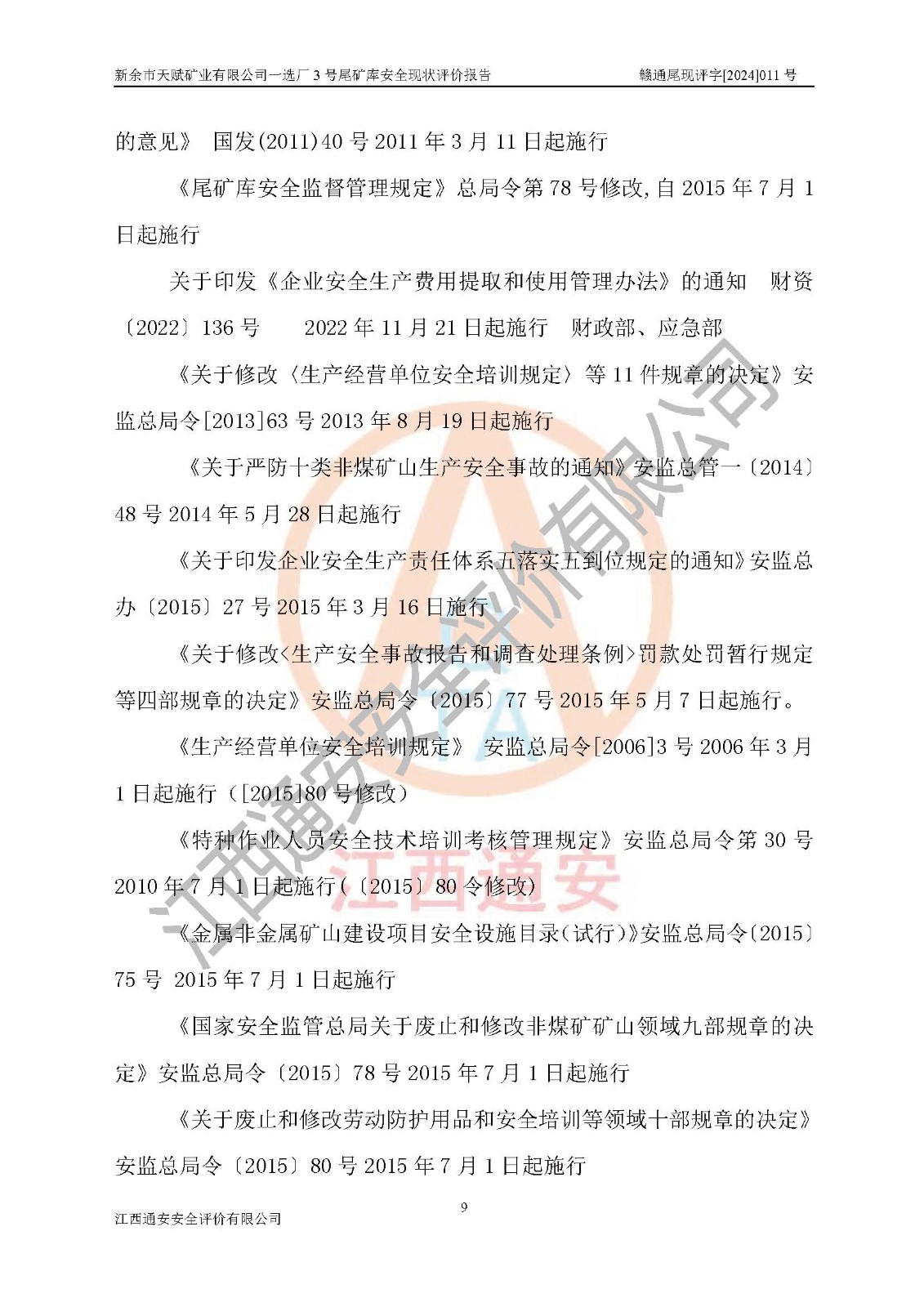 評(píng)價(jià)報(bào)告名稱 | 新余市天賦礦業(yè)有限公司一選廠3號(hào)尾礦庫現(xiàn)狀評(píng)價(jià)報(bào)告 | |||