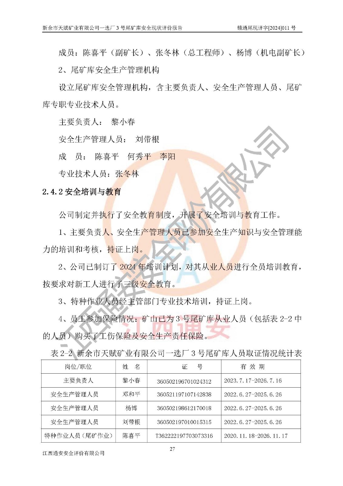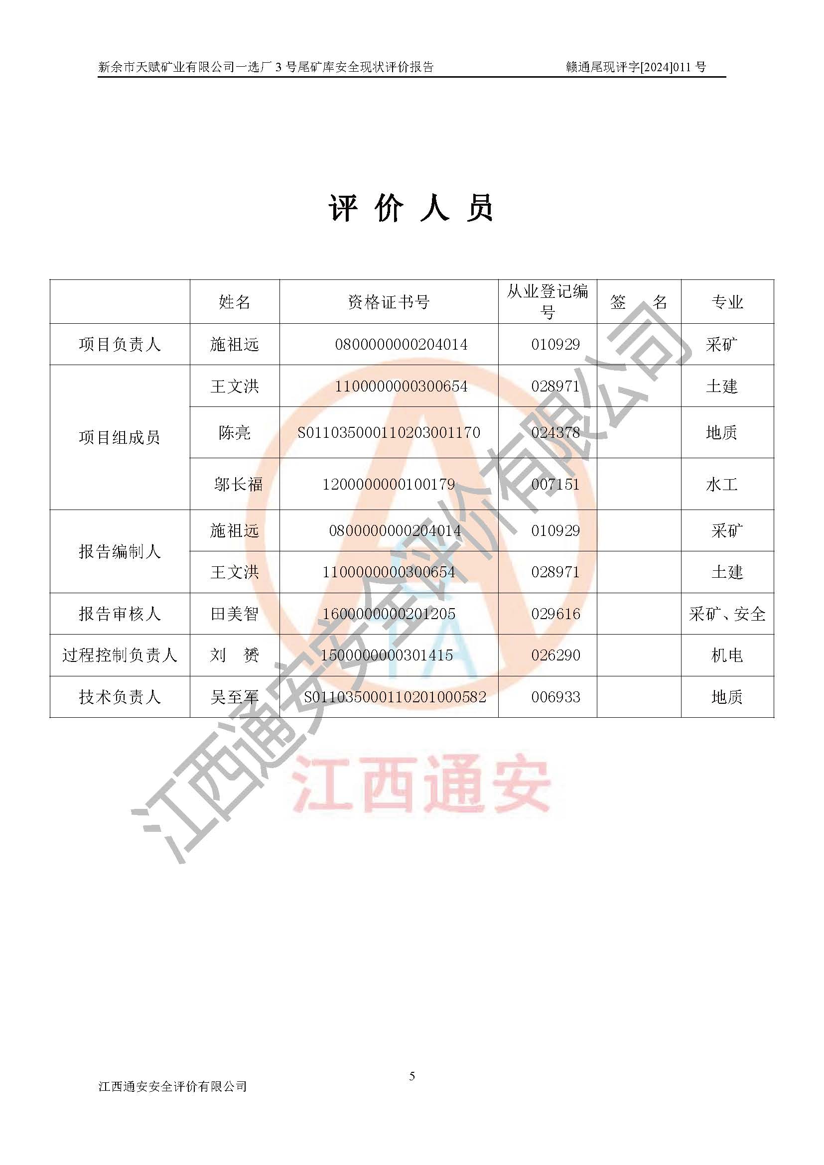 參與評(píng)價(jià)項(xiàng)目相關(guān)人員 | 姓名 | 資格證書號(hào) | 從業(yè)登記號(hào) | |