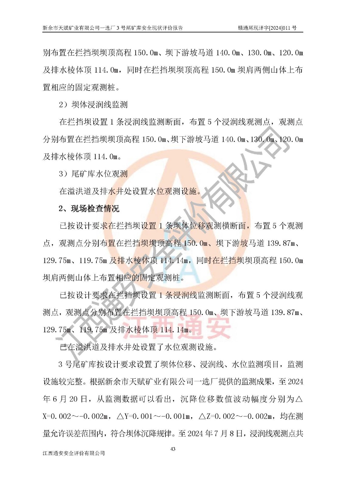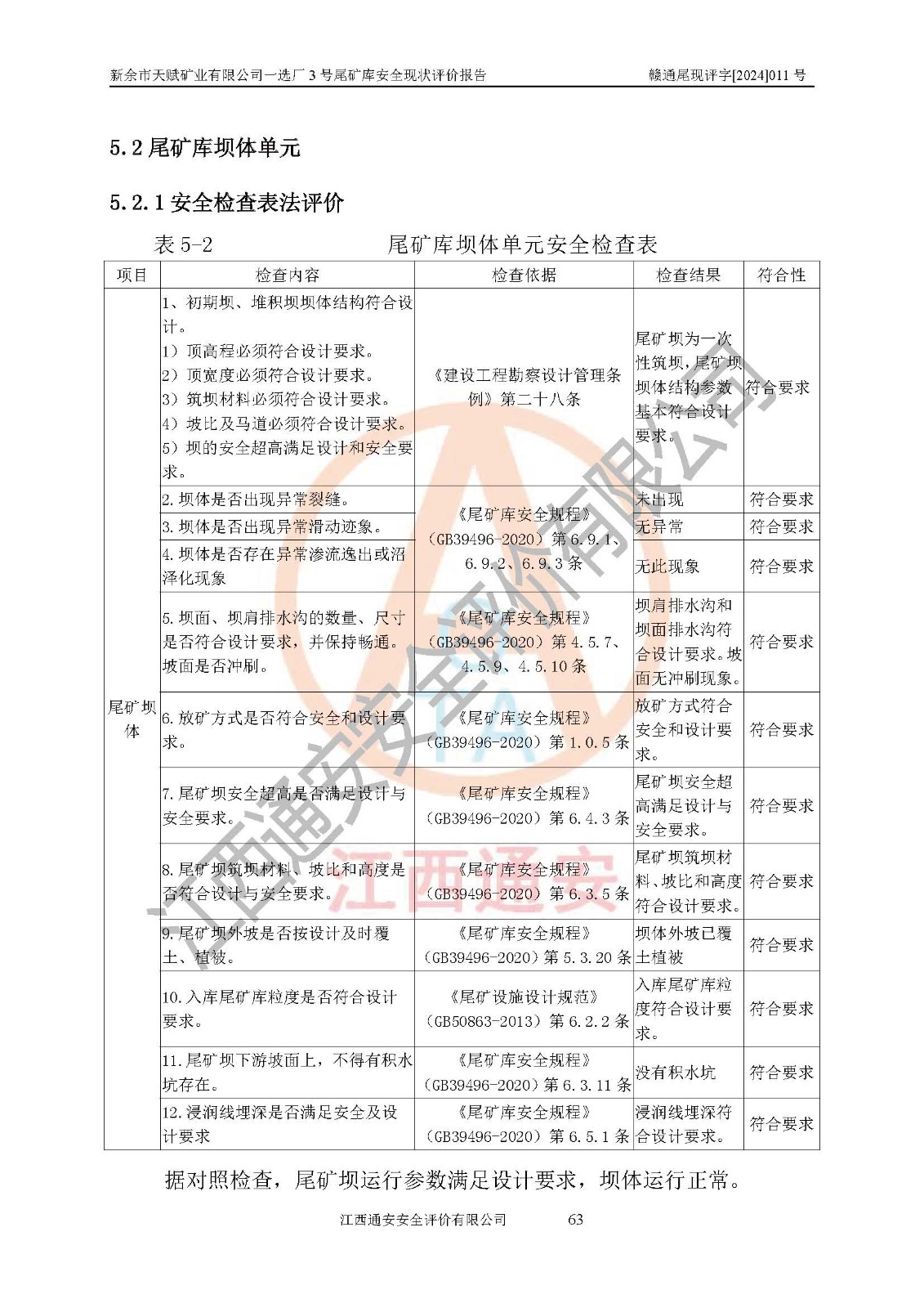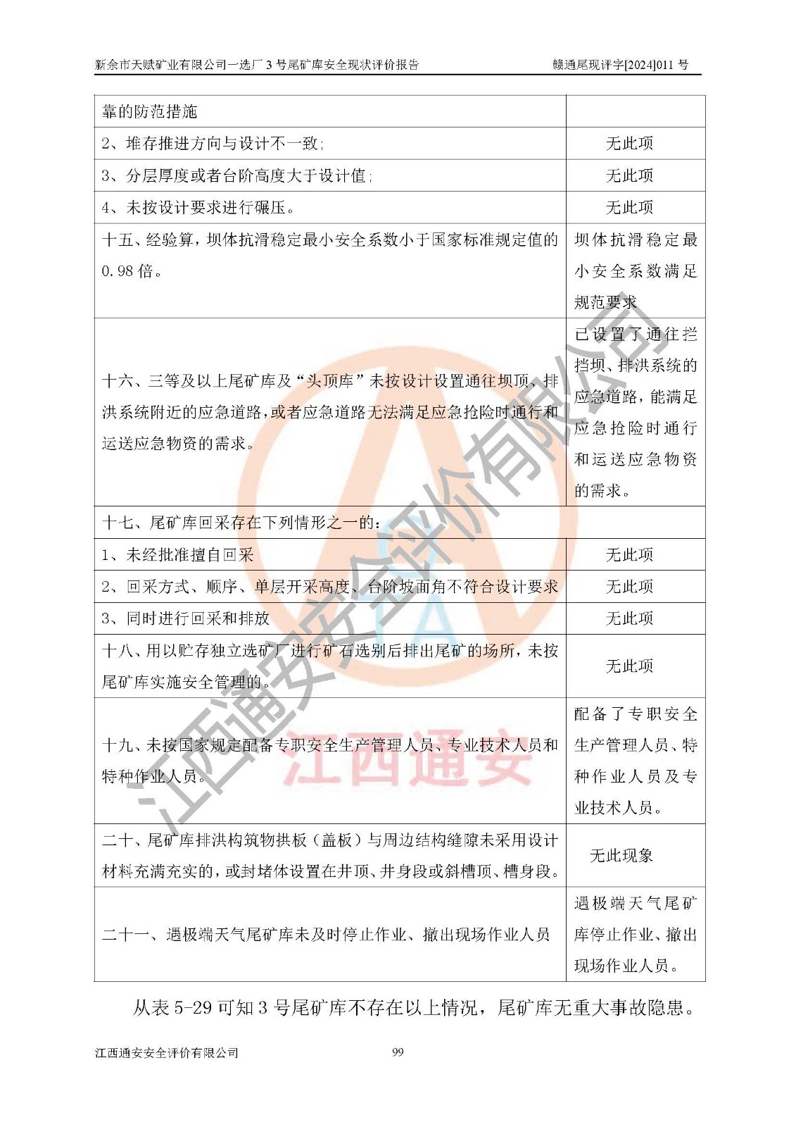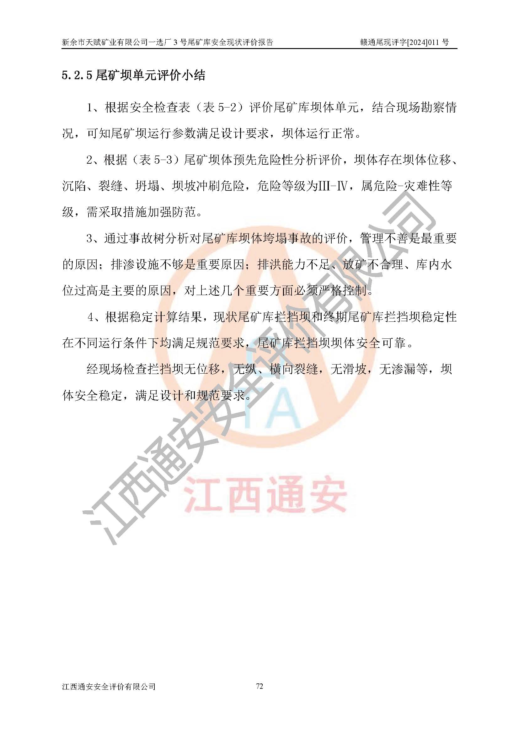 評(píng)價(jià)結(jié)論 | 新余市天賦礦業(yè)有限公司一選廠3號(hào)尾礦庫(一期)安全生產(chǎn)條件較好,為正常庫,具備繼續(xù)生產(chǎn)運(yùn)行的安全生產(chǎn)條件。 | |||