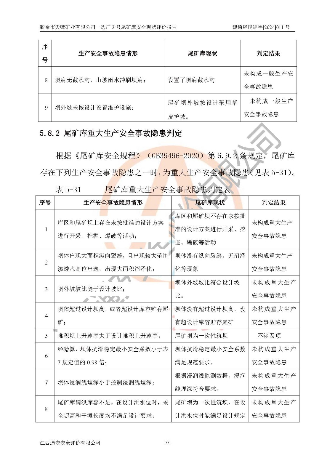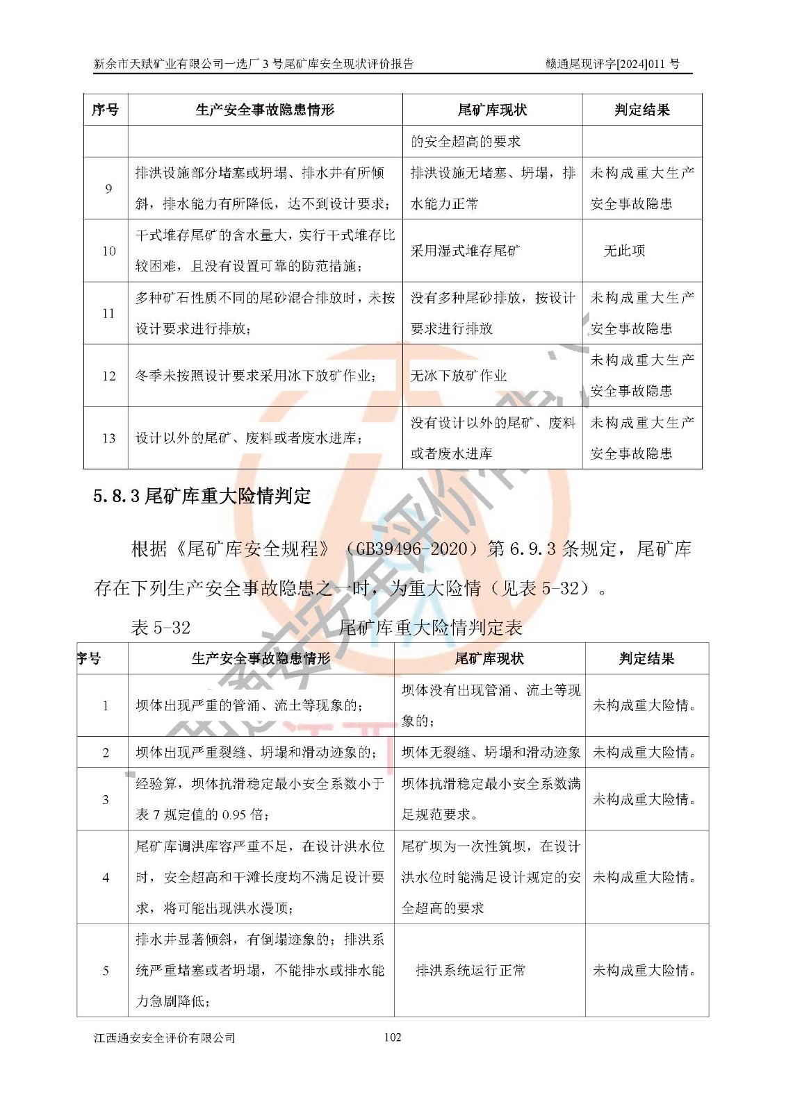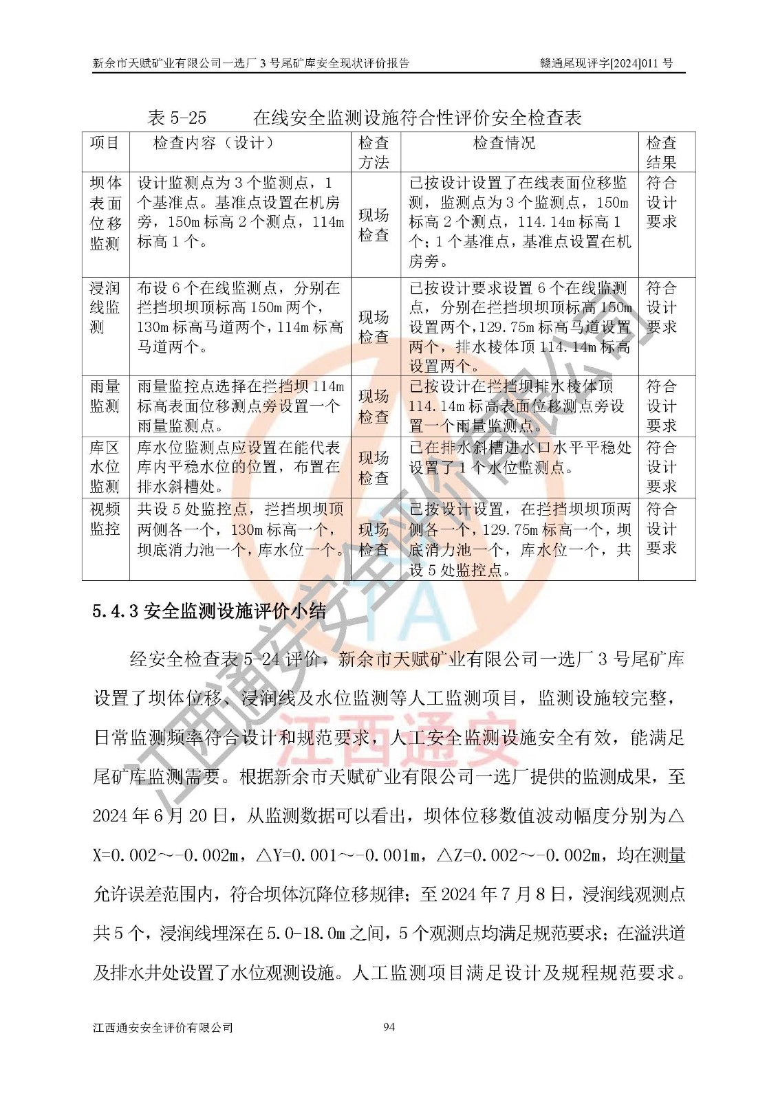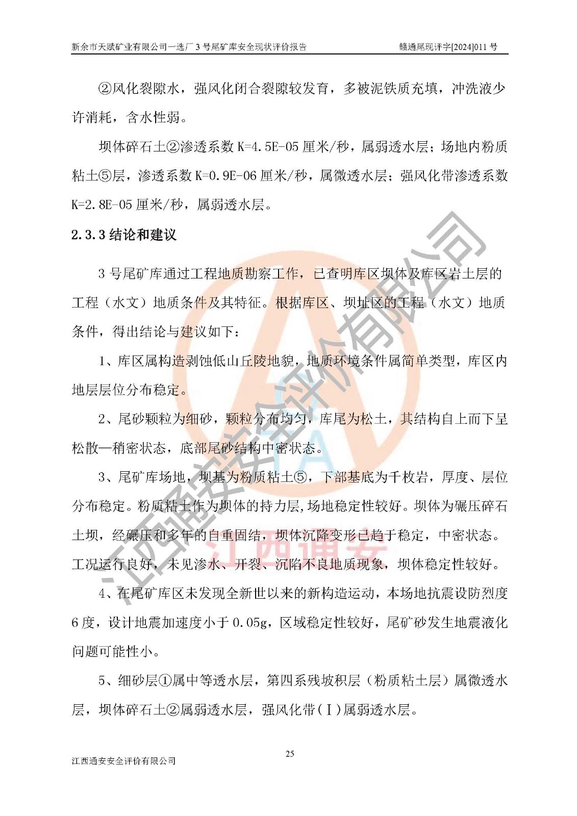 評(píng)價(jià)結(jié)論 | 新余市天賦礦業(yè)有限公司一選廠3號(hào)尾礦庫(一期)安全生產(chǎn)條件較好,為正常庫,具備繼續(xù)生產(chǎn)運(yùn)行的安全生產(chǎn)條件。 | |||