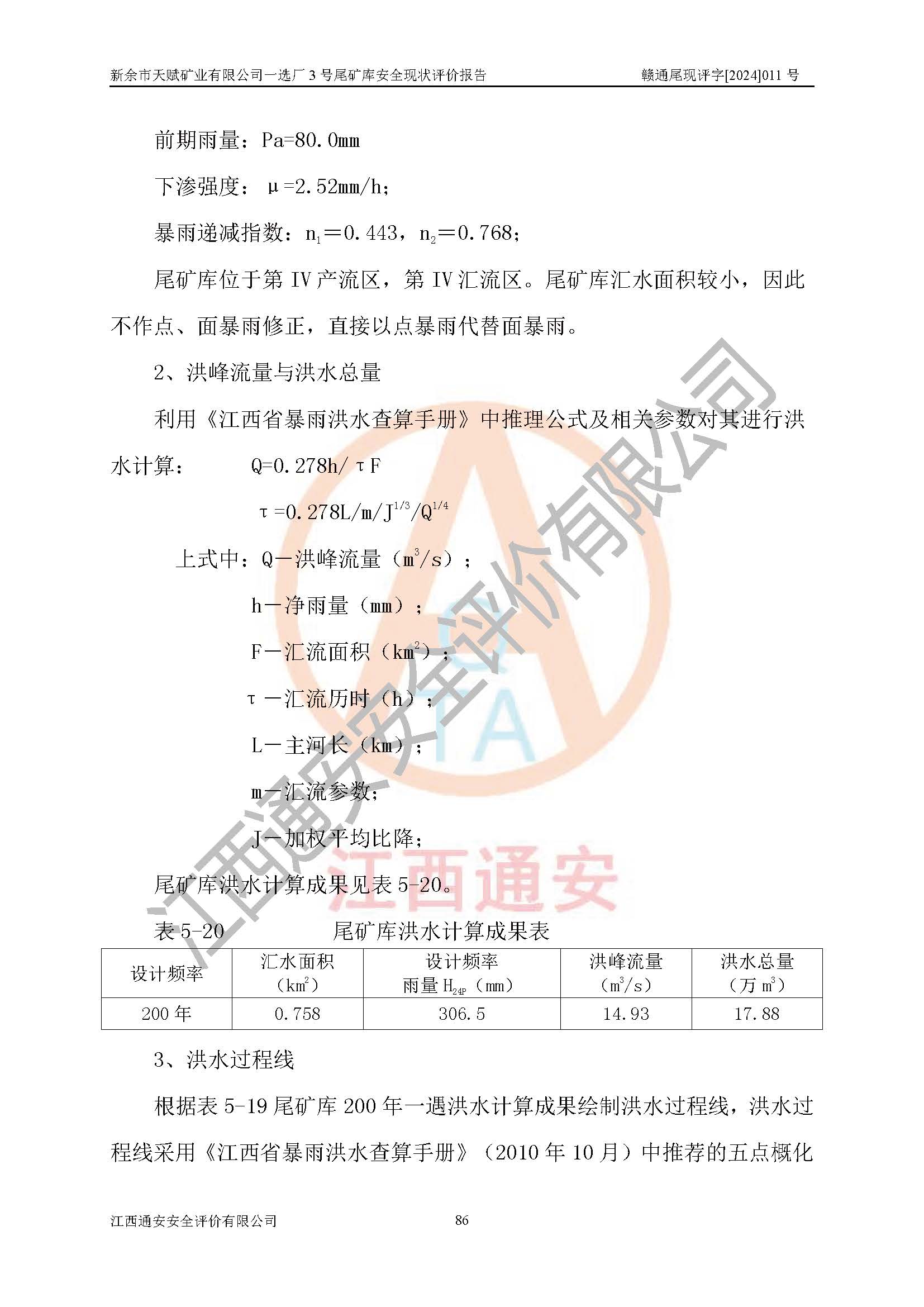 項(xiàng)目簡介 | 新余市天賦礦業(yè)有限公司一選廠3號(hào)尾礦庫位于江西省分宜縣鈐山鎮(zhèn)境內(nèi),屬鈐山鎮(zhèn)管轄,有鄉(xiāng)村公路相通,交通較為方便。3號(hào)尾礦庫壩頂中心點(diǎn)地理坐標(biāo)為:X=3058292,Y=38566139。 新余市天賦礦業(yè)有限公司一選廠3號(hào)尾礦庫初步設(shè)計(jì)于2008年6月由邯鄲華北冶建工程設(shè)計(jì)有限公司完成,2010年7月江西省安全生產(chǎn)監(jiān)督管理局組織專家進(jìn)行了竣工驗(yàn)收,發(fā)現(xiàn)在施工過程中,排洪系統(tǒng)和排水系統(tǒng)均未按初步設(shè)計(jì)進(jìn)行,存在安全隱患,根據(jù)省局要求,同時(shí)礦方為**工程萬無一失,對(duì)原上述初步設(shè)計(jì)進(jìn)行了變更,其它設(shè)計(jì)維持原初步設(shè)計(jì)方案,初步設(shè)計(jì)變更由原初步設(shè)計(jì)單位邯鄲華北冶建工程設(shè)計(jì)有限公司承擔(dān),變更的主要內(nèi)容是對(duì)原有排洪(水)系統(tǒng)進(jìn)行改造,對(duì)已實(shí)施的排水系統(tǒng)進(jìn)行全面封堵。由于邯鄲華北冶建工程設(shè)計(jì)有限公司不愿承擔(dān)施工圖階段的相關(guān)設(shè)計(jì),因此施工圖設(shè)計(jì)業(yè)主委托給湖北中陸設(shè)計(jì)研究院有限公司補(bǔ)充完成。礦方已嚴(yán)格按照施工圖進(jìn)行了整改,并通過省局驗(yàn)收,取得了尾礦庫安全生產(chǎn)許可證。 為了礦山的可持續(xù)性發(fā)展,2012年6月,新余市天賦礦業(yè)有限公司委托金建工程設(shè)計(jì)有限公司編制了《新余市天賦礦業(yè)有限公司一選廠3號(hào)尾礦庫加高擴(kuò)容工程初步設(shè)計(jì)安全專篇》,并于2014年6月18日取得江西省安全生產(chǎn)監(jiān)督管理局關(guān)于新余市天賦礦業(yè)有限公司一選廠3號(hào)尾礦庫加高擴(kuò)容初步設(shè)計(jì)安全專篇的審查意見(贛安監(jiān)非煤項(xiàng)目設(shè)審[2014]30號(hào))。 由于3號(hào)尾礦庫下游流經(jīng)路線1000m范圍內(nèi)有房屋及公路,2021年2月,南昌大學(xué)提交了《新余天賦礦業(yè)有限公司一選廠3號(hào)尾礦庫潰壩數(shù)值模擬分析》,通過尾礦庫漸潰潰壩數(shù)值模擬分析表明,潰壩所淹沒的范圍距壩腳*遠(yuǎn)約600m,運(yùn)移距離不遠(yuǎn),未到達(dá)下游房屋,潰壩對(duì)下游房屋及公路無影響;通過尾礦庫瞬潰潰壩數(shù)值模擬分析表明,0~300m溝谷段尾砂堆積厚度較厚,出溝口后堆積厚度逐漸減小,末端堆積厚度僅0.2m,潰壩尾砂*遠(yuǎn)運(yùn)移距離為750m,運(yùn)移距離雖比漸潰遠(yuǎn),但還未到達(dá)房屋位置,距離房屋位置約50m,潰壩對(duì)下游房屋及公路無影響。 3號(hào)尾礦庫加高擴(kuò)容工程分二期實(shí)施,一期工程由江西南方礦山建設(shè)有限公司進(jìn)行施工,江西省新大地建設(shè)監(jiān)理有限公司進(jìn)行監(jiān)理,該工程(一期工程)已于2018年8月底完工,2021年3月完成一期工程竣工驗(yàn)收,2021年8月19日取得了江西省應(yīng)急管理廳頒發(fā)的尾礦庫安全生產(chǎn)許可證(證號(hào):(贛)FM安許證字[2021]M1790號(hào)),安全生產(chǎn)許可證**期為2021年8月19日至2024年8月18日。因二期工程未實(shí)施,安全生產(chǎn)許可證允許*高排尾高程為139.0m。 2022年6月,企業(yè)委托金建工程設(shè)計(jì)有限公司對(duì)該尾礦庫進(jìn)行技術(shù)改造,解決因入庫尾砂粒度變細(xì)、尾砂灘面坡度較緩、造成壩前干灘長度不足的問題,江西省應(yīng)急管理廳以贛應(yīng)急非煤項(xiàng)目設(shè)審〔2023〕2號(hào)批復(fù)同意該尾礦庫技術(shù)改造安全設(shè)施設(shè)計(jì)通過審查。 3號(hào)尾礦庫安全生產(chǎn)許可證**期為2021年8月19日至2024年8月18日。依照《非煤礦礦山企業(yè)安全生產(chǎn)許可證延期換證工作》的通知,根據(jù)***《安全生產(chǎn)許可證條例》、《江西省安全生產(chǎn)條例》、《非煤礦山安全生產(chǎn)許可證實(shí)施辦法》、《江西省非煤礦礦山企業(yè)安全生產(chǎn)許可證辦法》規(guī)定的要求,受新余市天賦礦業(yè)有限公司委托,我公司承擔(dān)了一選廠3號(hào)尾礦庫延期換證安全現(xiàn)狀評(píng)價(jià)工作。 | |||
